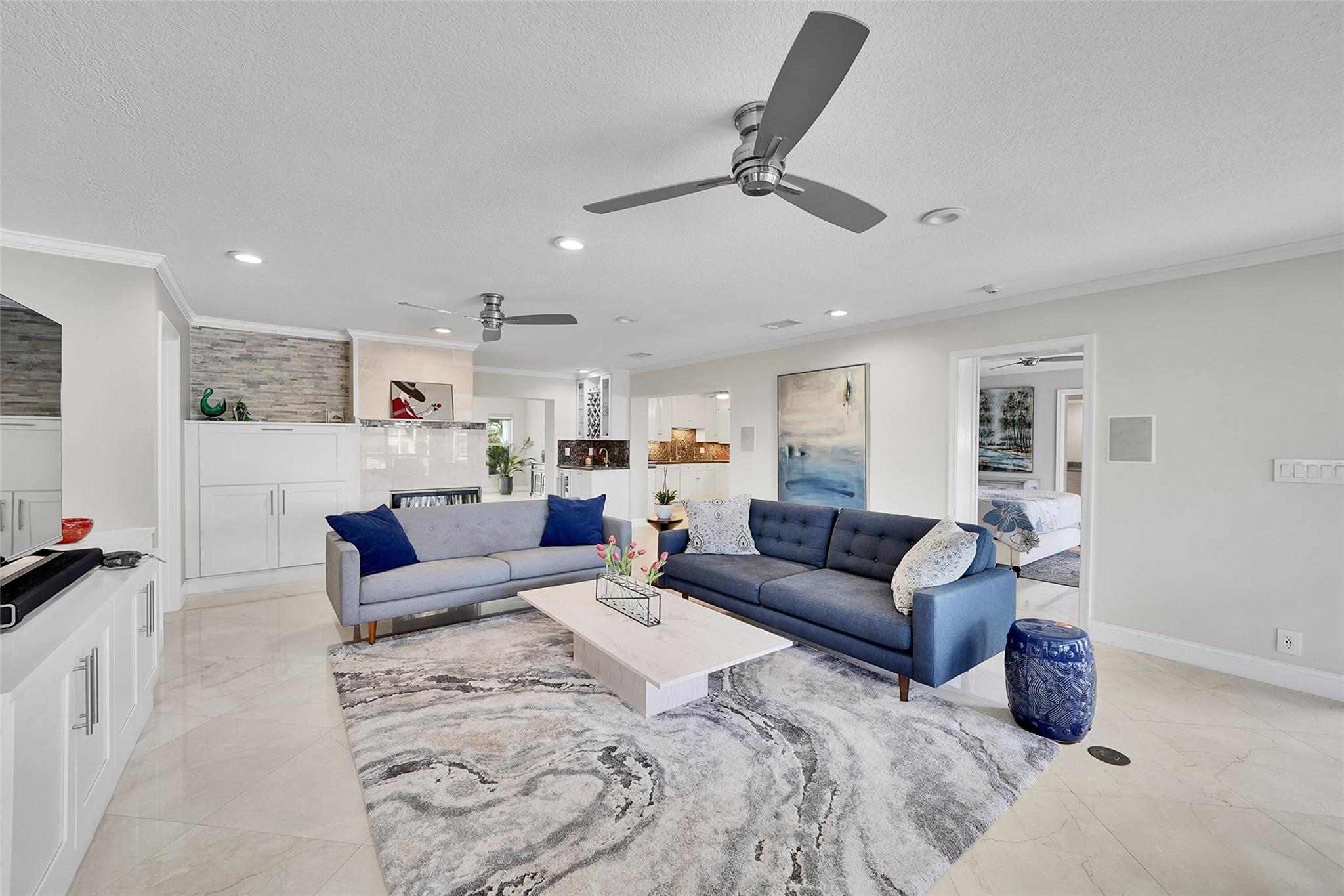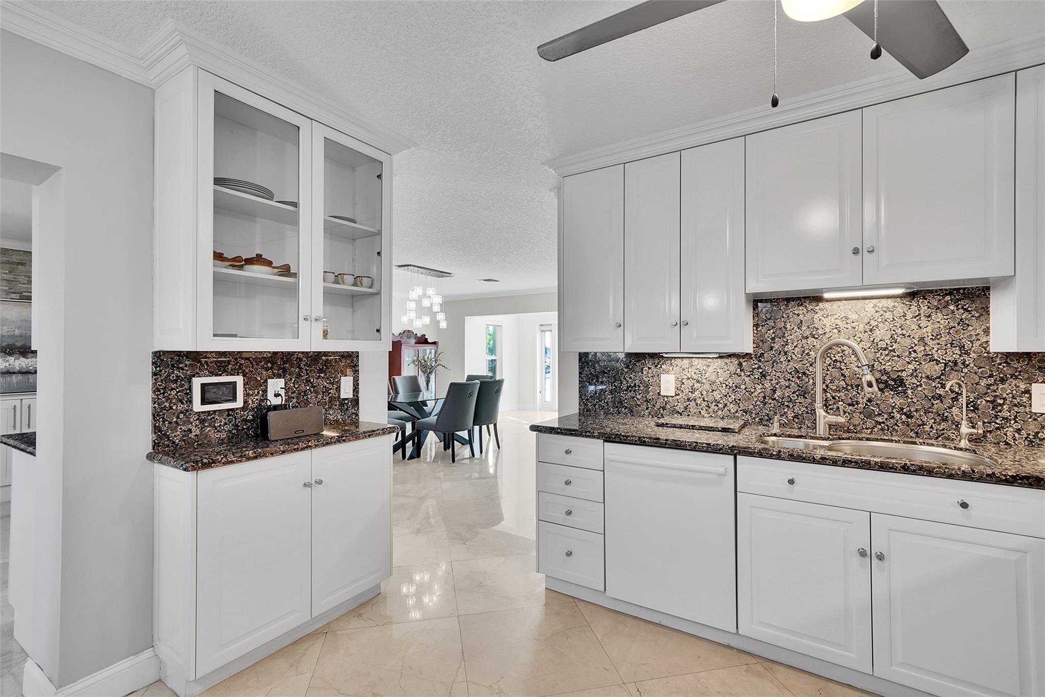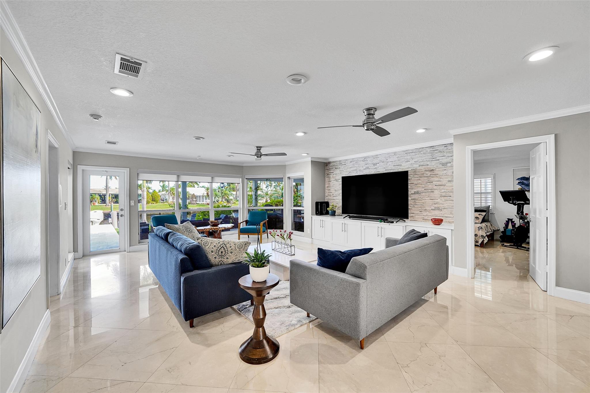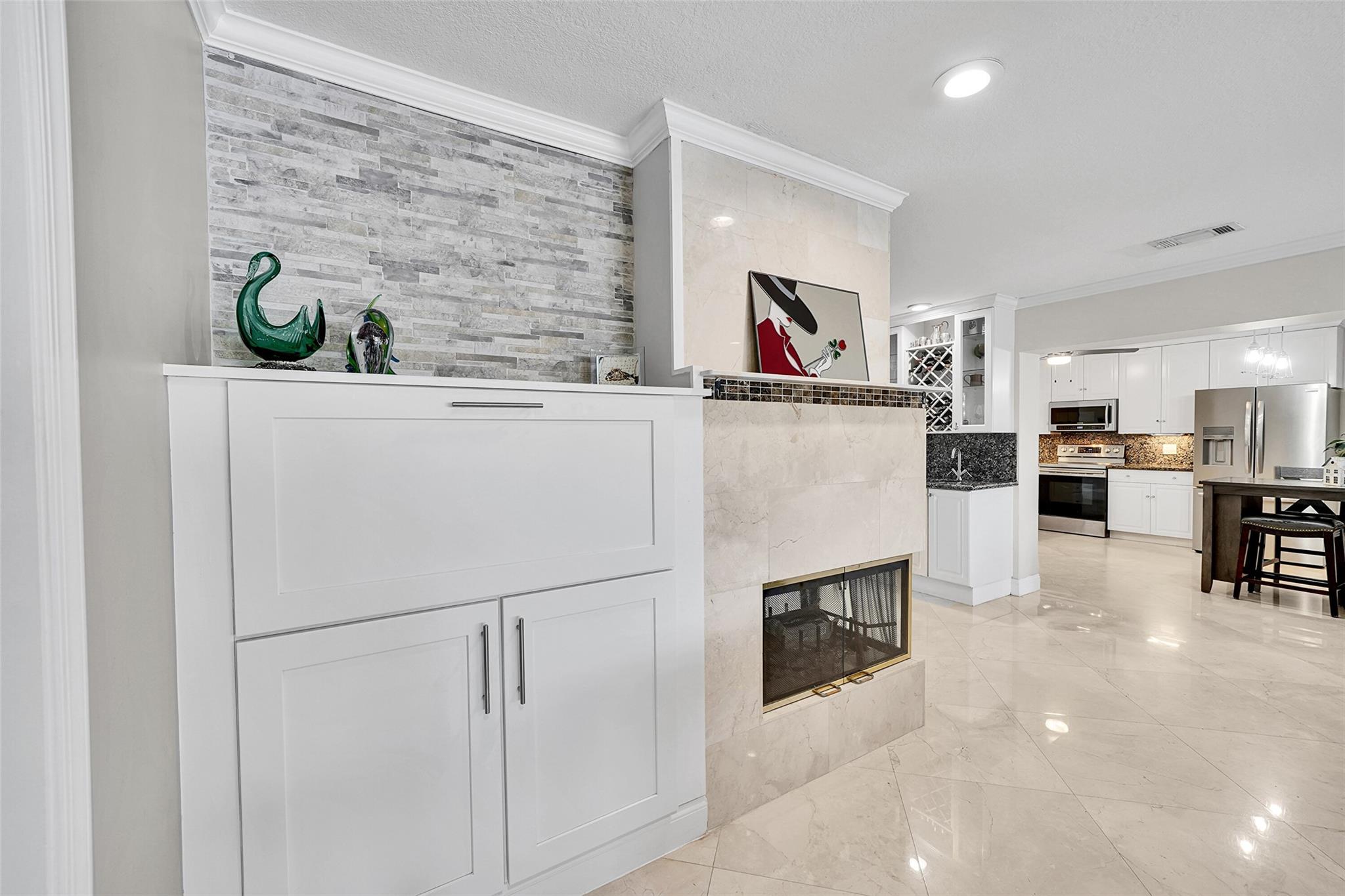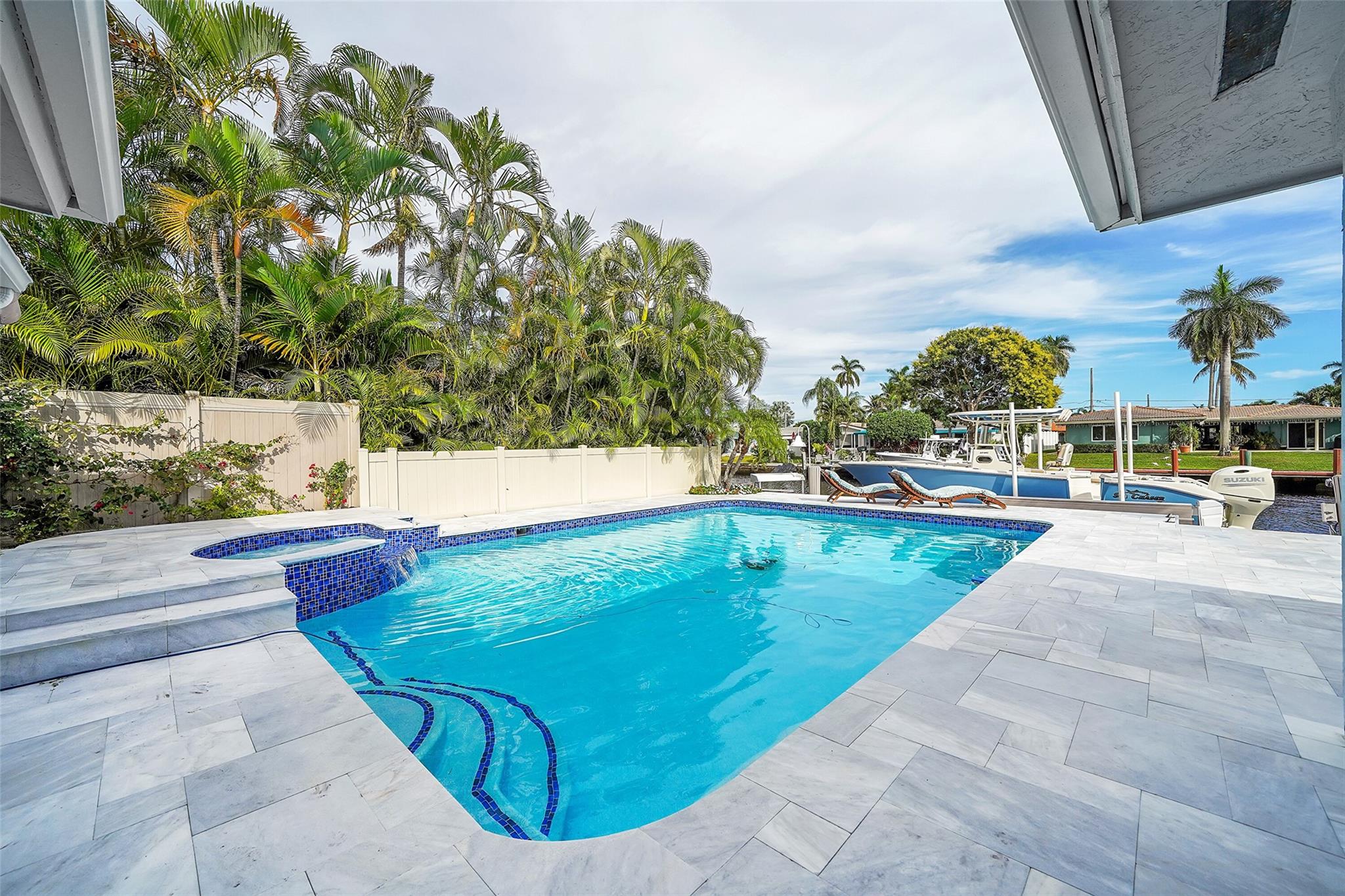 Stunning Waterfront Oasis nestled on a quiet cul-de-sac in the sought-after Garden Isles community, this move-in-ready 3-bed, 2-bath home w/ a 2-car garage is a true gem. Open-concept design with style & functionality in mind. Luxury, comfort & outdoor living. Elegant marble flooring & beautifully crafted marble fireplace. Modern, updated kitchen w/granite countertops, custom cabinetry & wet bar. Plantation shutters in bedrooms & custom blinds throughout the home. Spacious laundry room. Newly updated pool deck, a heated pool, & a spa, set in a large, private backyard perfect for relaxation & entertaining.