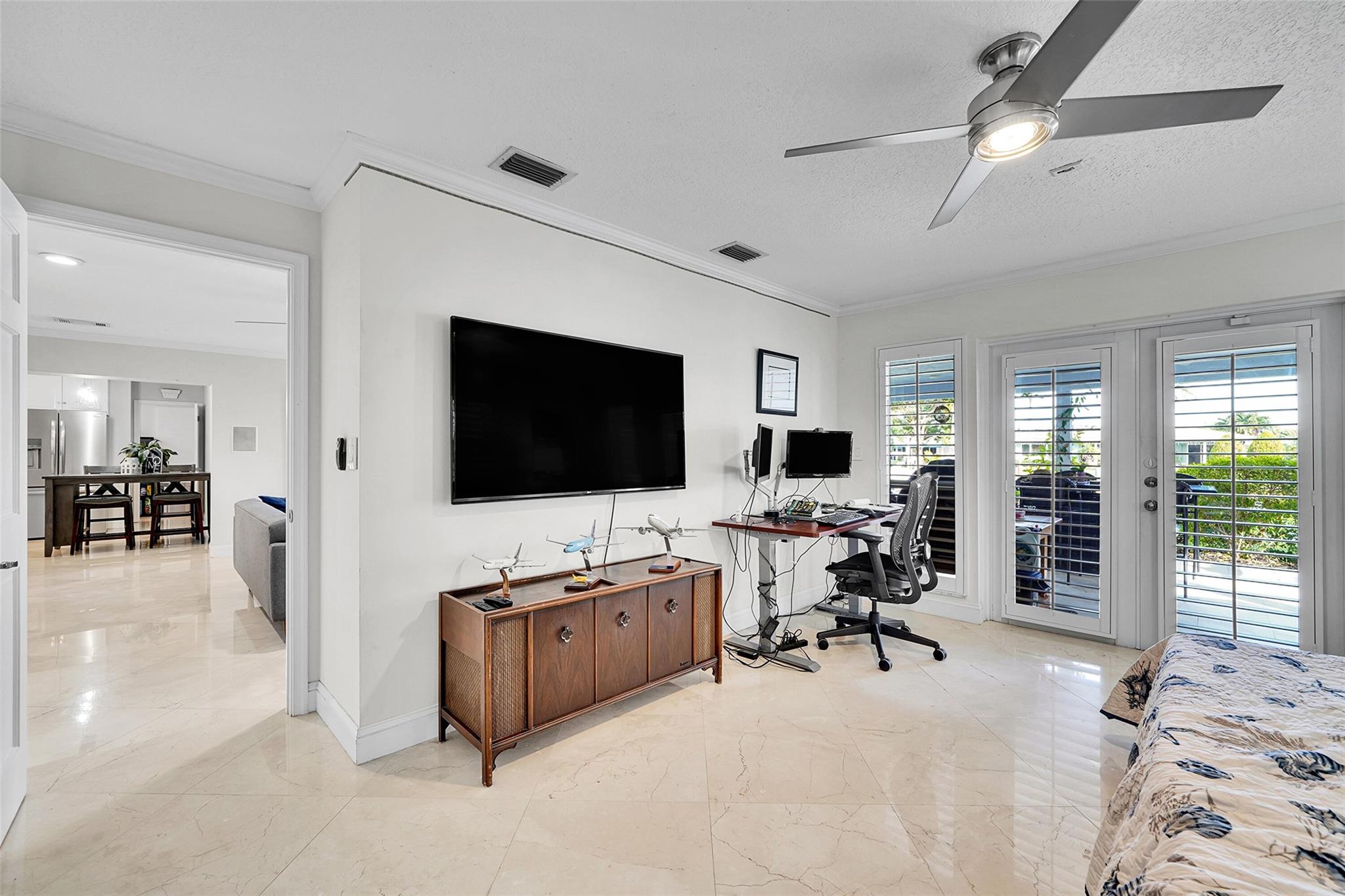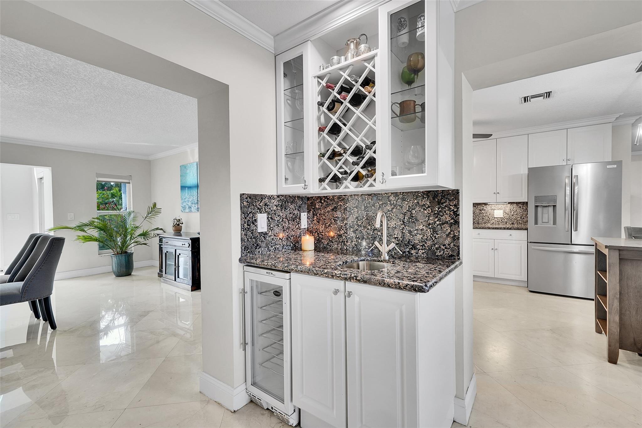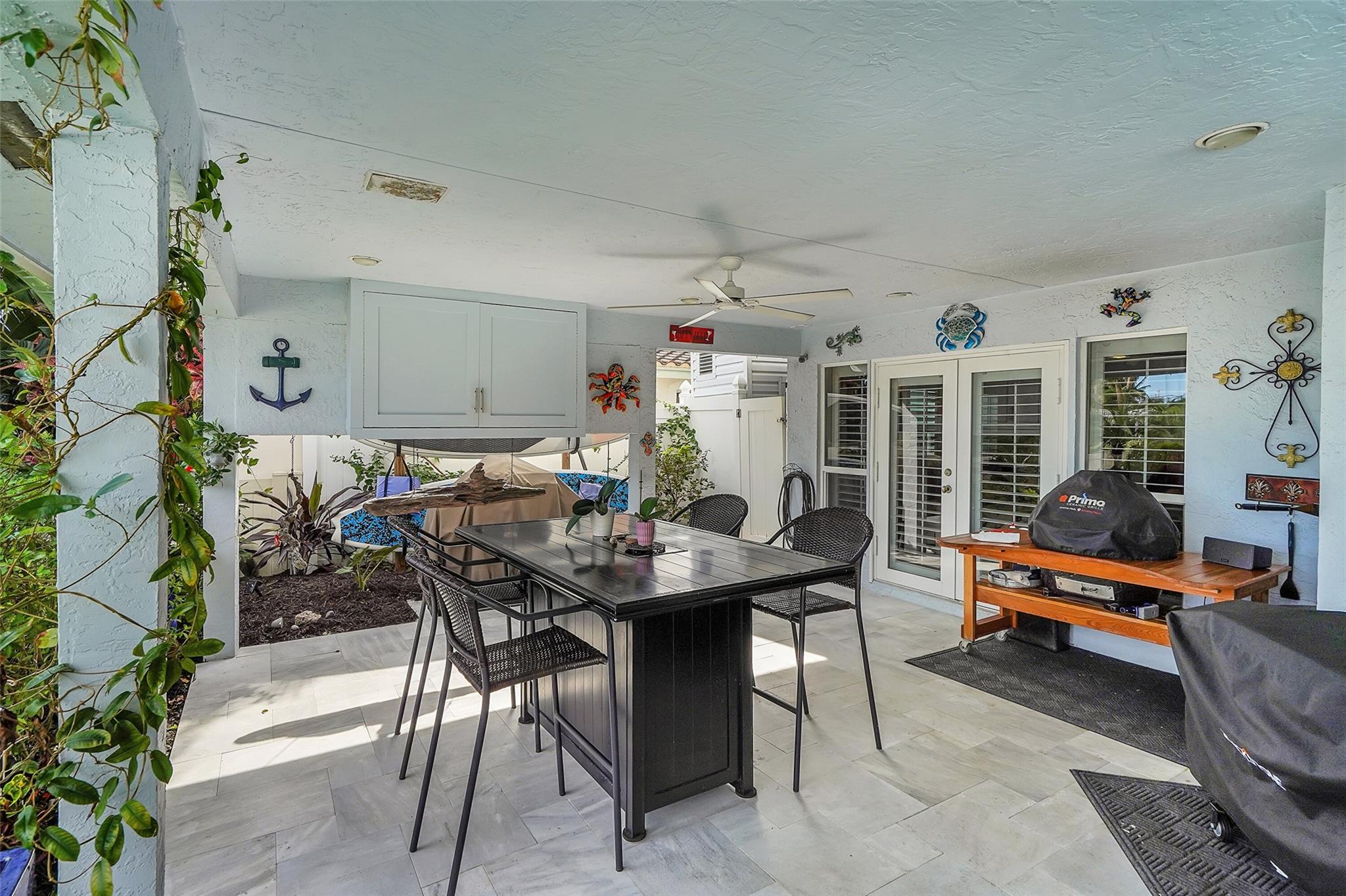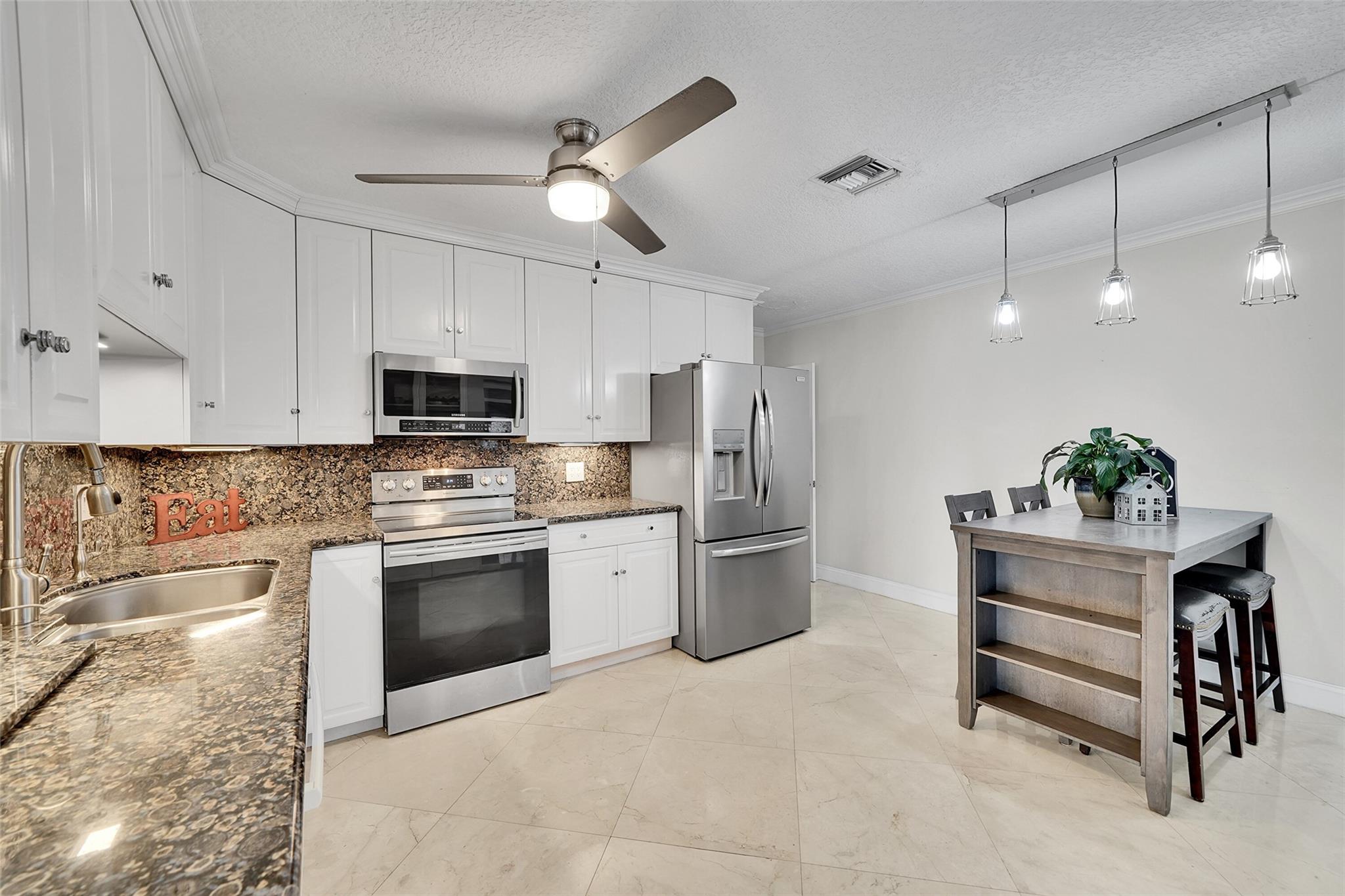 Stunning Waterfront Oasis nestled on a quiet cul-de-sac in the sought-after Garden Isles community, this move-in-ready 3-bed, 2-bath home w/ a 2-car garage is a true gem. Open-concept design with style & functionality in mind. Luxury, comfort & outdoor living. Elegant marble flooring & beautifully crafted marble fireplace. Modern, updated kitchen w/granite countertops, custom cabinetry & wet bar. Plantation shutters in bedrooms & custom blinds throughout the home. Spacious laundry room. Newly updated pool deck, a heated pool, & a spa, set in a large, private backyard perfect for relaxation & entertaining.