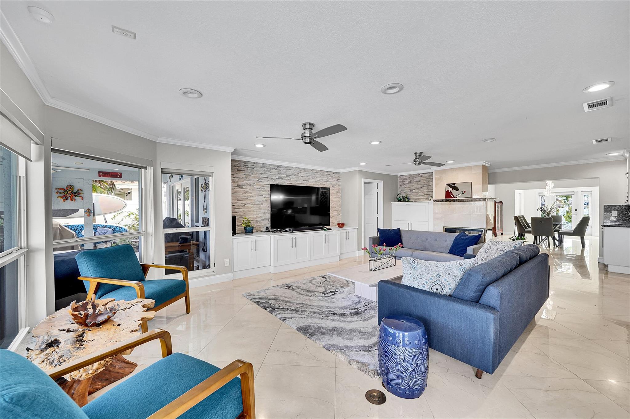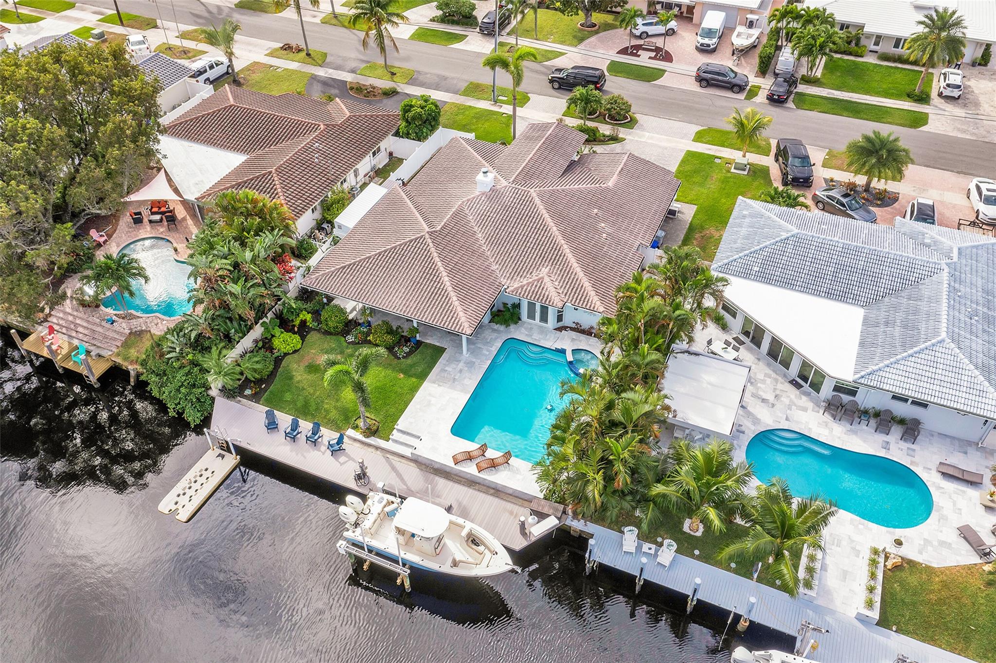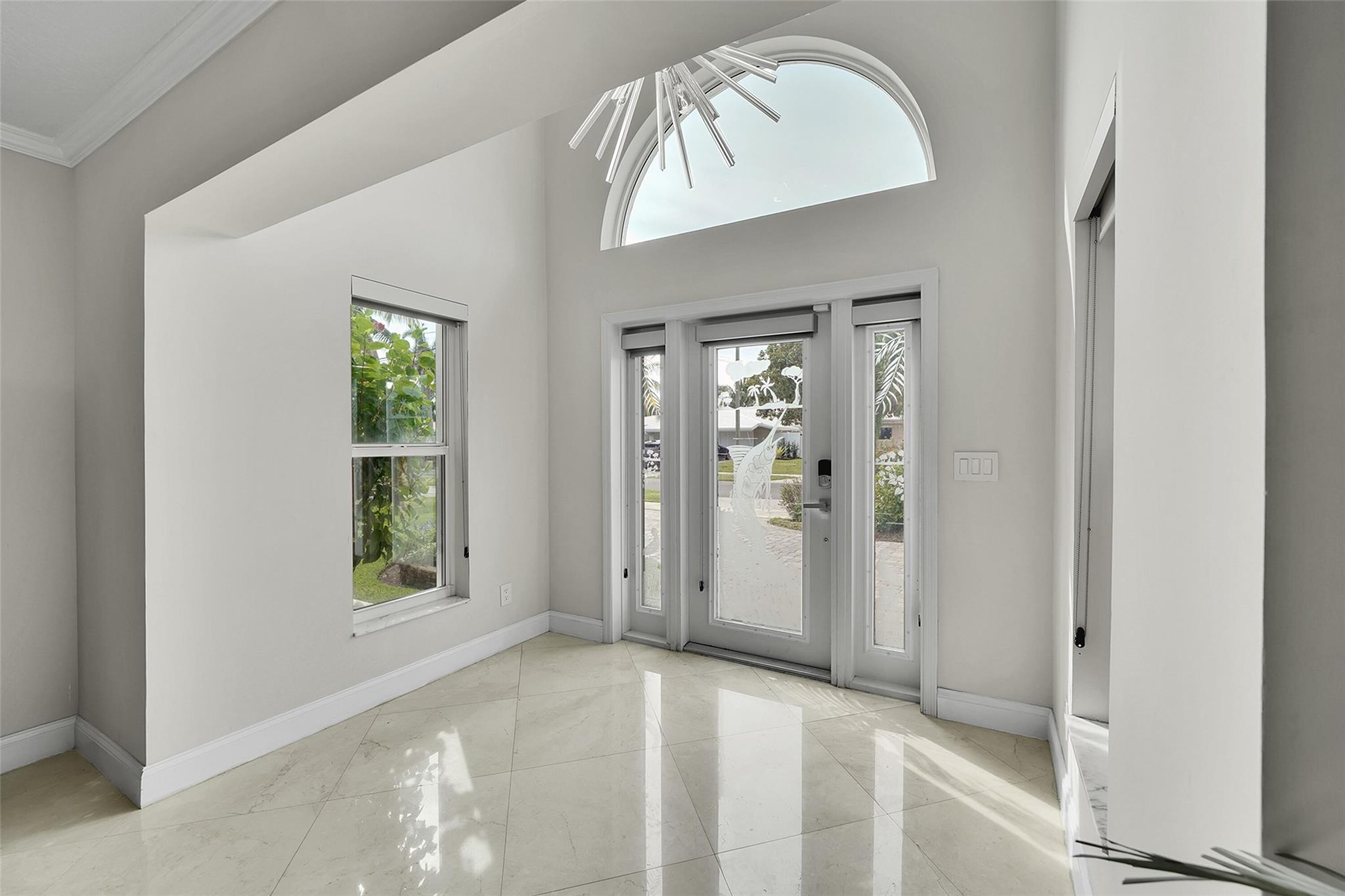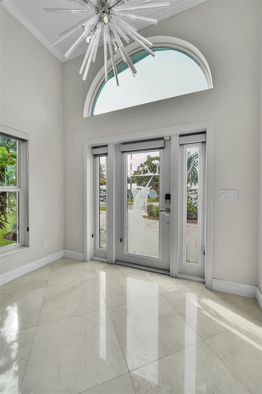 Hurricane-rated windows. Circular driveway. A waterfront retreat, elegant & functional!