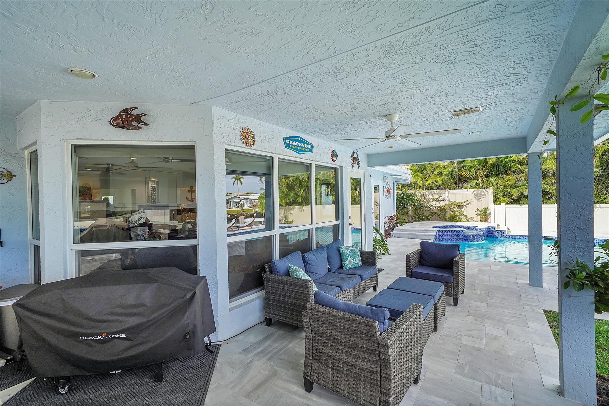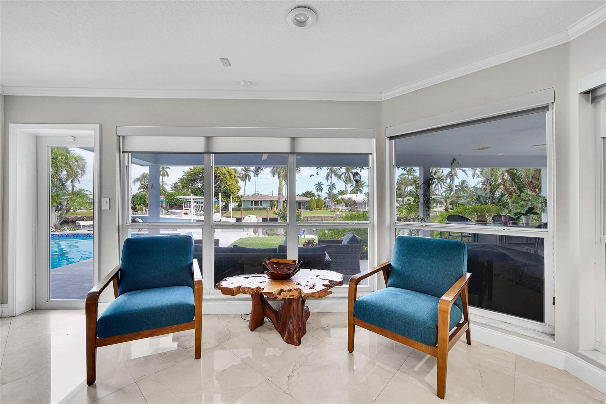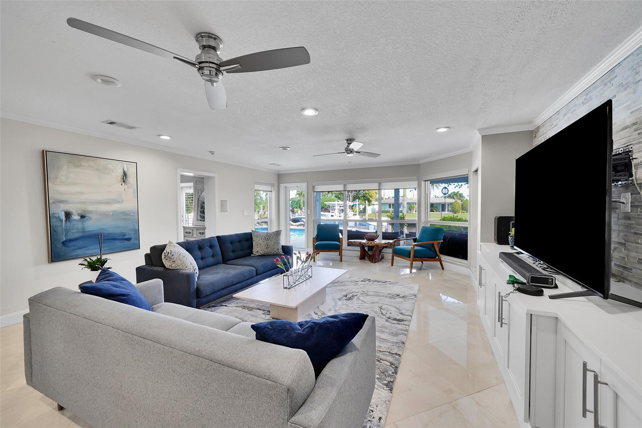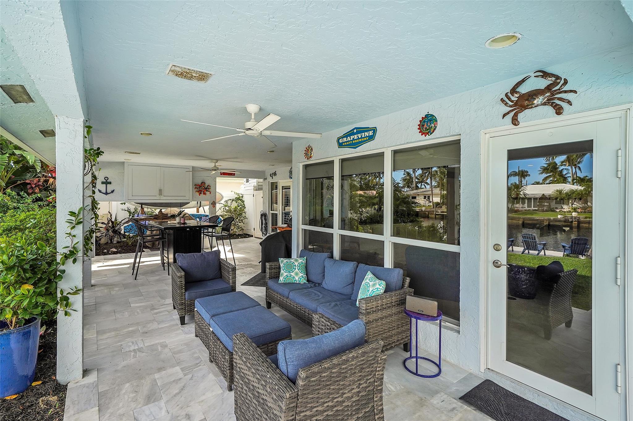 Hurricane-rated windows. Circular driveway. A waterfront retreat, elegant & functional!