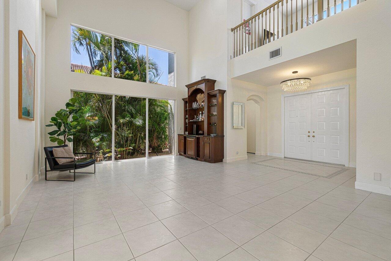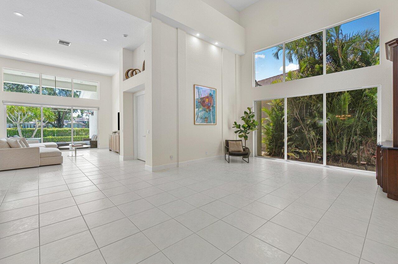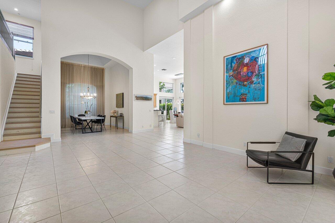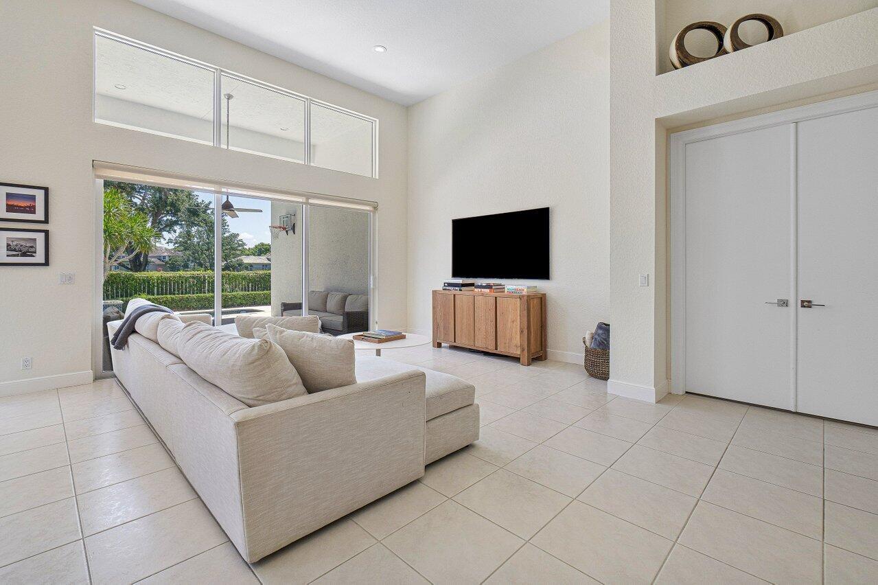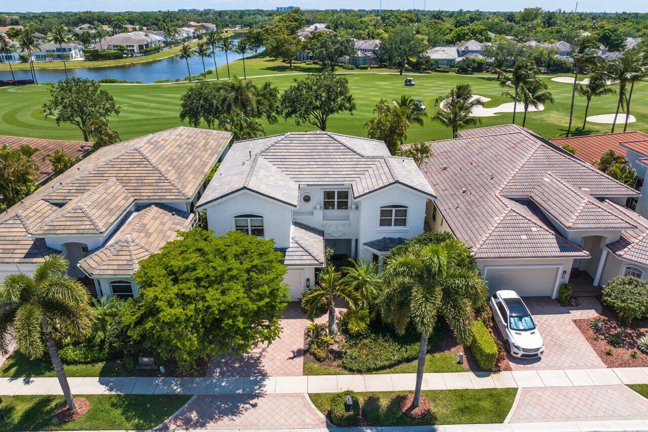 GOLF & LAKE VIEWS! Bring all offers! Feel right at home in this light and airy Cortina model at Briarcliff in prestigious Woodfield Country Club. Be greeted by soaring ceilings and natural light flooding the spacious open concept living spaces. Home is situated on prime southern exposure lot with golf course and lake views. Primary suite downstairs along with 4th bedroom, currently an office. 2 additional bedrooms with en suite baths are upstairs along with large loft. Additional upgrades include new flat title roof, majority of impact windows & doors, hard wood white oak floors in primary & upstairs.Woodfield Country club is a mandatory membership community. Centrally located in Boca Raton and zoned for all A rated schools, quick drive to all private schools.