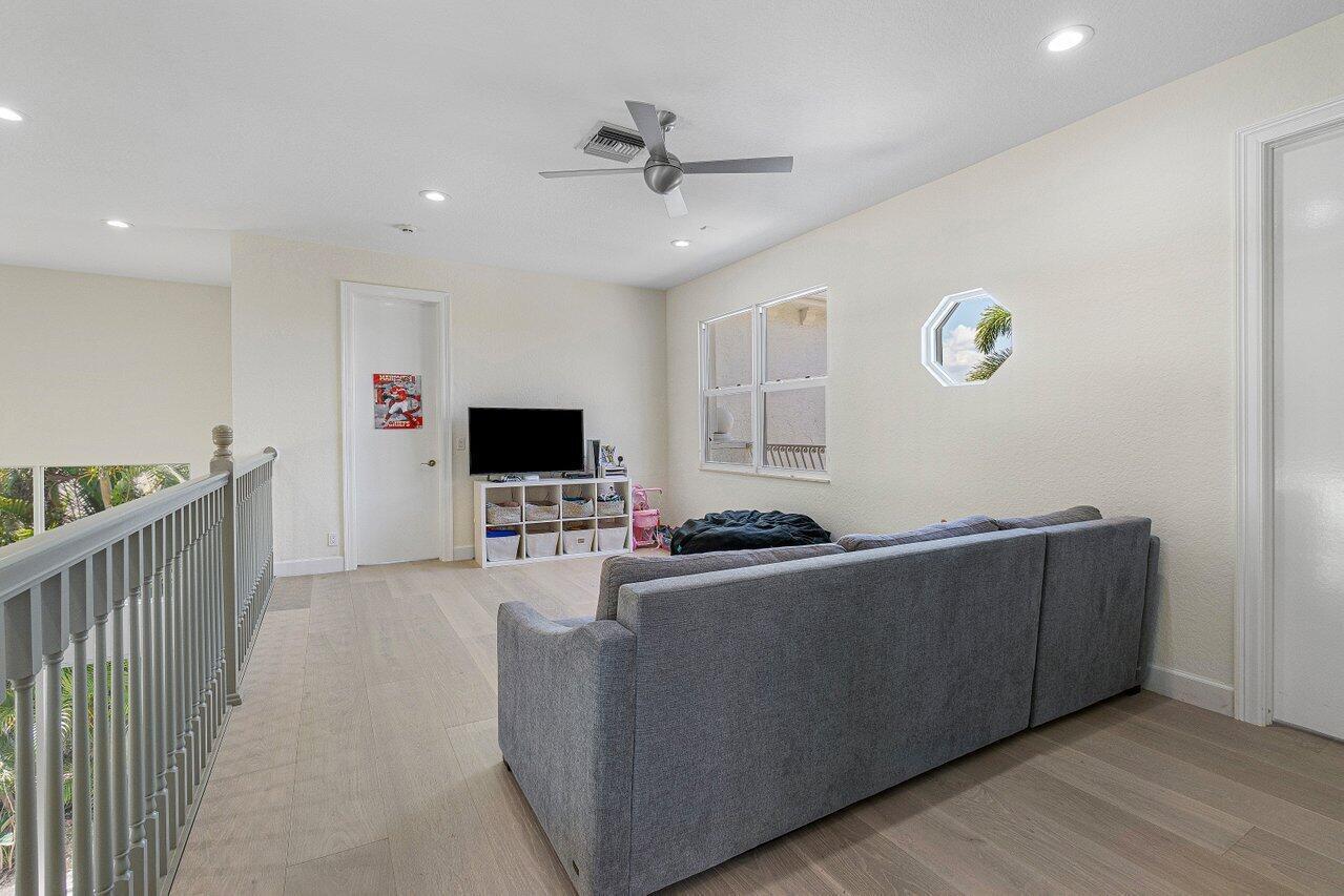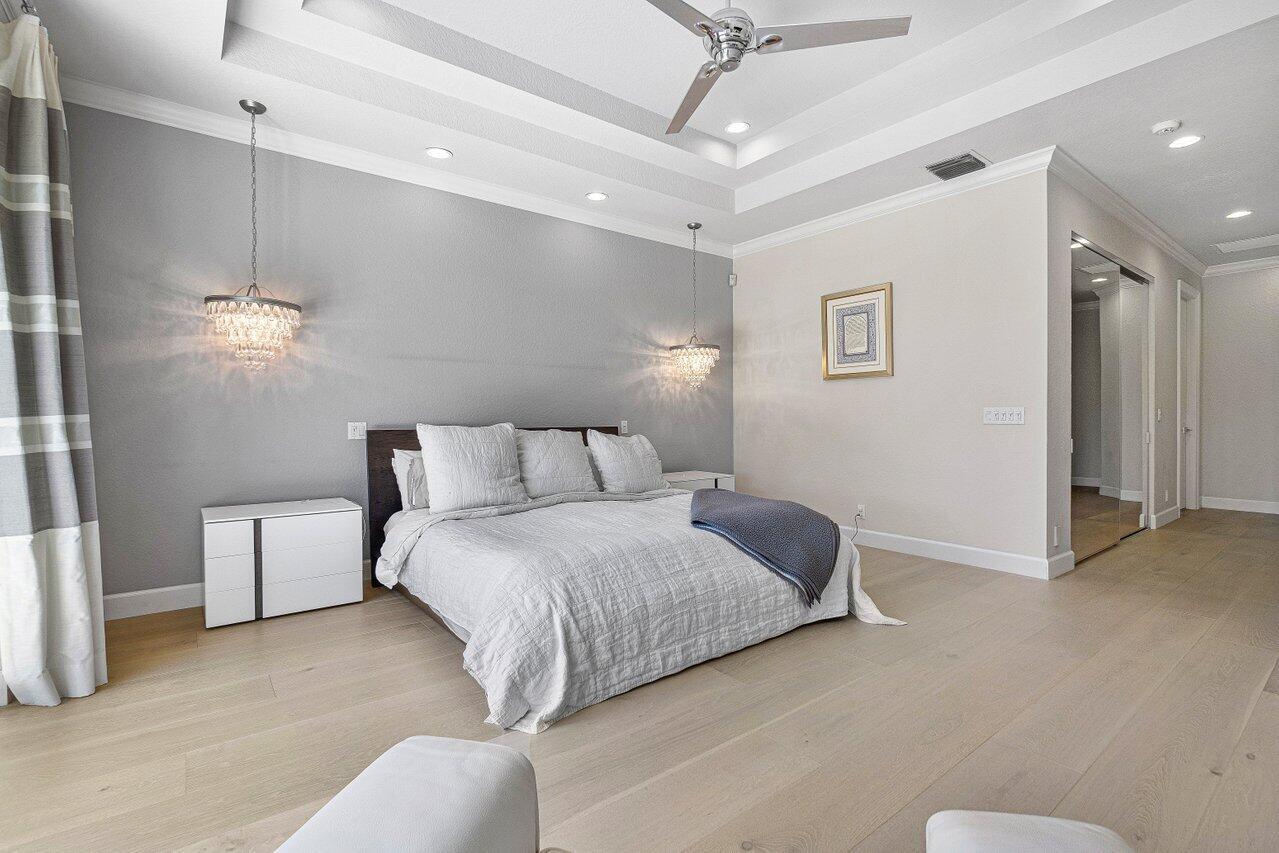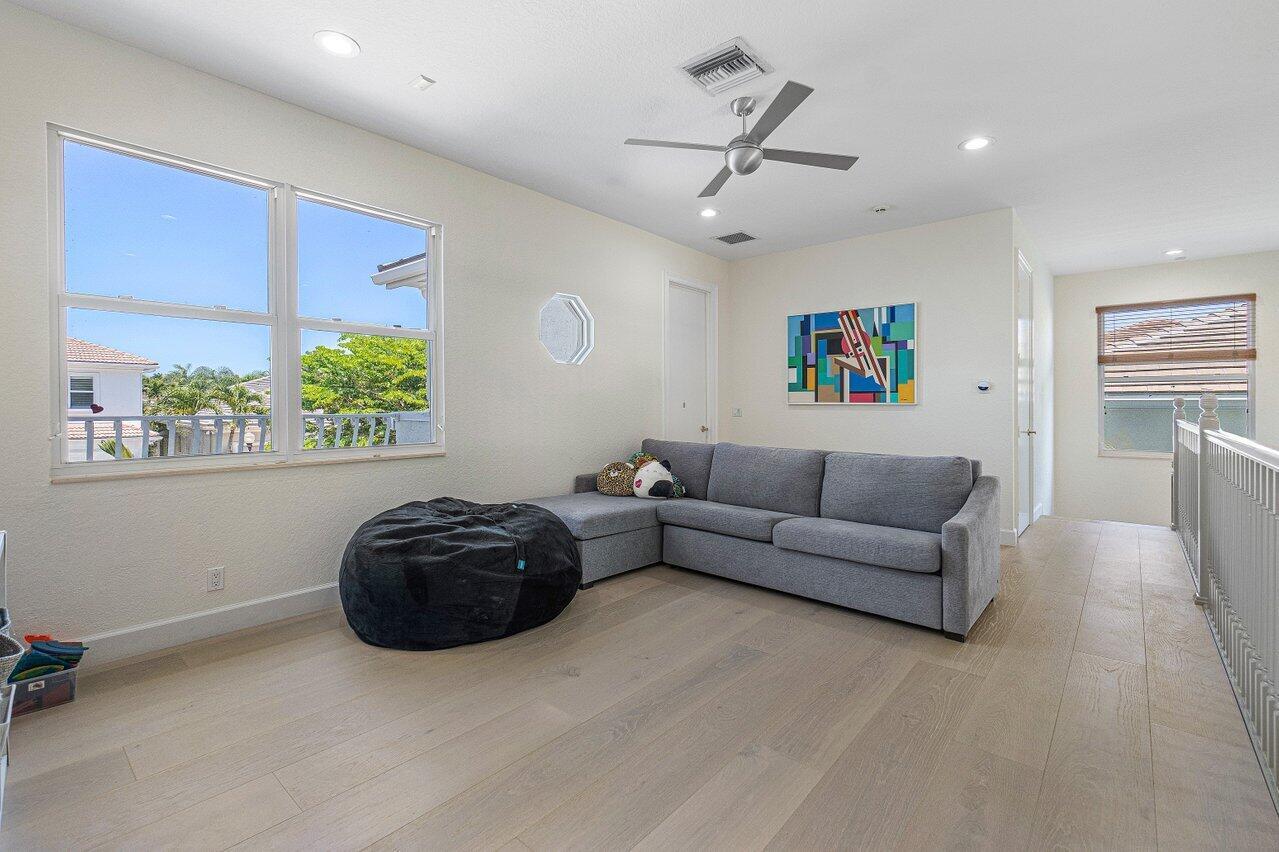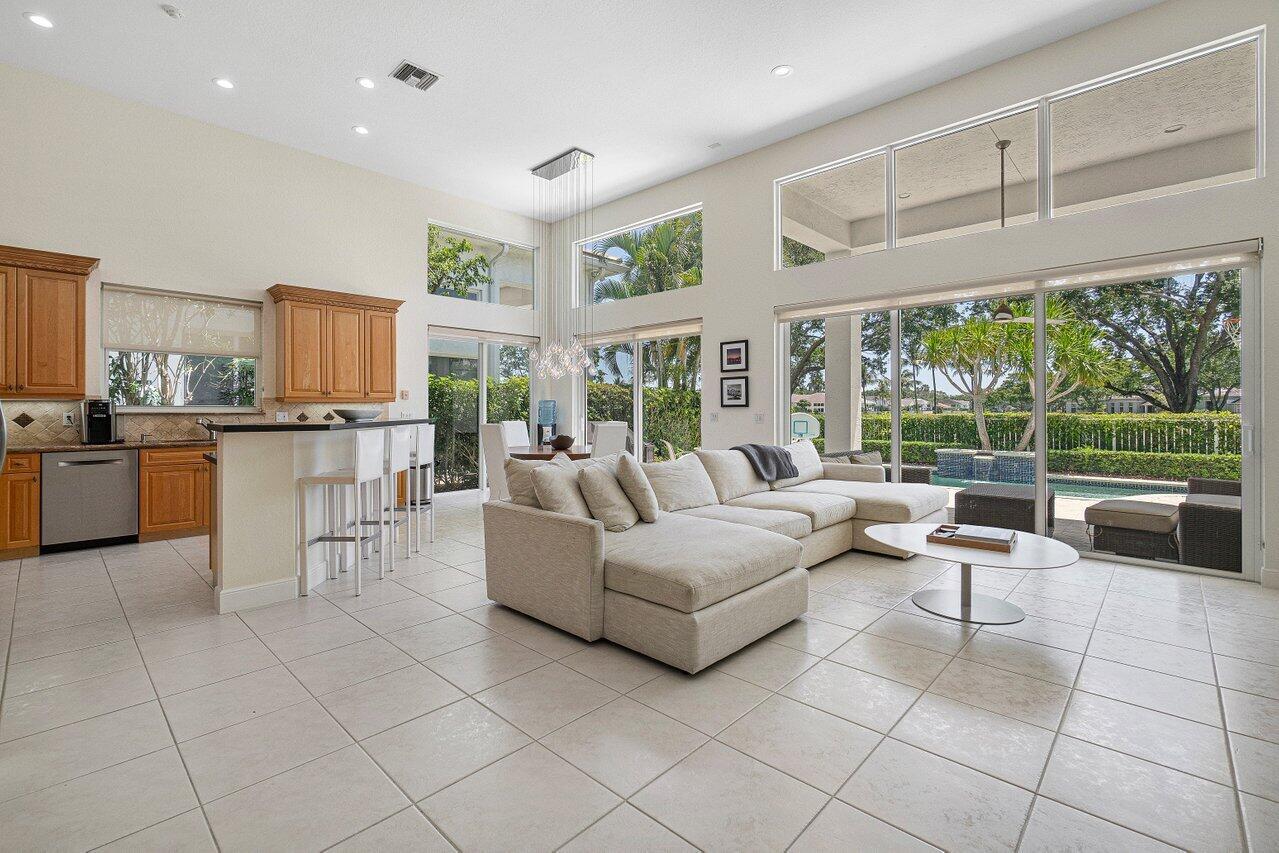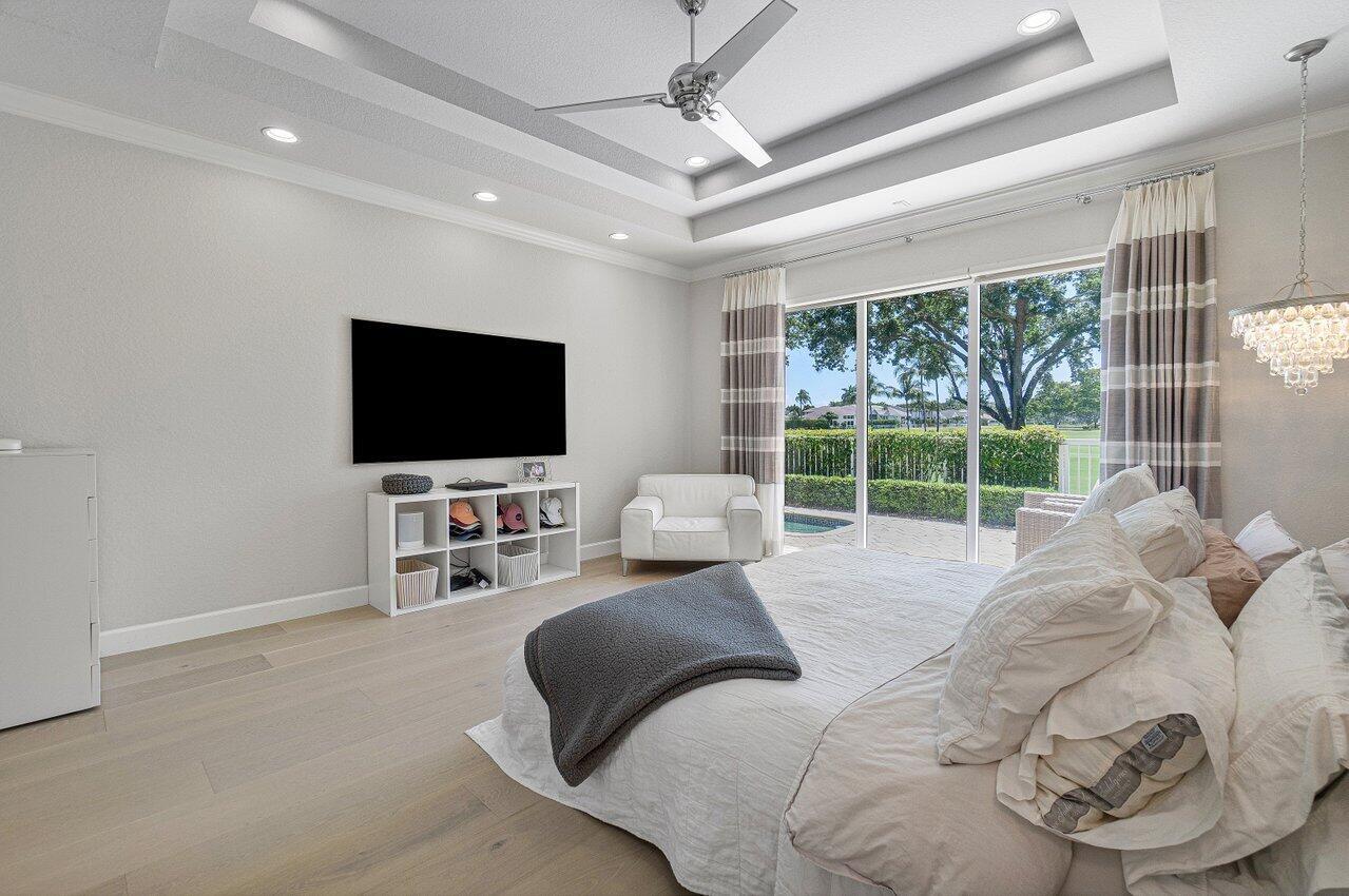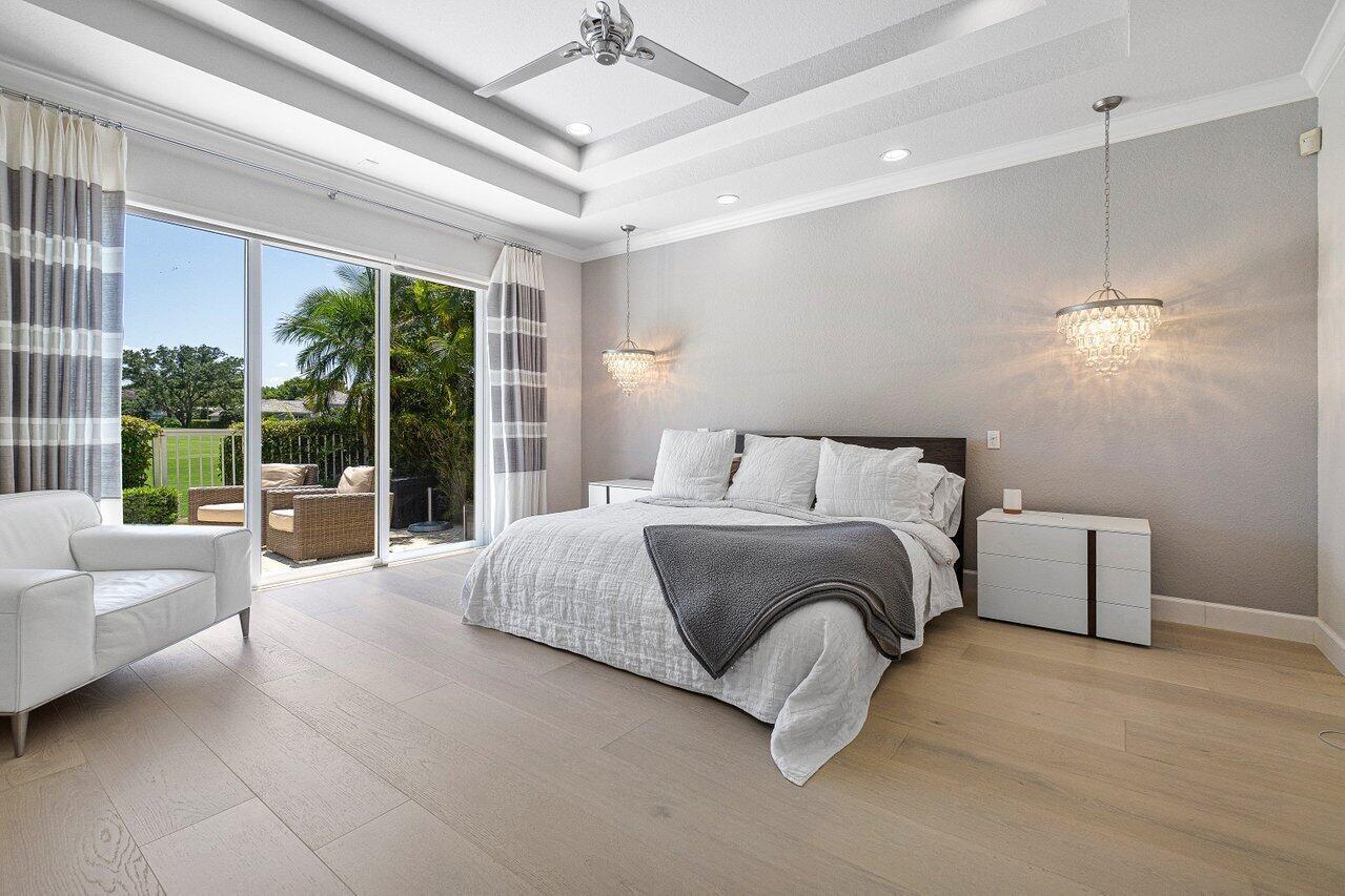 GOLF & LAKE VIEWS! Bring all offers! Feel right at home in this light and airy Cortina model at Briarcliff in prestigious Woodfield Country Club. Be greeted by soaring ceilings and natural light flooding the spacious open concept living spaces. Home is situated on prime southern exposure lot with golf course and lake views. Primary suite downstairs along with 4th bedroom, currently an office. 2 additional bedrooms with en suite baths are upstairs along with large loft. Additional upgrades include new flat title roof, majority of impact windows & doors, hard wood white oak floors in primary & upstairs.Woodfield Country club is a mandatory membership community. Centrally located in Boca Raton and zoned for all A rated schools, quick drive to all private schools.