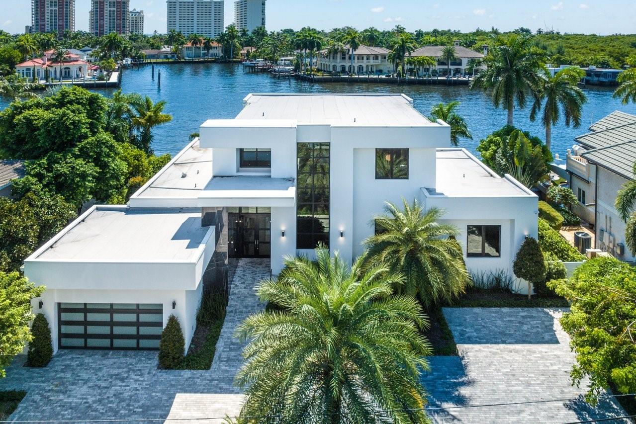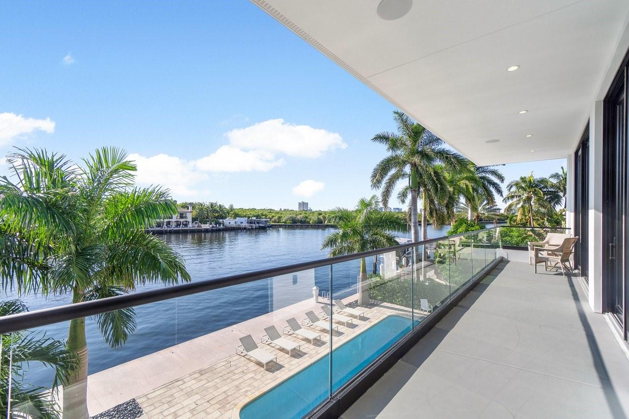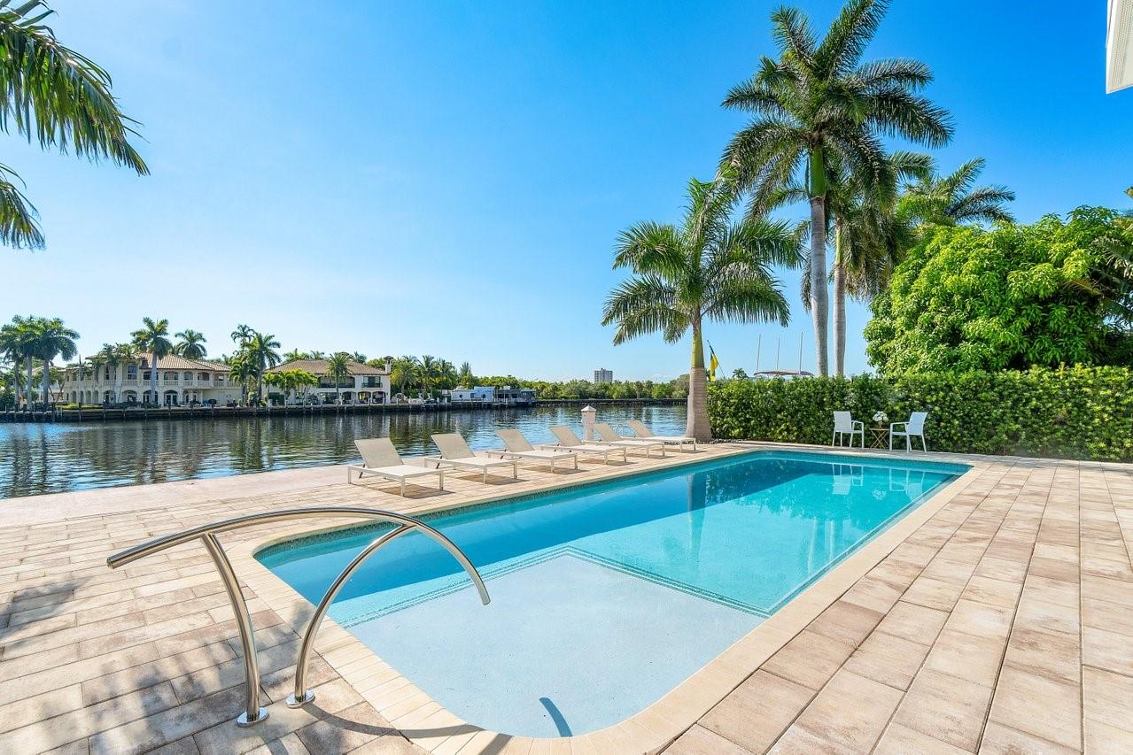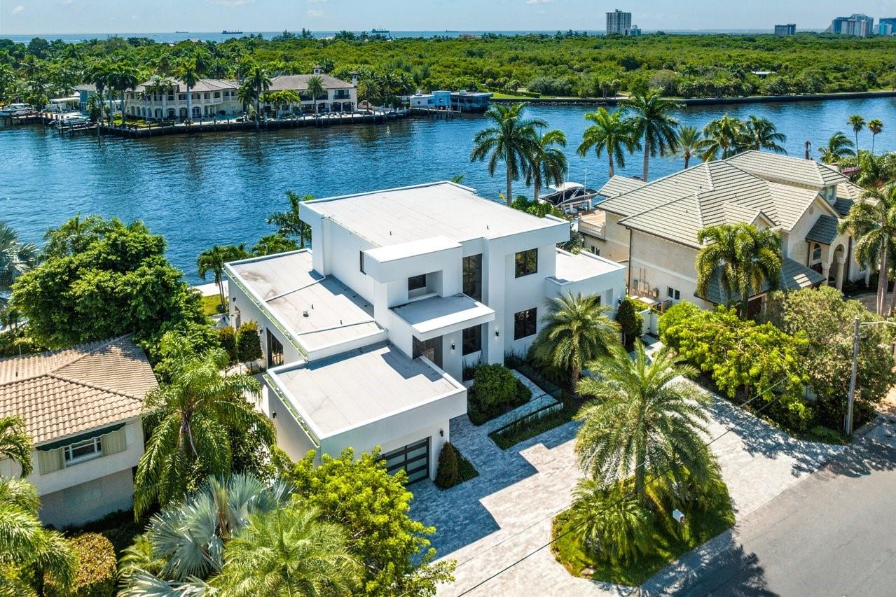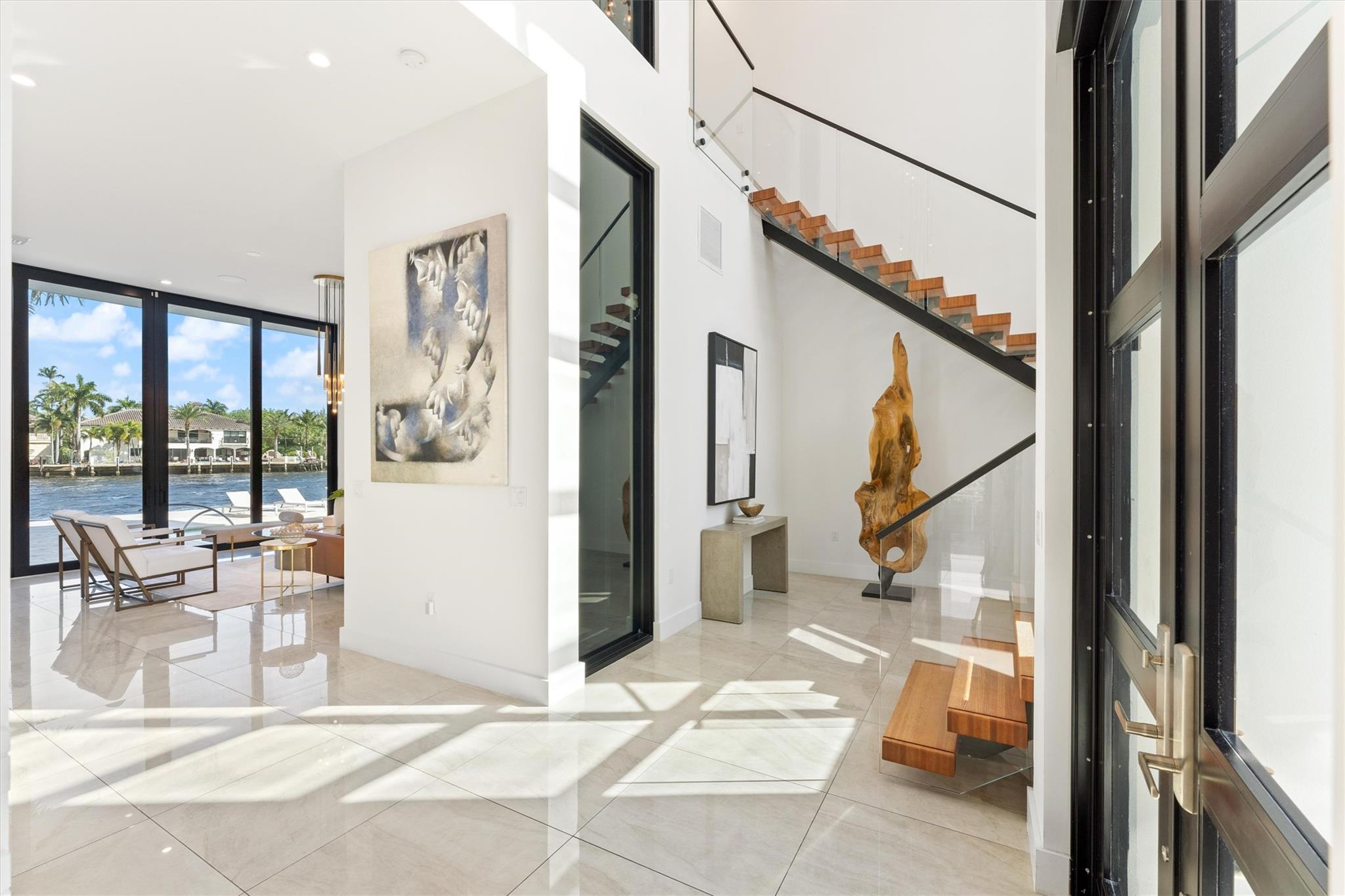 Introducing an Incomparable Intracoastal Masterpiece; this home promises open-concept luxury living. With 5 bedrooms including 2 Primary Suites, 4.5 bathrooms, and Handicap accessibility features. From the stone-clad entrance to the dramatic floating staircase and glass elevator, you enter into a grand open floor plan with volume ceilings. Expansive windows offer stunning water and park views, blending indoor and outdoor living. Inside, enjoy a gourmet kitchen with Miele and Bosch appliances, luxurious bathrooms including a matching outdoor shower. With four Trane air conditioners, comfort is ensured year-round. Large Heated Pool for laps or lounging. 100 Foot Dock, Deep Water, Ocean Access. Smart Home Ready and Sonos throughout. Don’t miss calling Coral Ridge’s best street home!