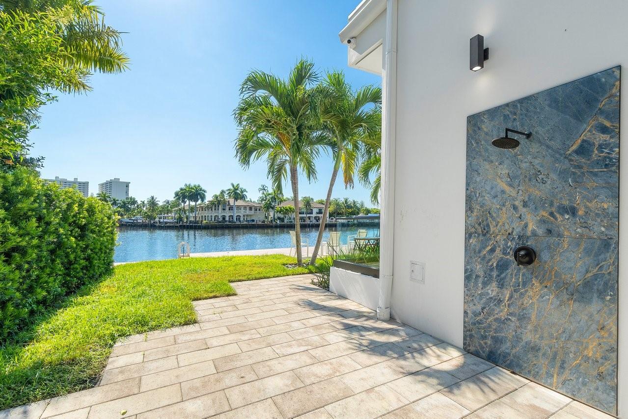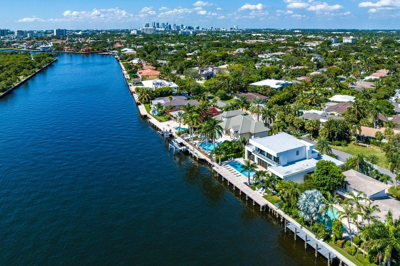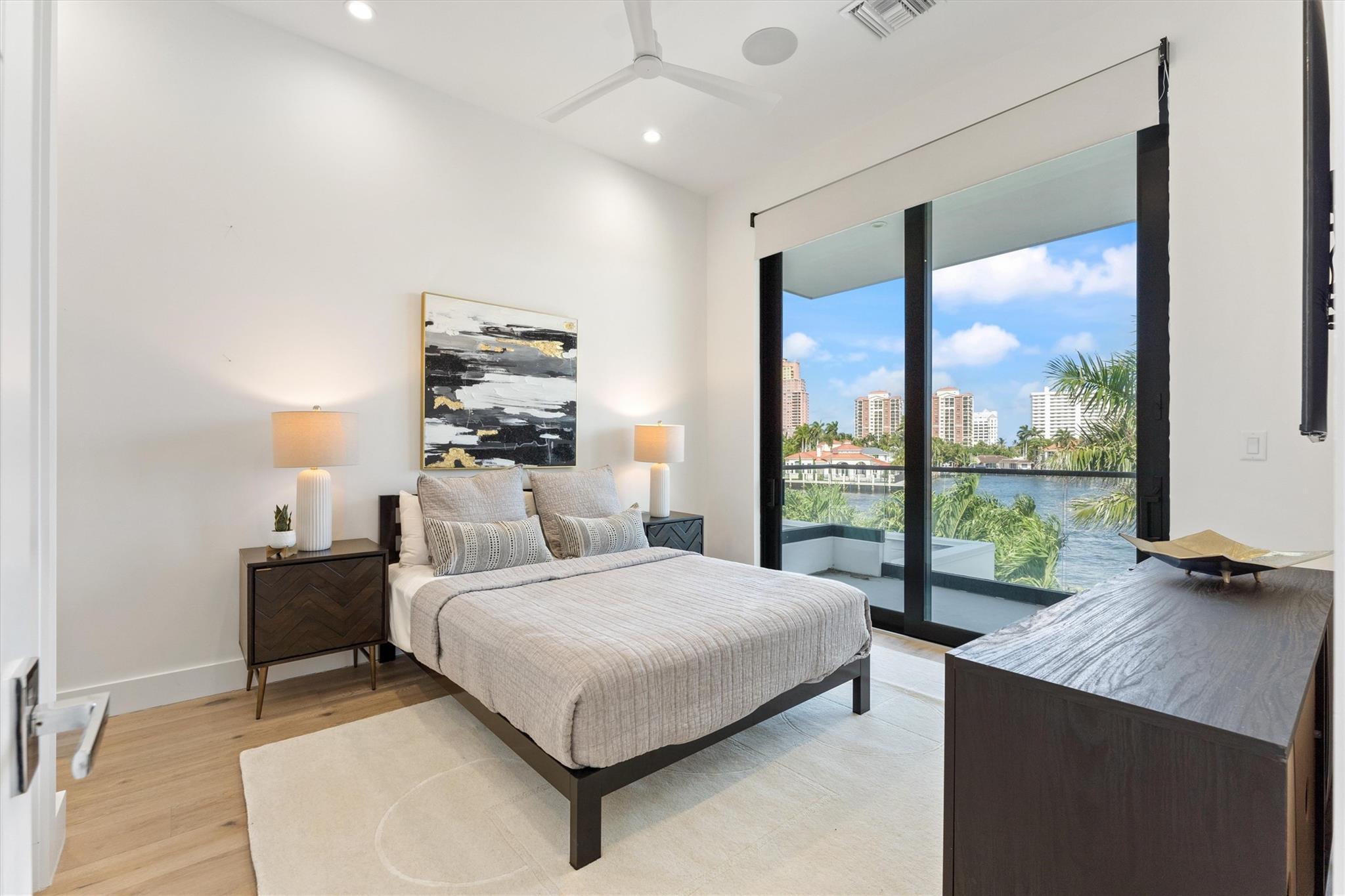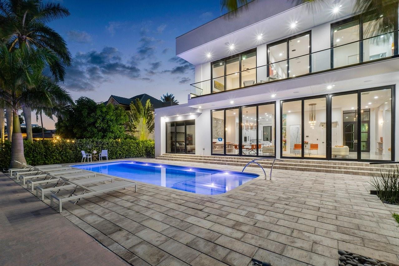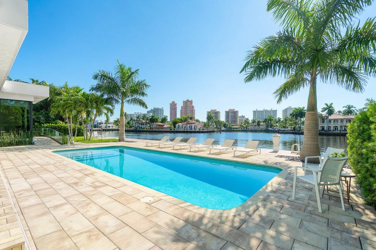 Introducing an Incomparable Intracoastal Masterpiece; this home promises open-concept luxury living. With 5 bedrooms including 2 Primary Suites, 4.5 bathrooms, and Handicap accessibility features. From the stone-clad entrance to the dramatic floating staircase and glass elevator, you enter into a grand open floor plan with volume ceilings. Expansive windows offer stunning water and park views, blending indoor and outdoor living. Inside, enjoy a gourmet kitchen with Miele and Bosch appliances, luxurious bathrooms including a matching outdoor shower. With four Trane air conditioners, comfort is ensured year-round. Large Heated Pool for laps or lounging. 100 Foot Dock, Deep Water, Ocean Access. Smart Home Ready and Sonos throughout. Don’t miss calling Coral Ridge’s best street home!