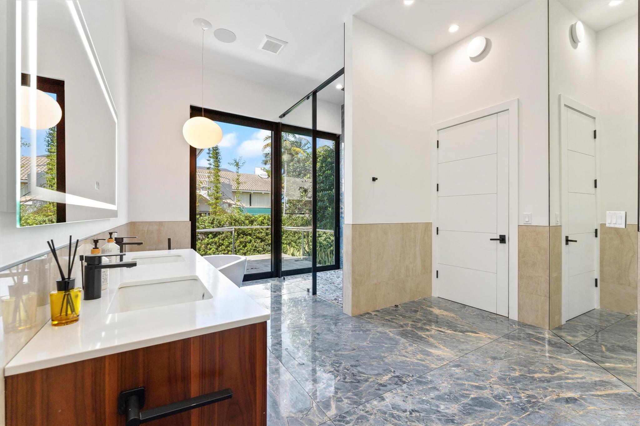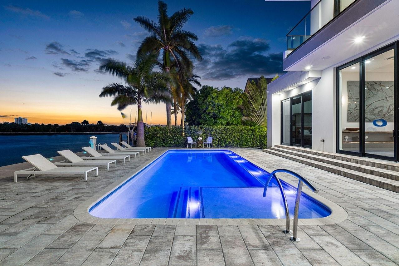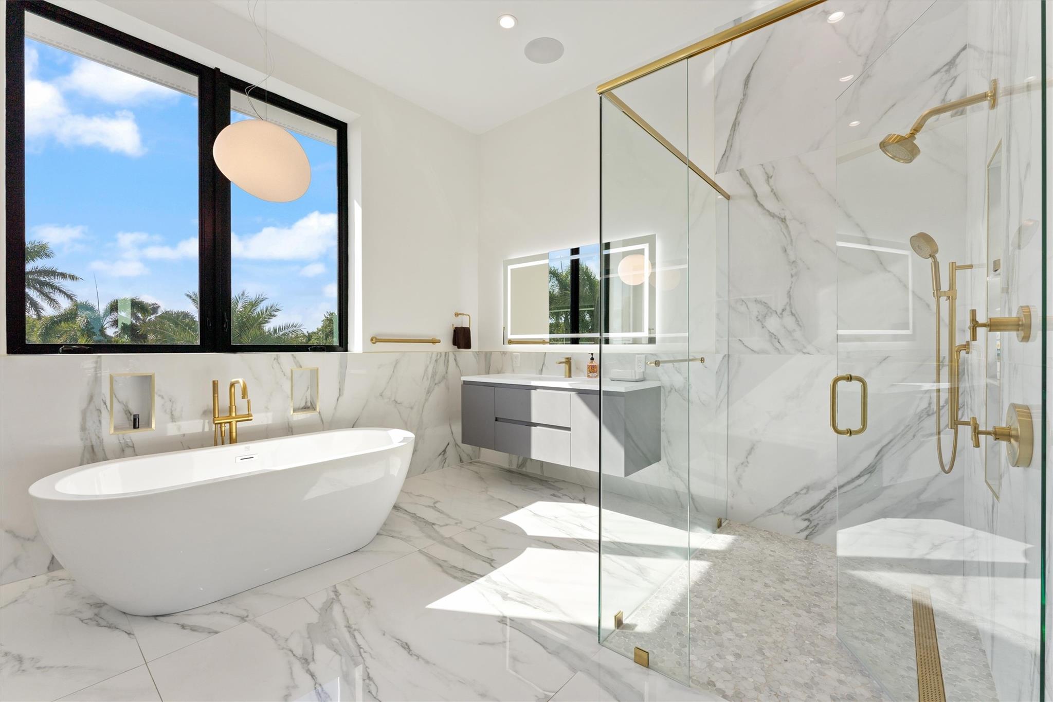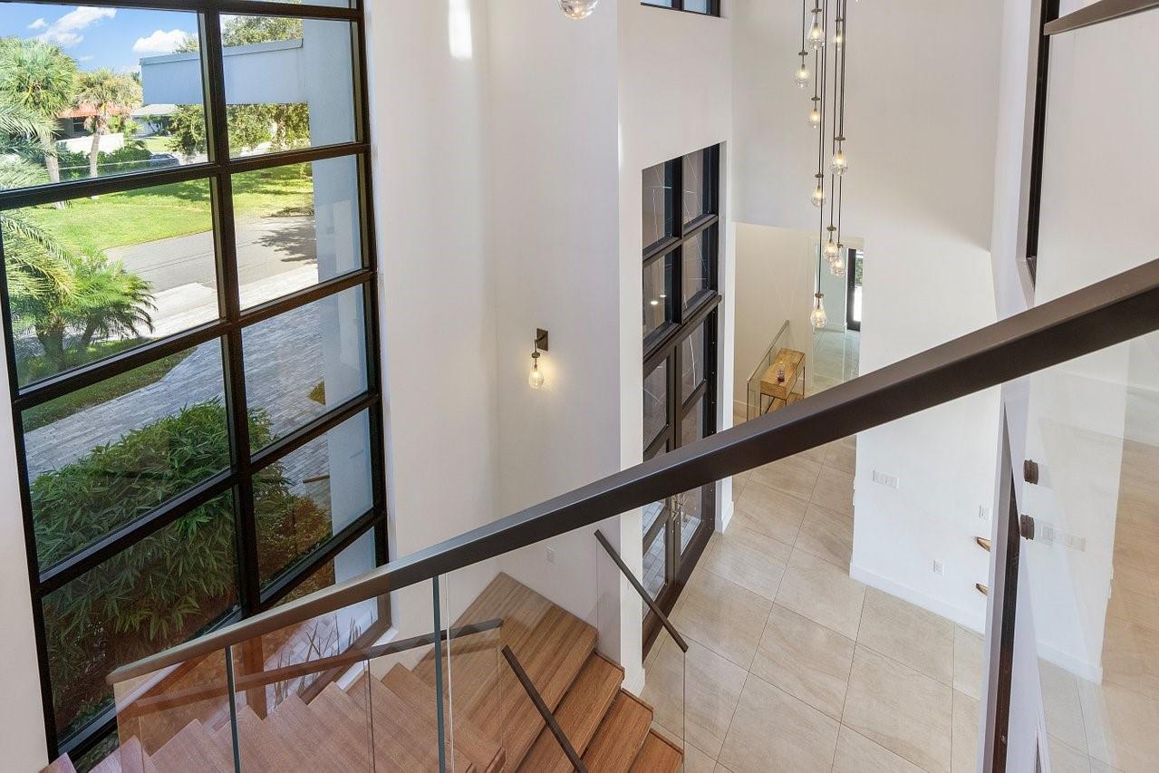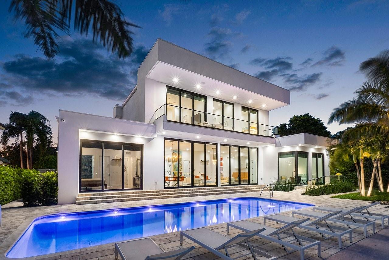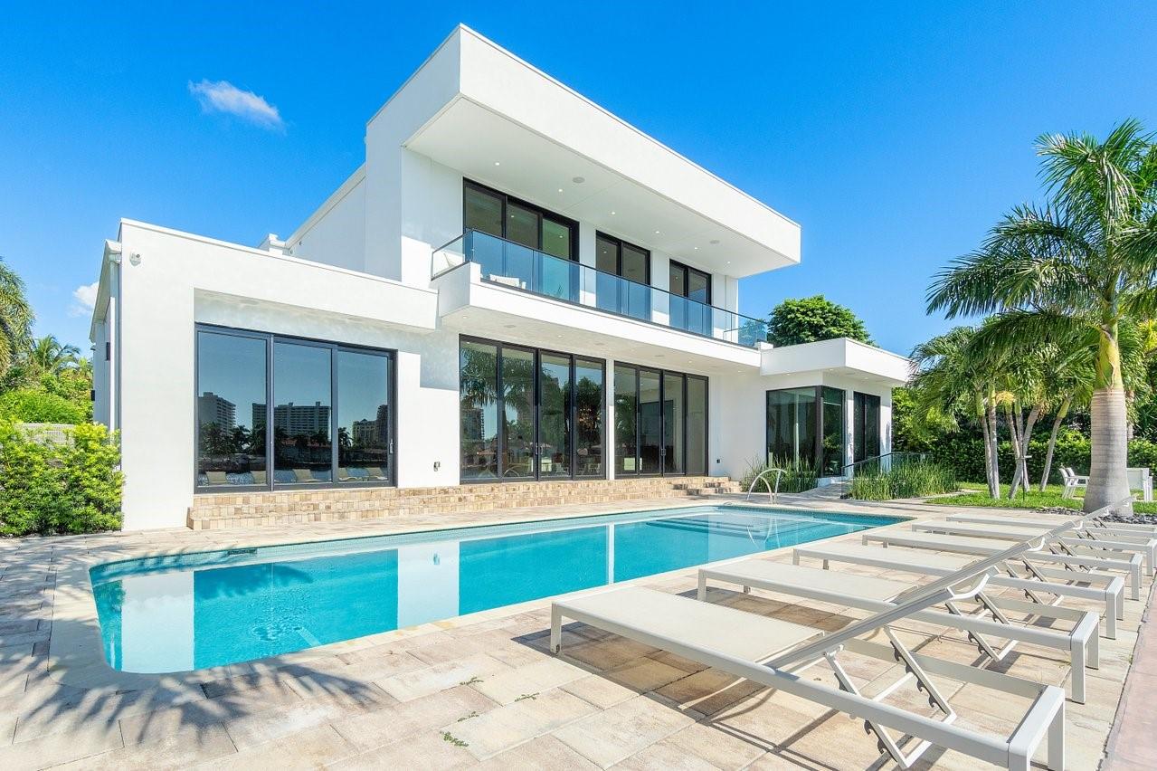 Introducing an Incomparable Intracoastal Masterpiece; this home promises open-concept luxury living. With 5 bedrooms including 2 Primary Suites, 4.5 bathrooms, and Handicap accessibility features. From the stone-clad entrance to the dramatic floating staircase and glass elevator, you enter into a grand open floor plan with volume ceilings. Expansive windows offer stunning water and park views, blending indoor and outdoor living. Inside, enjoy a gourmet kitchen with Miele and Bosch appliances, luxurious bathrooms including a matching outdoor shower. With four Trane air conditioners, comfort is ensured year-round. Large Heated Pool for laps or lounging. 100 Foot Dock, Deep Water, Ocean Access. Smart Home Ready and Sonos throughout. Don’t miss calling Coral Ridge’s best street home!