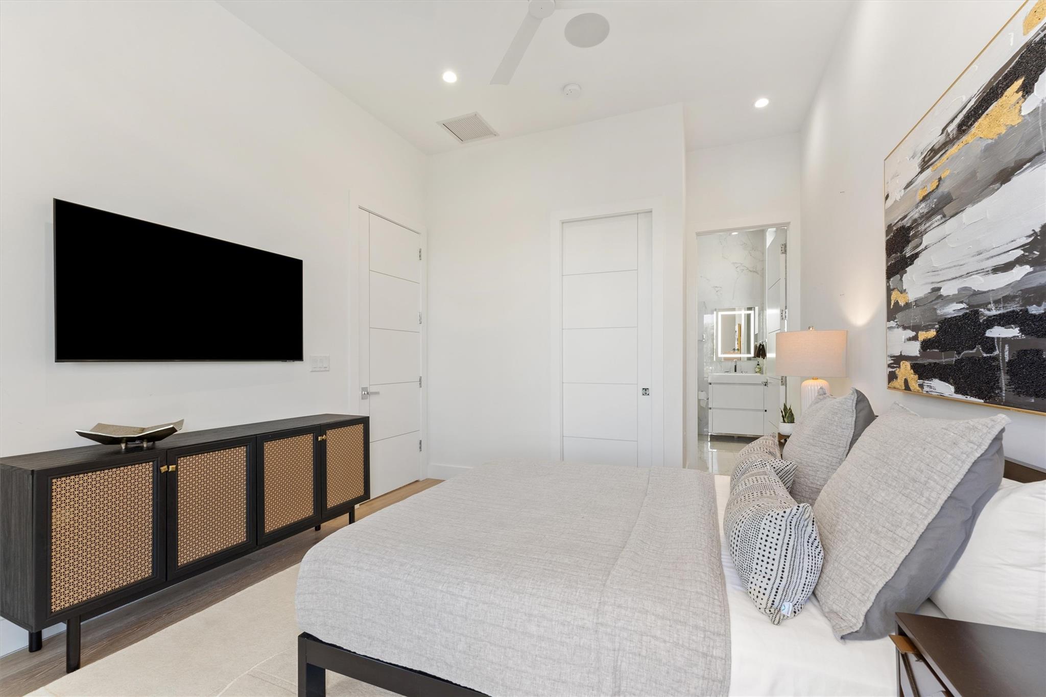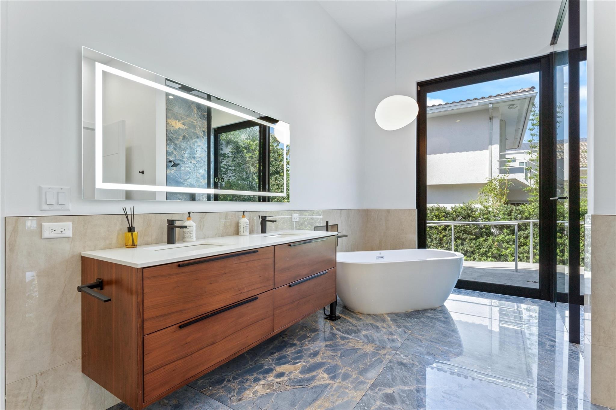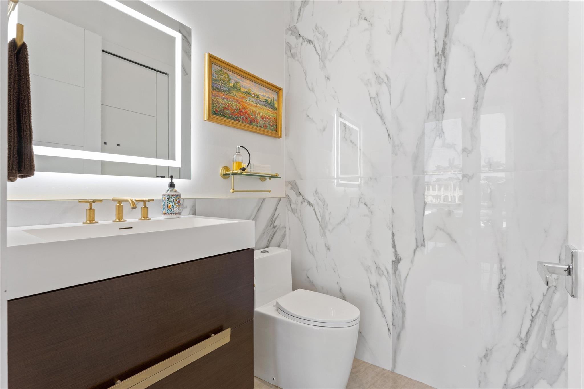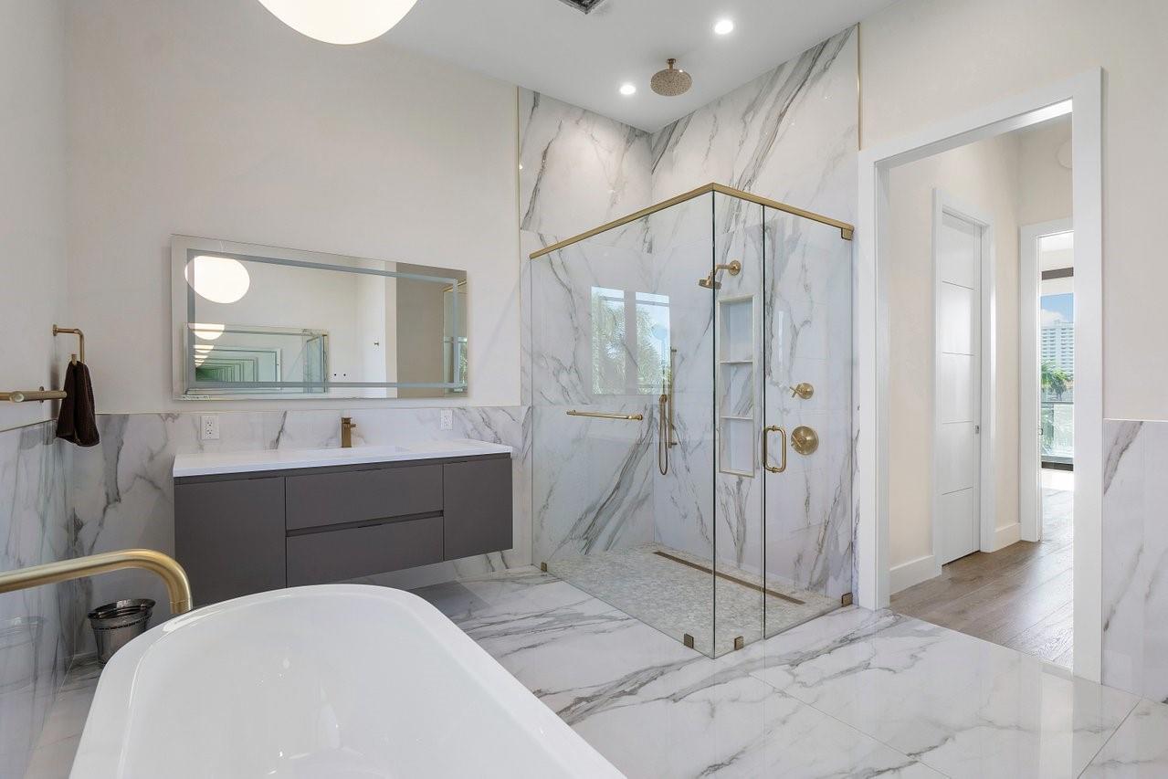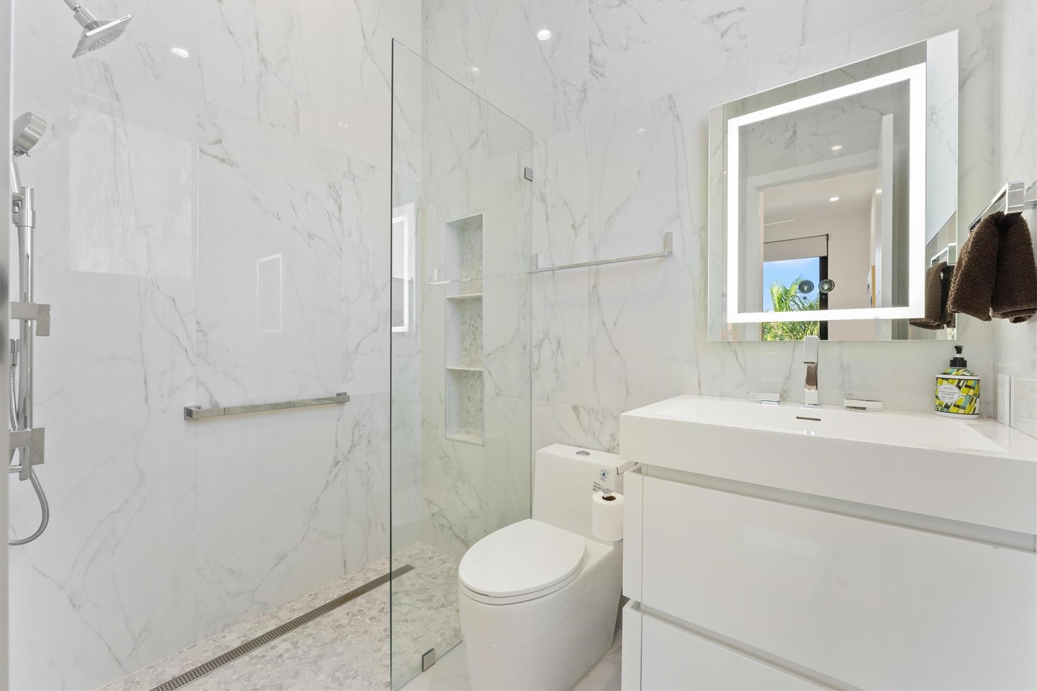 Introducing an Incomparable Intracoastal Masterpiece; this home promises open-concept luxury living. With 5 bedrooms including 2 Primary Suites, 4.5 bathrooms, and Handicap accessibility features. From the stone-clad entrance to the dramatic floating staircase and glass elevator, you enter into a grand open floor plan with volume ceilings. Expansive windows offer stunning water and park views, blending indoor and outdoor living. Inside, enjoy a gourmet kitchen with Miele and Bosch appliances, luxurious bathrooms including a matching outdoor shower. With four Trane air conditioners, comfort is ensured year-round. Large Heated Pool for laps or lounging. 100 Foot Dock, Deep Water, Ocean Access. Smart Home Ready and Sonos throughout. Don’t miss calling Coral Ridge’s best street home!