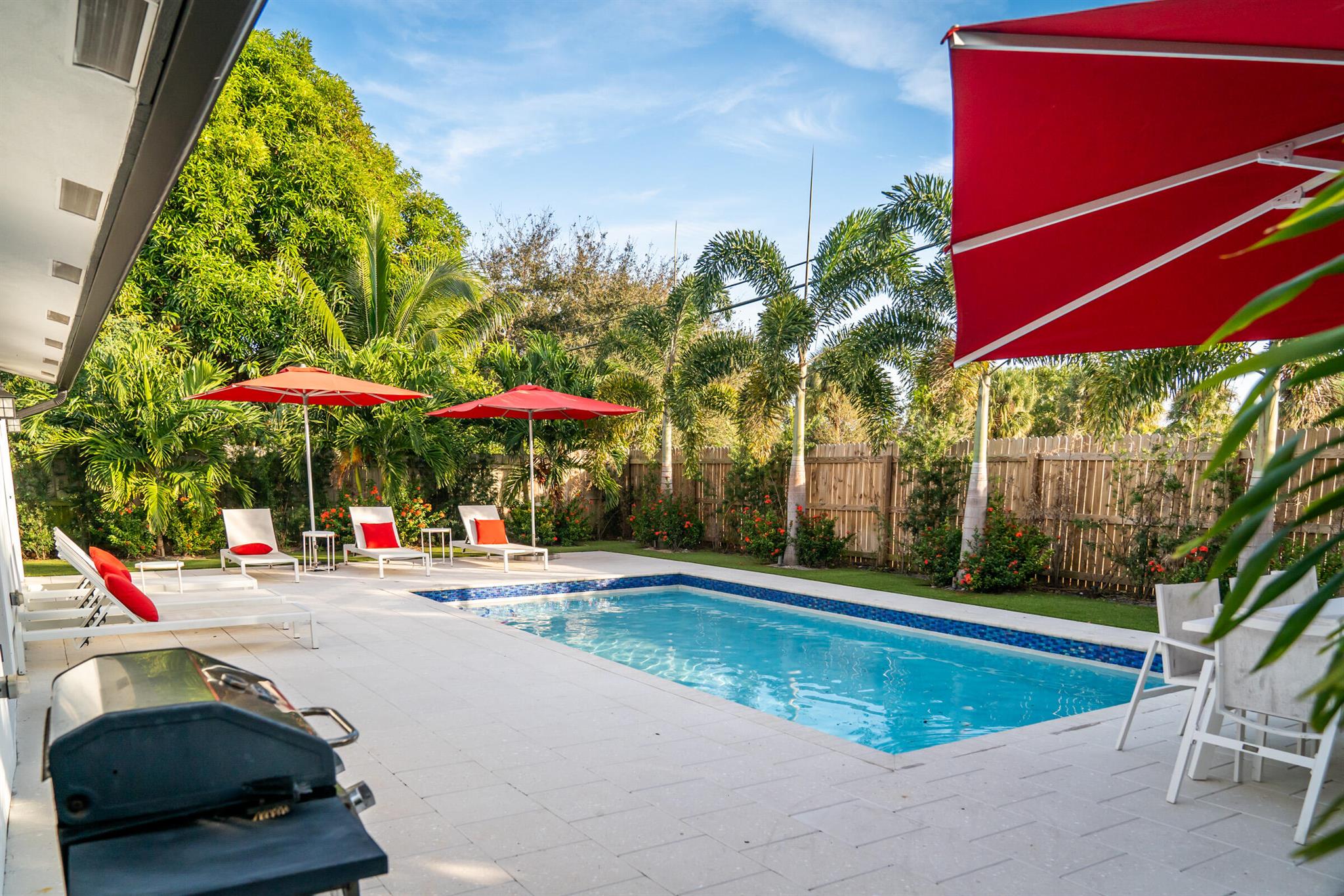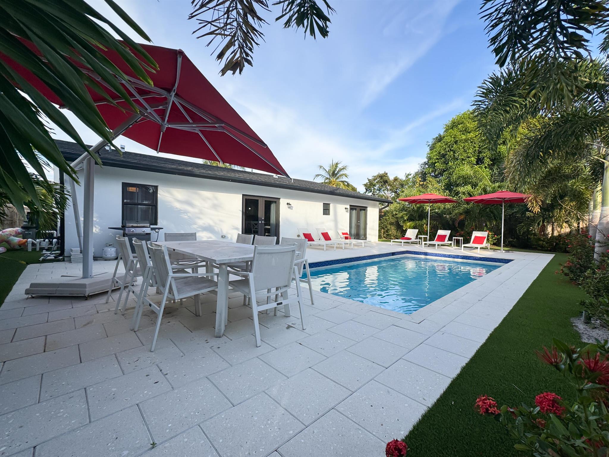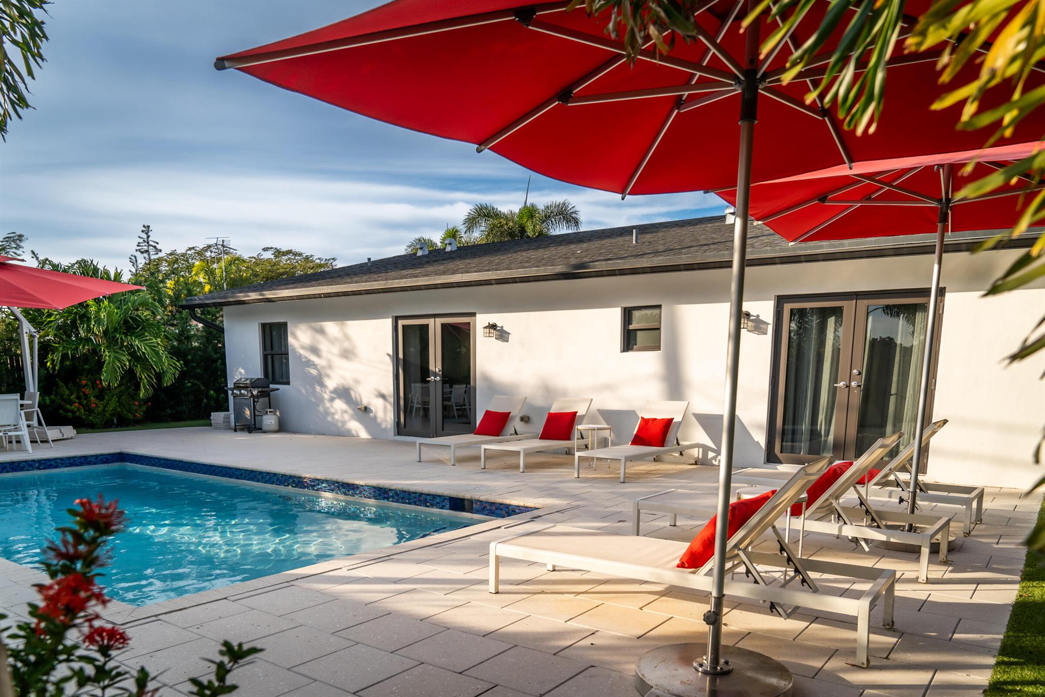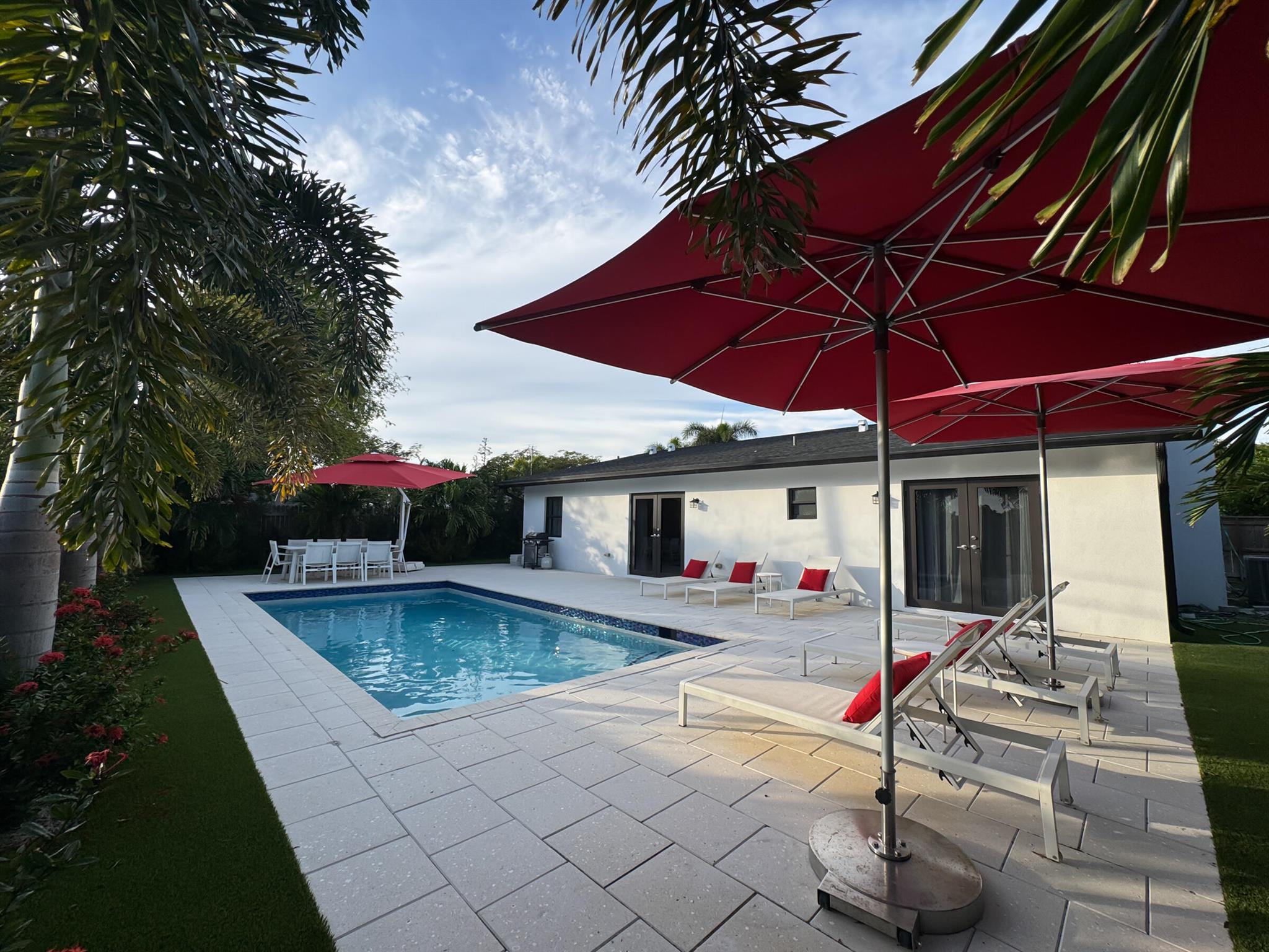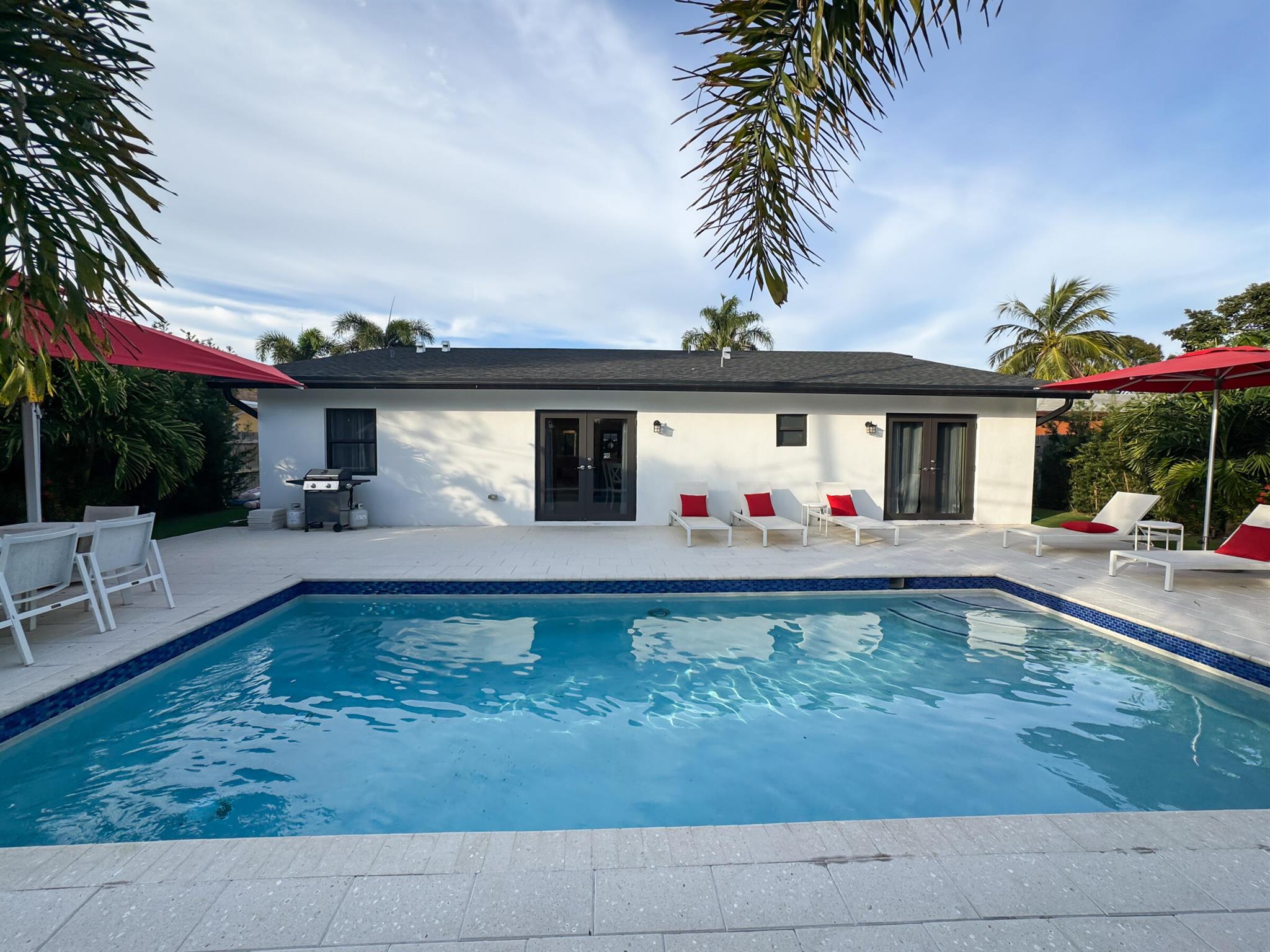 Live the Florida lifestyle in this cozy coastal gem conveniently located just a few minutes to the beach and a quick golf cart ride to famous Downtown Delray for fine dining, shopping and nightlife. This home is move in ready, being sold completely furnished. Perfect for entertaining with a spacious open floor plan. Stylish French doors opening to your stunning fenced backyard oasis designed with luxury and privacy in mind. Complete hurricane doors and windows, brand new pool and backyard turf for a clean look and easy maintenance. This home has four bedrooms and three full baths, open kitchen concept, family room, living room and dining room, custom closets and extra storage.