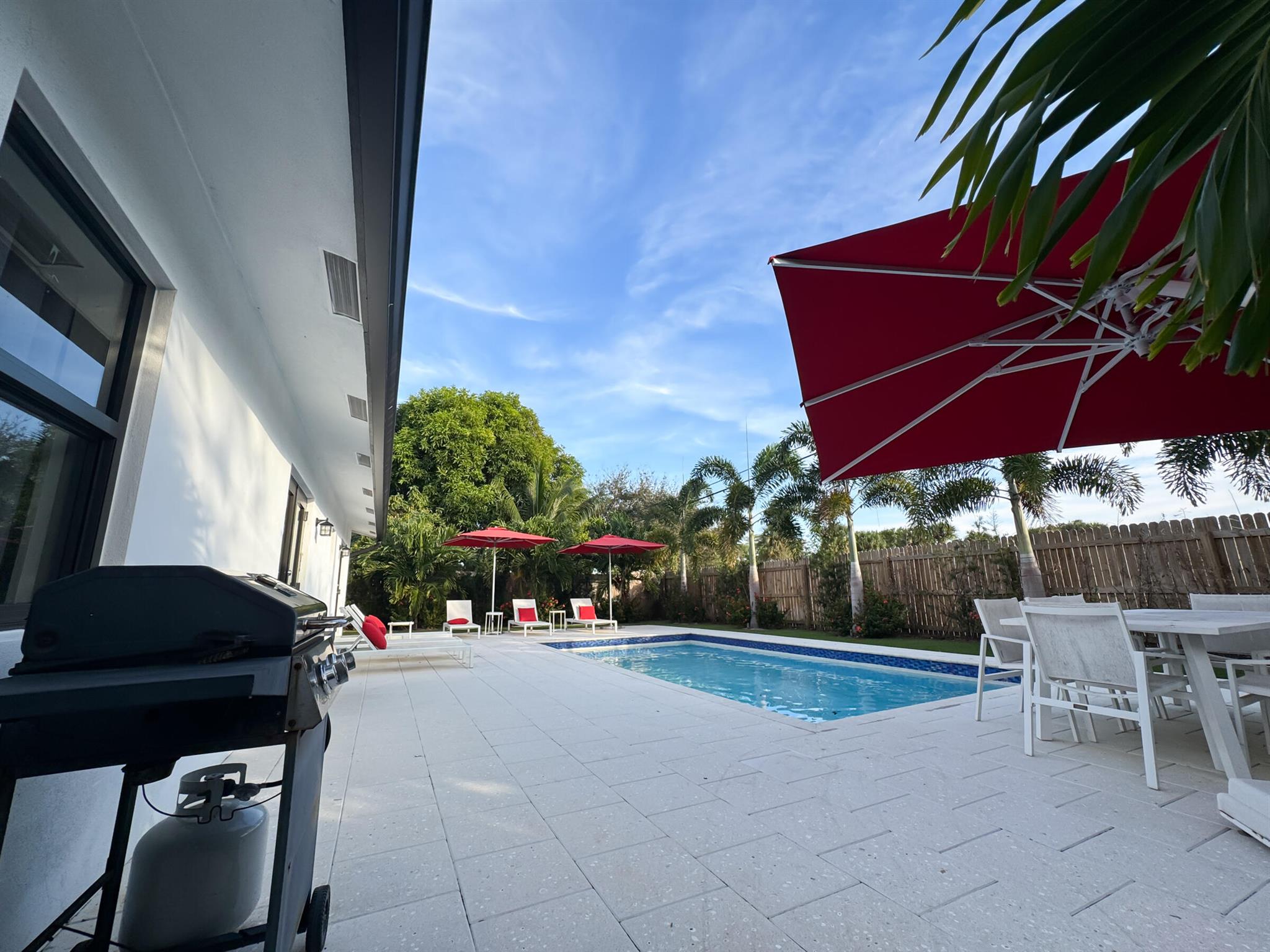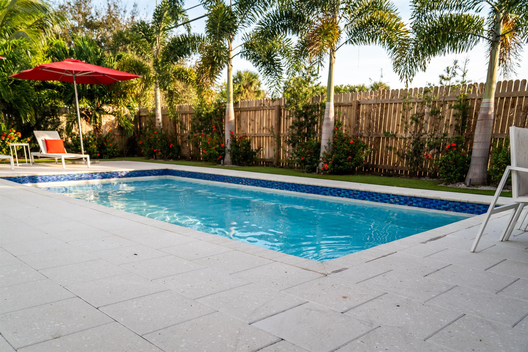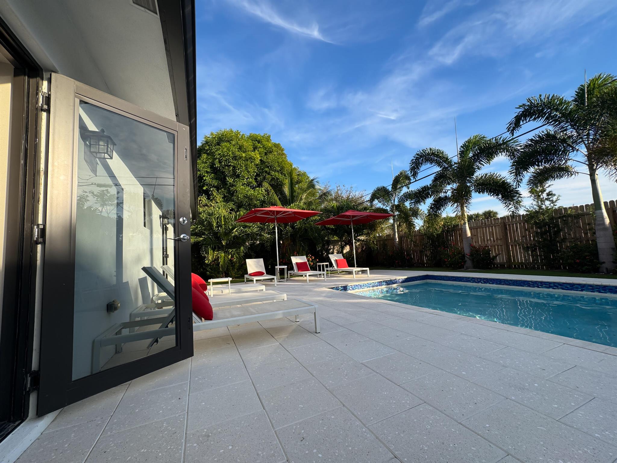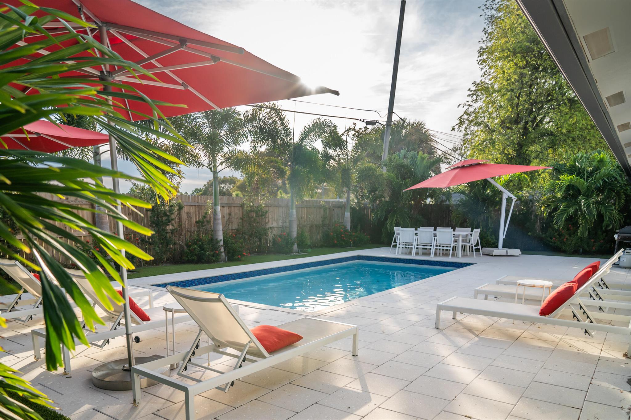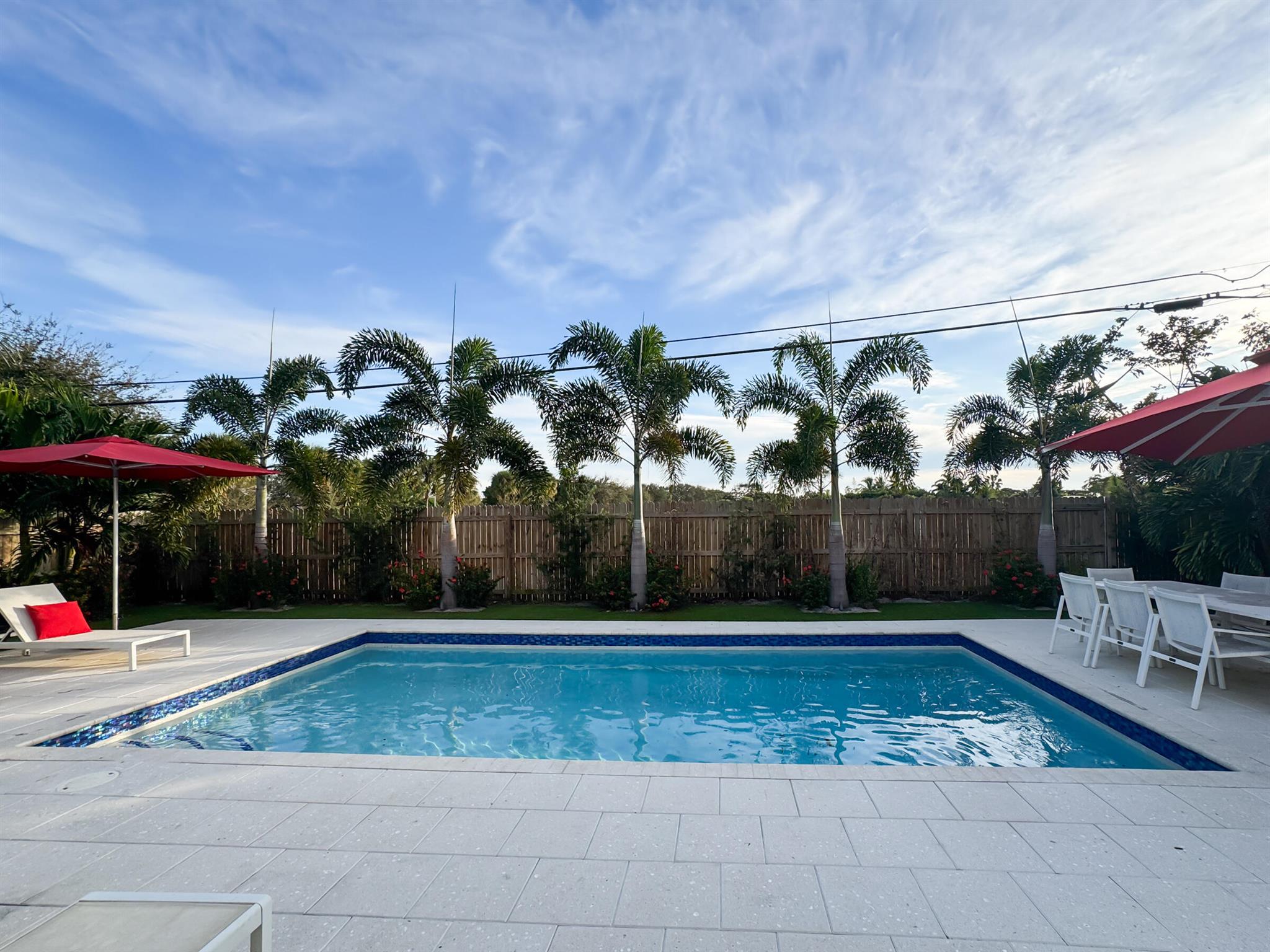 Live the Florida lifestyle in this cozy coastal gem conveniently located just a few minutes to the beach and a quick golf cart ride to famous Downtown Delray for fine dining, shopping and nightlife. This home is move in ready, being sold completely furnished. Perfect for entertaining with a spacious open floor plan. Stylish French doors opening to your stunning fenced backyard oasis designed with luxury and privacy in mind. Complete hurricane doors and windows, brand new pool and backyard turf for a clean look and easy maintenance. This home has four bedrooms and three full baths, open kitchen concept, family room, living room and dining room, custom closets and extra storage.