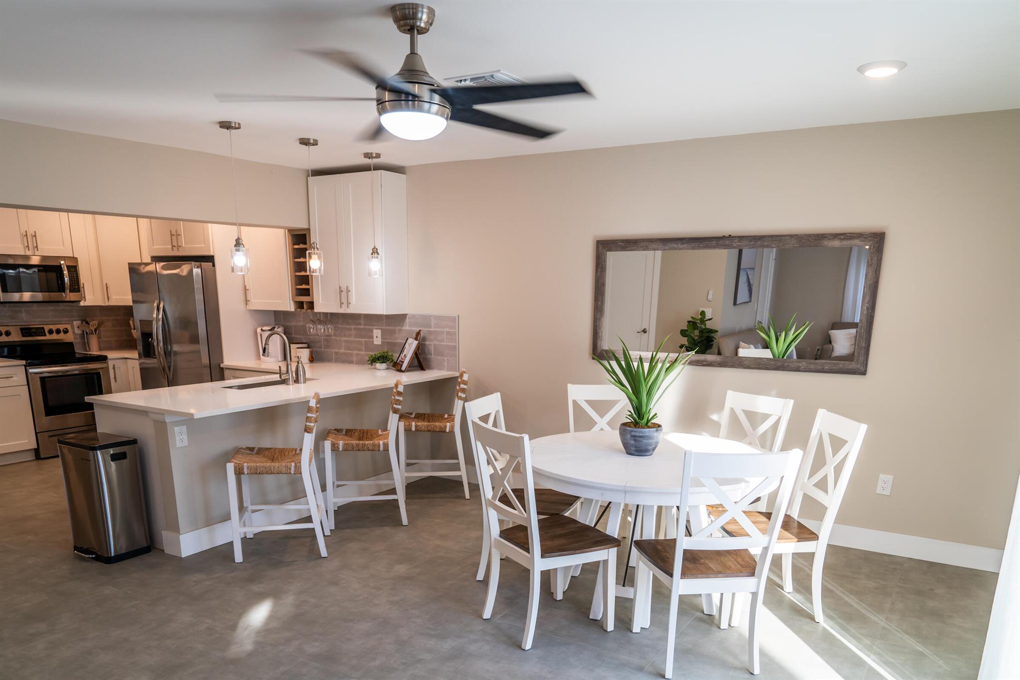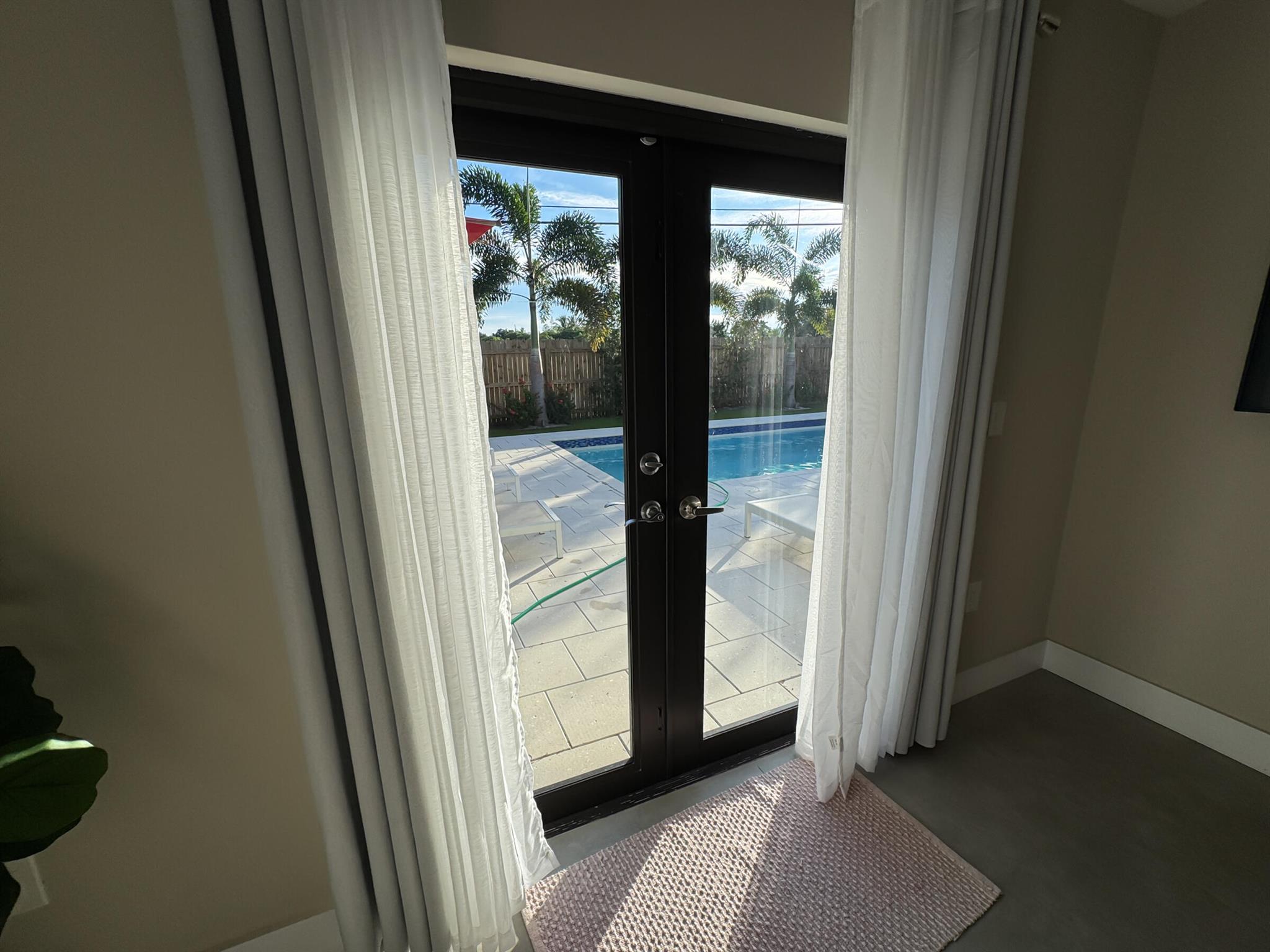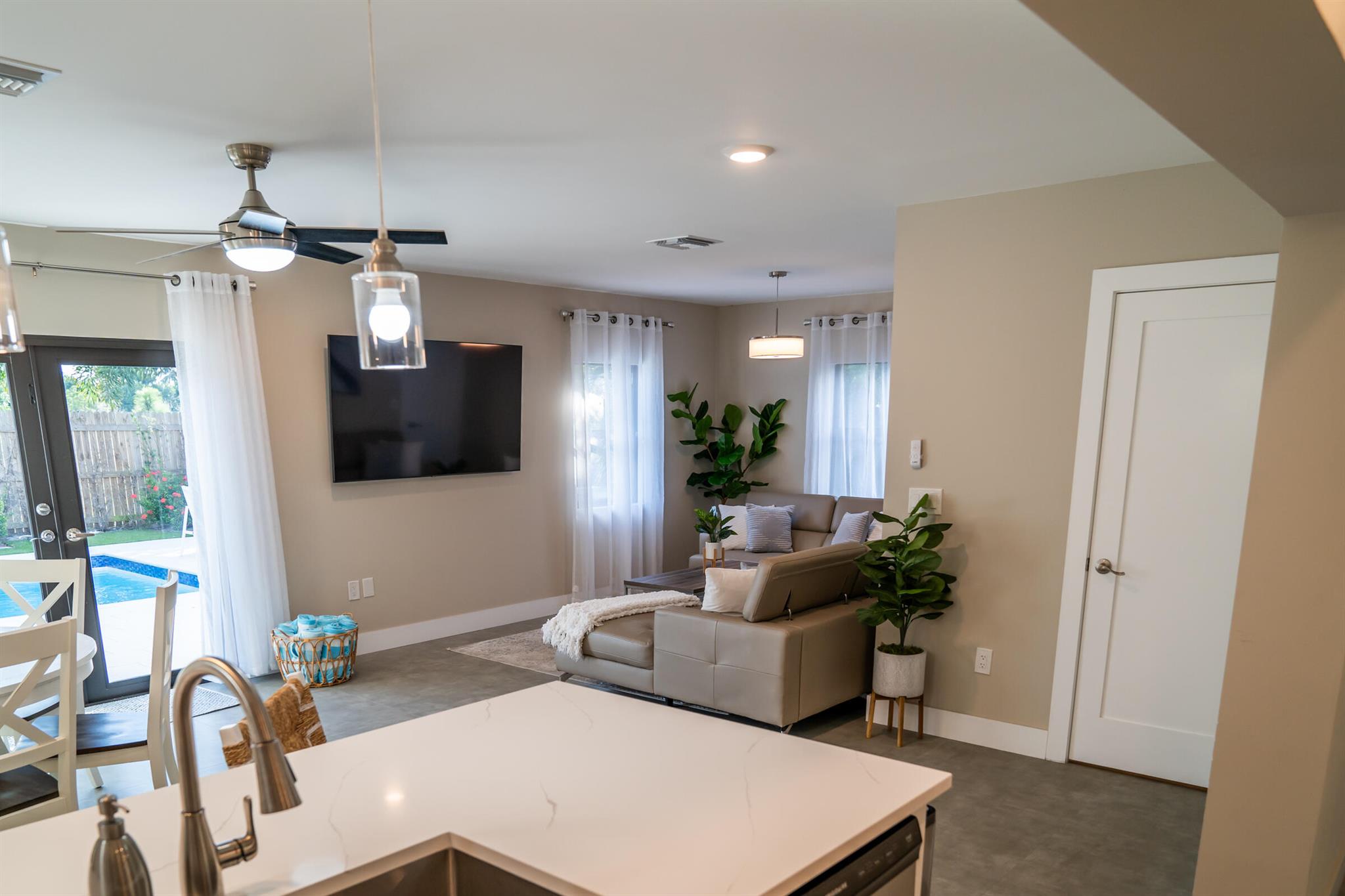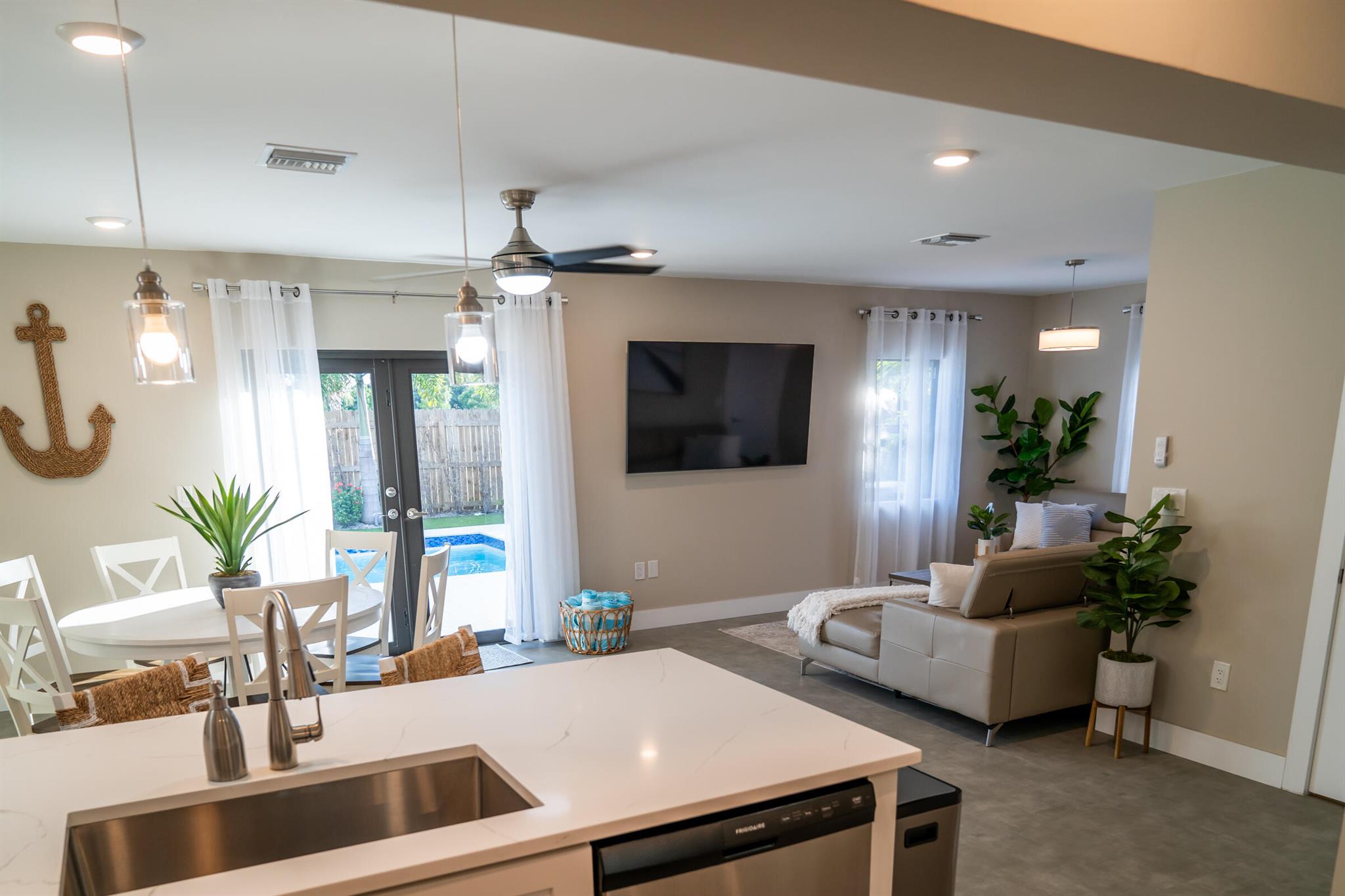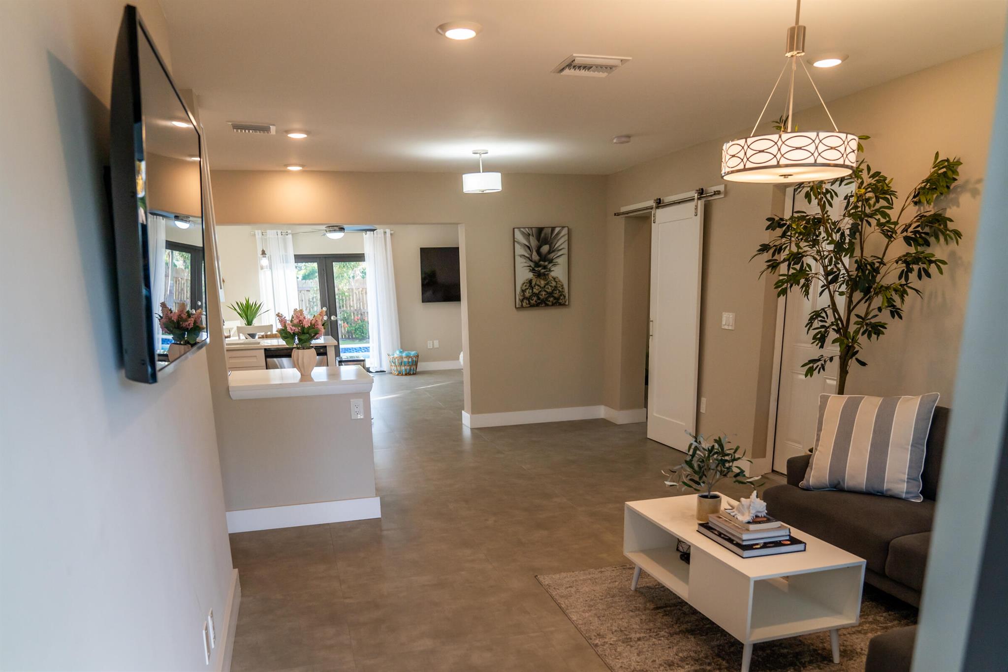 Live the Florida lifestyle in this cozy coastal gem conveniently located just a few minutes to the beach and a quick golf cart ride to famous Downtown Delray for fine dining, shopping and nightlife. This home is move in ready, being sold completely furnished. Perfect for entertaining with a spacious open floor plan. Stylish French doors opening to your stunning fenced backyard oasis designed with luxury and privacy in mind. Complete hurricane doors and windows, brand new pool and backyard turf for a clean look and easy maintenance. This home has four bedrooms and three full baths, open kitchen concept, family room, living room and dining room, custom closets and extra storage.
