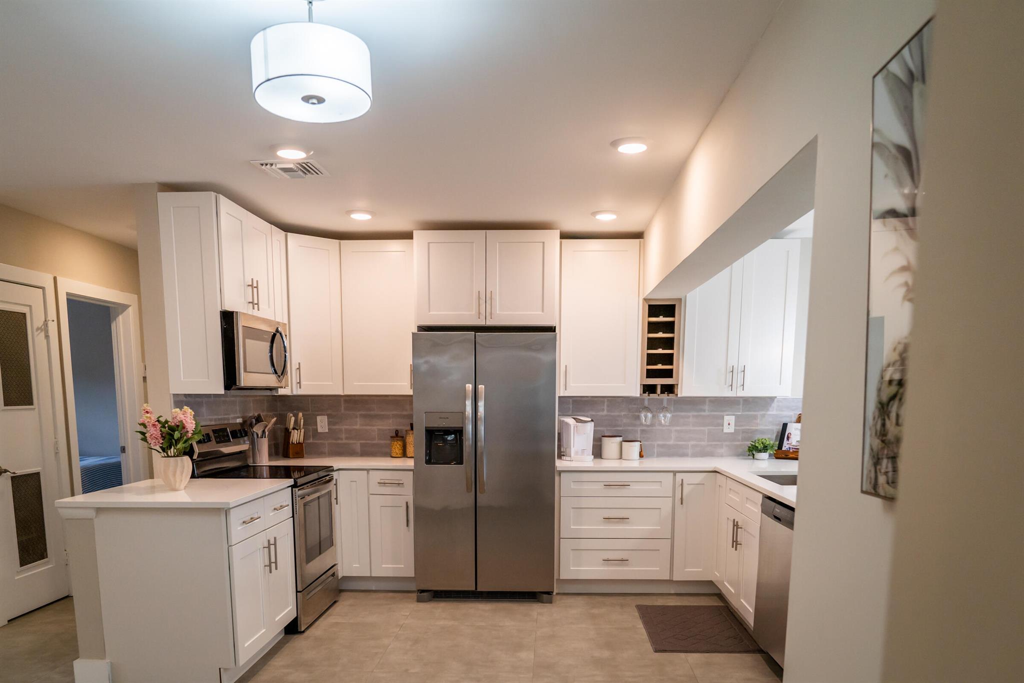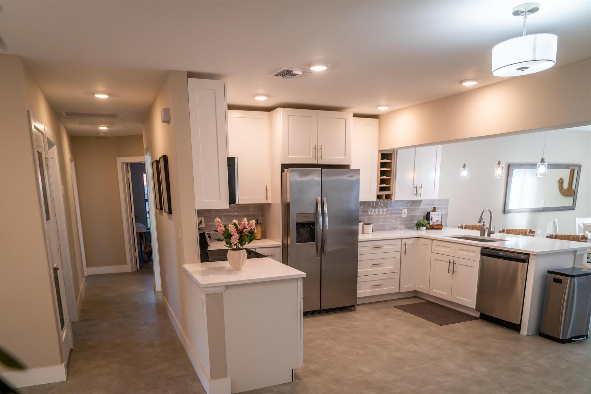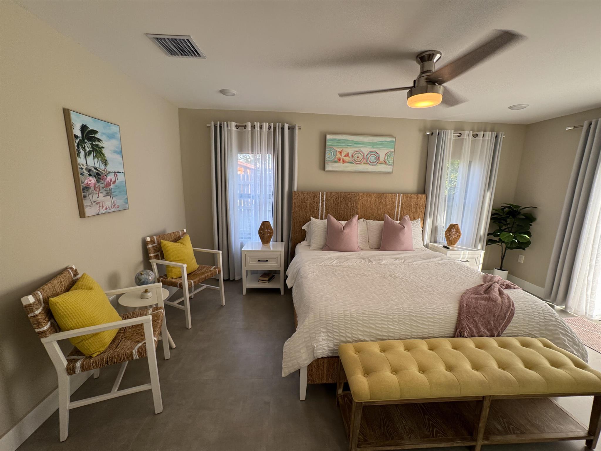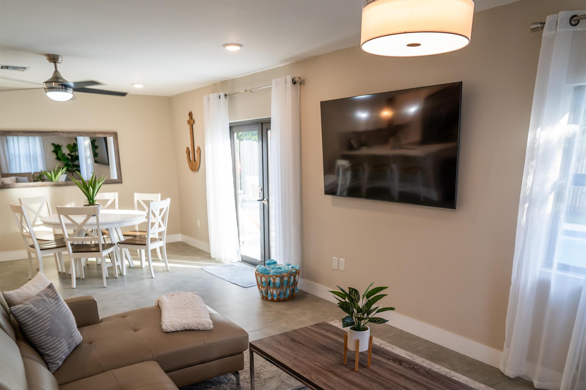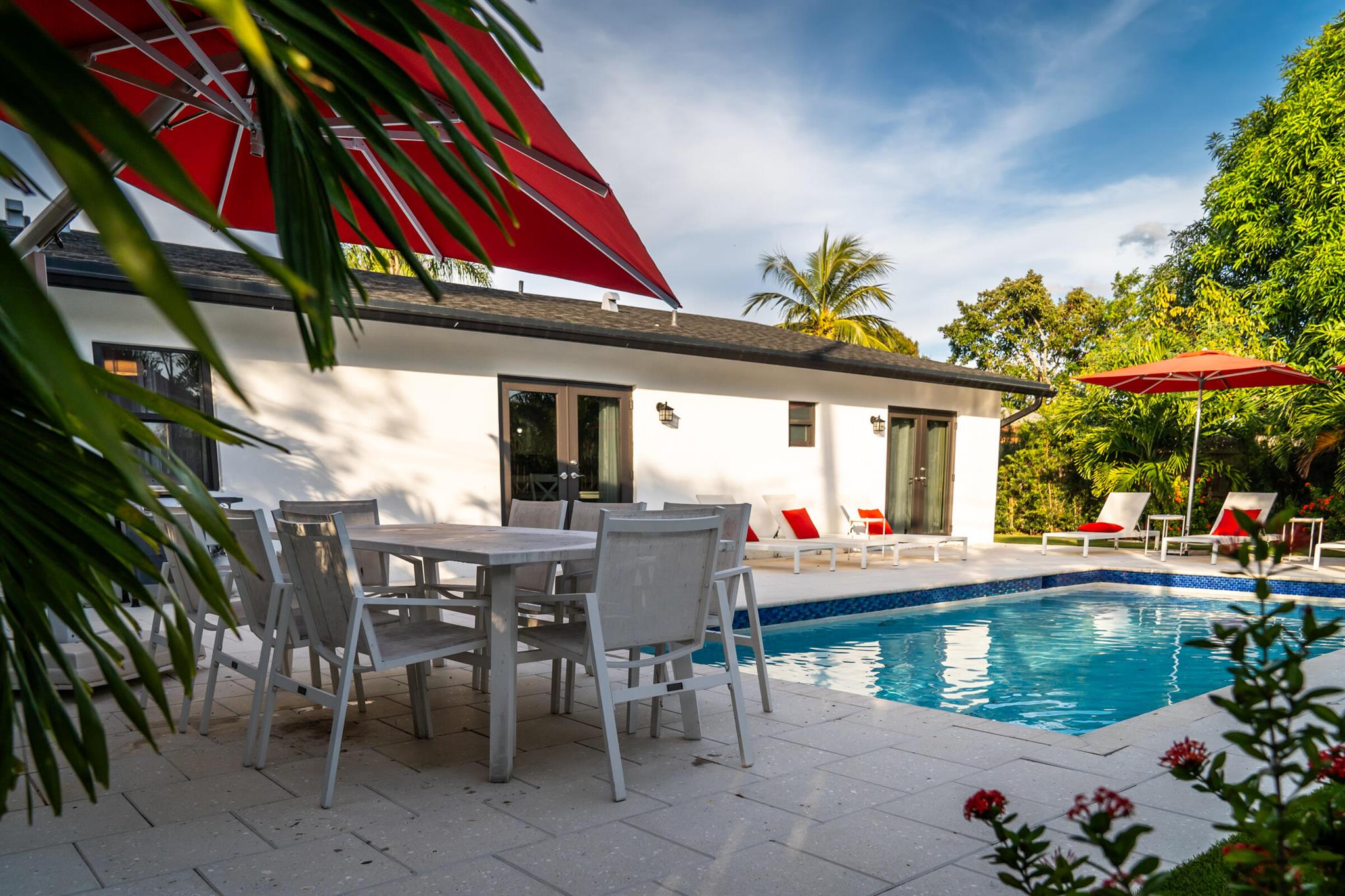 Live the Florida lifestyle in this cozy coastal gem conveniently located just a few minutes to the beach and a quick golf cart ride to famous Downtown Delray for fine dining, shopping and nightlife. This home is move in ready, being sold completely furnished. Perfect for entertaining with a spacious open floor plan. Stylish French doors opening to your stunning fenced backyard oasis designed with luxury and privacy in mind. Complete hurricane doors and windows, brand new pool and backyard turf for a clean look and easy maintenance. This home has four bedrooms and three full baths, open kitchen concept, family room, living room and dining room, custom closets and extra storage.