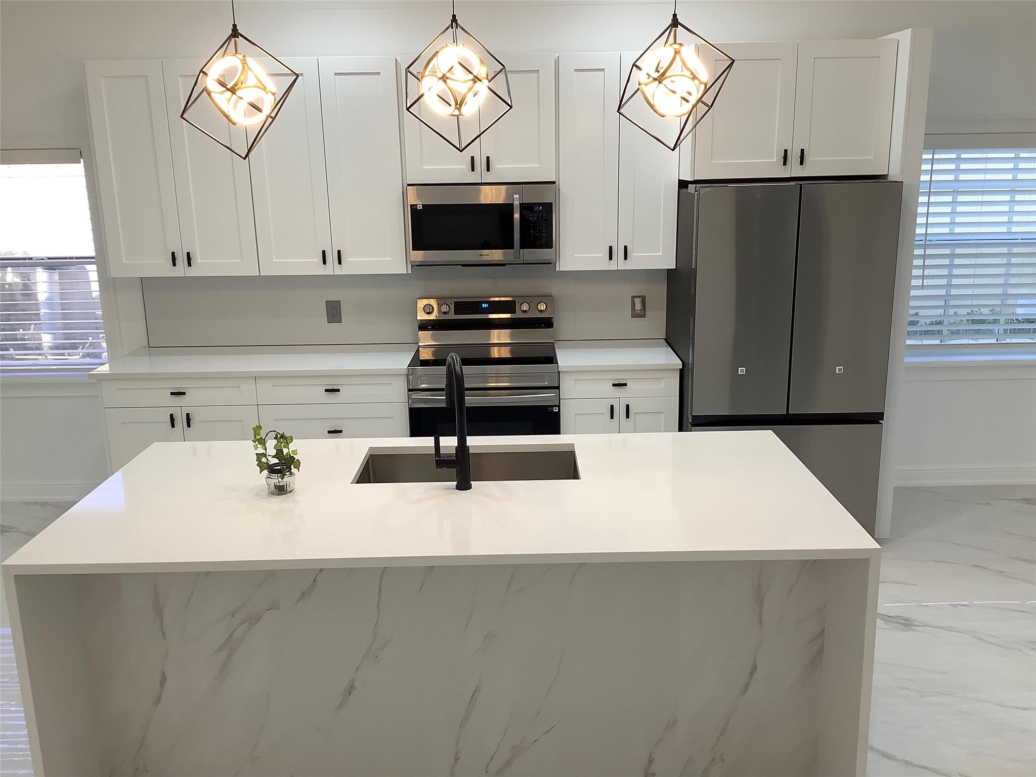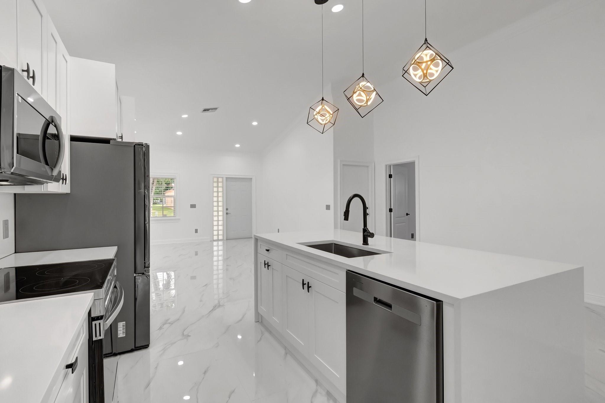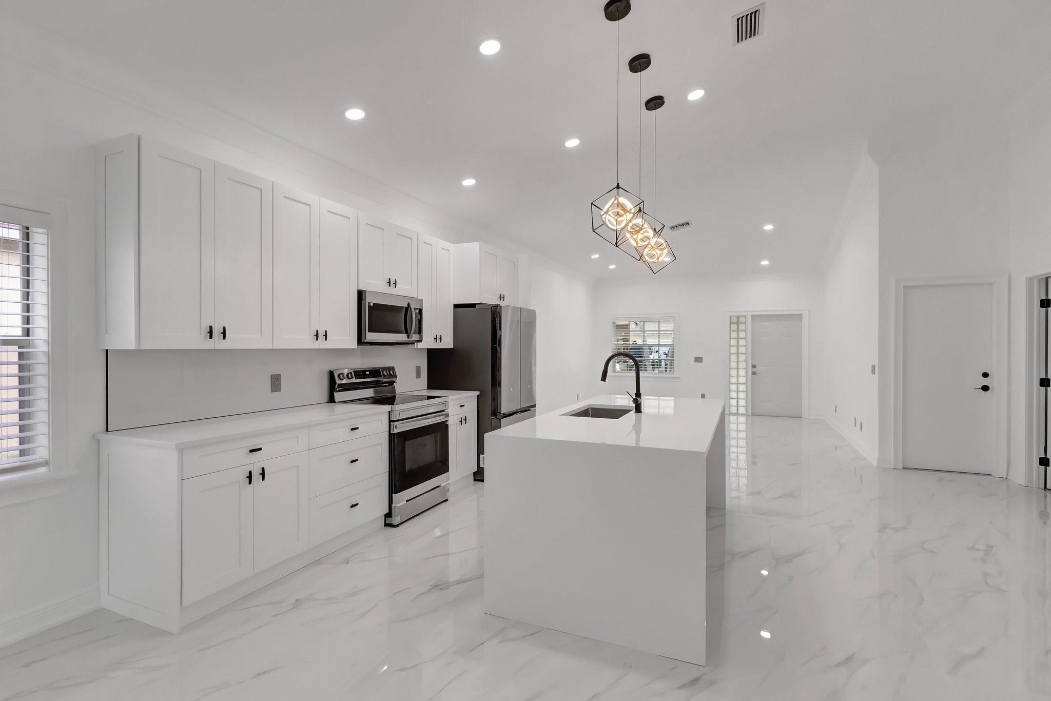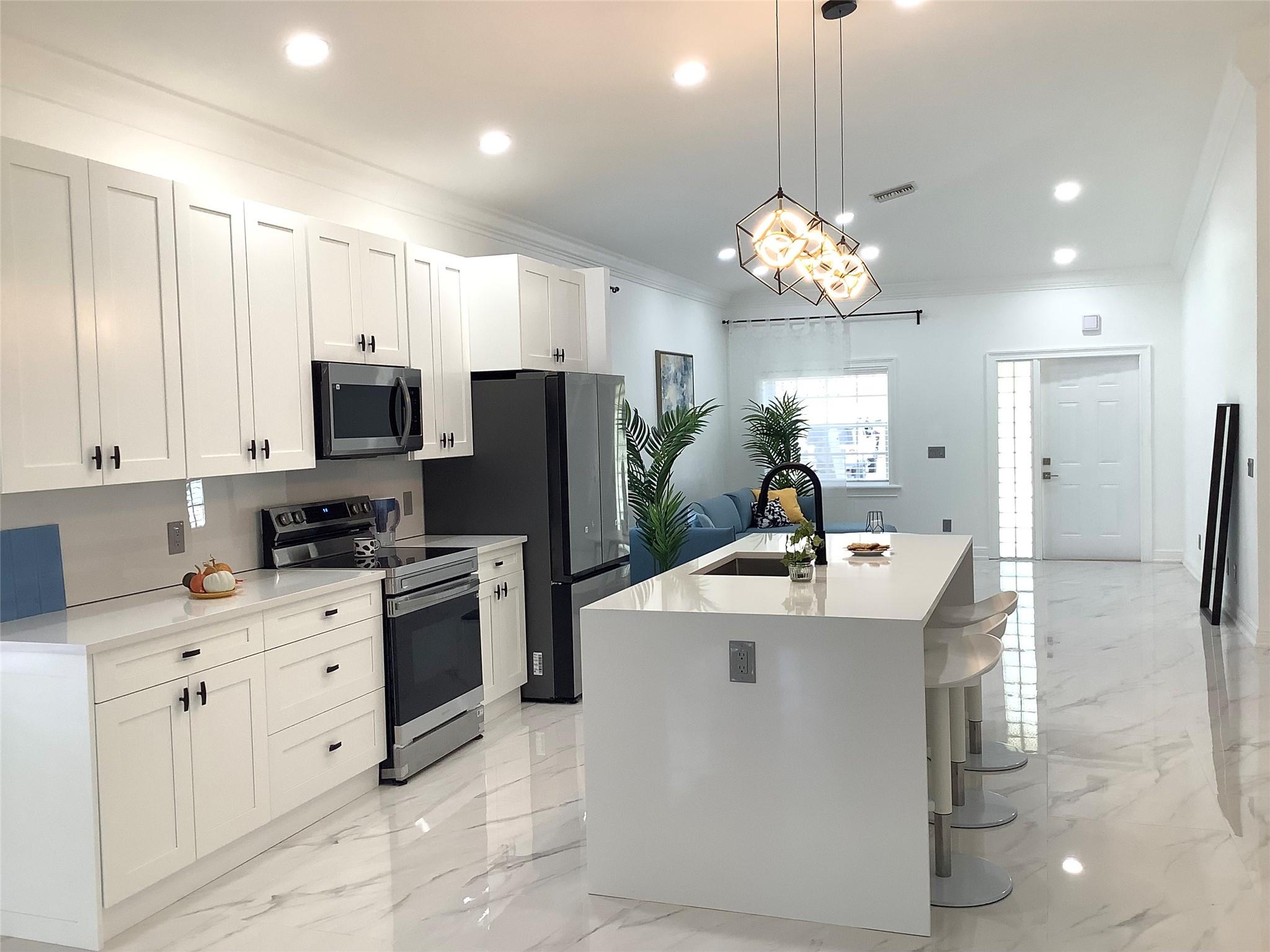 Investors dream. Stunning fully remodeled single-family home w/ 3 bedrooms & 2 new baths. This contemporary gem features white tile floors throughout the kitchen & living areas, granite countertops. Enjoy gatherings cooking in your new kitchen with state-of-the-art appliances, beautiful granite surfaces, & a stylish modern pendants lighting hanging over the Isle. Recessed lighting and fixtures, abundant natural light, new blinds, modern ceiling fans. Additional features include new back door, new front & back screen on patios, accordion shutters, & a 2017 roof. Private lot with a water view. Very low HOA and well-maintained community. Rated A school district. IN SOME ROOMS, THE FURNITURE HAVE BEEN VIRTUALLY STAGED. Seller opens to exchange this home for a smaller home as part of the deal.
