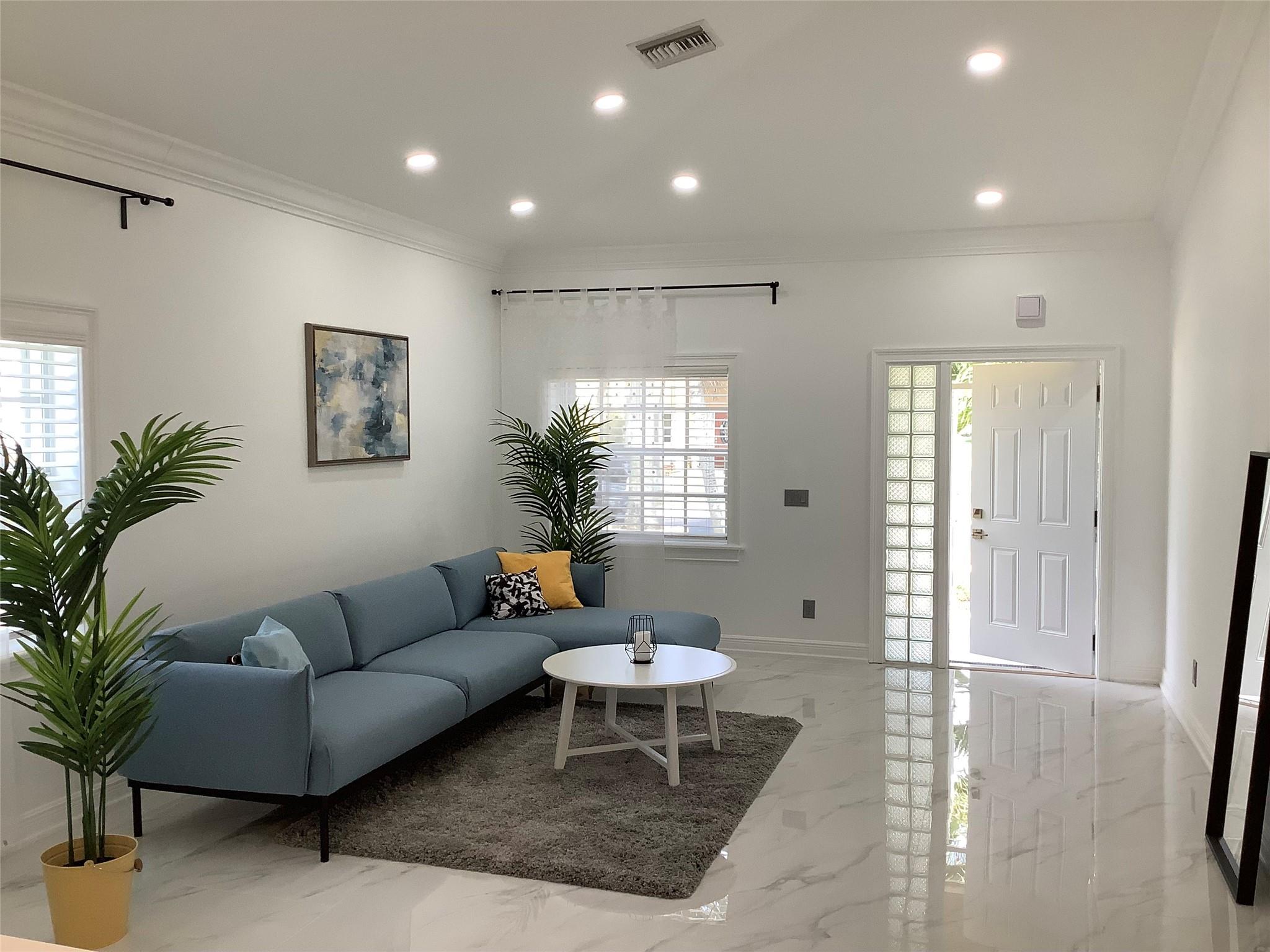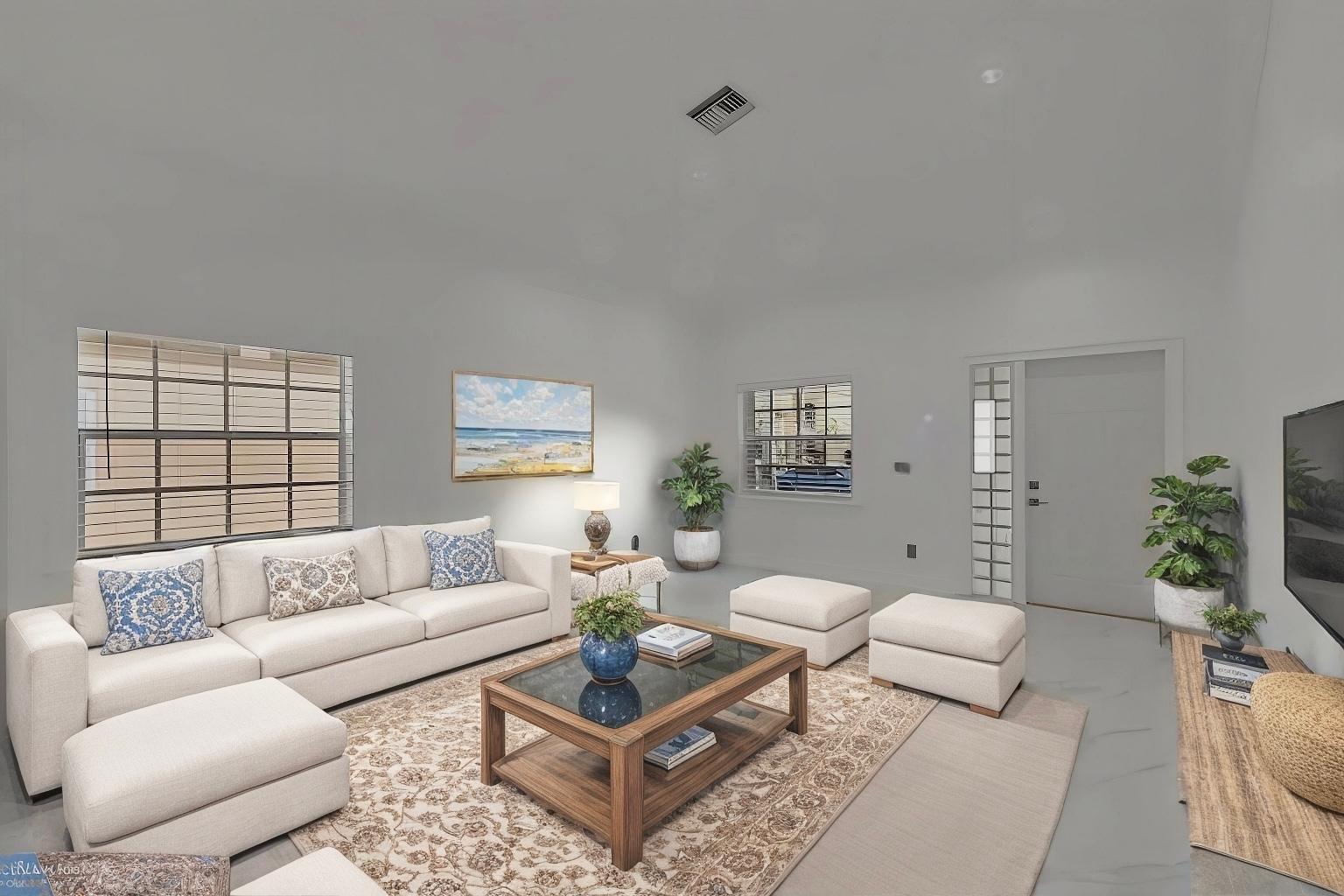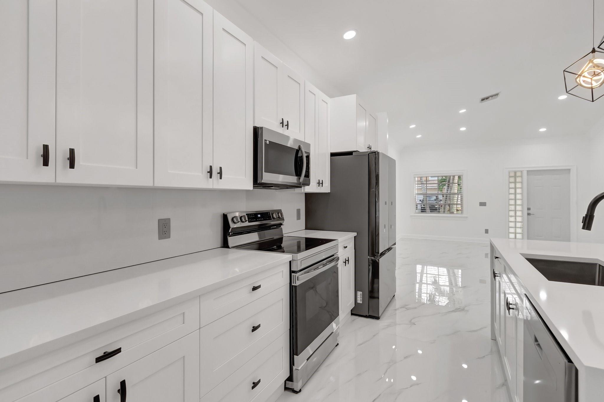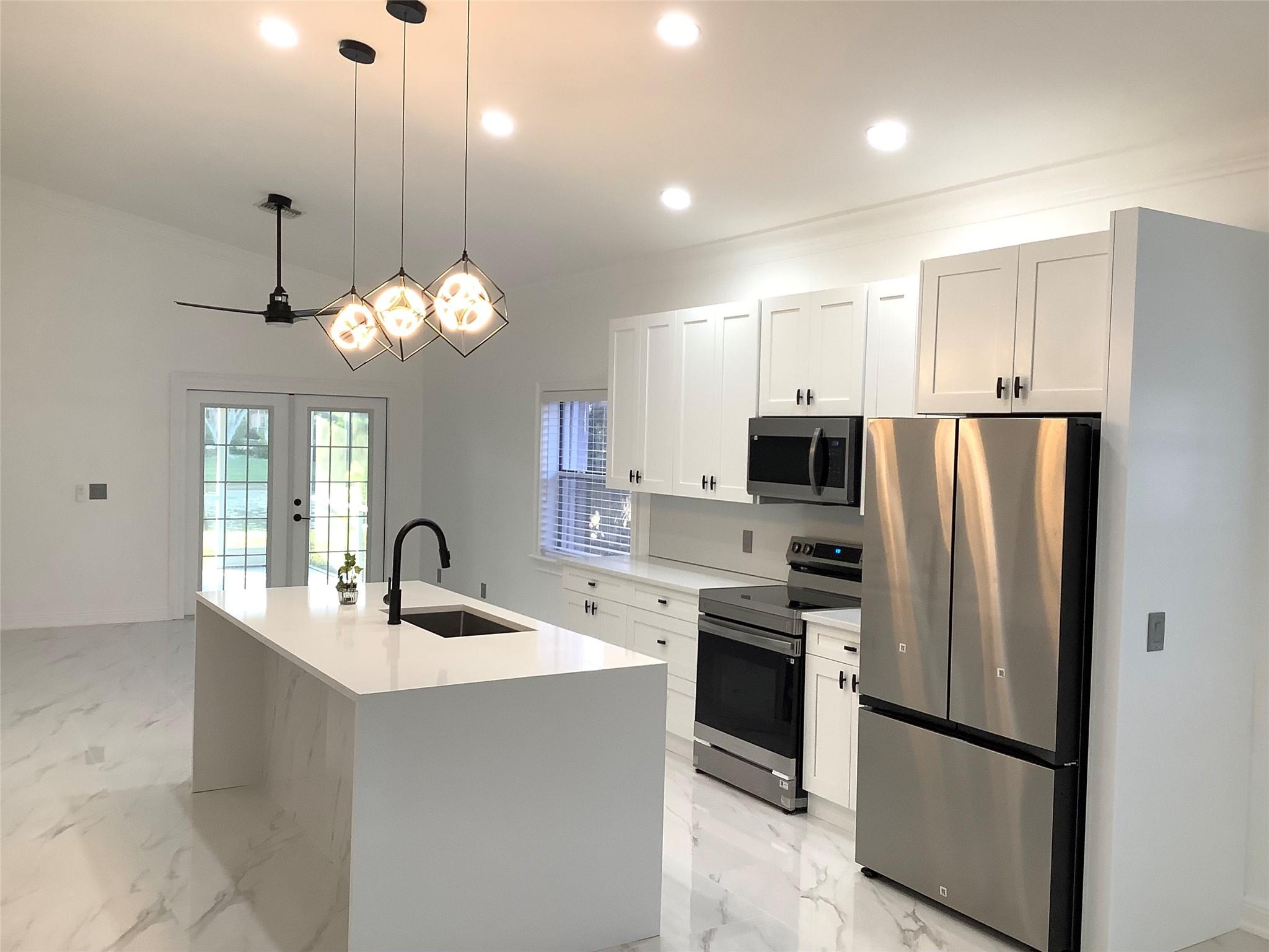 Investors dream. Stunning fully remodeled single-family home w/ 3 bedrooms & 2 new baths. This contemporary gem features white tile floors throughout the kitchen & living areas, granite countertops. Enjoy gatherings cooking in your new kitchen with state-of-the-art appliances, beautiful granite surfaces, & a stylish modern pendants lighting hanging over the Isle. Recessed lighting and fixtures, abundant natural light, new blinds, modern ceiling fans. Additional features include new back door, new front & back screen on patios, accordion shutters, & a 2017 roof. Private lot with a water view. Very low HOA and well-maintained community. Rated A school district. IN SOME ROOMS, THE FURNITURE HAVE BEEN VIRTUALLY STAGED. Seller opens to exchange this home for a smaller home as part of the deal.
