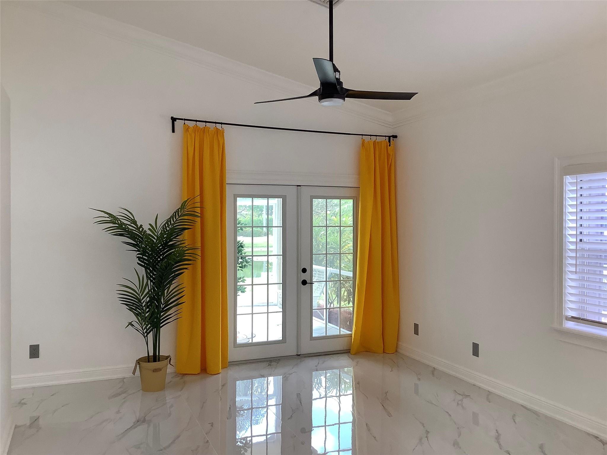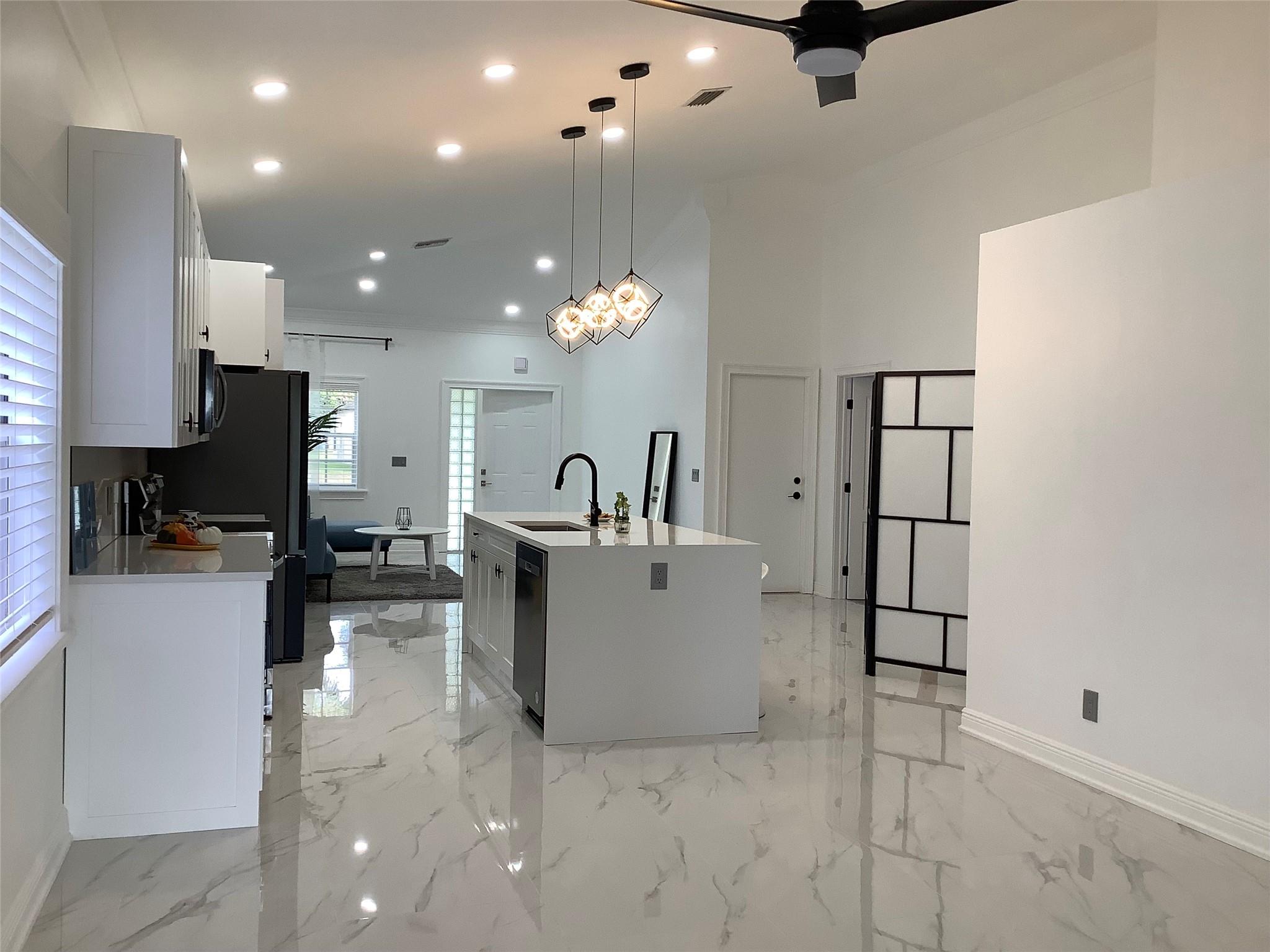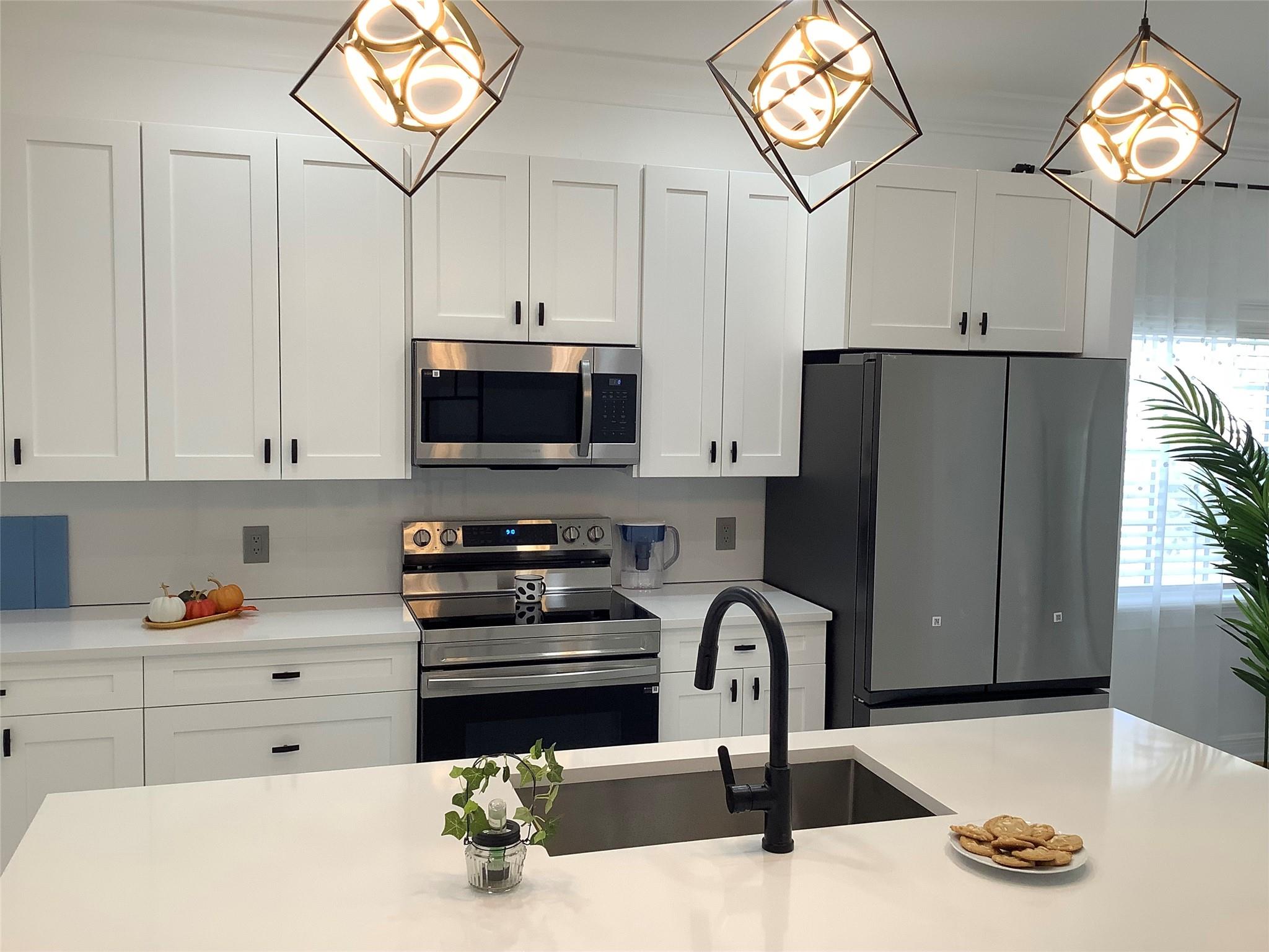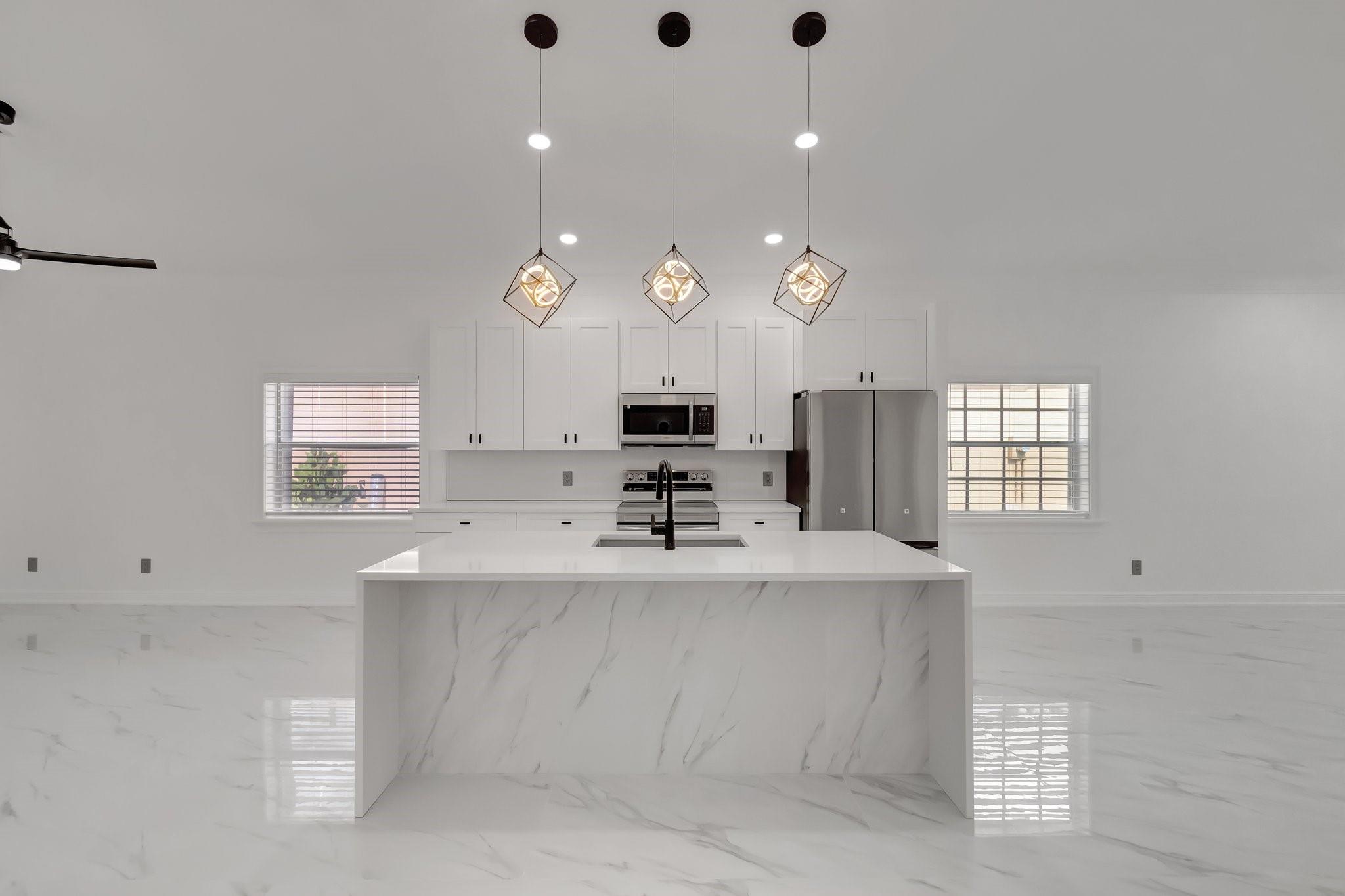Investors dream. Stunning fully remodeled single-family home w/ 3 bedrooms & 2 new baths. This contemporary gem features white tile floors throughout the kitchen & living areas, granite countertops. Enjoy gatherings cooking in your new kitchen with state-of-the-art appliances, beautiful granite surfaces, & a stylish modern pendants lighting hanging over the Isle. Recessed lighting and fixtures, abundant natural light, new blinds, modern ceiling fans. Additional features include new back door, new front & back screen on patios, accordion shutters, & a 2017 roof. Private lot with a water view. Very low HOA and well-maintained community. Rated A school district. IN SOME ROOMS, THE FURNITURE HAVE BEEN VIRTUALLY STAGED. Seller opens to exchange this home for a smaller home as part of the deal.