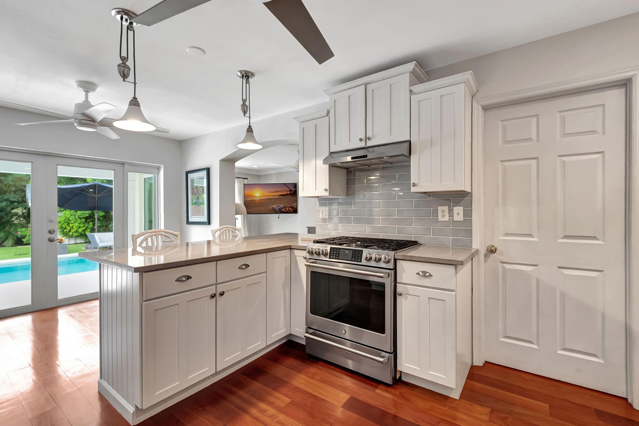 Charming Modernized Home in Quiet Circle. Located just a short bicycle or golf cart ride to the beach and Atlantic Ave, this beautifully remodeled home offers the perfect blend of style and comfort. Over the past four years, the property has undergone extensive updates for your convenience there are porcelain floors in the bedroom areas, remodeled bathrooms and kitchen featuring a gas stove, a new pool and patio area, whole house Impact windows, newer air condition system, electrical wiring, and plumbing systems for your peace of mind. This home offers a seamless indoor-outdoor flow, providing plenty of space for both relaxation and entertainment.