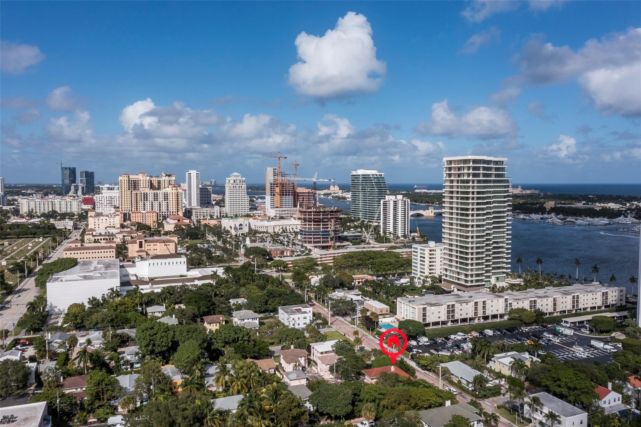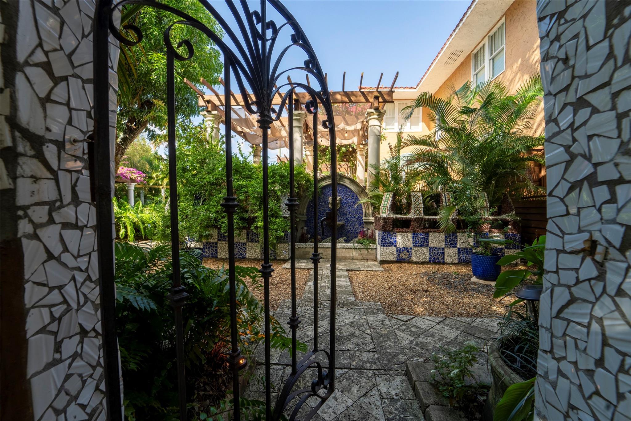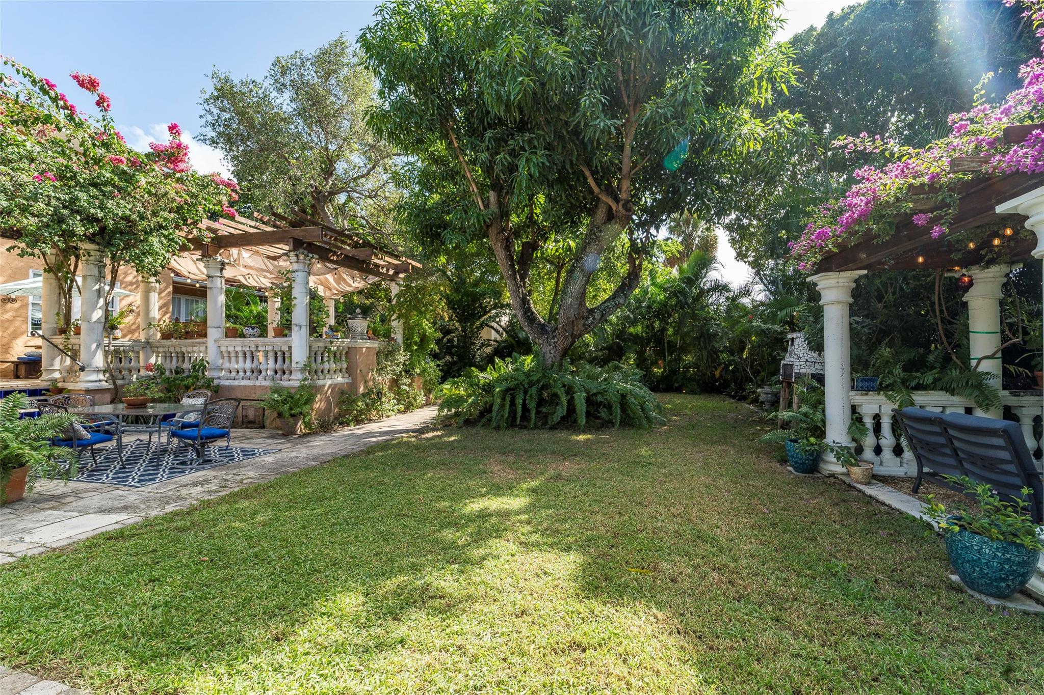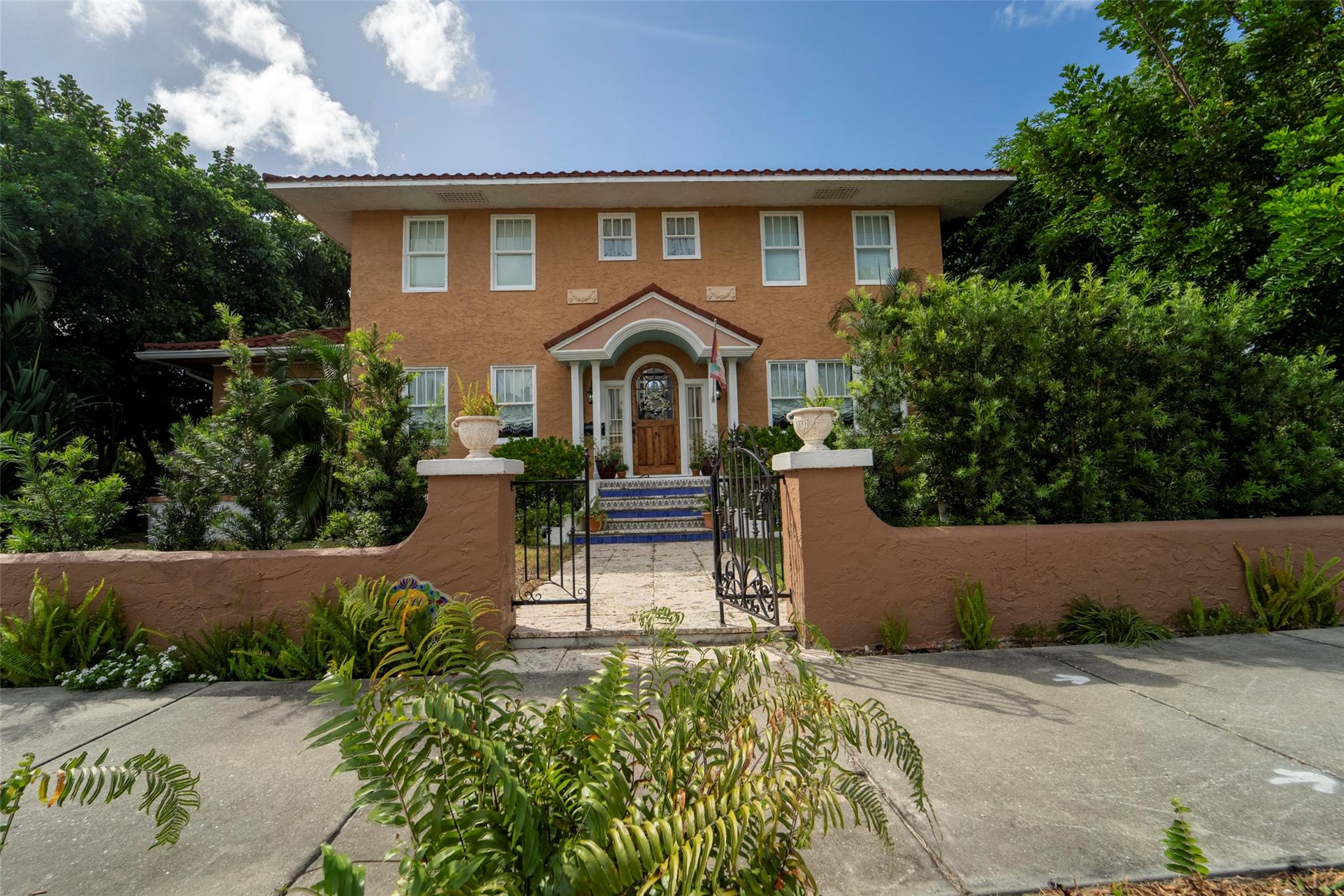 Unique city estate on 2 lots in Mango Promenade. One block from the Intracoastal and moments from Downtown WPB & PB Island. Walking distance to to great restaurants and shopping on Dixie Highway, Norton Museum of Art, Palm Beach Atlantic University, The Green School, and Palm Beach Day Academy. Executive living and entertaining with a great back garden with an outdoor kitchen, bar, living and dining room area outdoor fireplace, and pizza oven. Hurricane Impact windows throughout. Modern conveniences include an ensuite primary bedroom, gourmet eat-in kitchen, and spacious family room. Artistic touches complement the elegance of this 1921 grand lady. On-site parking for 4 cars, space for 2-story garage and pool. Situated on over 1/4 acre 1 city block wide in downtown West Palm beach!