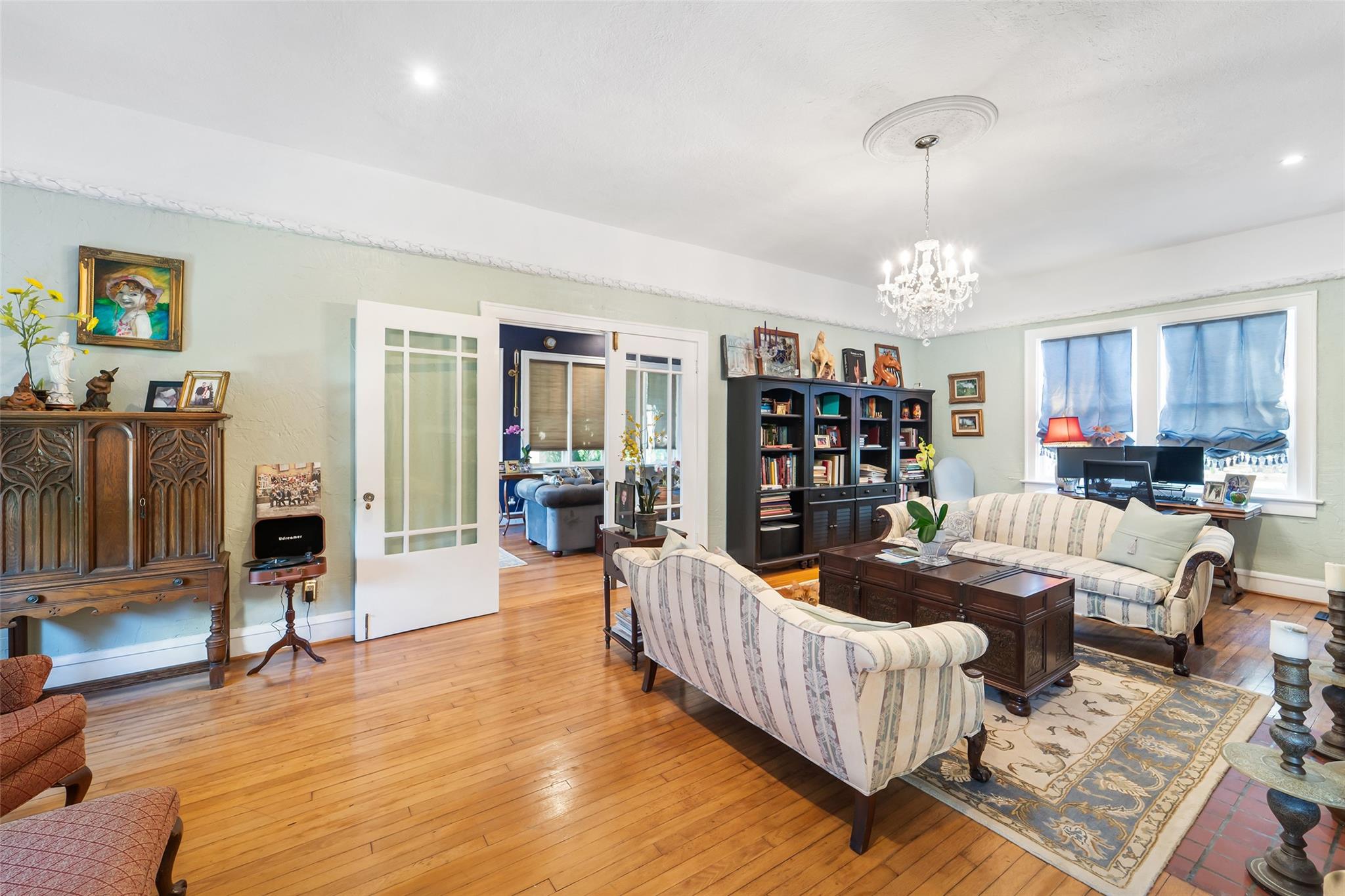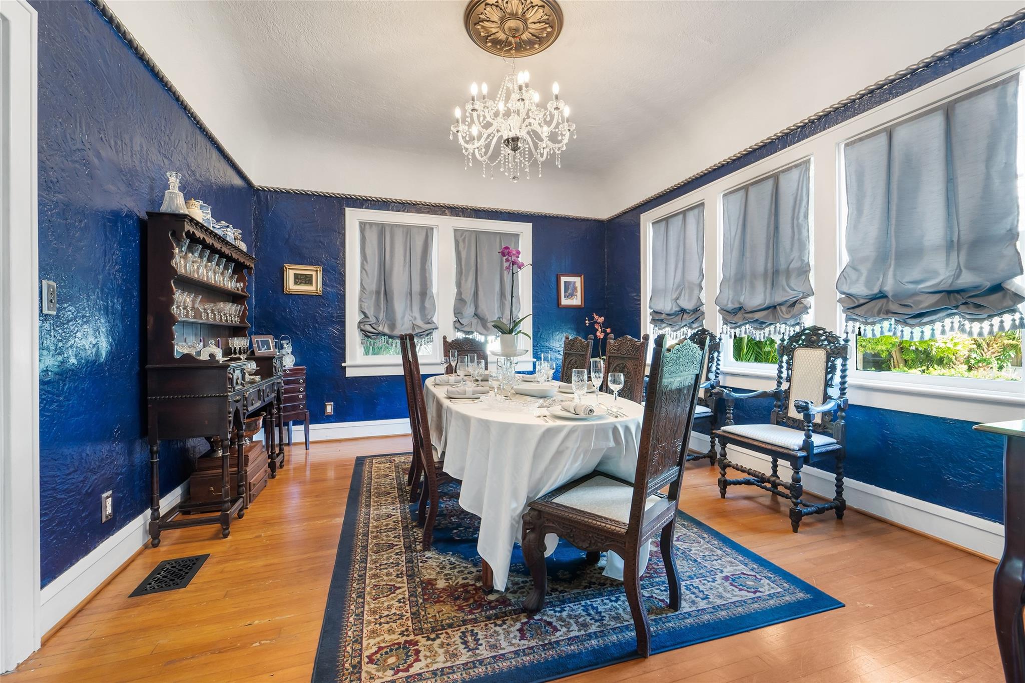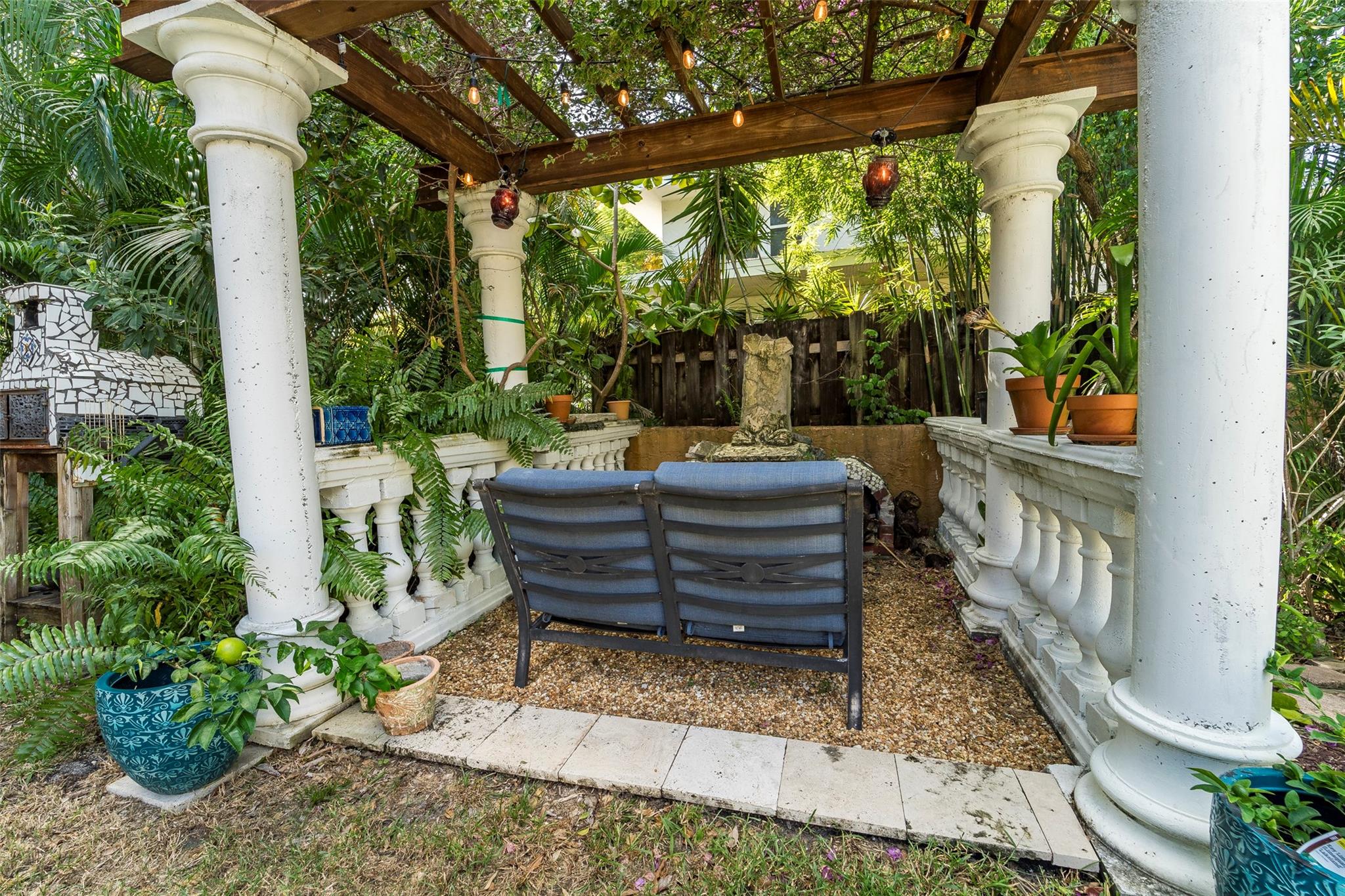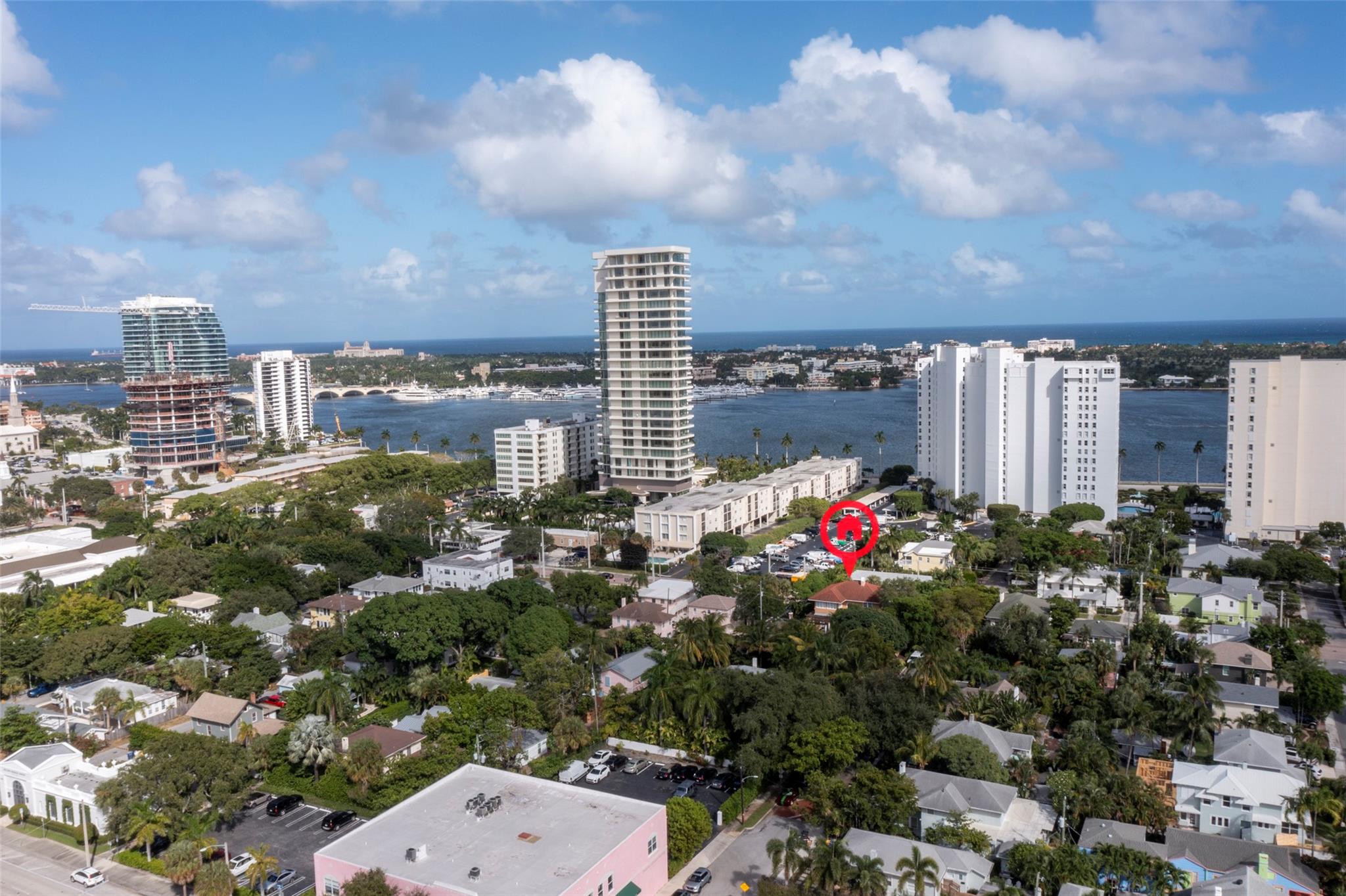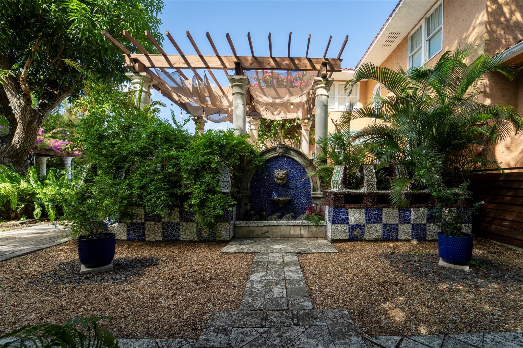 Unique city estate on 2 lots in Mango Promenade. One block from the Intracoastal and moments from Downtown WPB & PB Island. Walking distance to to great restaurants and shopping on Dixie Highway, Norton Museum of Art, Palm Beach Atlantic University, The Green School, and Palm Beach Day Academy. Executive living and entertaining with a great back garden with an outdoor kitchen, bar, living and dining room area outdoor fireplace, and pizza oven. Hurricane Impact windows throughout. Modern conveniences include an ensuite primary bedroom, gourmet eat-in kitchen, and spacious family room. Artistic touches complement the elegance of this 1921 grand lady. On-site parking for 4 cars, space for 2-story garage and pool. Situated on over 1/4 acre 1 city block wide in downtown West Palm beach!