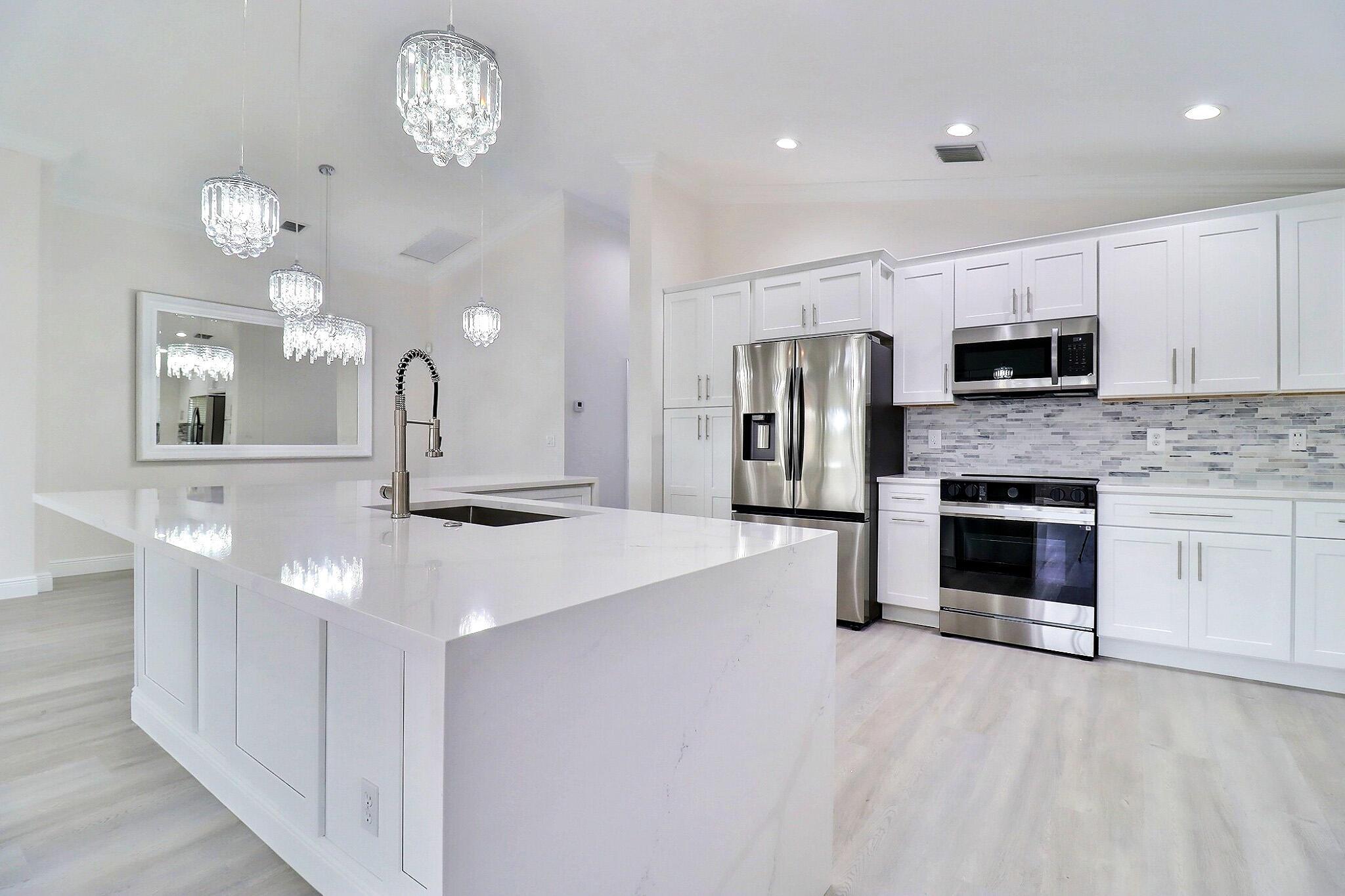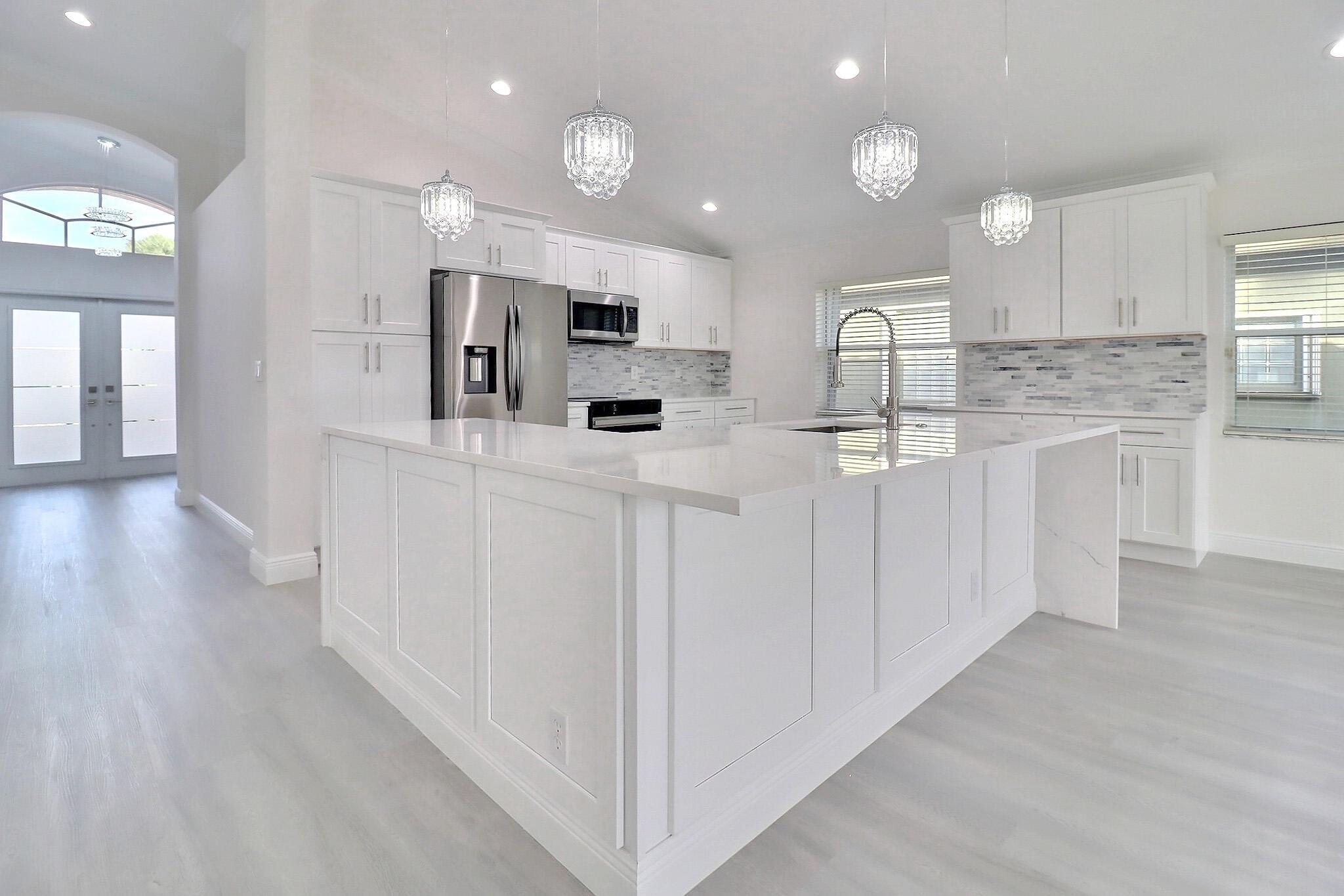 Fully renovated 3/2 home with a 2 car garage in the vibrant 55+ Ponte Vecchio community. This open-concept, split-bedroom floor plan boasts a BRAND NEW ROOF, newer AC (2020), & water heater (2022). The stunning kitchen features white shaker cabinets, calacatta quartz countertops, a waterfall-edge island, & brand-new appliances. Modern flooring, crystal light fixtures, & crown molding add elegance throughout. Luxurious bathrooms offer quartz countertops, a soaking tub, & a glass-enclosed shower. Enjoy privacy on the screened-in lanai overlooking a canal. Accordion shutters provide peace of mind. The active community includes a newly updated clubhouse, resort-style pool, spa, fitness center, pickleball, tennis, billiards, card rooms, arts & crafts, and more! HOA covers landscaping, cable &