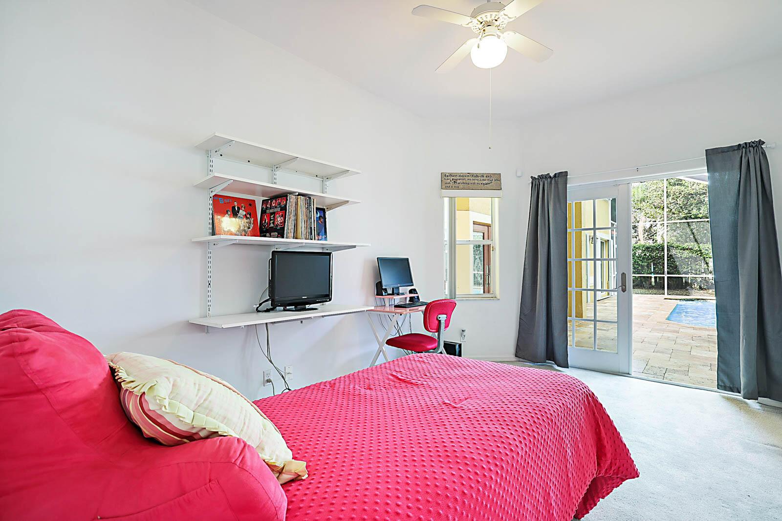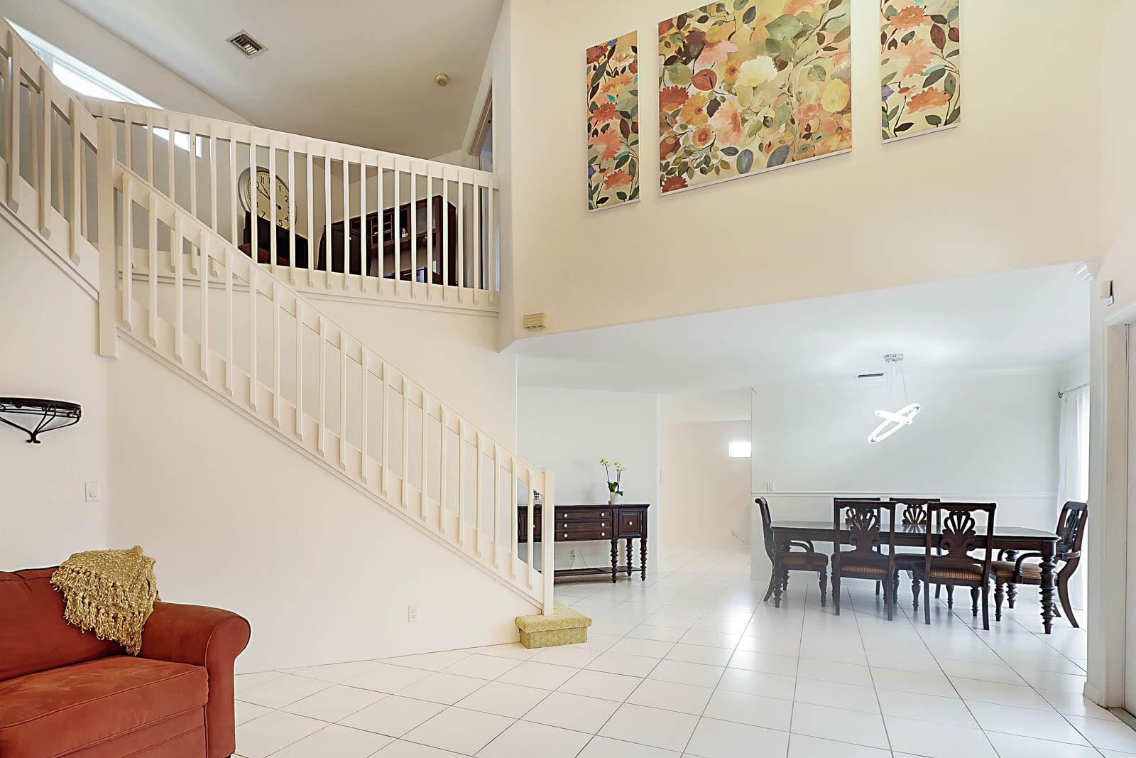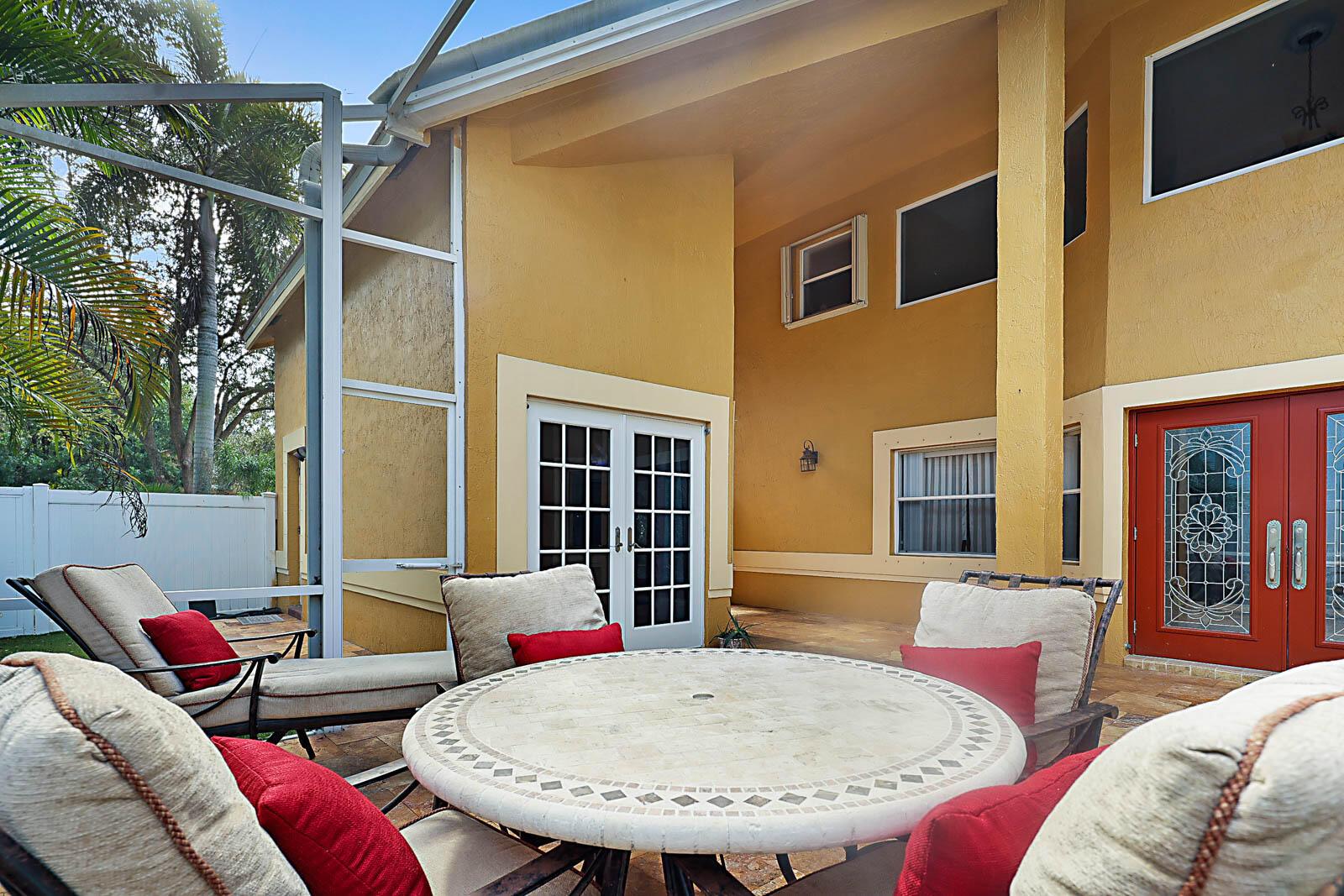 BRAND NEW ROOF! Your dream home awaits in prestigious Sable Pass! This 4-bedroom, 3.5-bathroom gem located in one of South Florida’s top school districts. The unique design includes a courtyard with a heated pool and a cabana-style ground-floor bedroom, perfect for guests or in-laws. Situated on one of the largest lots in the neighborhood, the property features a turfed firepit area, yard space for pets, or a swing set. Inside, you’ll find soaring ceilings, a stunning staircase, and a spacious master suite with his-and-hers walk-in closets. Sable Pass is the perfect community for families to grow and thrive. This isn’t just a house–it’s your future home!
