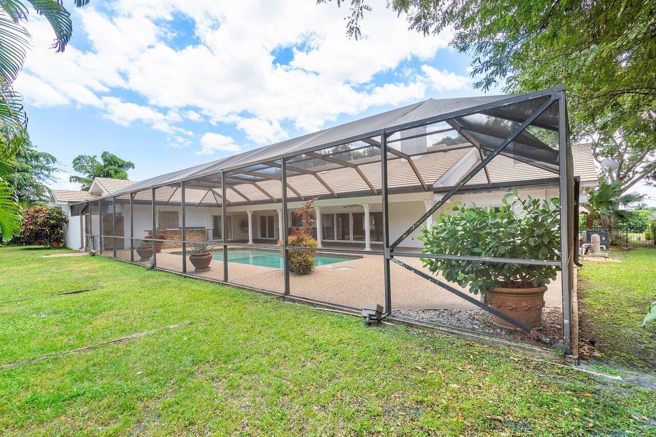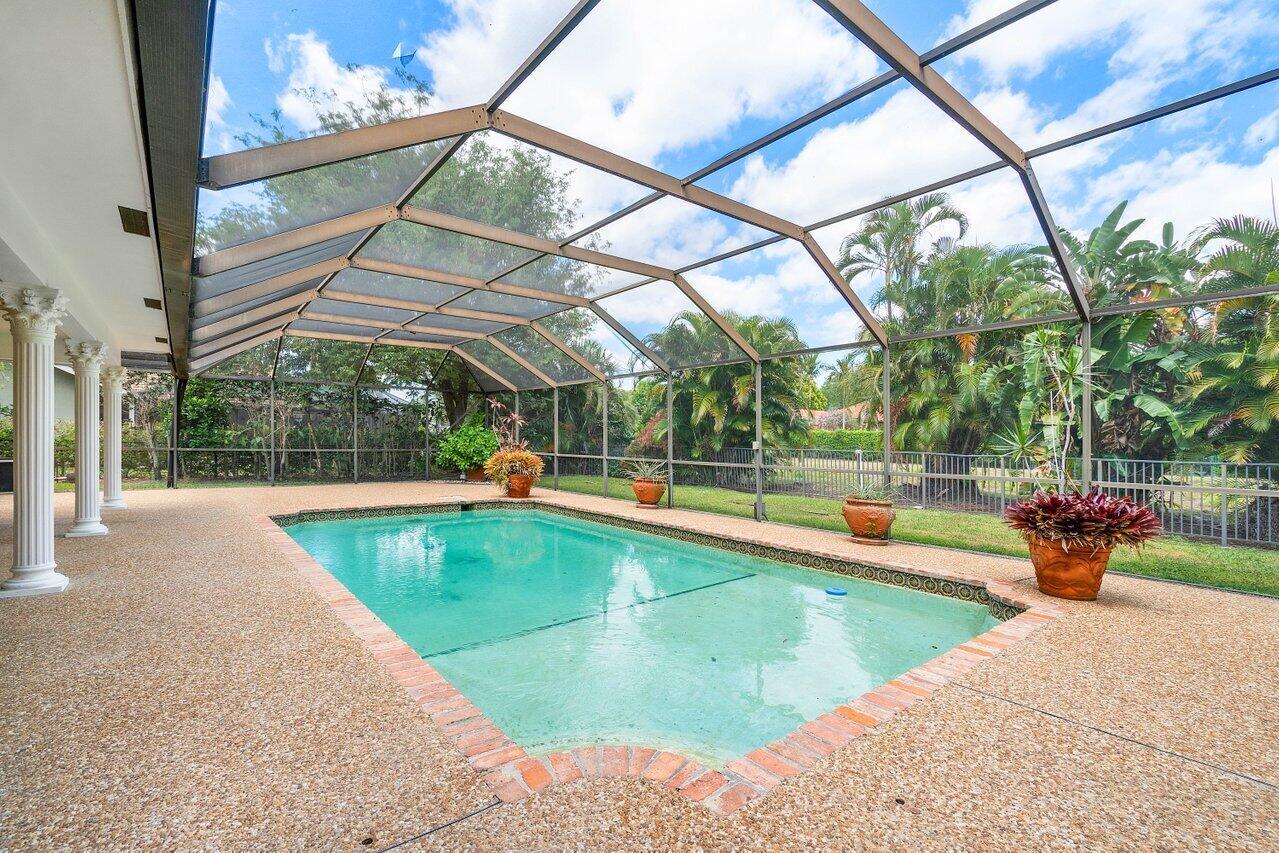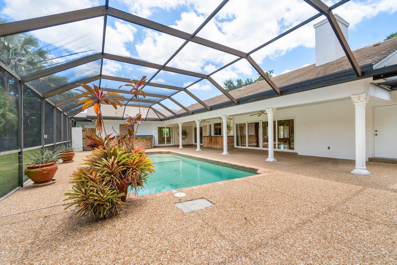 Best opportunity in the esteemed Woodfield Hunt Club community of Boca Raton. This home has 5 bedrooms, each featuring en suite bath offering comfort and privacy. Vaulted ceilings and plantation shutters, hurricane windows, private lot with pool and all potential for outdoor entertainment. Neighborhood amenities include a clubhouse, tennis courts, basketball courts, playground, and fitness center. Zoned for the best public schools in Boca and close to great private schools.