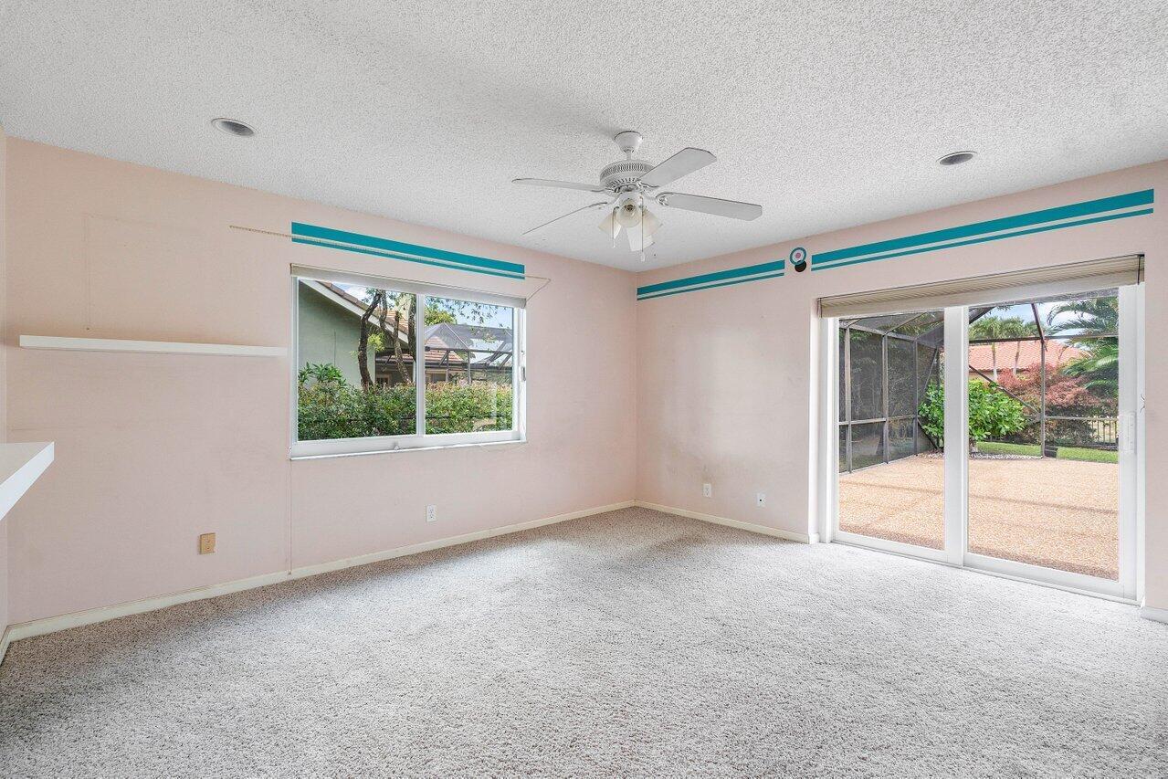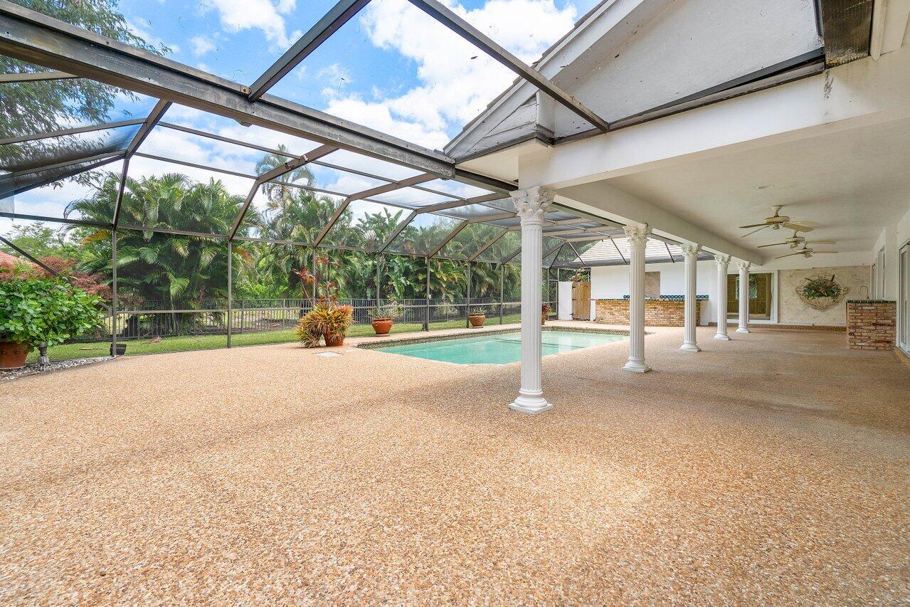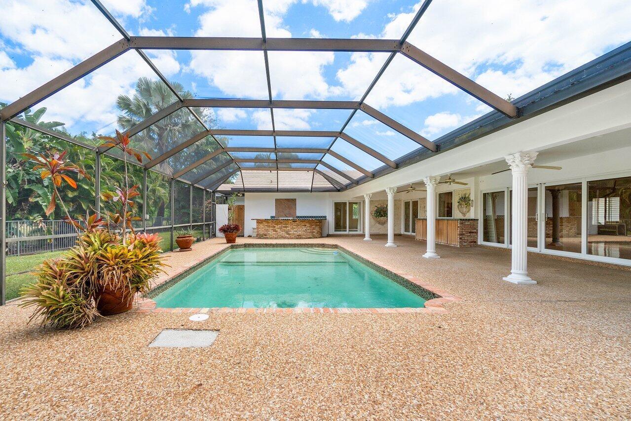 Best opportunity in the esteemed Woodfield Hunt Club community of Boca Raton. This home has 5 bedrooms, each featuring en suite bath offering comfort and privacy. Vaulted ceilings and plantation shutters, hurricane windows, private lot with pool and all potential for outdoor entertainment. Neighborhood amenities include a clubhouse, tennis courts, basketball courts, playground, and fitness center. Zoned for the best public schools in Boca and close to great private schools.
