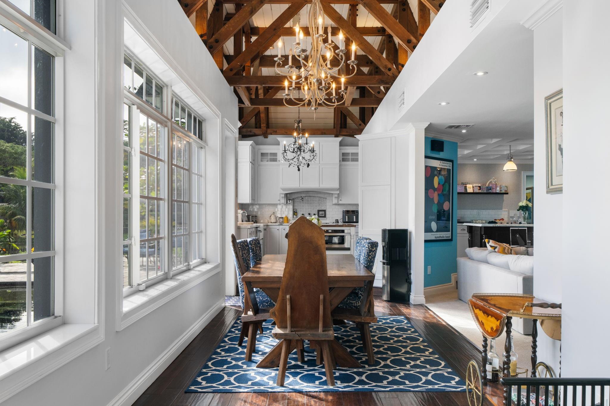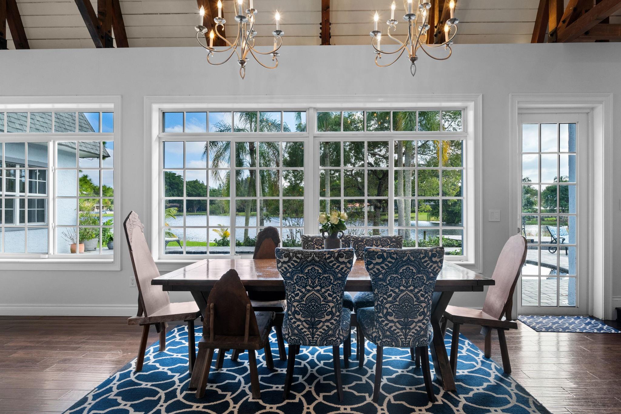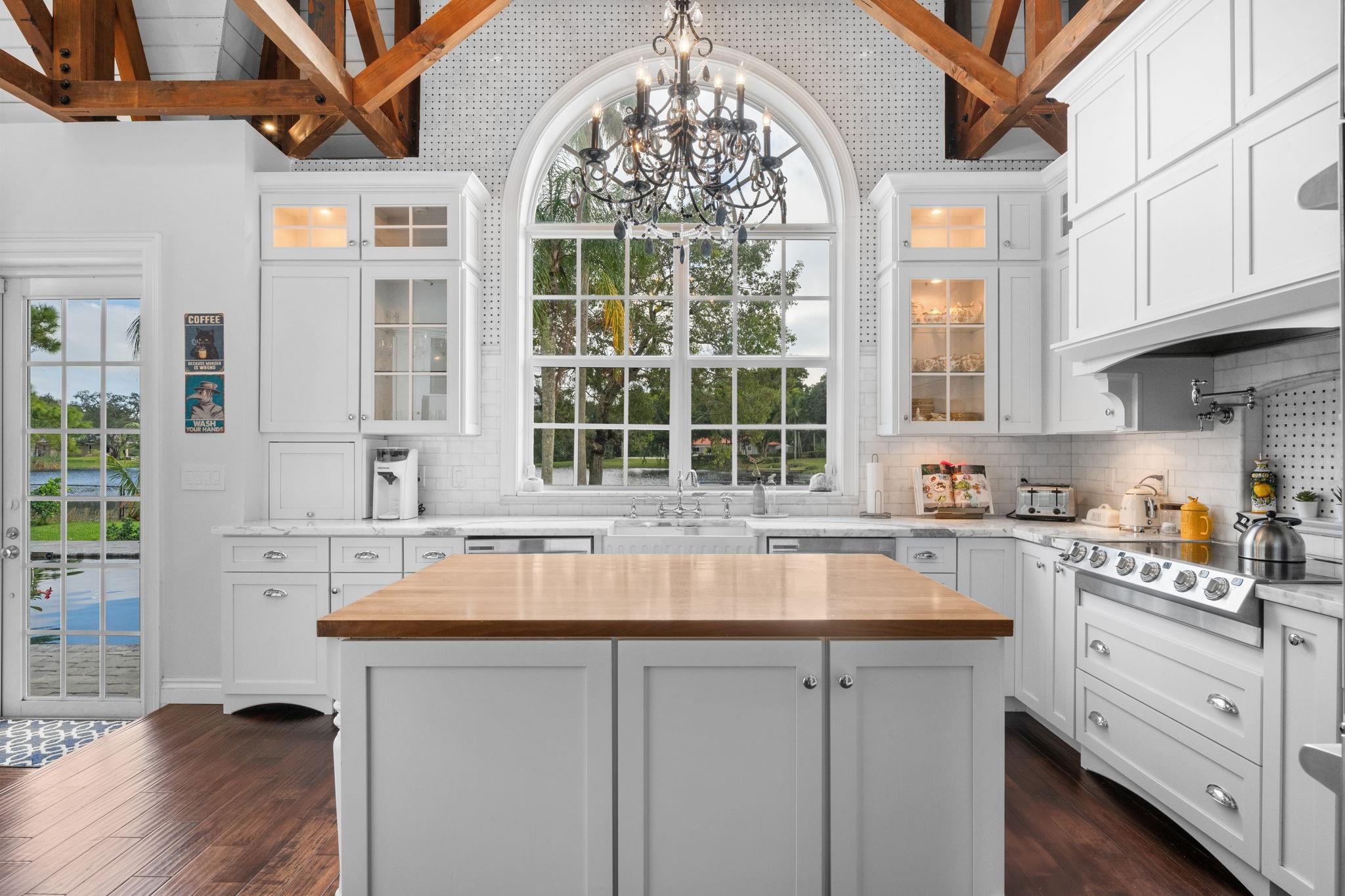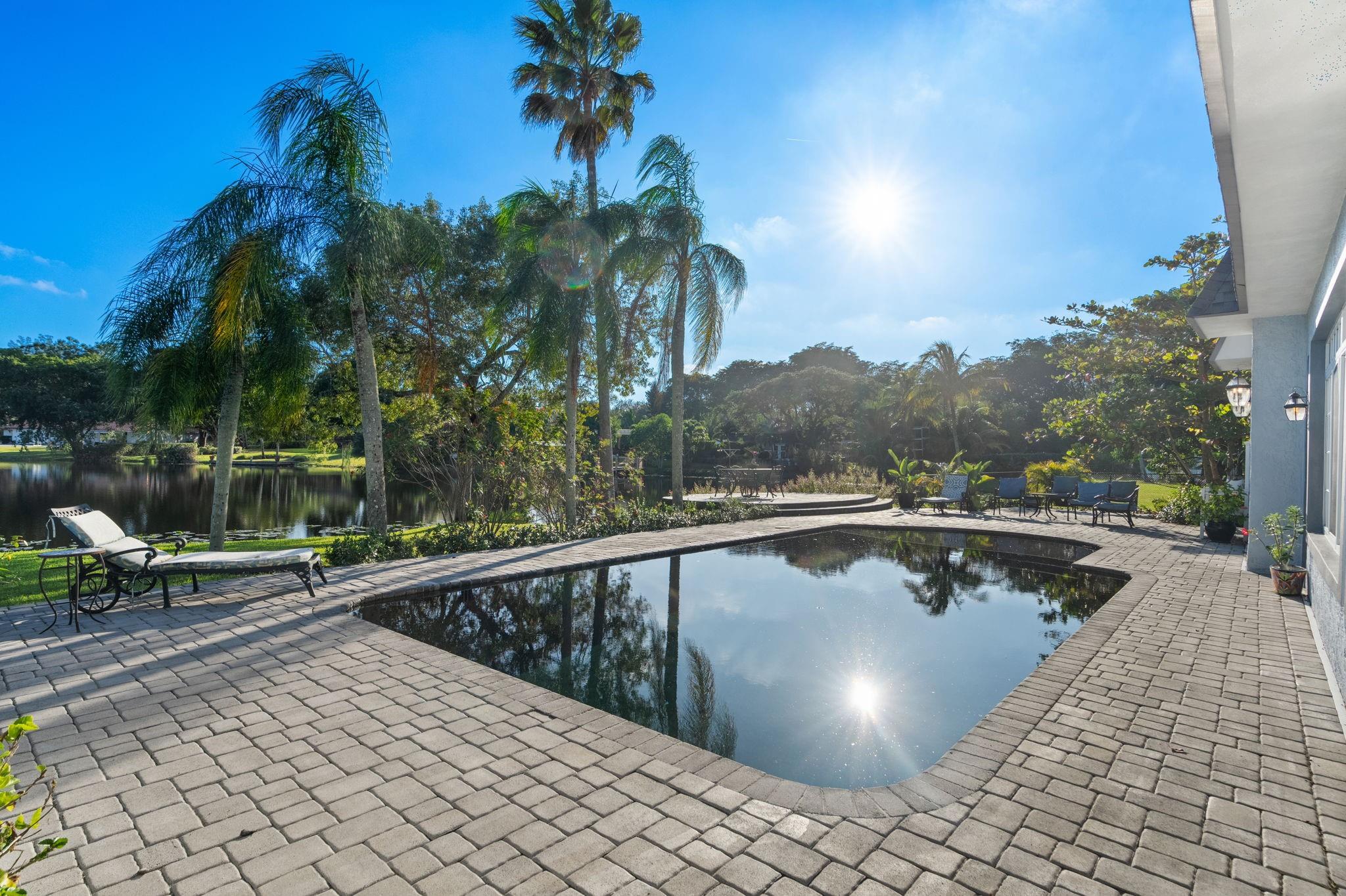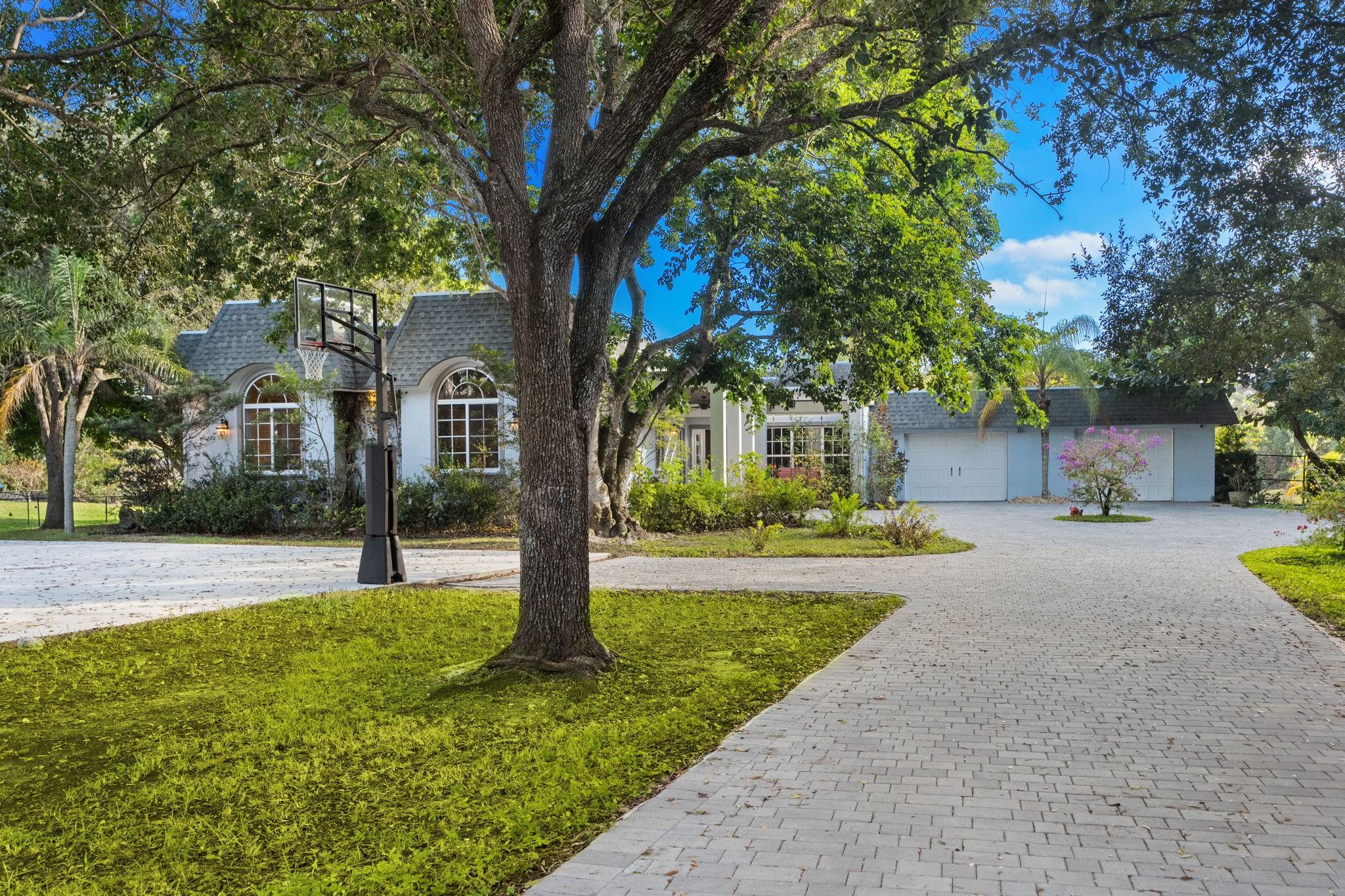 Experience modern luxury and timeless charm in this stunning 5-bed, 4-bath lakefront retreat in Davie. Seamlessly blending refined elegance with relaxed sophistication, offering a generous 5,100 of living space, this home boasts soaring A-frame ceilings and a touch of Country French allure sitting on a .84 acre lot. The open-concept design is flooded with natural light, showcasing a chef’s dream kitchen with Carrara marble counters, a butcher block island, and impeccable finishes. The primary offers a spa-like retreat, impact windows, crown molding, and a wood-burning fireplace—add timeless character. Step outside to your private tropical paradise, complete with a lushly landscaped yard, a sparkling sea-blue saltwater pool with a sun shelf, private basketball court and endless lake views.