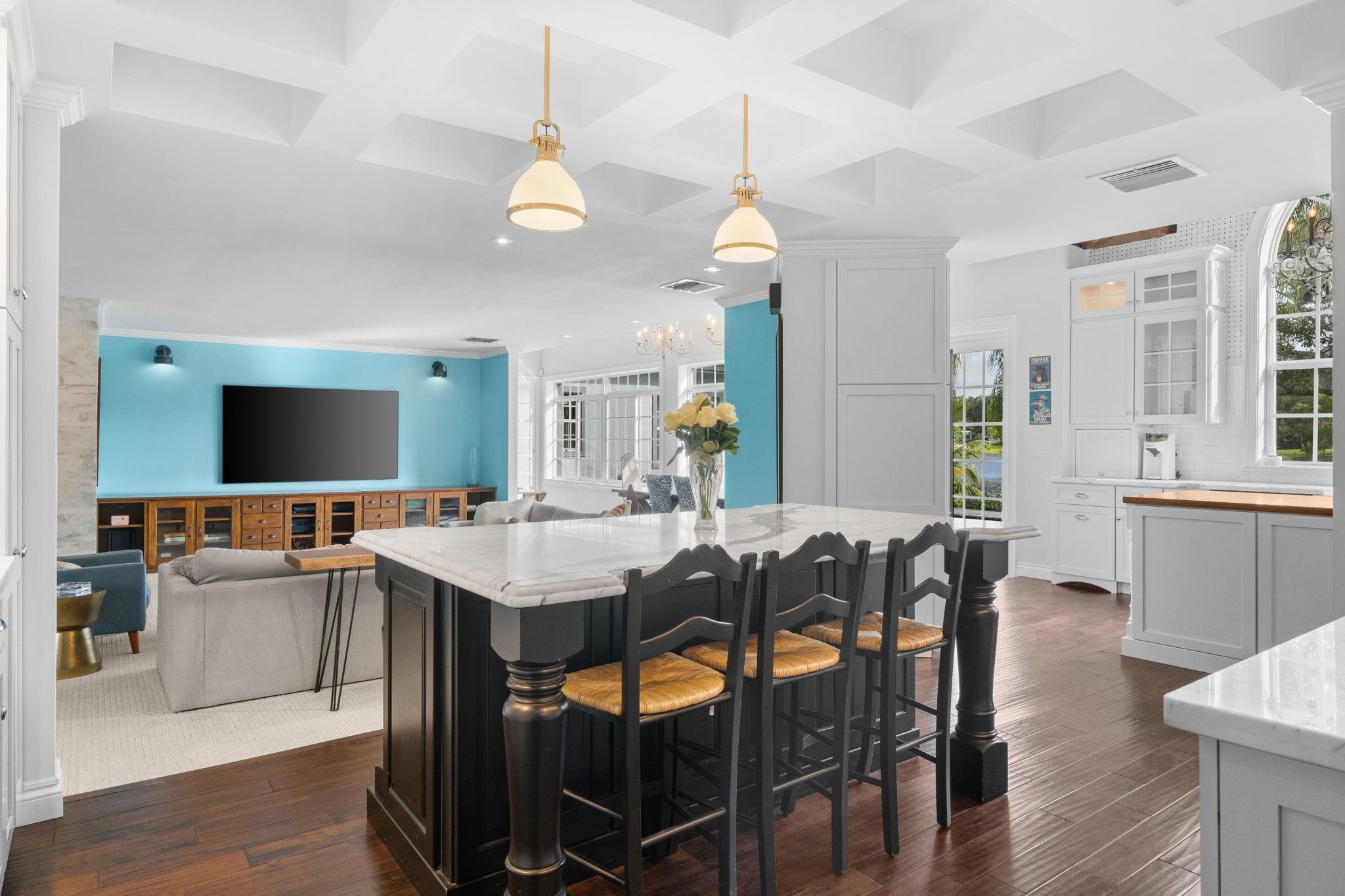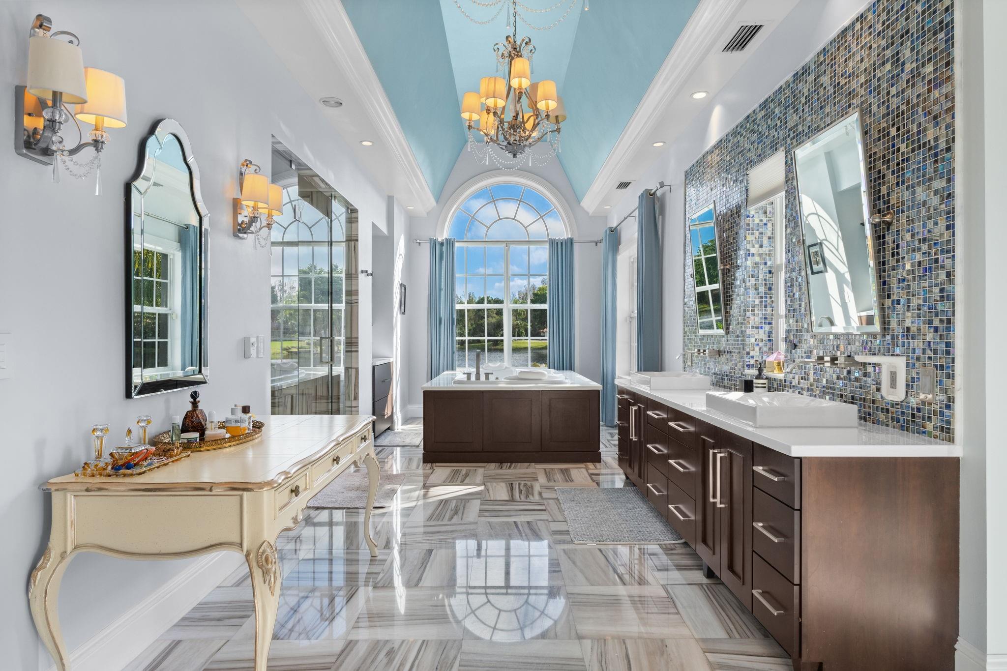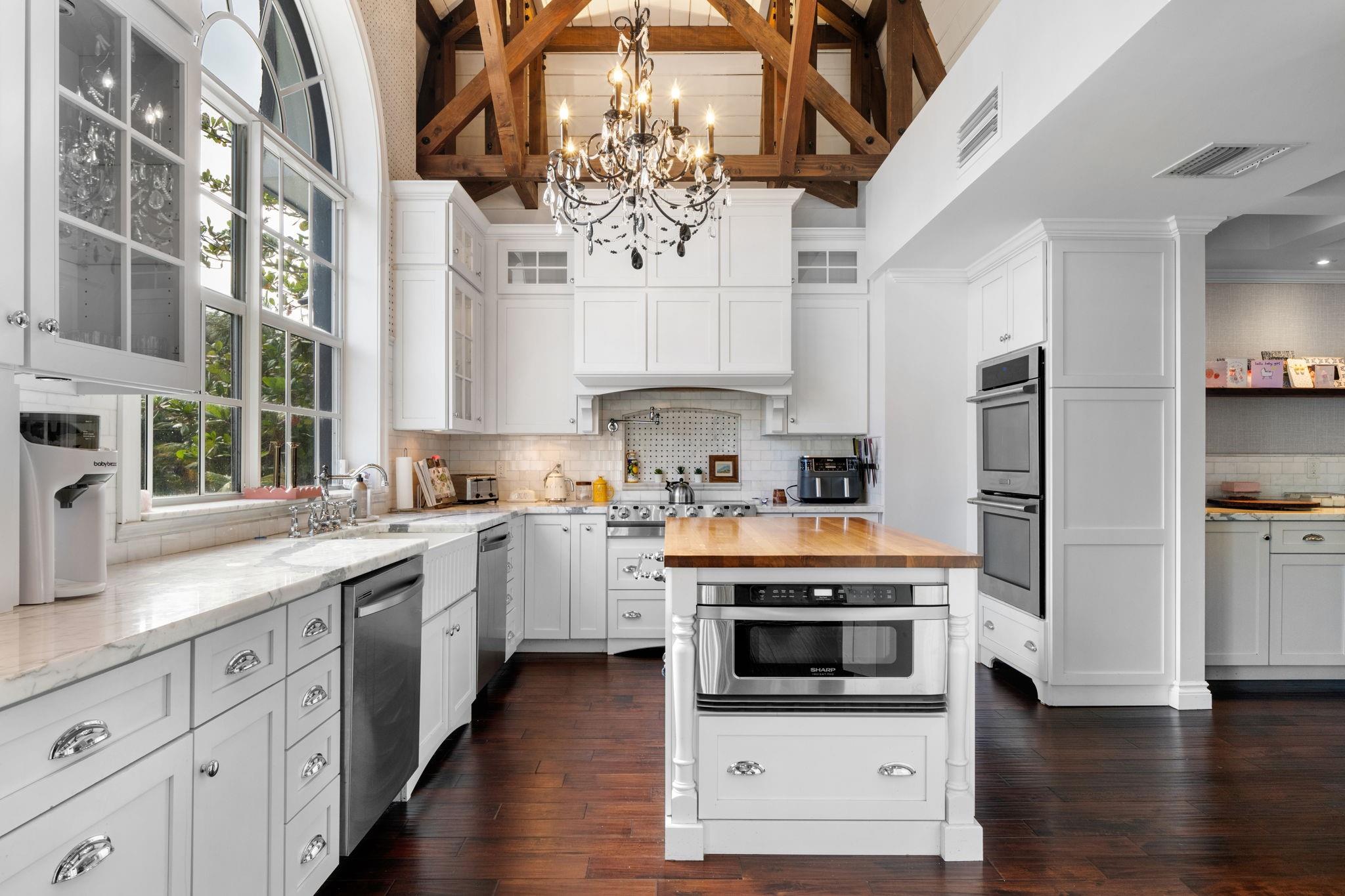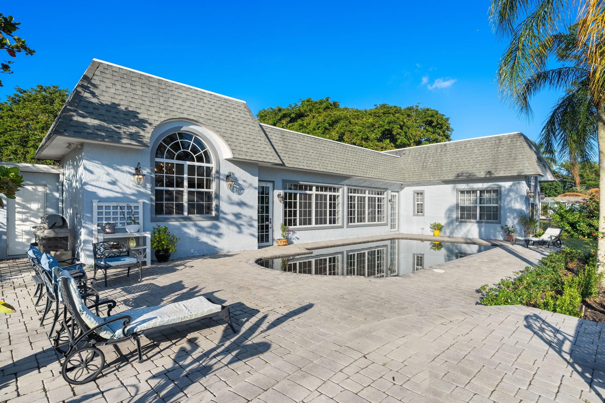 Experience modern luxury and timeless charm in this stunning 5-bed, 4-bath lakefront retreat in Davie. Seamlessly blending refined elegance with relaxed sophistication, offering a generous 5,100 of living space, this home boasts soaring A-frame ceilings and a touch of Country French allure sitting on a .84 acre lot. The open-concept design is flooded with natural light, showcasing a chef’s dream kitchen with Carrara marble counters, a butcher block island, and impeccable finishes. The primary offers a spa-like retreat, impact windows, crown molding, and a wood-burning fireplace—add timeless character. Step outside to your private tropical paradise, complete with a lushly landscaped yard, a sparkling sea-blue saltwater pool with a sun shelf, private basketball court and endless lake views.
