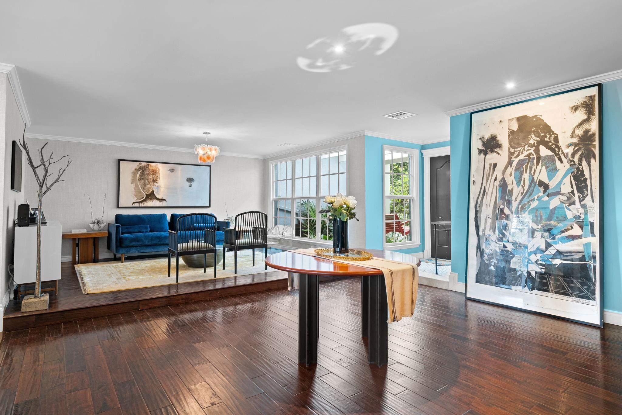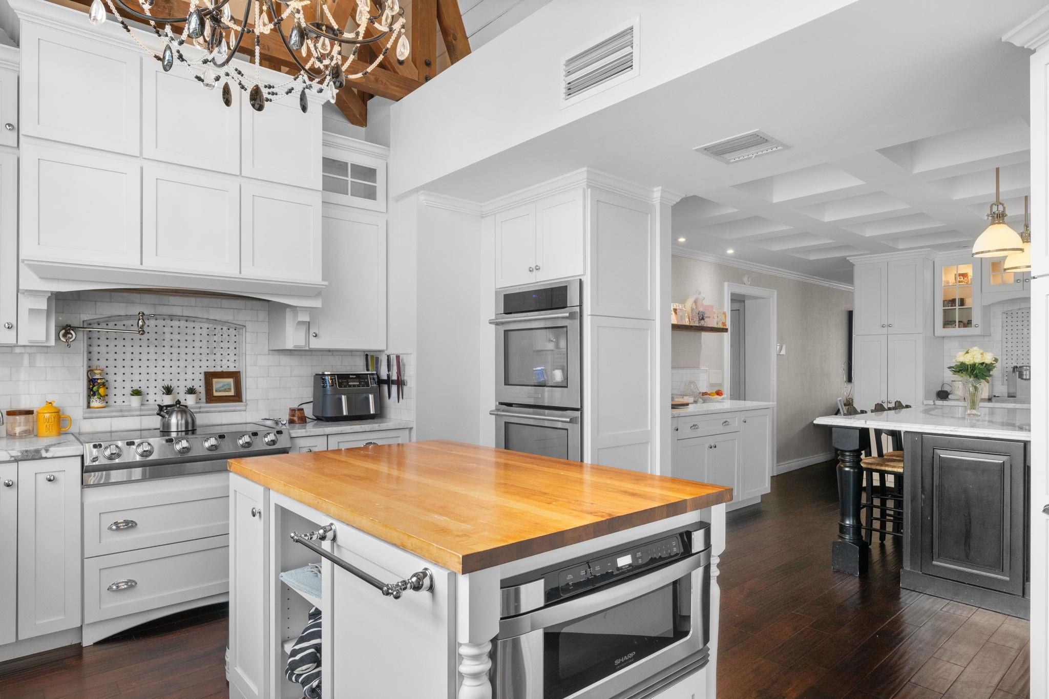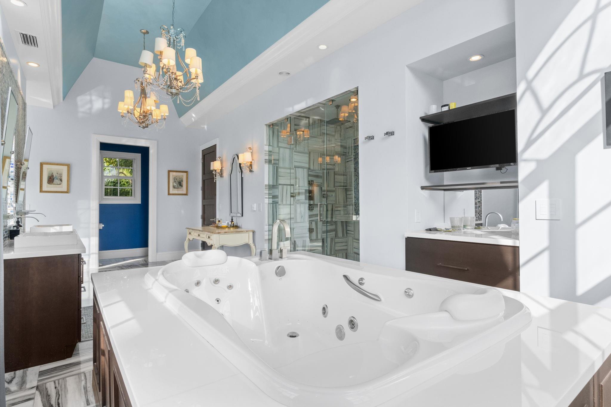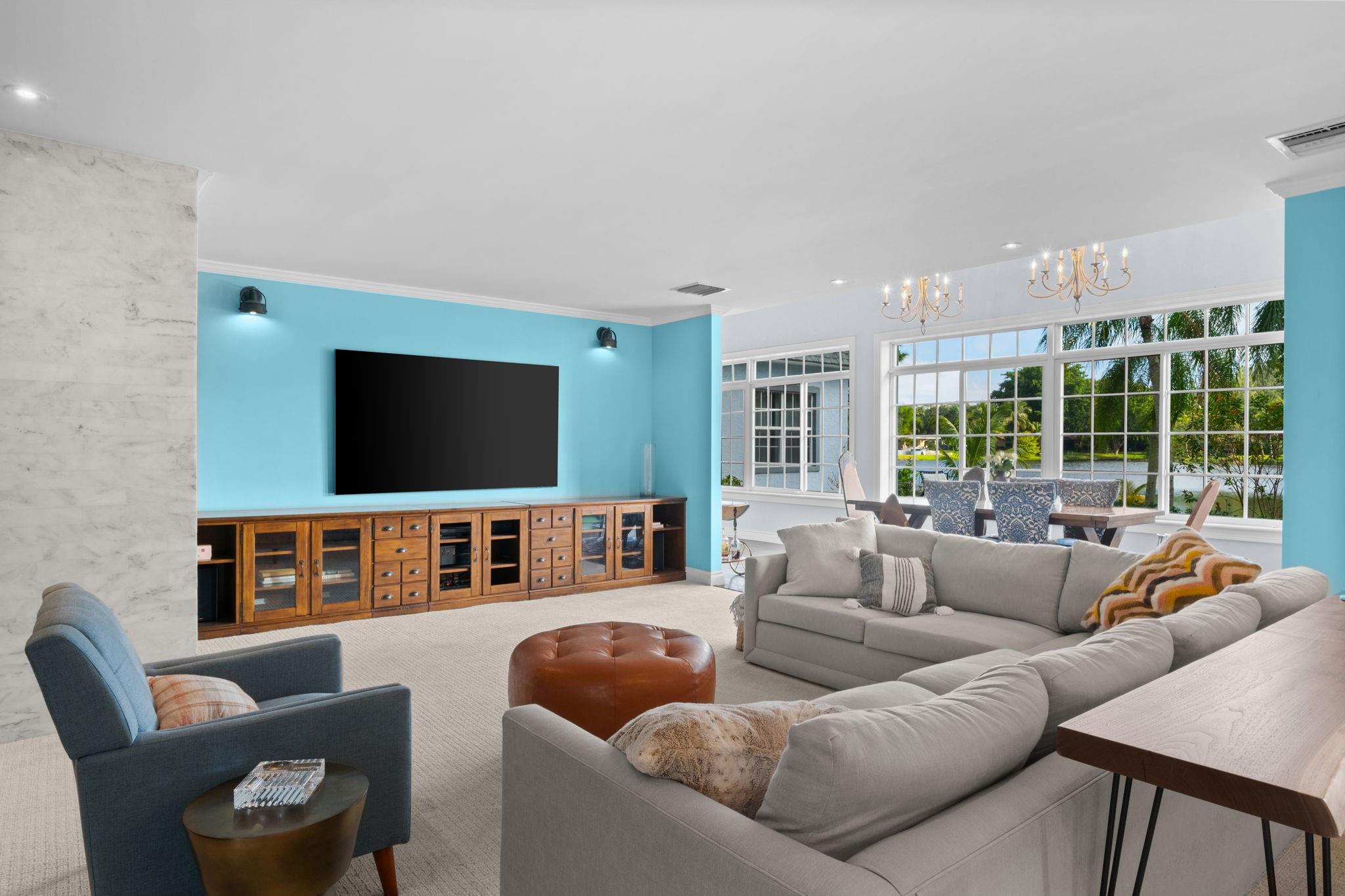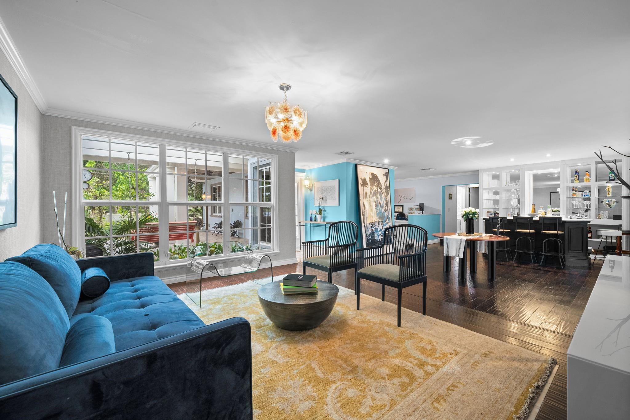 Experience modern luxury and timeless charm in this stunning 5-bed, 4-bath lakefront retreat in Davie. Seamlessly blending refined elegance with relaxed sophistication, offering a generous 5,100 of living space, this home boasts soaring A-frame ceilings and a touch of Country French allure sitting on a .84 acre lot. The open-concept design is flooded with natural light, showcasing a chef’s dream kitchen with Carrara marble counters, a butcher block island, and impeccable finishes. The primary offers a spa-like retreat, impact windows, crown molding, and a wood-burning fireplace—add timeless character. Step outside to your private tropical paradise, complete with a lushly landscaped yard, a sparkling sea-blue saltwater pool with a sun shelf, private basketball court and endless lake views.