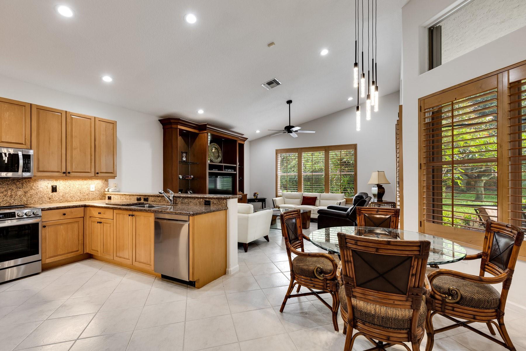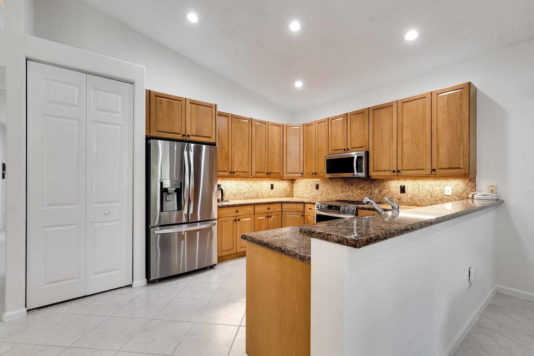 This expansive, pie-shaped premium lot in the highly sought-after VI community offers ultimate privacy with NO back neighbors! This well-maintained 4-bedroom and 2.5-bathroom Madrid Model home is beautifully surrounded by lush landscaping, with ample space for a pool. The kitchen is a chef’s dream with 42” wood cabinets, granite countertops, and newer stainless steel appliances. The oversized family room, enhanced by plantation shutters, offers a stunning, private view. The spacious primary bedroom includes both his and her closets. Start your day with breathtaking sunrises from the covered, screened lanai. Best of all, you’re just a short walk from the recently renovated clubhouse featuring a Bistro and a wide range of amenities!