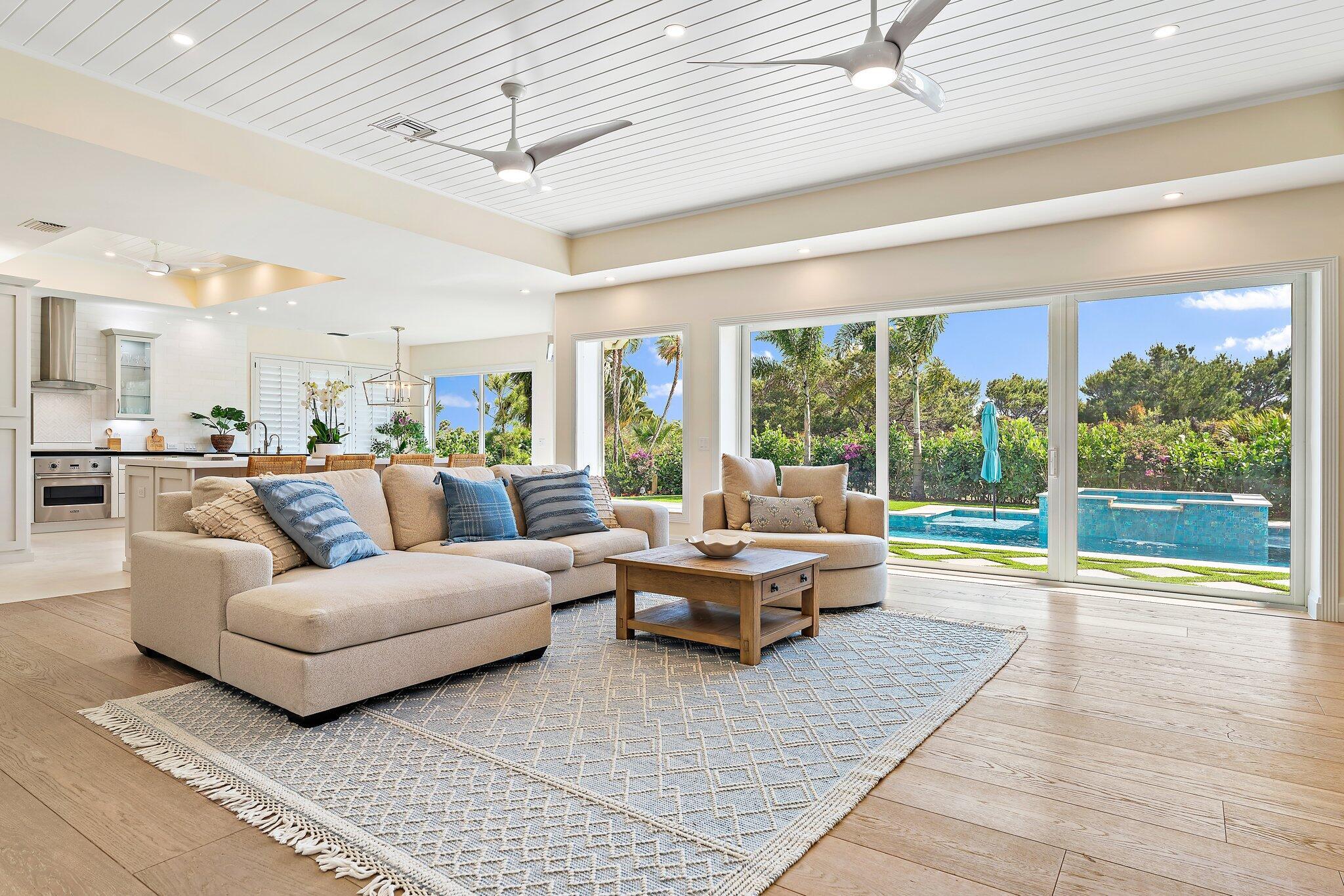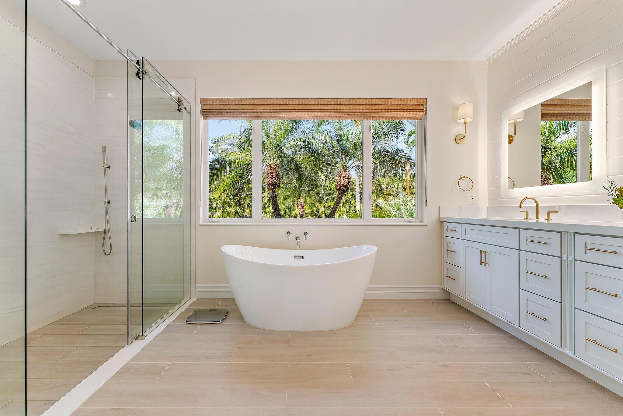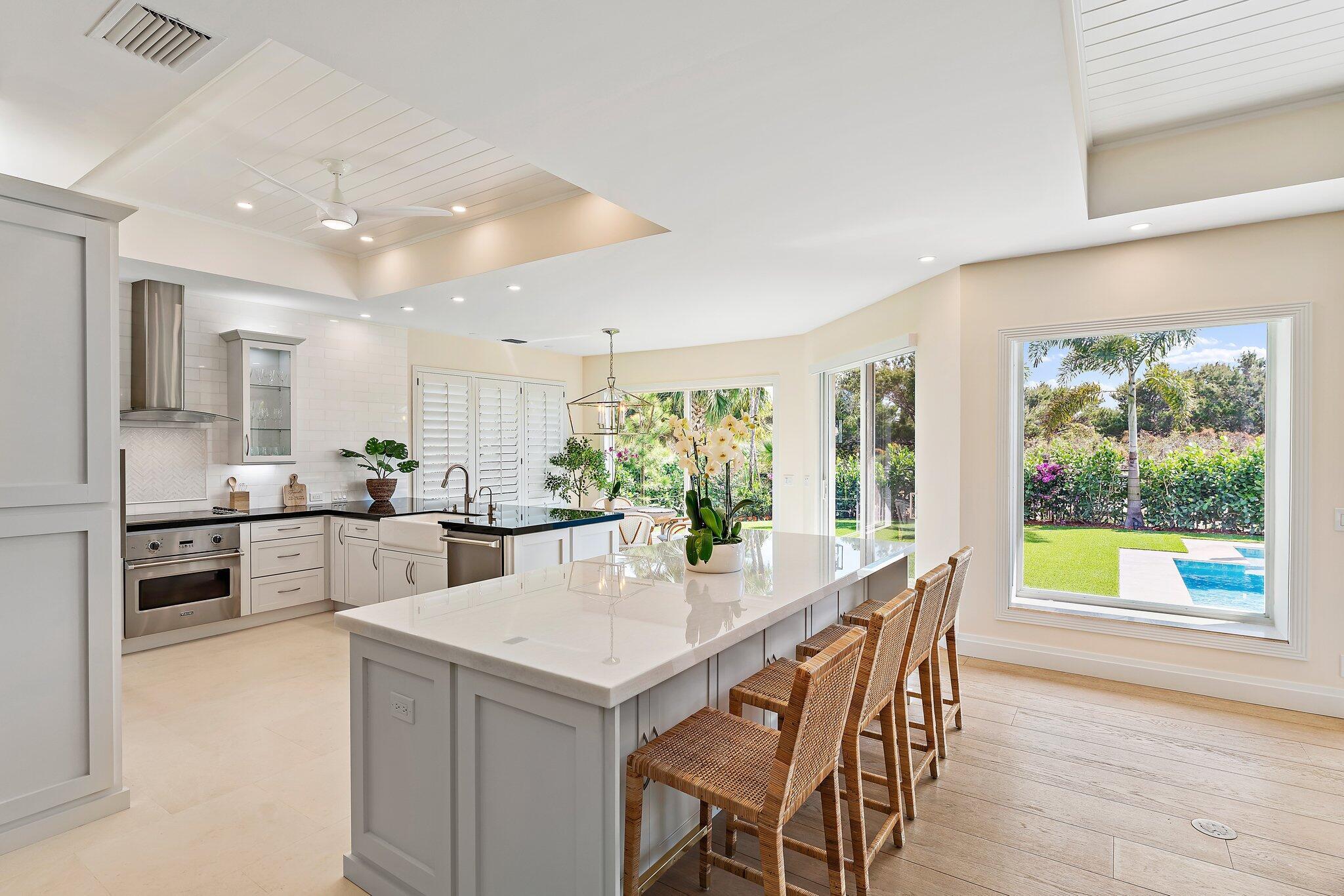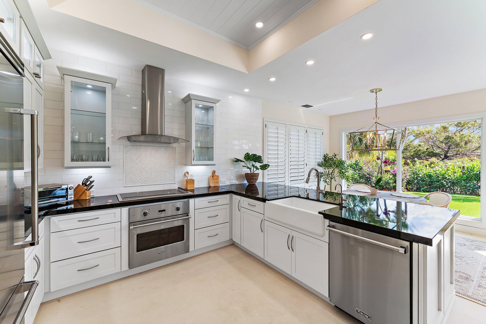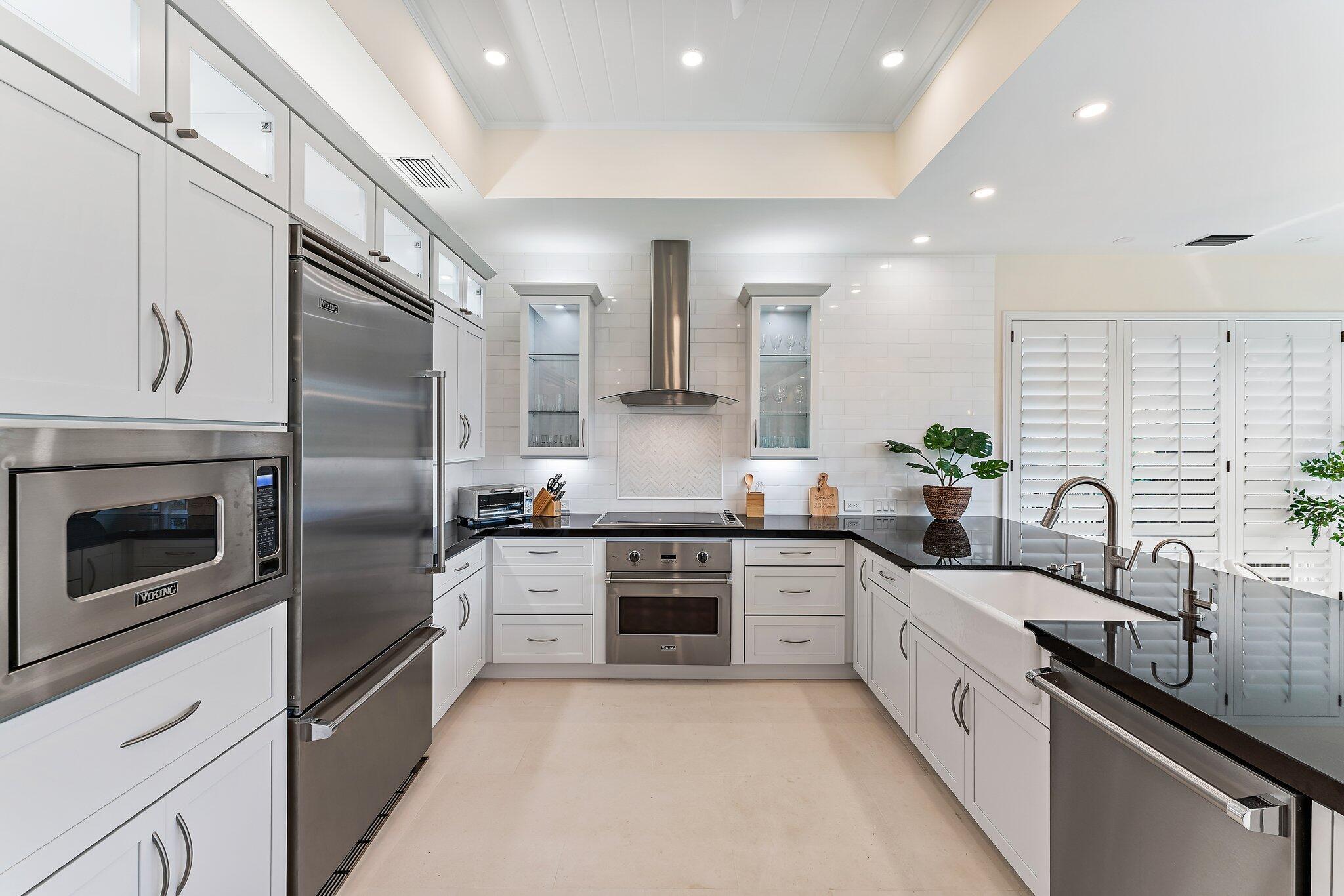 Introducing a private tropical paradise that overlooks a nature preserve, offering serene views of stunning sunrises and sunsets to provide a resort-like experience. The newly remodeled in 2023 one story 3 bedroom, 2 bathroom home in Tequesta was thoughtfully reimagined with luxury finishes. Designer touches create a sophisticated and elegant atmosphere with beautiful French oak flooring and limestone flooring throughout the property. The kitchen is equipped with top-of-the-line Viking appliances, a farmhouse sink, and elegant black granite and white crystal natural stone countertops. The owner’s suite bathroom features a soaking tub , double sink and a large seamless glass shower. New exterior paint. New impact, sliders, and impact front door. The newly landscaped property features a