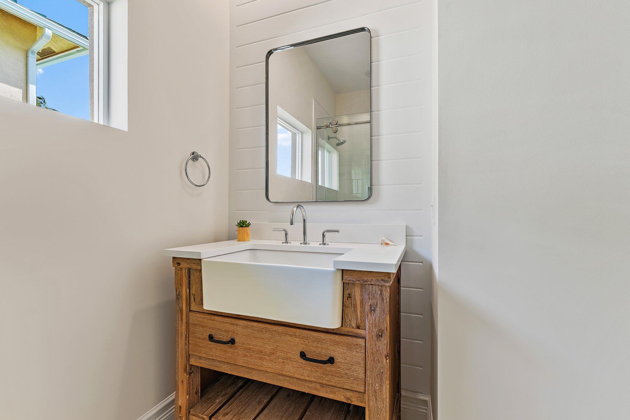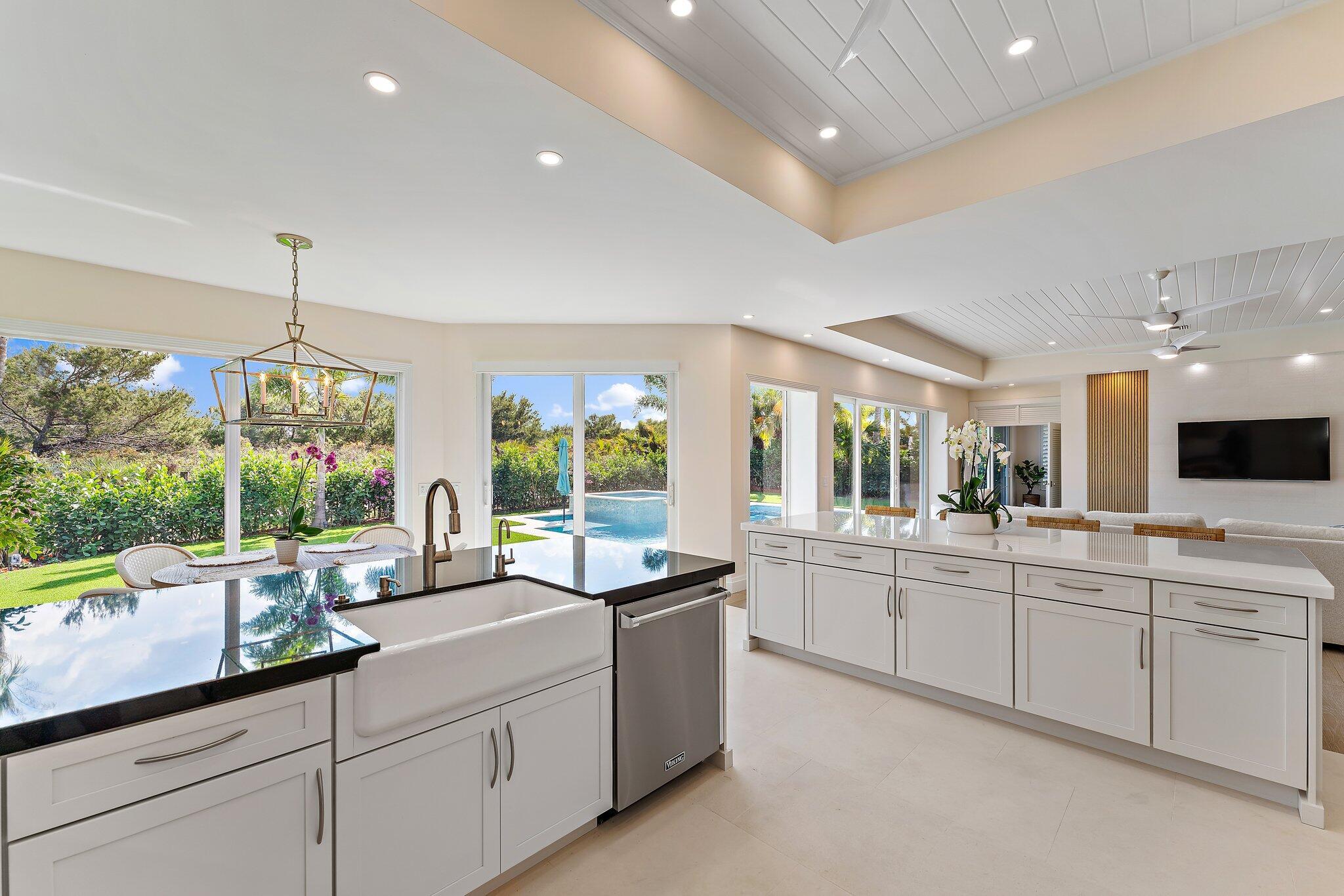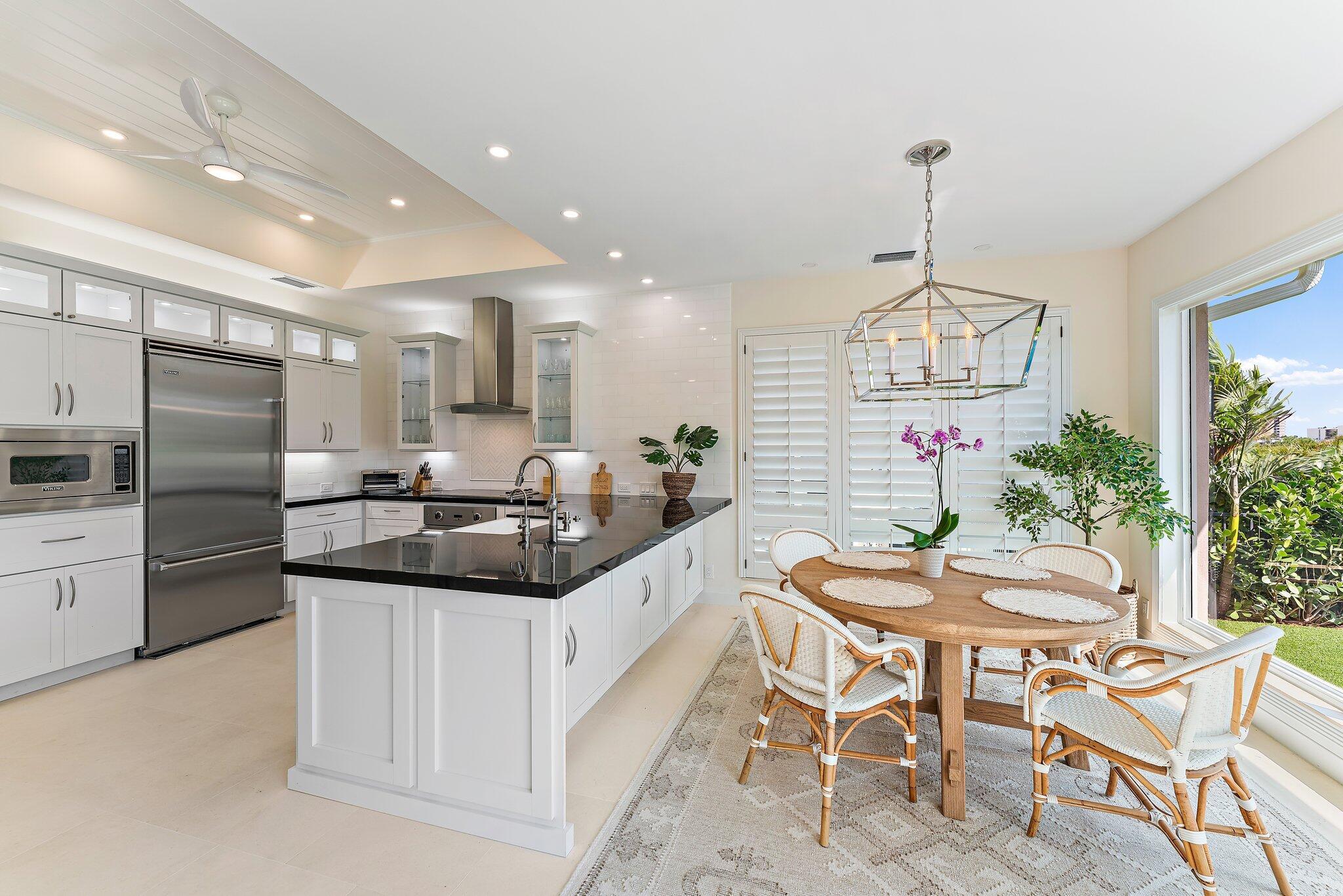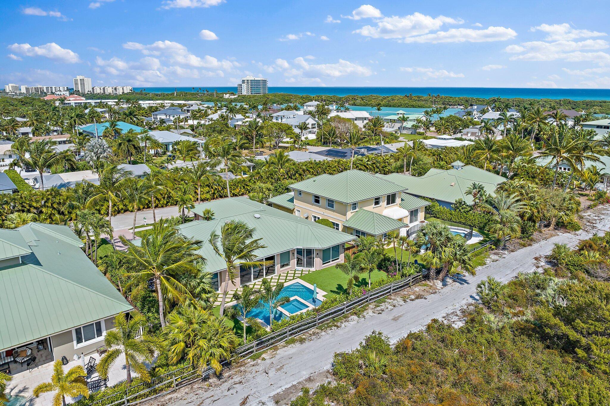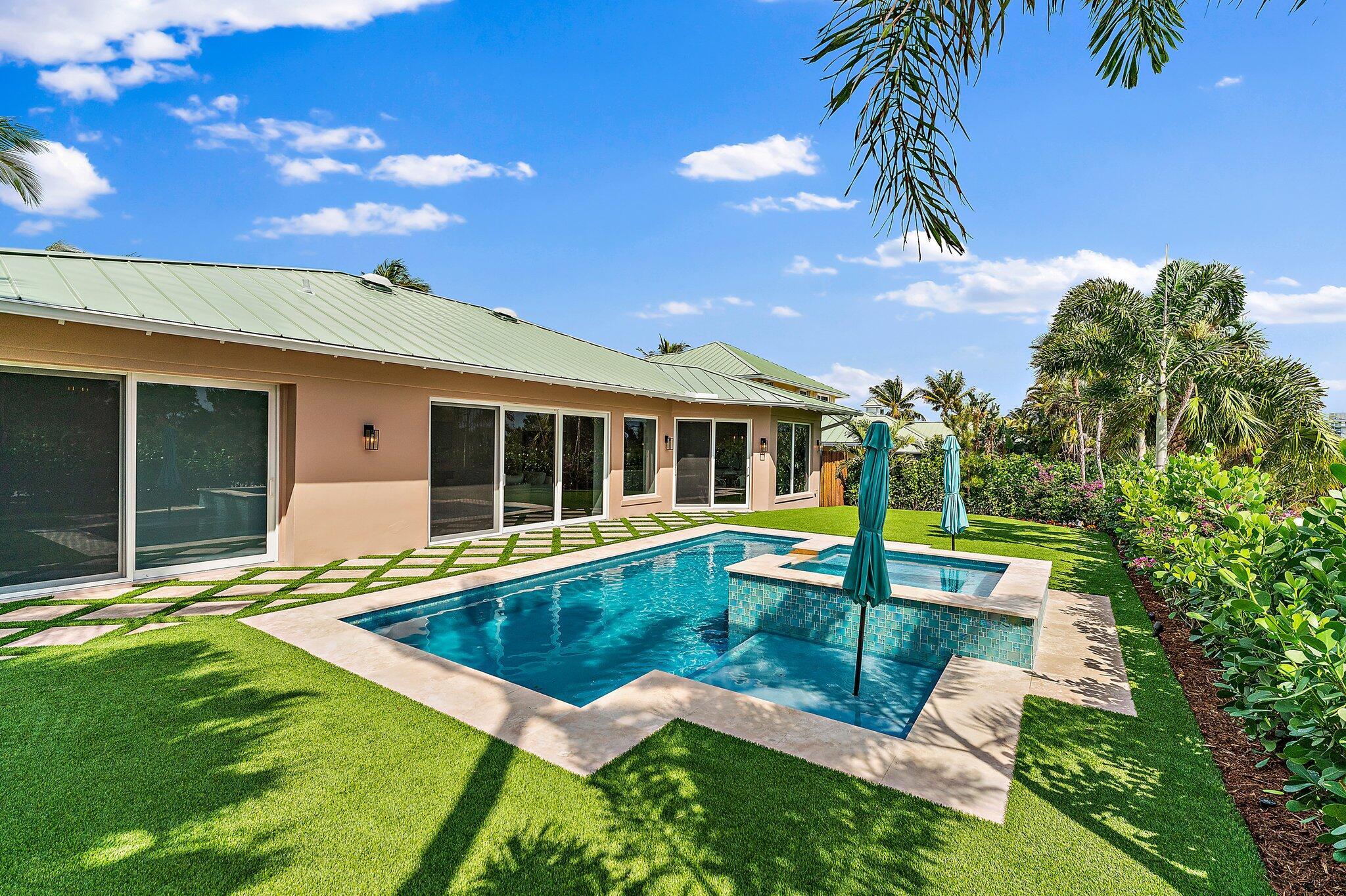 Introducing a private tropical paradise that overlooks a nature preserve, offering serene views of stunning sunrises and sunsets to provide a resort-like experience. The newly remodeled in 2023 one story 3 bedroom, 2 bathroom home in Tequesta was thoughtfully reimagined with luxury finishes. Designer touches create a sophisticated and elegant atmosphere with beautiful French oak flooring and limestone flooring throughout the property. The kitchen is equipped with top-of-the-line Viking appliances, a farmhouse sink, and elegant black granite and white crystal natural stone countertops. The owner’s suite bathroom features a soaking tub , double sink and a large seamless glass shower. New exterior paint. New impact, sliders, and impact front door. The newly landscaped property features a