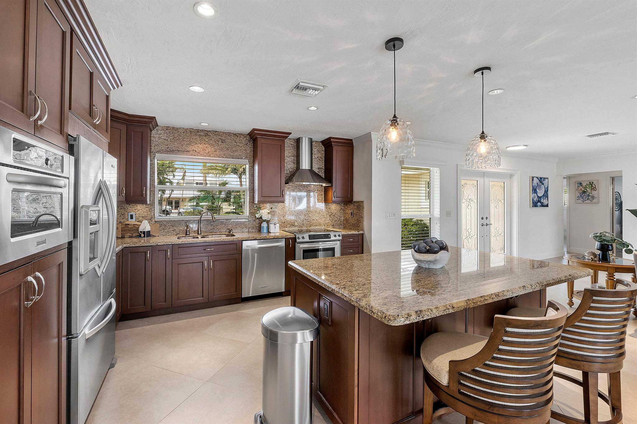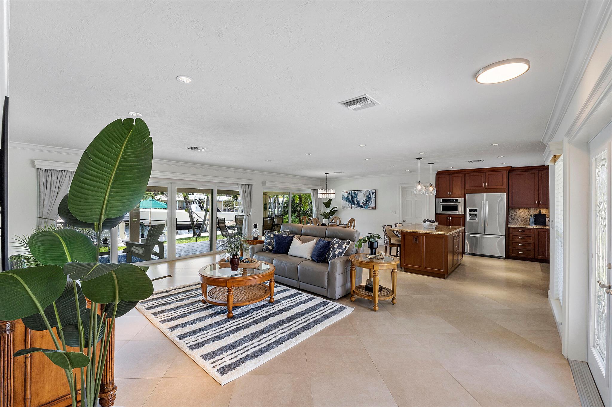 BEAUTIFUL Waterfront home offering a true Coastal Lifestyle with DIRECT OCEAN ACCESS, ideal for the boating enthusiast! This tropical retreat features- 3 Bedrooms, 2 Baths and 2 CG nestled on a private cul-de-sac street. Fabulous open concept living design, highlighted by sweeping views of the water and expansive outdoor living area upon entry! Light and Bright, w- diagonal tile throughout, Spacious Gourmet Kitchen with Custom Wood Cabinetry, soft close drawers, pull-out shelves, Granite, SS appliances and large center island. Notable upgrades include- NEW ROOF 2019, NEW 80′ Composite Dock 2020 w- Nautilus Dock lighting and underwater light control, NEW Daikin inverter A/C 2023 w- NEW Ducts and NEW attic insulation 2022. ALL IMPACT WINDOWS AND DOORS and NEWER 15,000 LB BOAT LIFT!