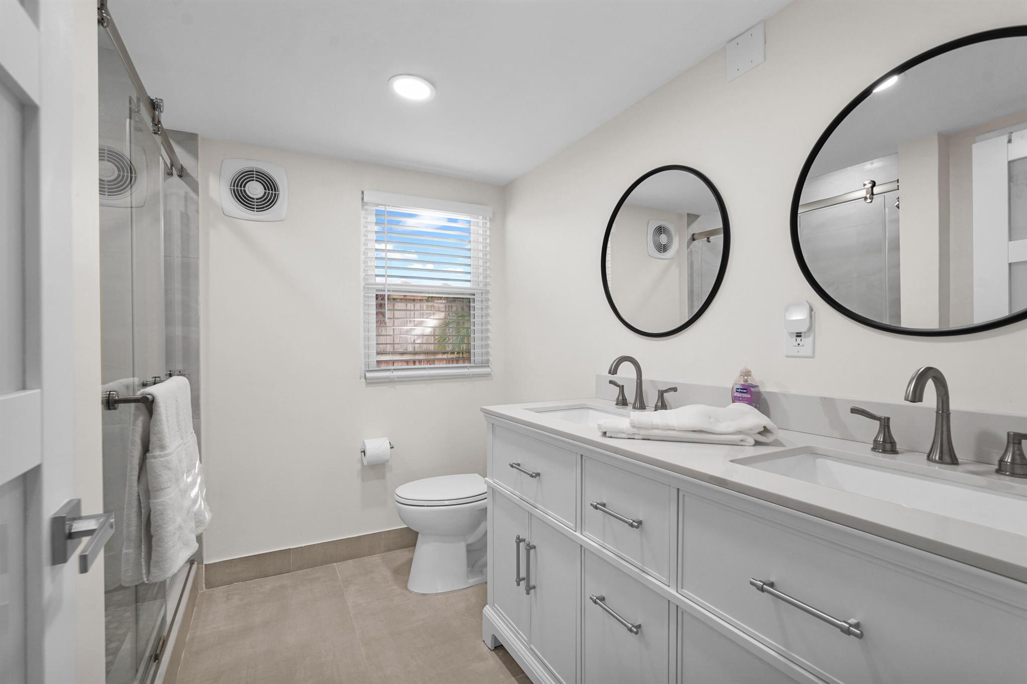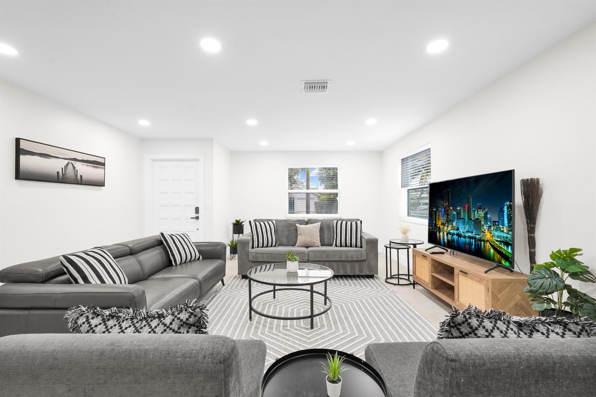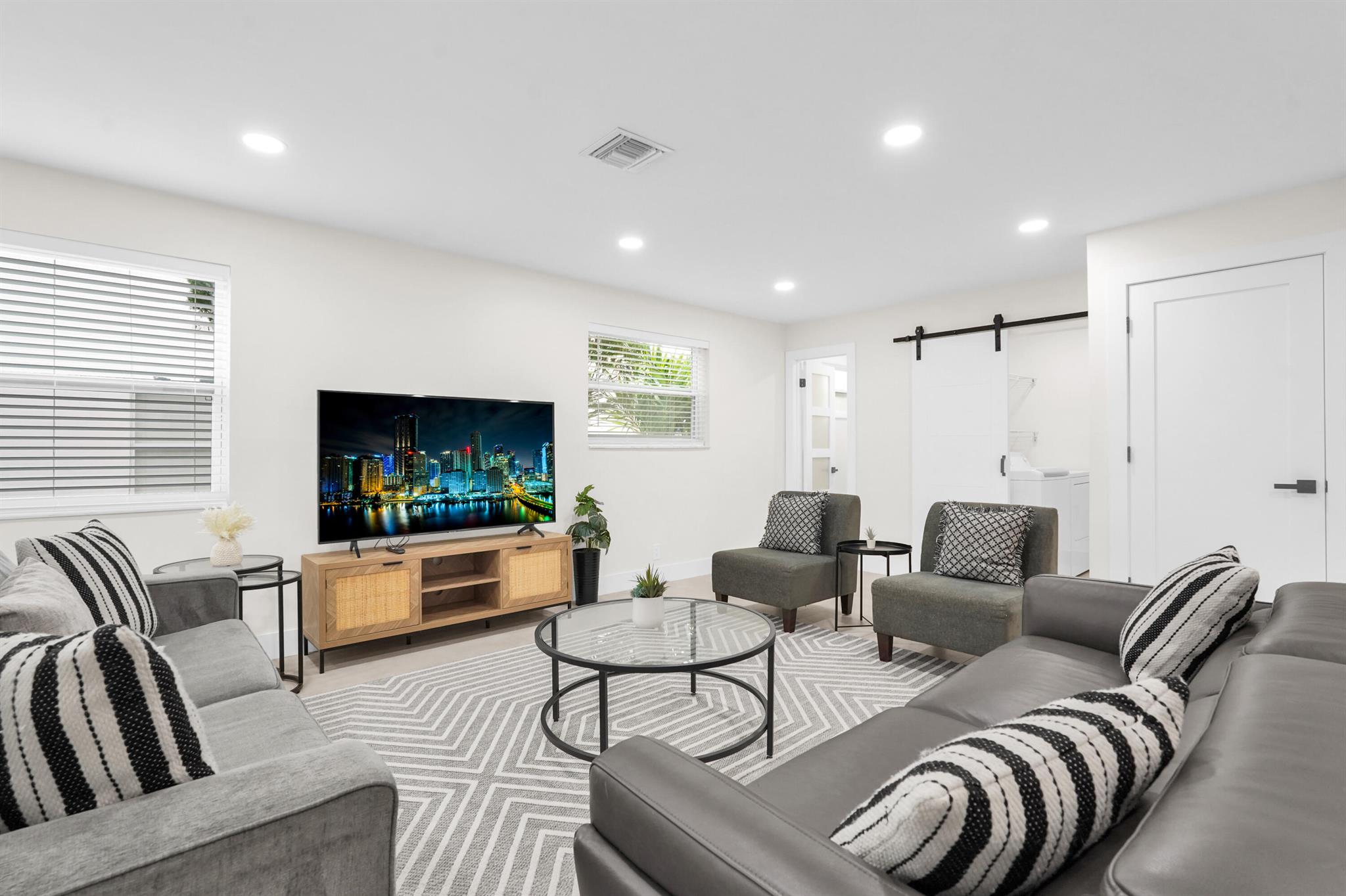 A rare gem in Delray Beach–two fully remodeled homes on one lot, offering exceptional flexibility for those seeking luxurious living or multi-generational accommodations. The Main House features 1,780 sf, w/ 3 spacious Bedrooms, a stylish Den, and 2.5 beautifully updated Bathrooms. The Guest House provides an additional 1,157 sf, boasting 3 Bedrooms, 1 Bathroom. Both homes come fully furnished and turnkey, ideal for immediate move-in or flexible rental opportunities.Each home is designed with modern convenience, featuring hurricane impact windows and doors, private entrances, dedicated laundry rooms, and gourmet kitchens with granite countertops and high-end stainless steel appliances. Upgraded A/C units, water heaters, smart locks, and separate utility meters for electricity and