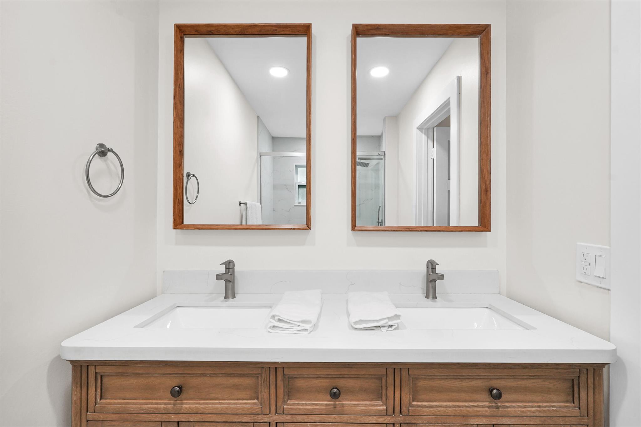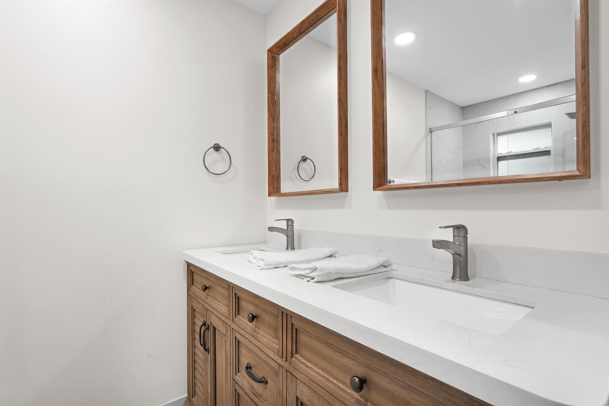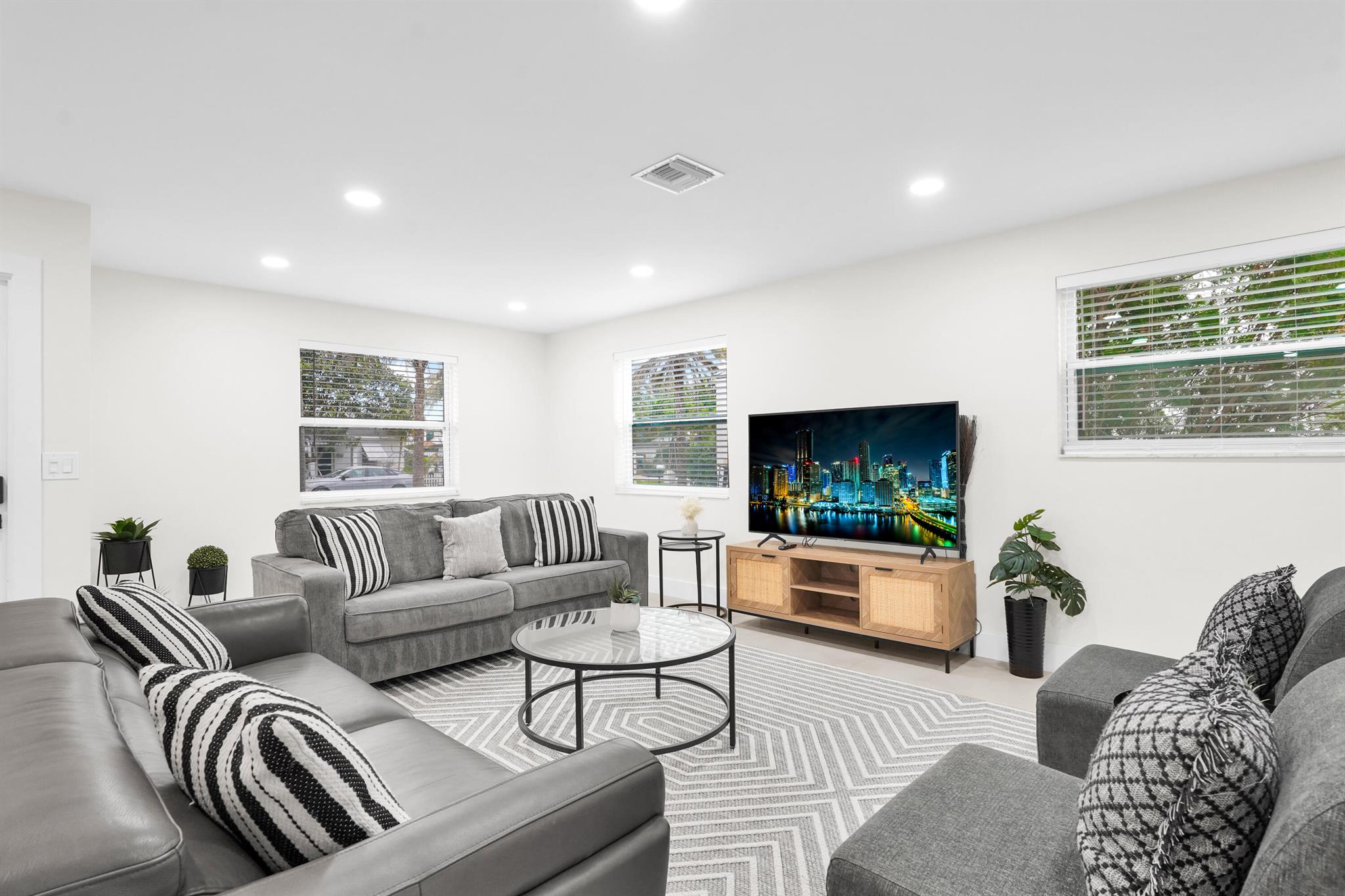 A rare gem in Delray Beach–two fully remodeled homes on one lot, offering exceptional flexibility for those seeking luxurious living or multi-generational accommodations. The Main House features 1,780 sf, w/ 3 spacious Bedrooms, a stylish Den, and 2.5 beautifully updated Bathrooms. The Guest House provides an additional 1,157 sf, boasting 3 Bedrooms, 1 Bathroom. Both homes come fully furnished and turnkey, ideal for immediate move-in or flexible rental opportunities.Each home is designed with modern convenience, featuring hurricane impact windows and doors, private entrances, dedicated laundry rooms, and gourmet kitchens with granite countertops and high-end stainless steel appliances. Upgraded A/C units, water heaters, smart locks, and separate utility meters for electricity and