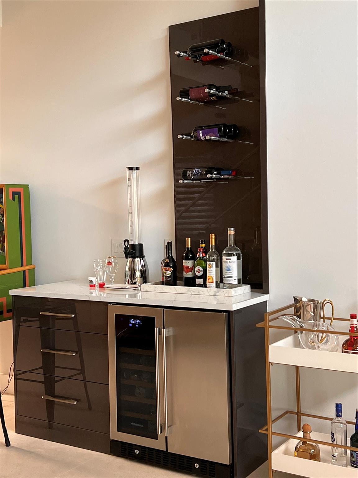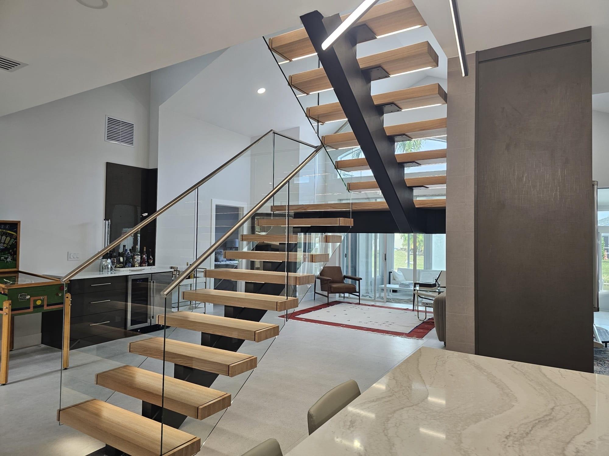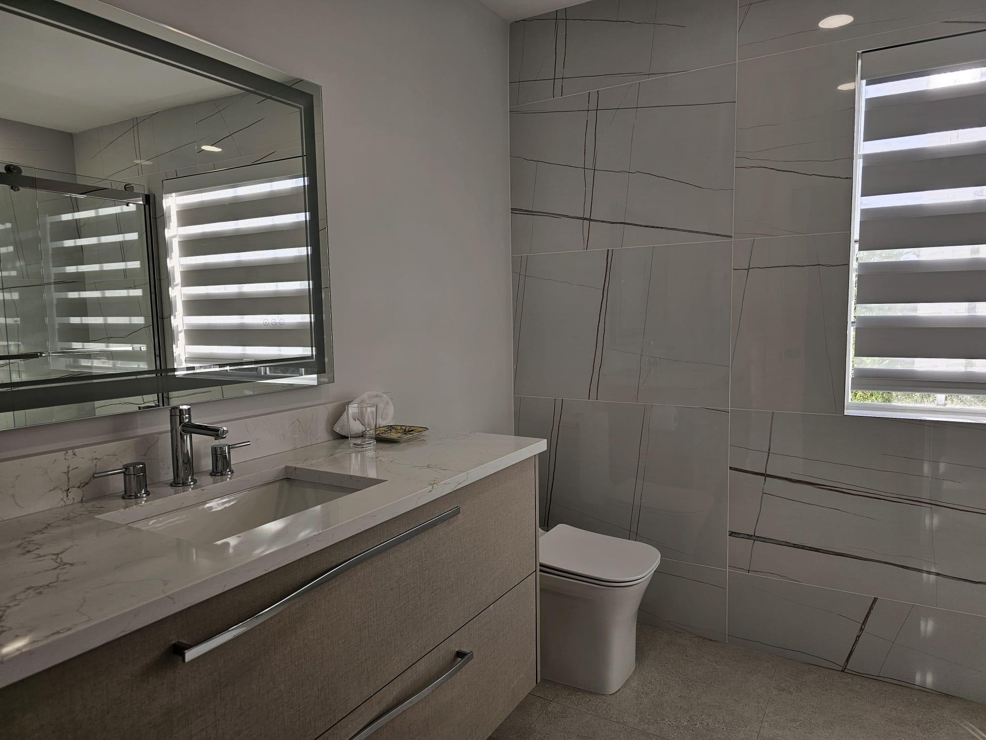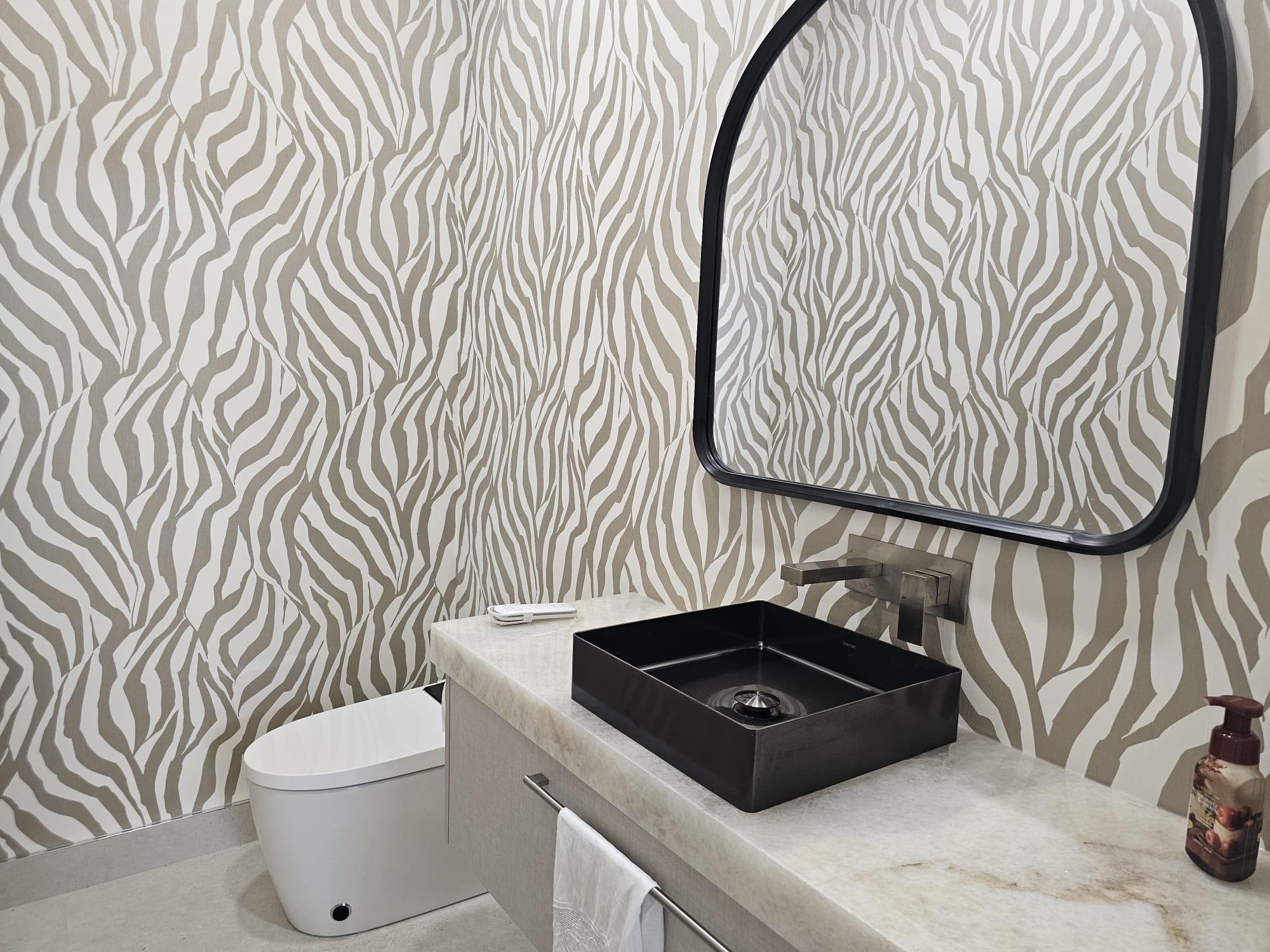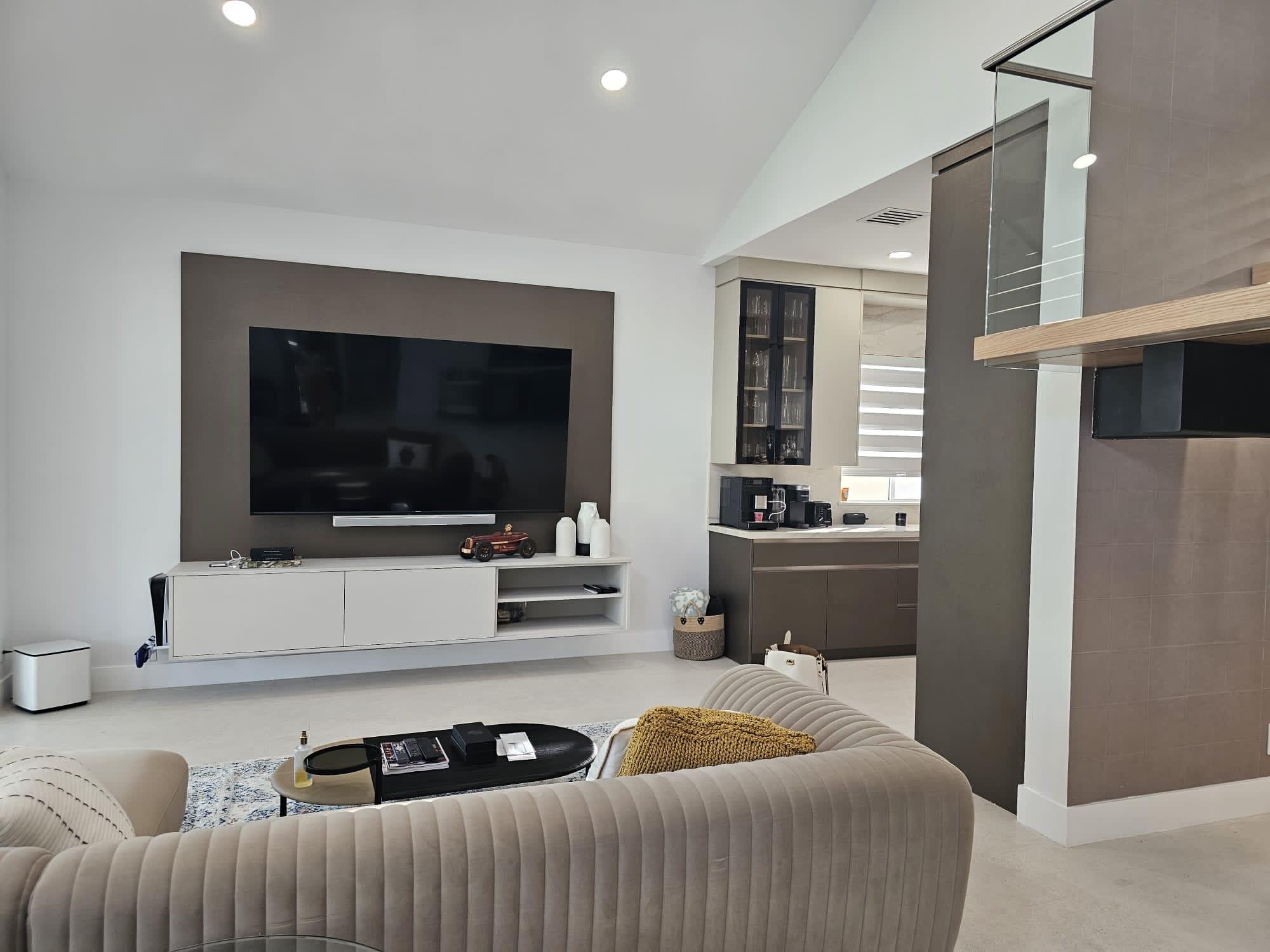 Experience modern luxury in this fully upgraded 4-bedroom, 4.5-bathroom home with a den, offering lake views & premium features throughout. The kitchen boasts Bertazzoni Italian appliances, quartz countertops, custom cabinetry & advanced lighting. The interior showcases large-format porcelain floors, recessed LED lighting, smart climate control & sleek finishes. The spacious living room includes a custom bar & a glass-railing staircase. Primary suite features custom closets, frameless showers & smart toilets, while guest bedrooms provide similar high-end finishes. The mezzanine includes a morning bar with a wine fridge. Additional amenities include hurricane shutters, an epoxy-finished garage, new exterior lighting, and updated plumbing fixtures. This home combines style & functionality.