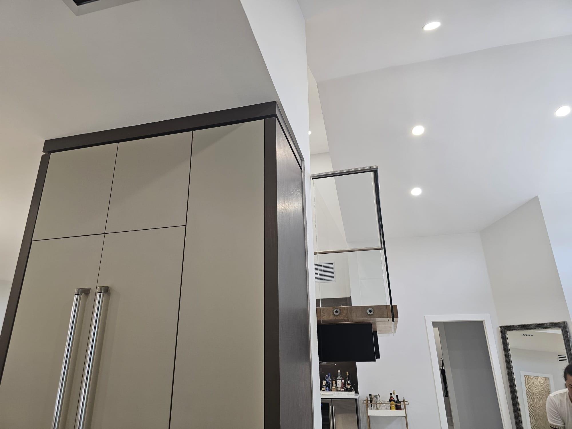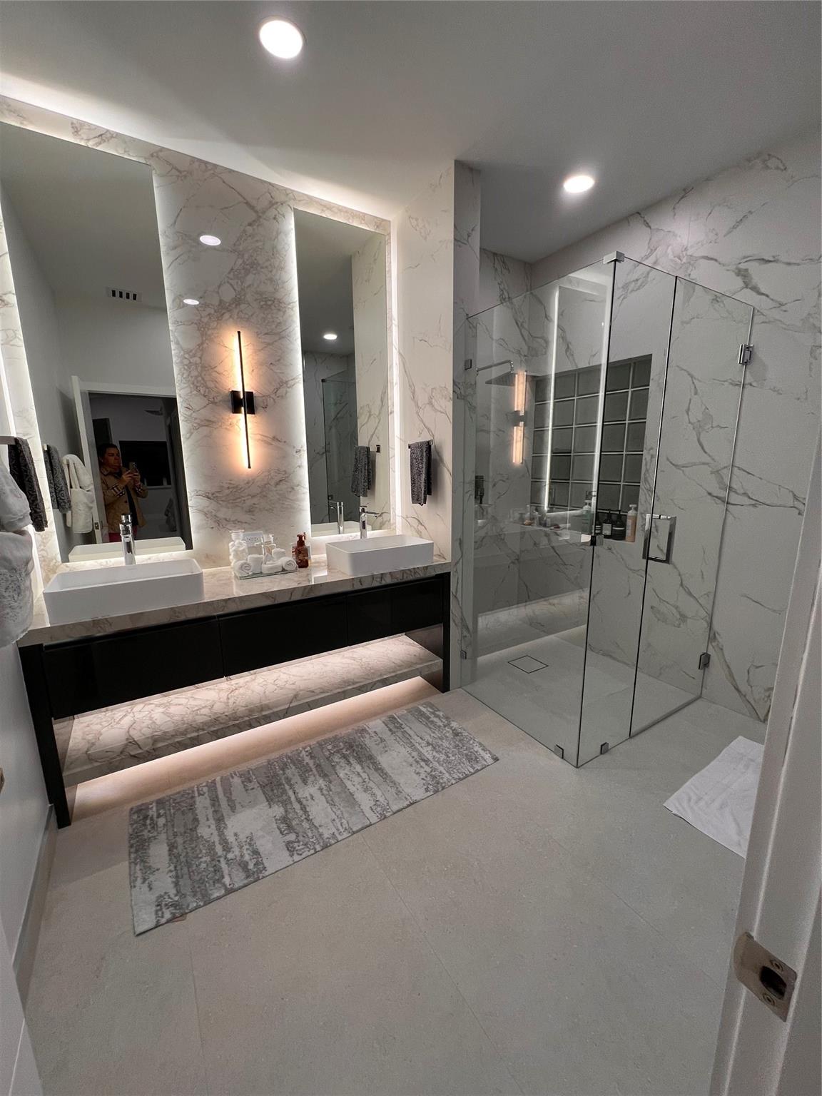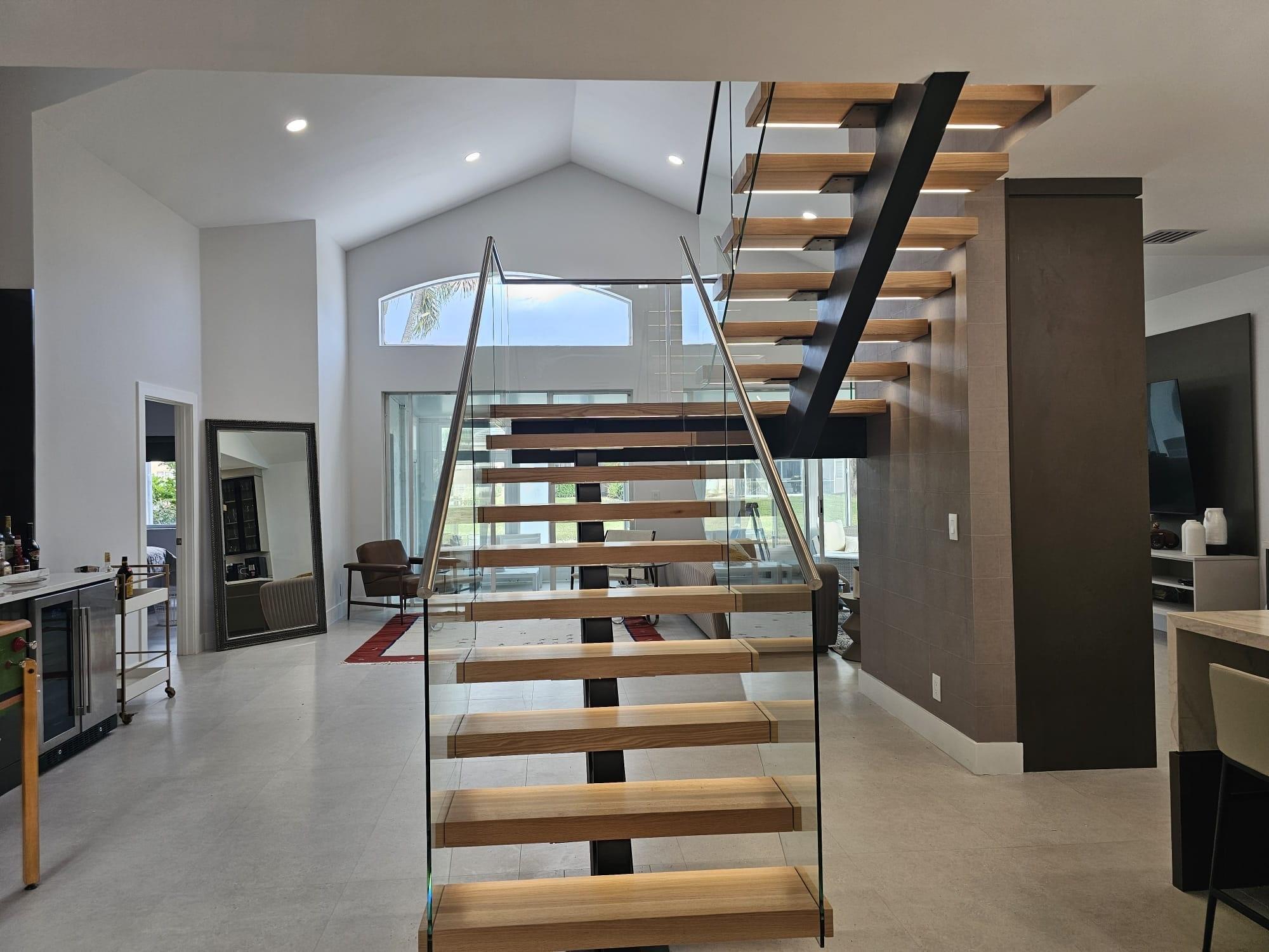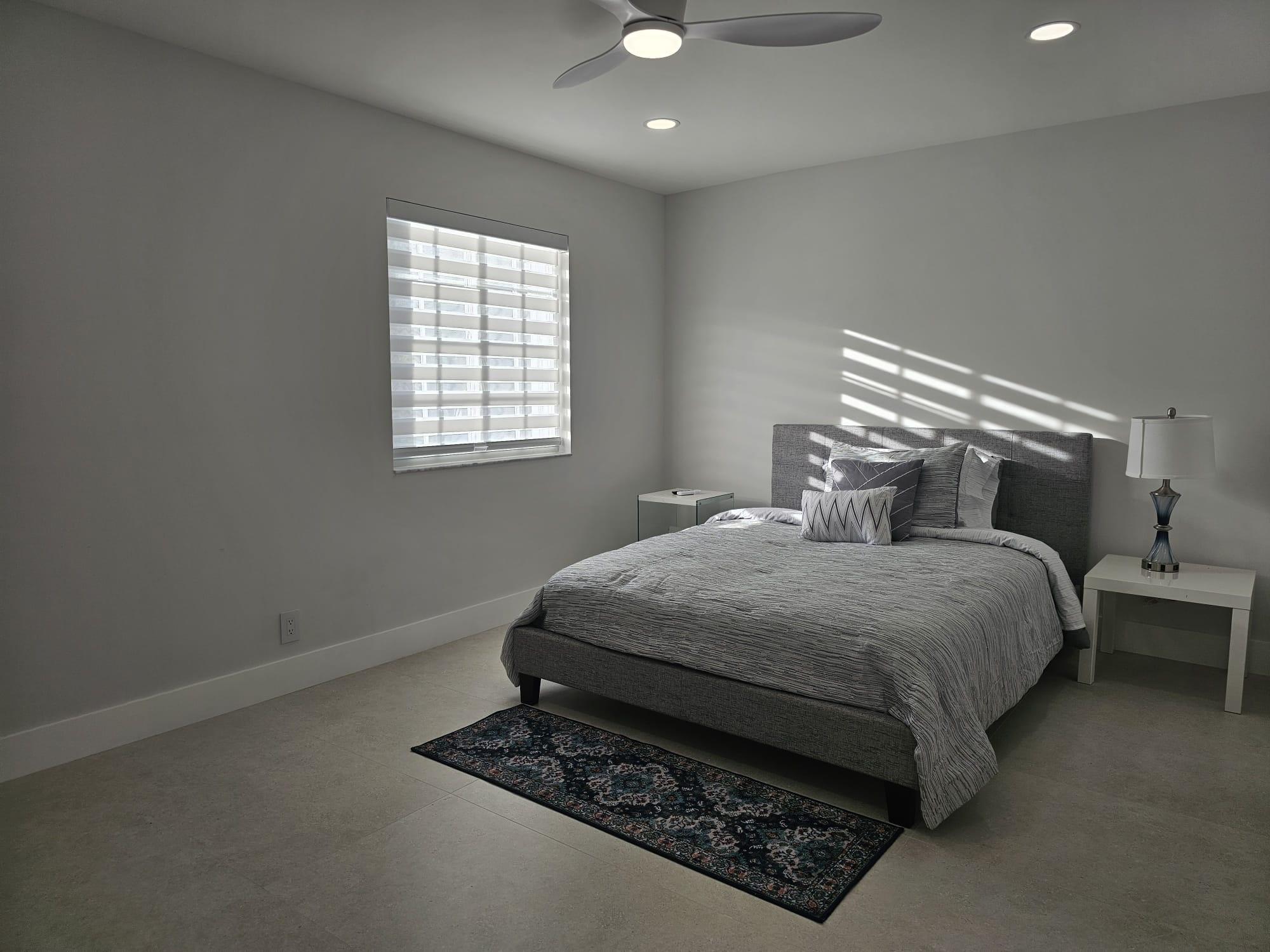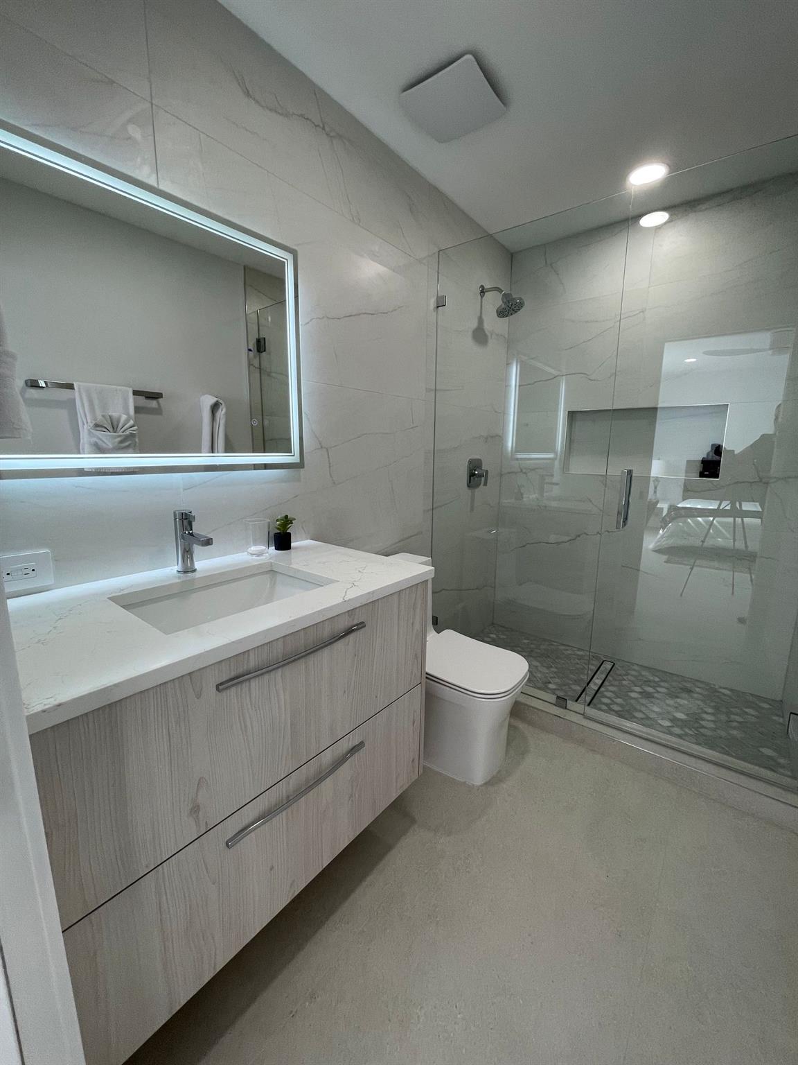Experience modern luxury in this fully upgraded 4-bedroom, 4.5-bathroom home with a den, offering lake views & premium features throughout. The kitchen boasts Bertazzoni Italian appliances, quartz countertops, custom cabinetry & advanced lighting. The interior showcases large-format porcelain floors, recessed LED lighting, smart climate control & sleek finishes. The spacious living room includes a custom bar & a glass-railing staircase. Primary suite features custom closets, frameless showers & smart toilets, while guest bedrooms provide similar high-end finishes. The mezzanine includes a morning bar with a wine fridge. Additional amenities include hurricane shutters, an epoxy-finished garage, new exterior lighting, and updated plumbing fixtures. This home combines style & functionality.