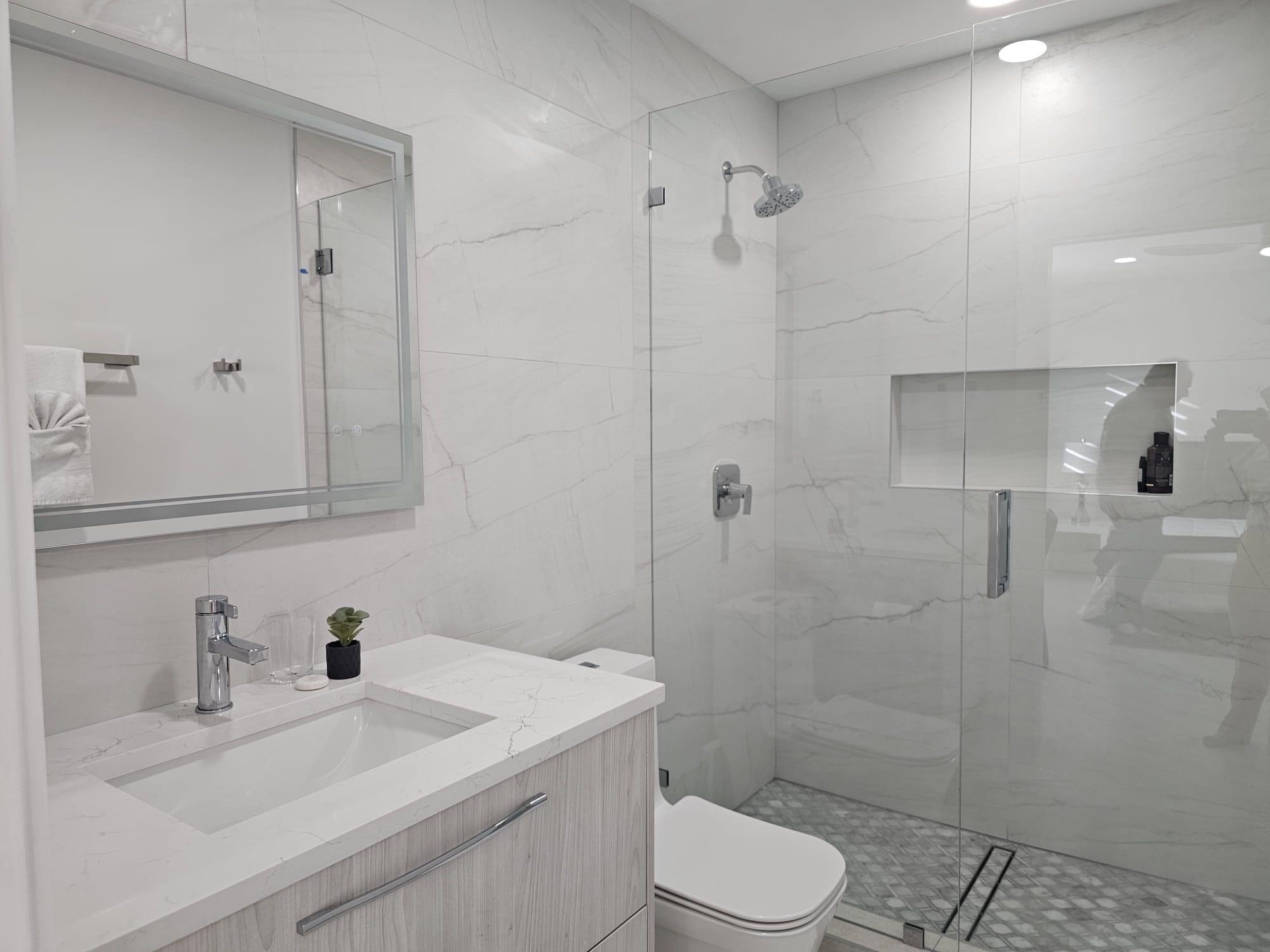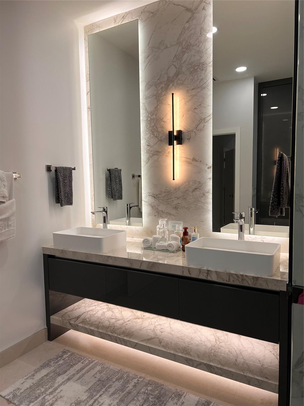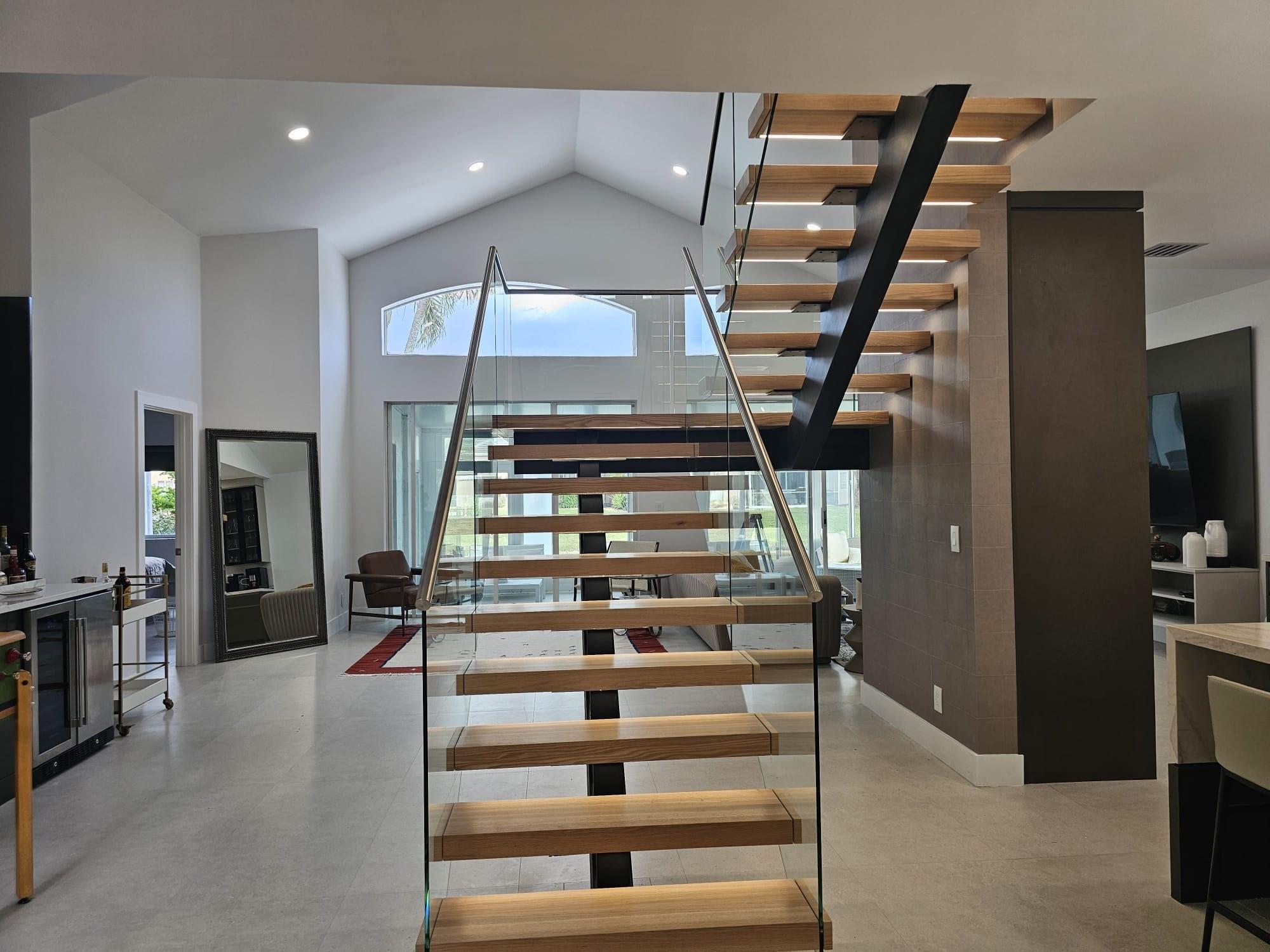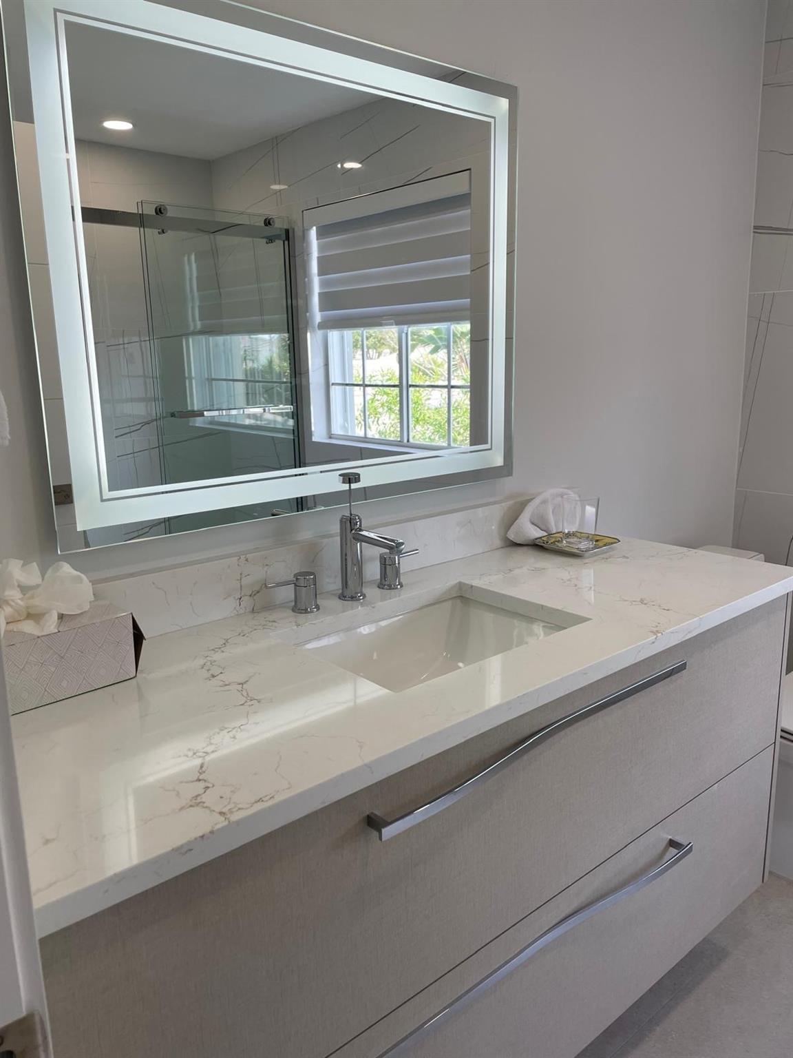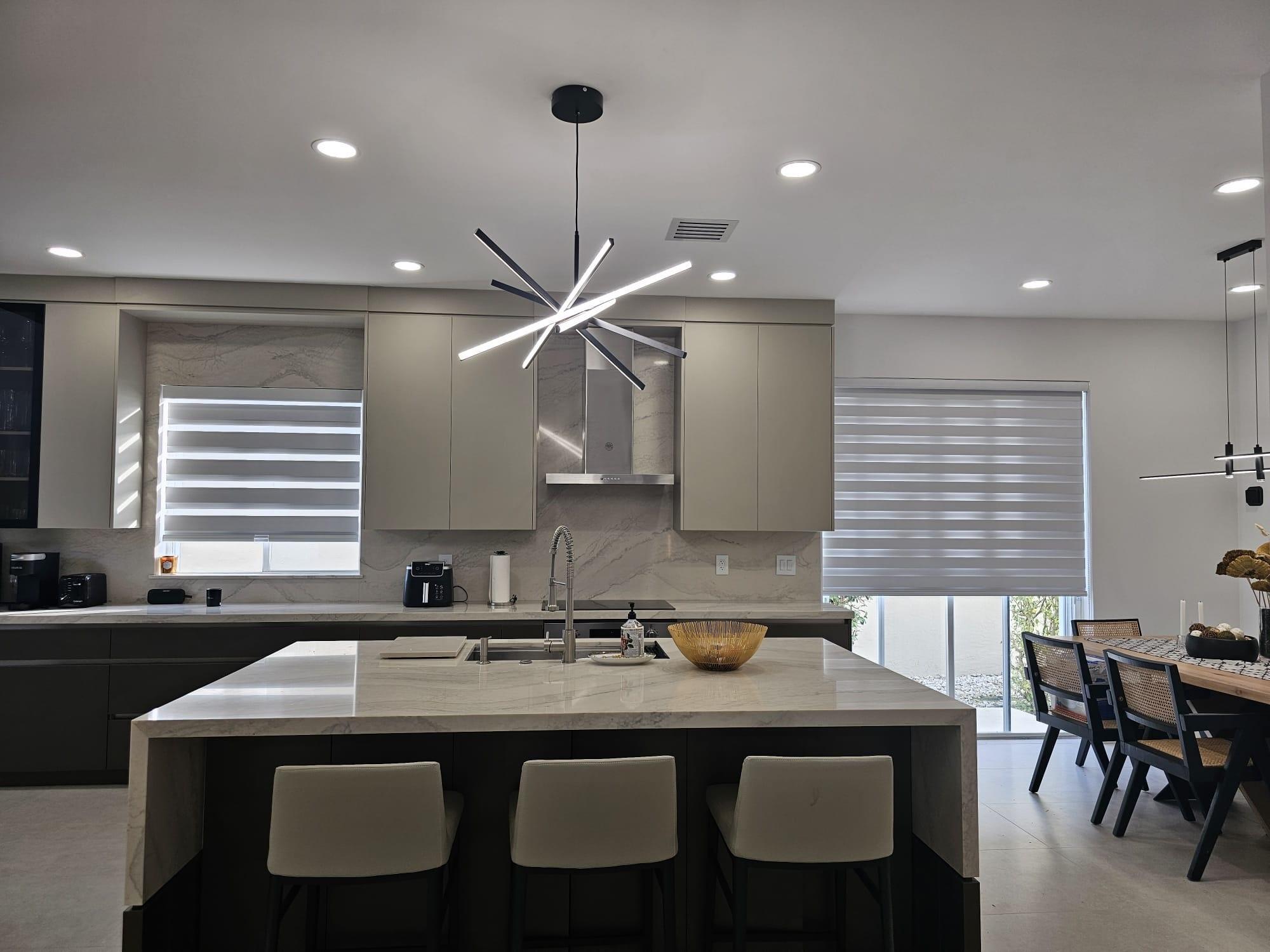 Experience modern luxury in this fully upgraded 4-bedroom, 4.5-bathroom home with a den, offering lake views & premium features throughout. The kitchen boasts Bertazzoni Italian appliances, quartz countertops, custom cabinetry & advanced lighting. The interior showcases large-format porcelain floors, recessed LED lighting, smart climate control & sleek finishes. The spacious living room includes a custom bar & a glass-railing staircase. Primary suite features custom closets, frameless showers & smart toilets, while guest bedrooms provide similar high-end finishes. The mezzanine includes a morning bar with a wine fridge. Additional amenities include hurricane shutters, an epoxy-finished garage, new exterior lighting, and updated plumbing fixtures. This home combines style & functionality.