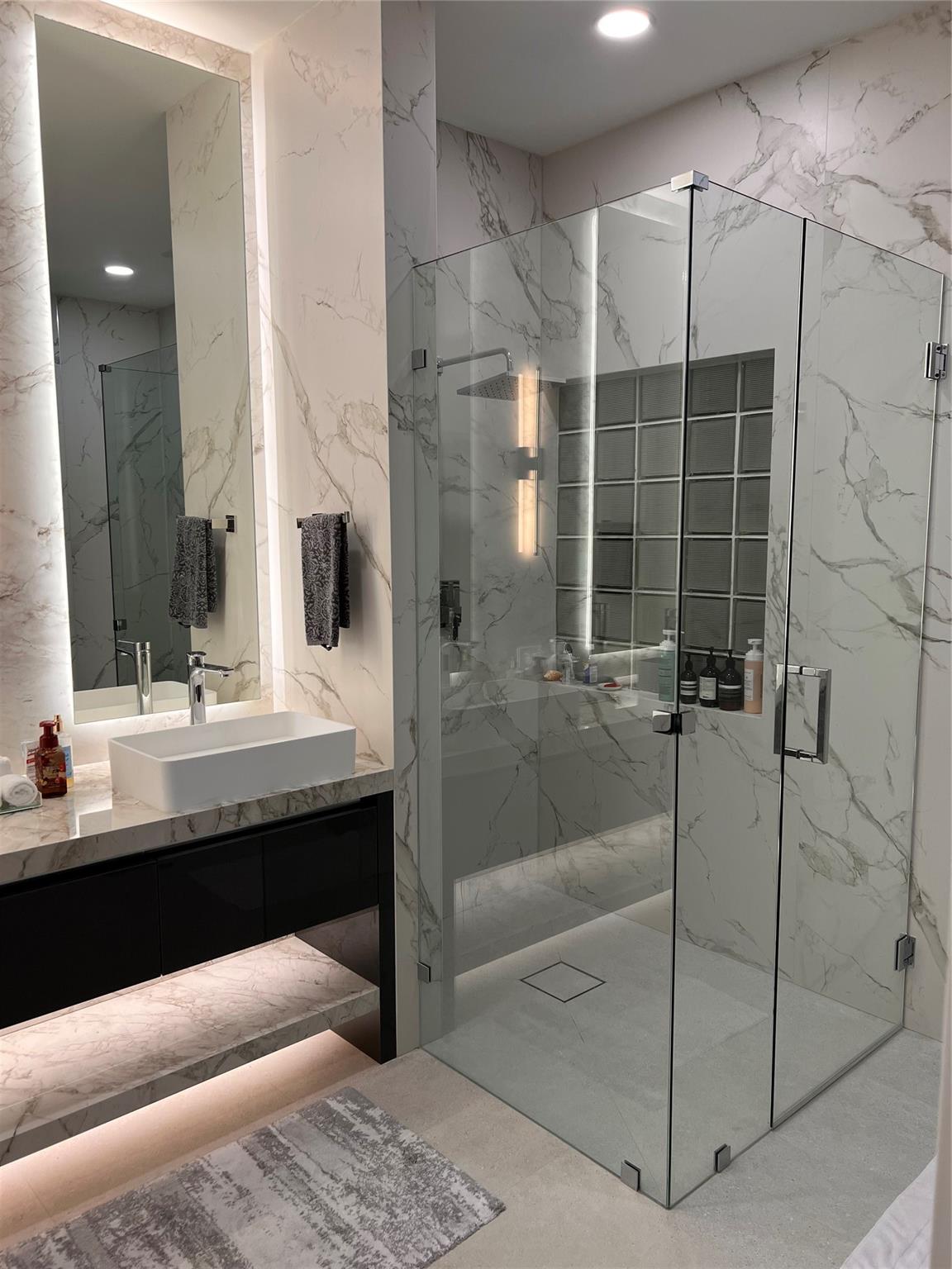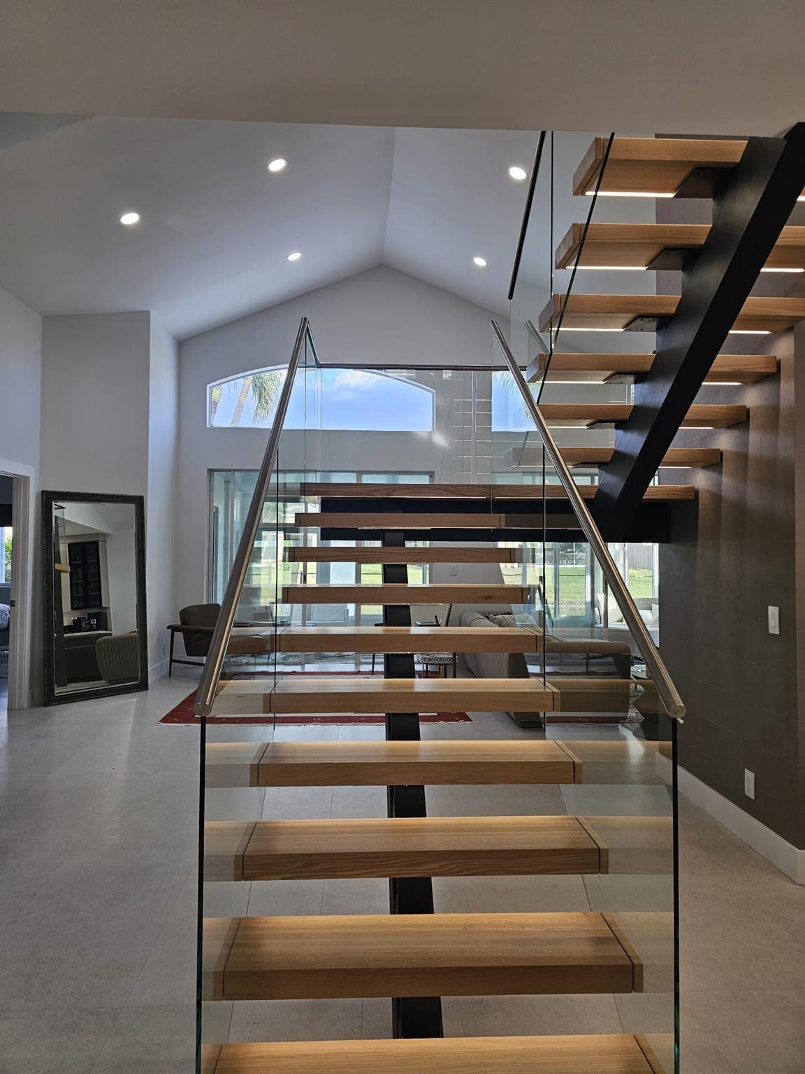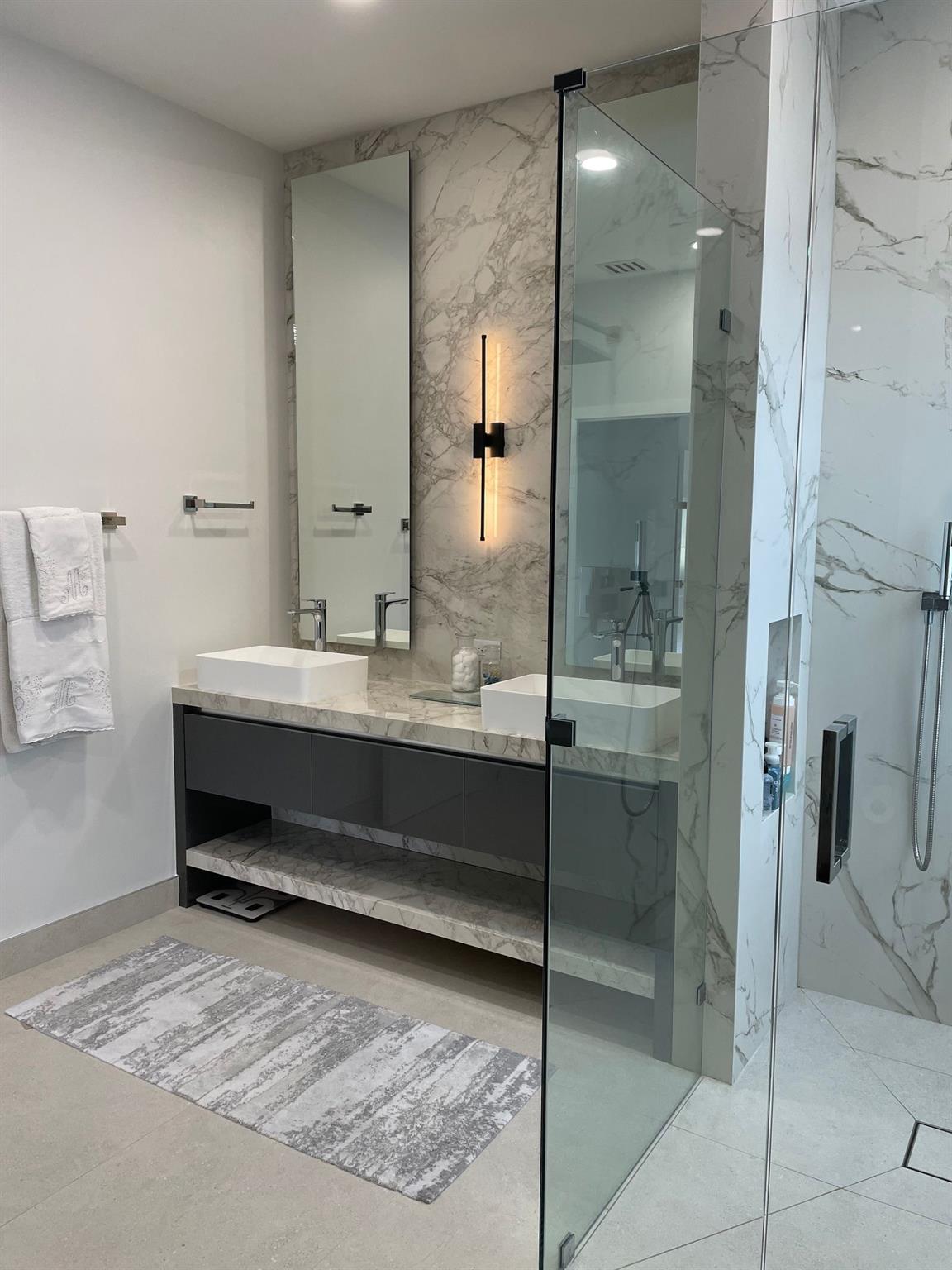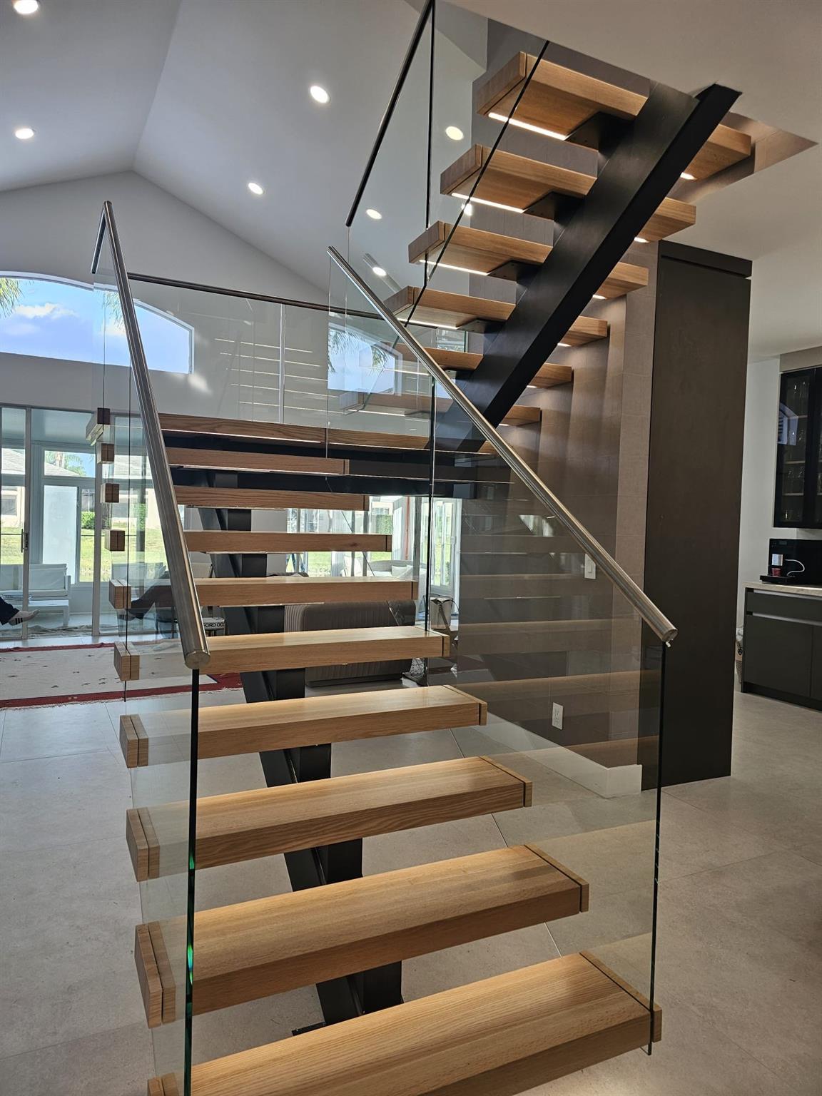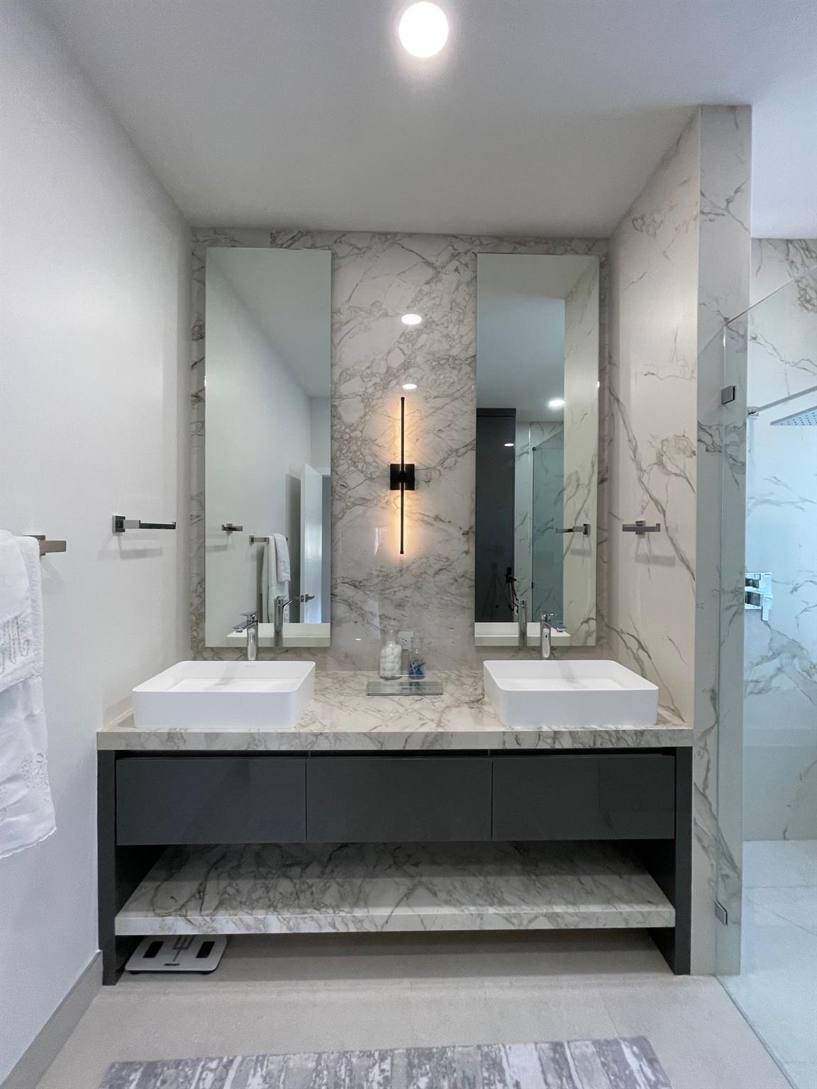 Experience modern luxury in this fully upgraded 4-bedroom, 4.5-bathroom home with a den, offering lake views & premium features throughout. The kitchen boasts Bertazzoni Italian appliances, quartz countertops, custom cabinetry & advanced lighting. The interior showcases large-format porcelain floors, recessed LED lighting, smart climate control & sleek finishes. The spacious living room includes a custom bar & a glass-railing staircase. Primary suite features custom closets, frameless showers & smart toilets, while guest bedrooms provide similar high-end finishes. The mezzanine includes a morning bar with a wine fridge. Additional amenities include hurricane shutters, an epoxy-finished garage, new exterior lighting, and updated plumbing fixtures. This home combines style & functionality.