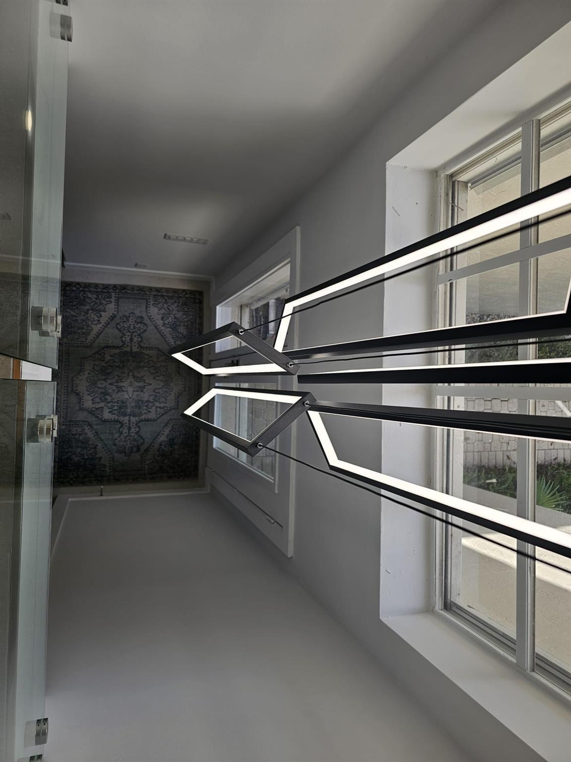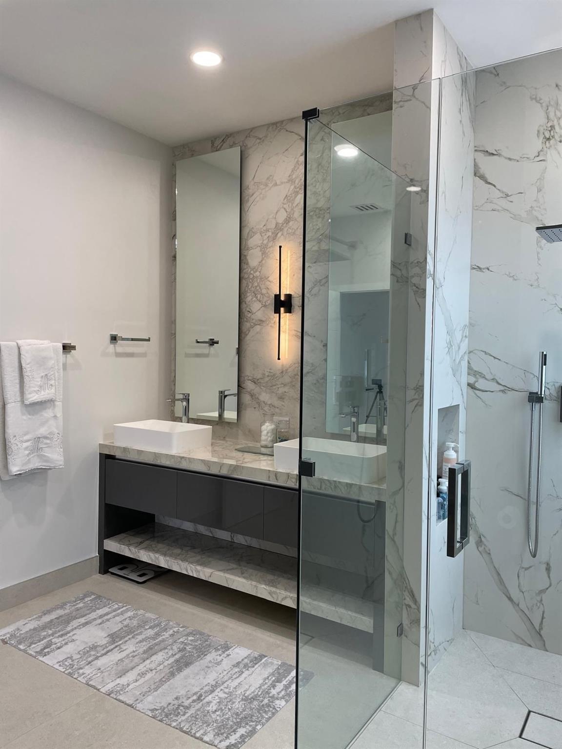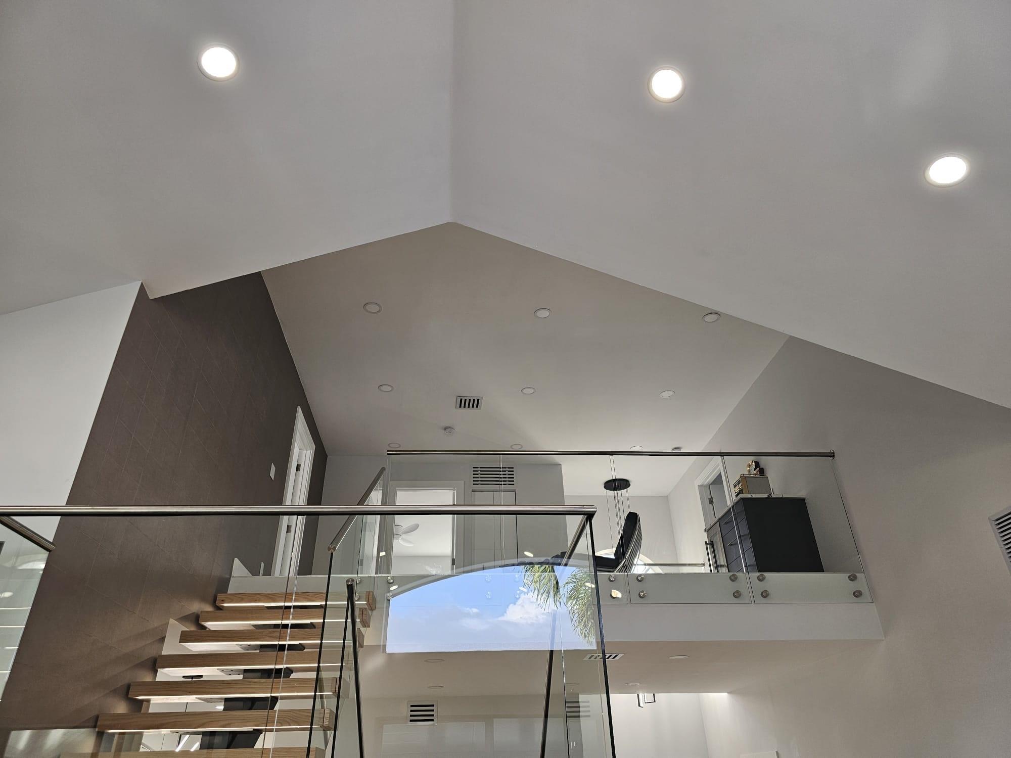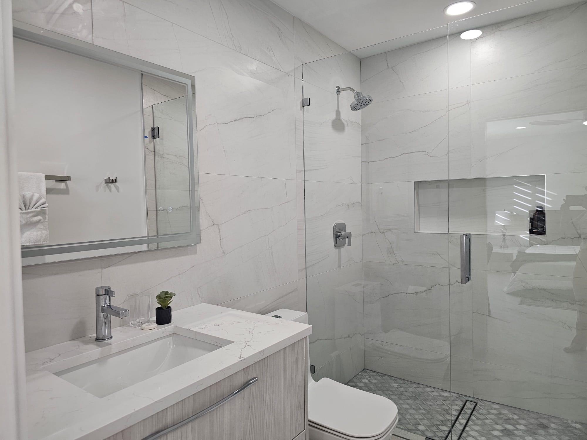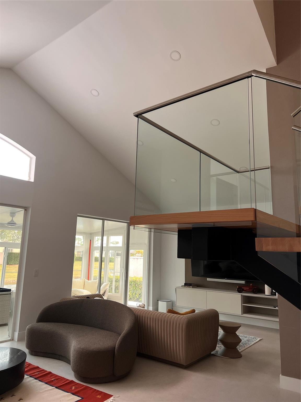 Experience modern luxury in this fully upgraded 4-bedroom, 4.5-bathroom home with a den, offering lake views & premium features throughout. The kitchen boasts Bertazzoni Italian appliances, quartz countertops, custom cabinetry & advanced lighting. The interior showcases large-format porcelain floors, recessed LED lighting, smart climate control & sleek finishes. The spacious living room includes a custom bar & a glass-railing staircase. Primary suite features custom closets, frameless showers & smart toilets, while guest bedrooms provide similar high-end finishes. The mezzanine includes a morning bar with a wine fridge. Additional amenities include hurricane shutters, an epoxy-finished garage, new exterior lighting, and updated plumbing fixtures. This home combines style & functionality.