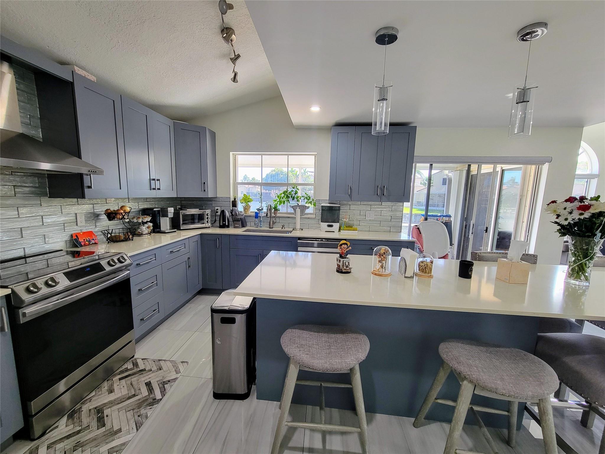 Embrace unparallelled luxury in your ultra-modern WATERFRONT haven 3 bedrooms 2.5 baths single family home with one car garage. This renovated sanctuary includes high ceilings with modern open-concept Chef’s kitchen with stainless steel appliances includes quartz countertop and glazed porcelain tiles. Large Master bedroom with walk-in closets and contemporary on first floor. Two bedrooms with full contemporary bathroom includes modern fixtures and high-end flooring on 2nd floor. Recess Lightings, Motorized Blinds, Lightings Fixtures, Appliances & Security System controlled by smartphone. Screened porch and paved patio overlooking the water. Key West resort style club-house which includes pool, tiki hut & barbecue facilities. Take your morning exercise to the beach just one mile away.