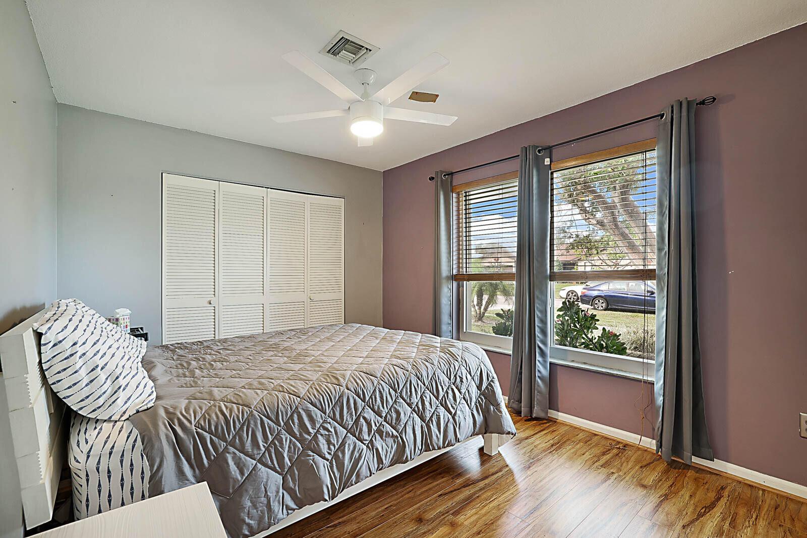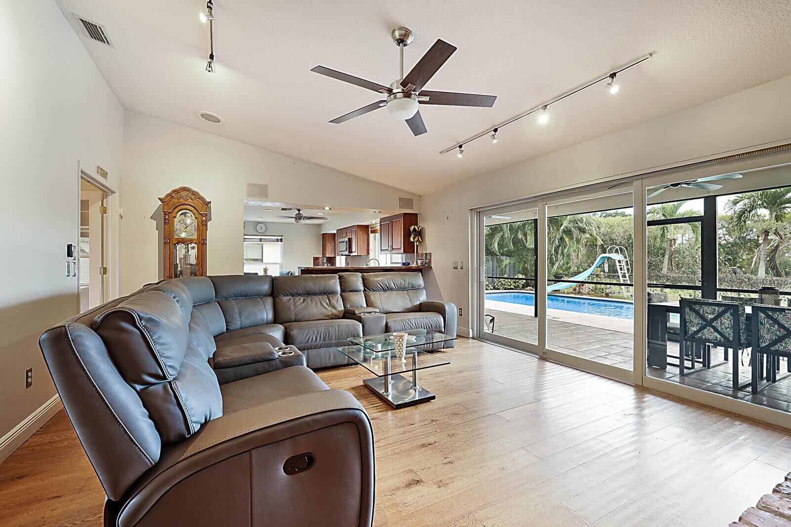 Make this home your own!! This 4-bedrooms plus a den/office, 2 bathrooms, a 2-car garage, impact windows and doors, a wood burning fireplace, an open concept kitchen and formal dining room along with a large primary bedroom and on-suite with impact glass sliding doors that give access to the open pool deck and backyard. Wood floors flow through the main living areas, while the screened-in patio and fenced backyard create an ideal space for entertainment offering lots of privacy. The roof is 2022 and offers low HOA fees, close to shopping, dining, and more…