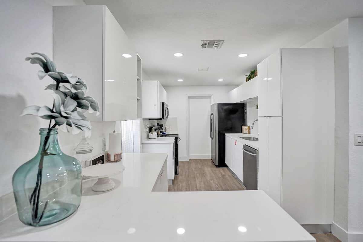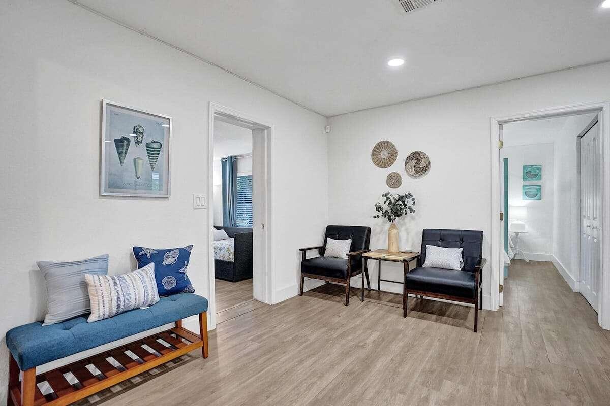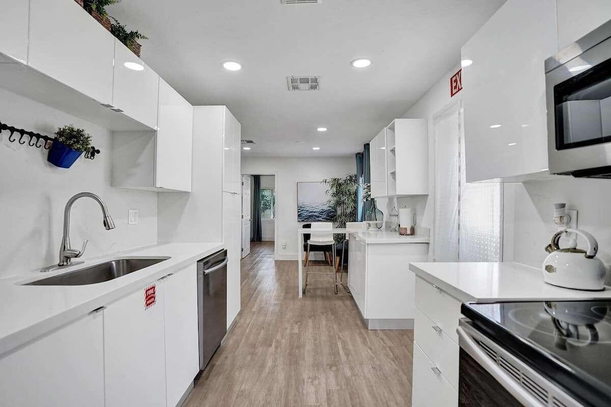 Investor dream. 3 bedroom 2 bathroom on one side and an in law studio completely separated from the rest of the house with its’ own entrance in garden. Sold turnkey, fully furnished with decor. Corner lot of 10,000 sq ft, you can build 2 three levels townhomes. Modern looking house with gorgeous ceiling beam, TV room with accent wall and built in fireplace. Custom built closets in living room, spacious laundry room, a modern kitchen with stainless steal appliances, 3 renovated bathrooms. Tesla charger. Most pipes have been upgraded for PVC and the cast iron portion has an epoxy liner with a transferrable warranty of 50 years. All windows have shutters. Front door and kitchen door are impact. Roof has been professionally coated with commercial grade silicone 10 year warranty