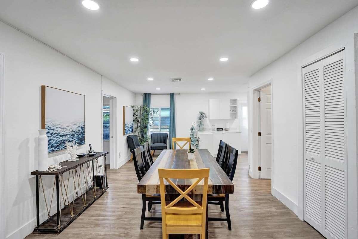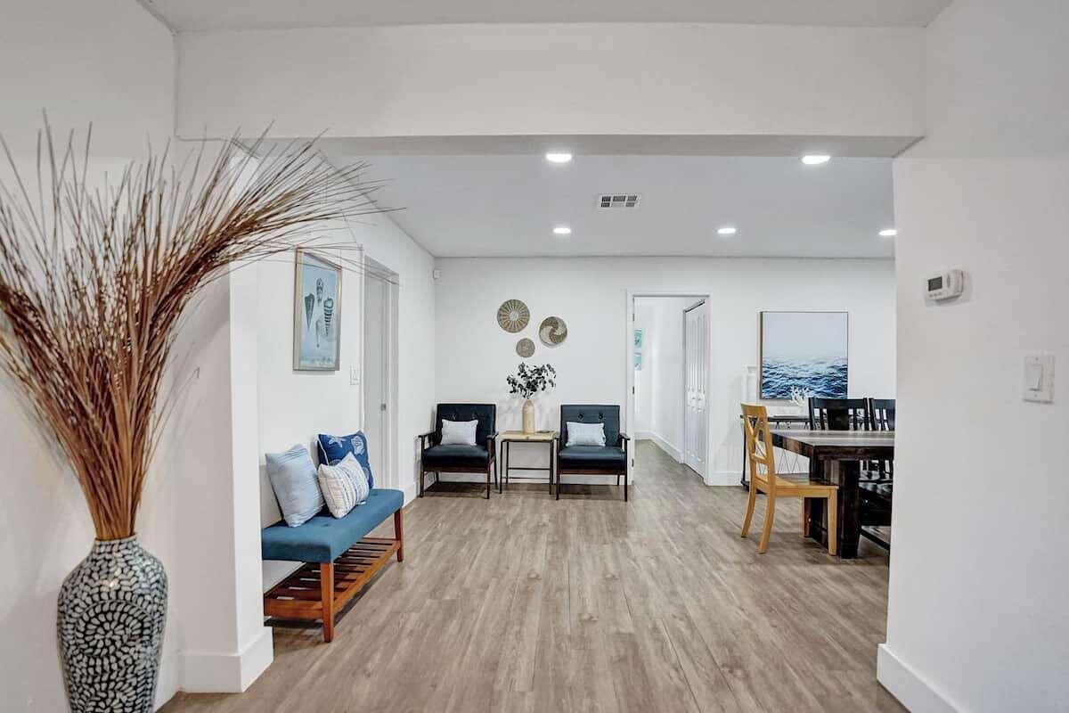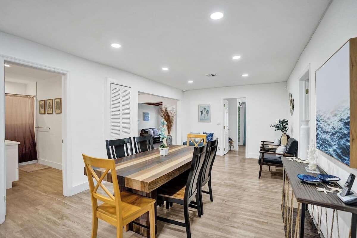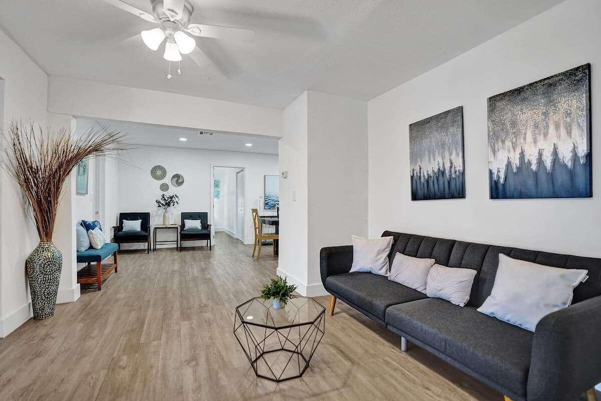 Investor dream. 3 bedroom 2 bathroom on one side and an in law studio completely separated from the rest of the house with its’ own entrance in garden. Sold turnkey, fully furnished with decor. Corner lot of 10,000 sq ft, you can build 2 three levels townhomes. Modern looking house with gorgeous ceiling beam, TV room with accent wall and built in fireplace. Custom built closets in living room, spacious laundry room, a modern kitchen with stainless steal appliances, 3 renovated bathrooms. Tesla charger. Most pipes have been upgraded for PVC and the cast iron portion has an epoxy liner with a transferrable warranty of 50 years. All windows have shutters. Front door and kitchen door are impact. Roof has been professionally coated with commercial grade silicone 10 year warranty