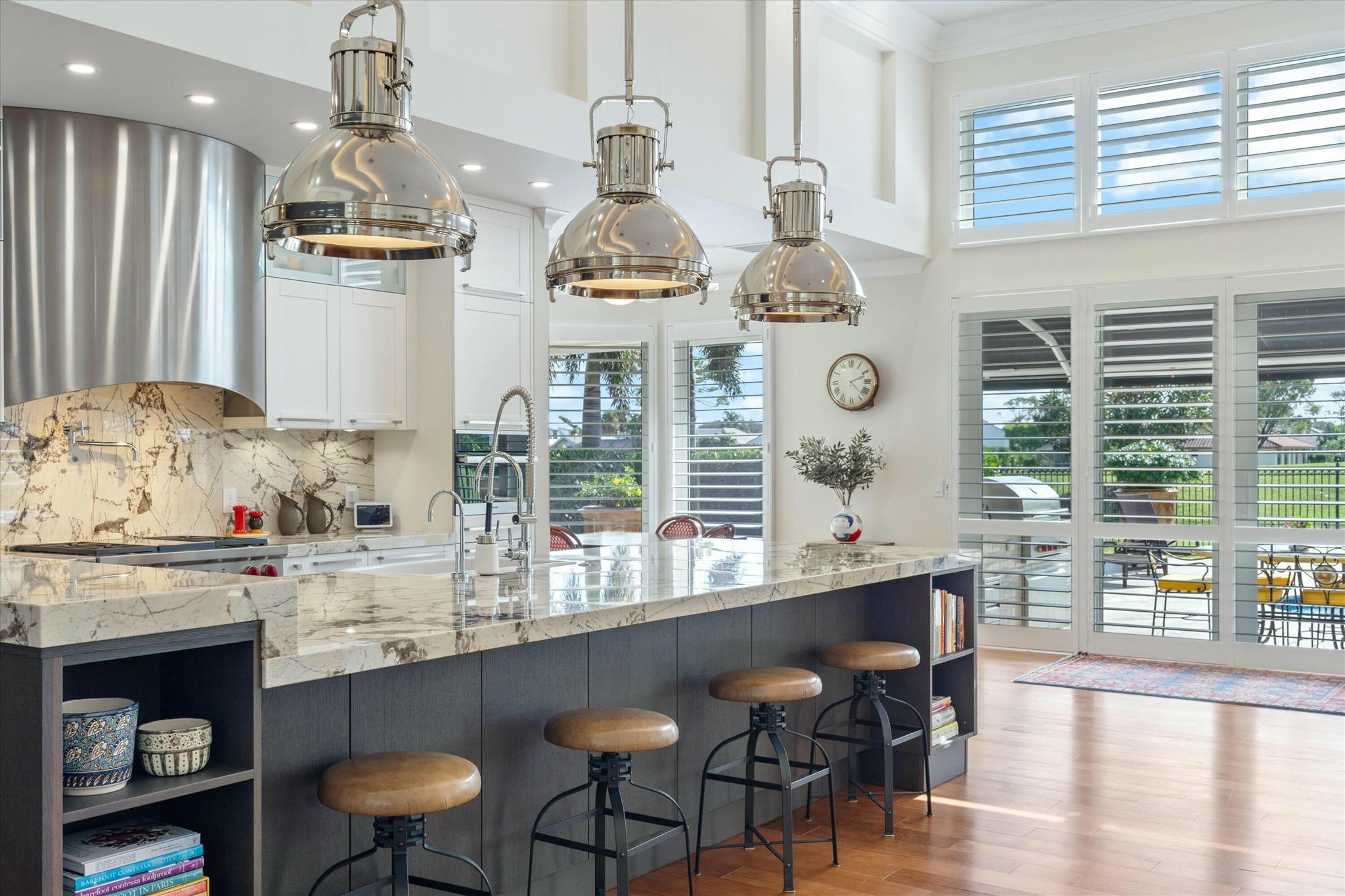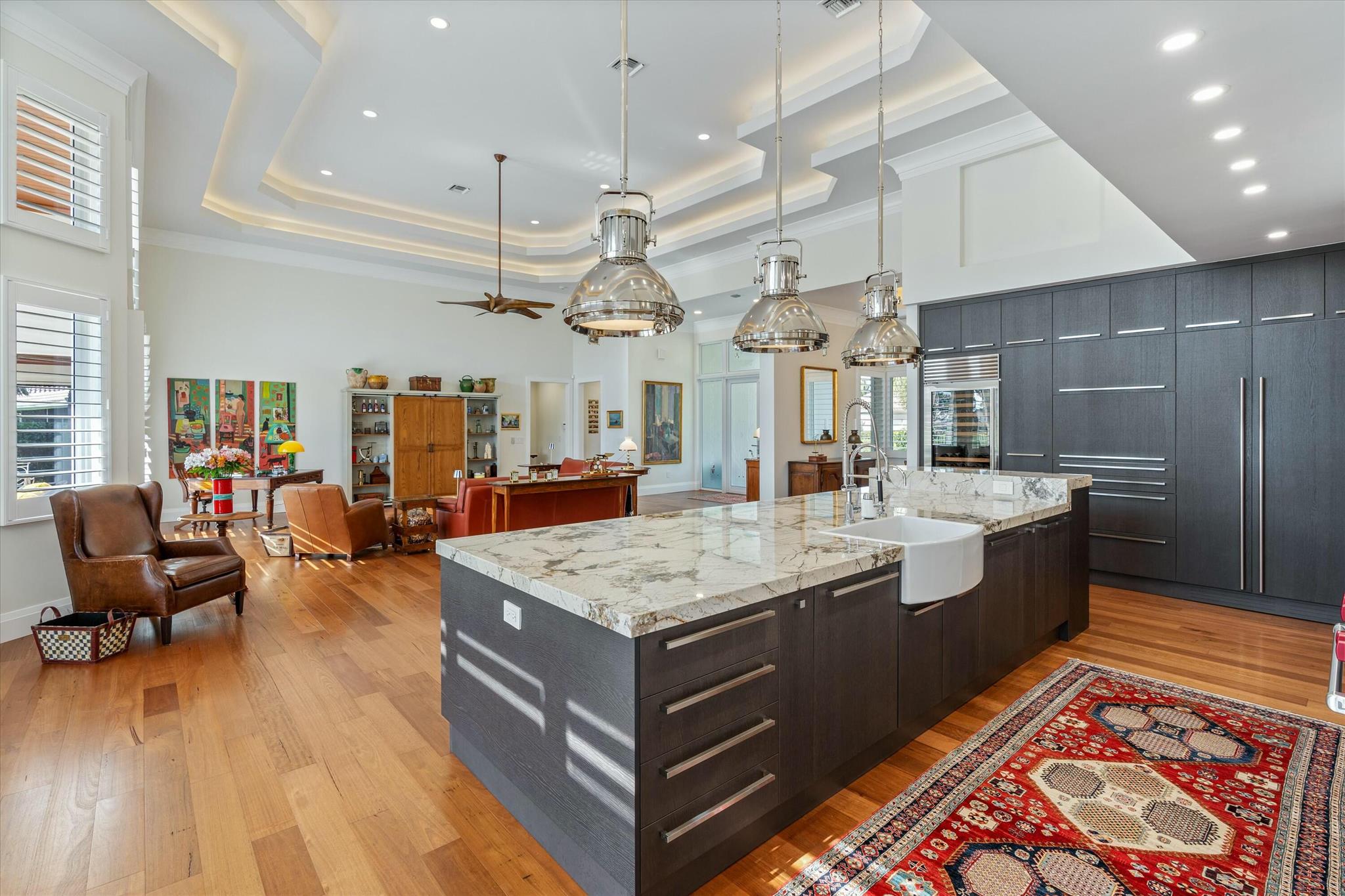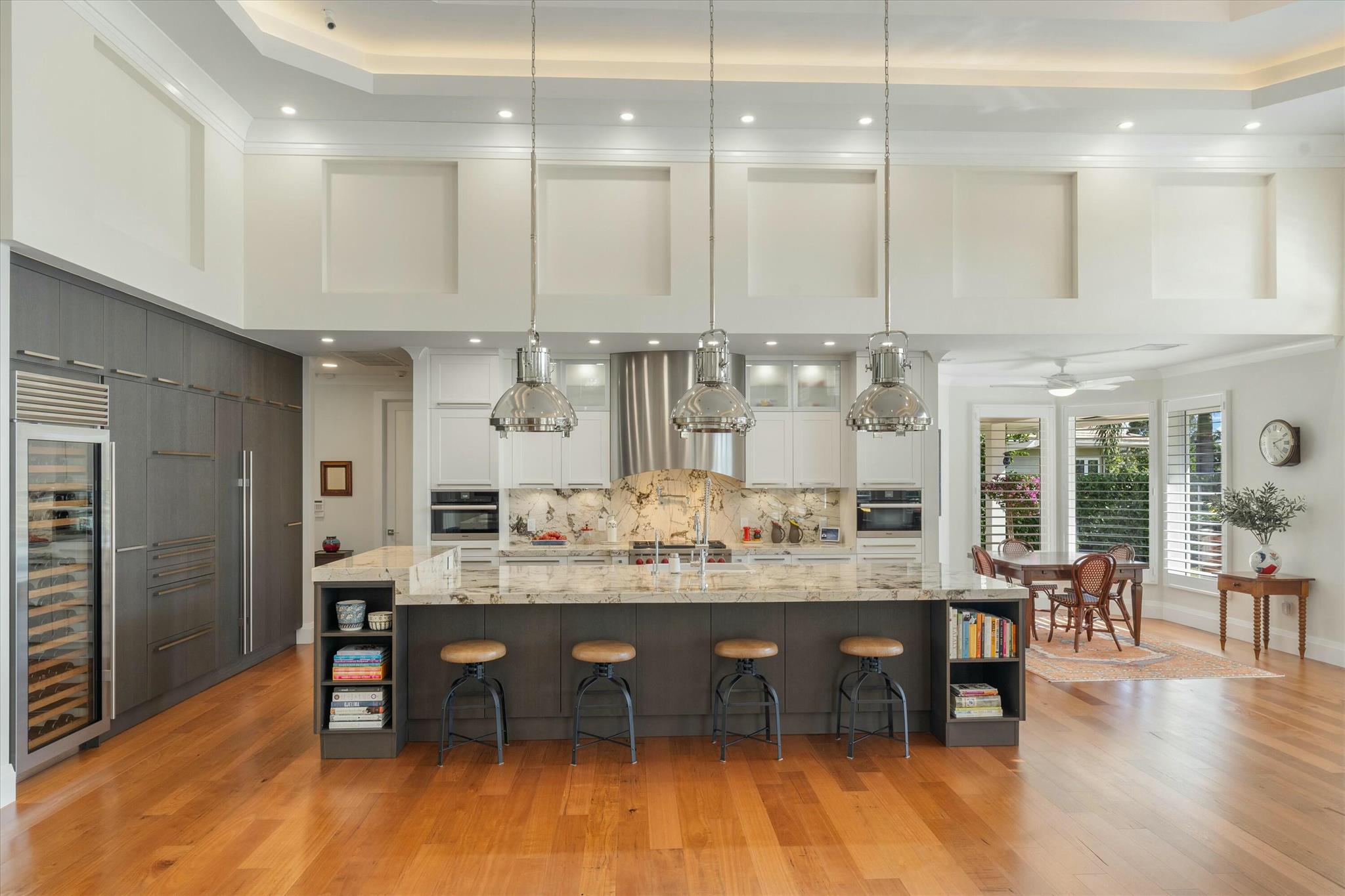 A Masterpiece of Modern Luxury and Timeless EleganceThis stunning home, reimagined and meticulously reconstructed in 2017, transcends traditional renovation. Taken down to the studs, every detail has been flawlessly redesigned, blending cutting-edge luxury with exceptional functionality. With bespoke finishes, all-new plumbing and electrical systems, this home radiates a fresh, modern feel while preserving an air of timeless charm.Upon entering through the grand custom impact glass front doors, you’ll be immediately captivated by the sophisticated ambiance. The soaring two-tiered ceilings, adorned with exquisite decorative details and custom lighting, create a dramatic first impression.Gourmet Kitchen: A Chef’s DreamThe expansive gourmet kitchen is an