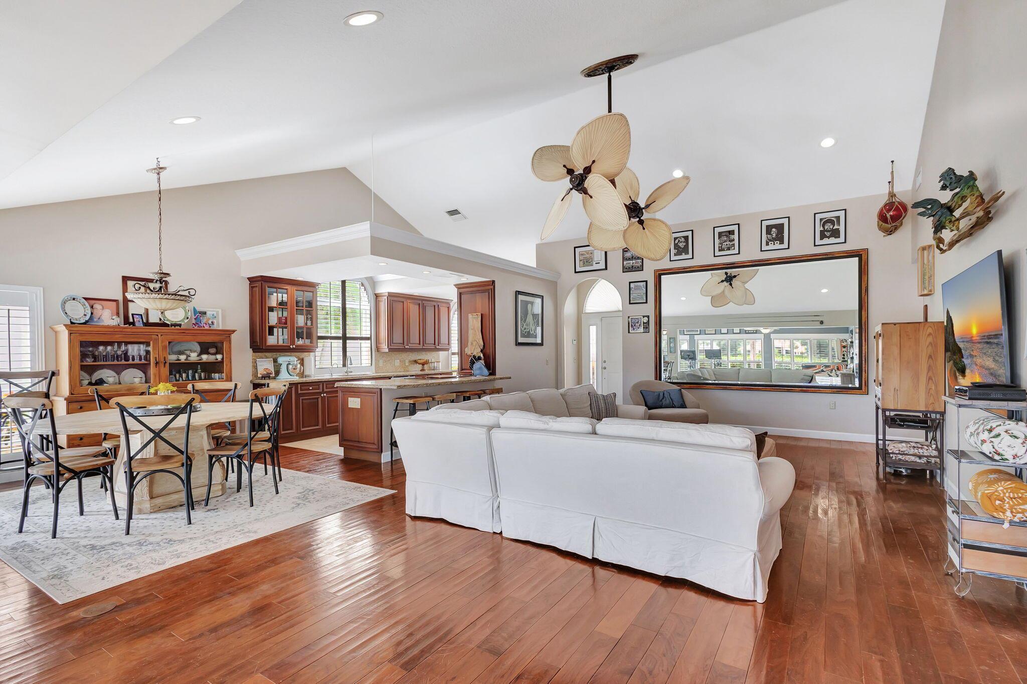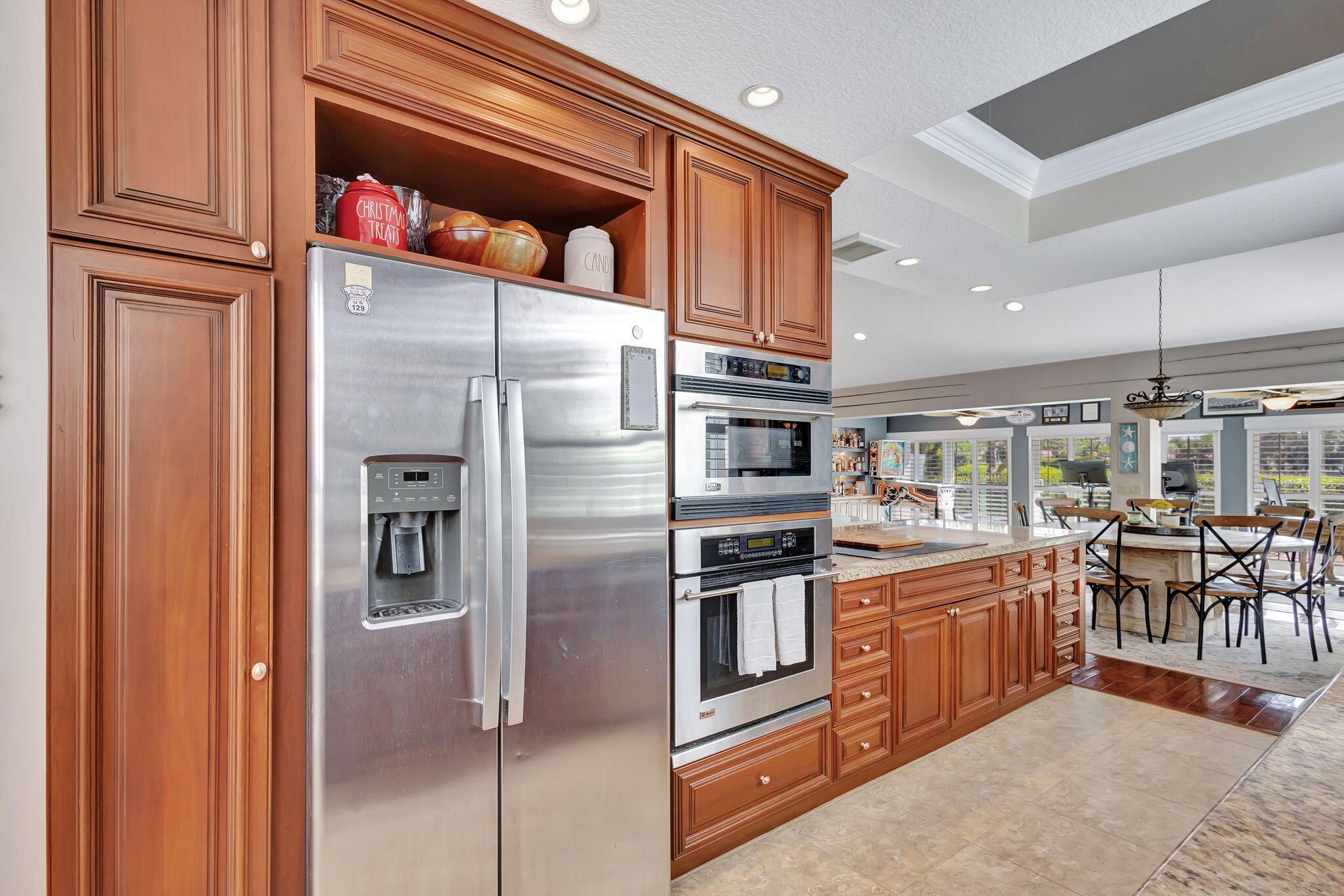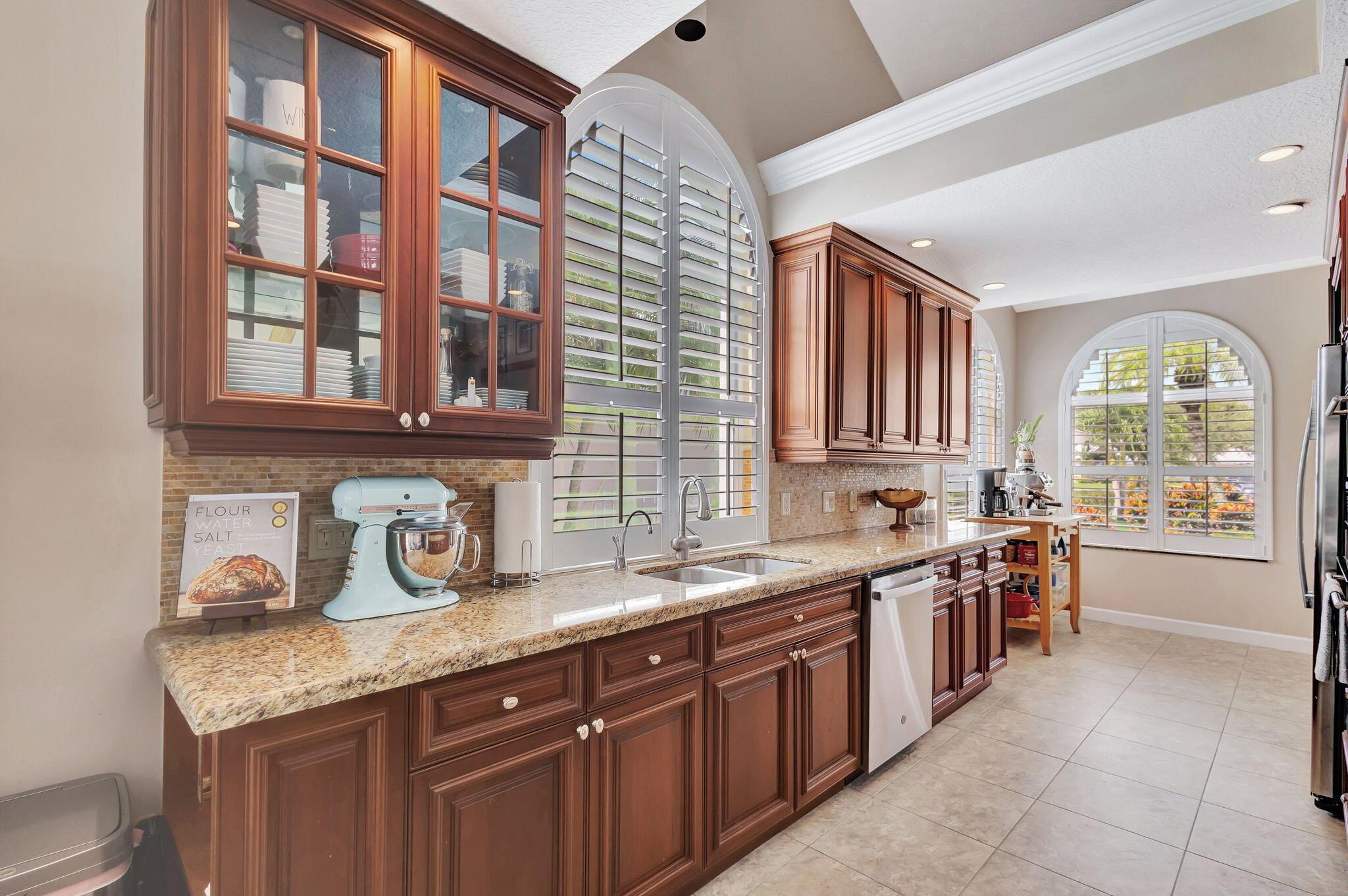 Enjoy South Florida living in the gated golf course community of Saratoga Bay! This desirable Divosta-built home has been beautifully updated with new impact windows and doors and boasts SPECTACULAR golf and lake views! With 3 bedrooms, 2 baths, and extended living area allowing for nearly 2,300 SF, this home is awash with tons of natural light, vaulted ceilings, crown molding and Plantation shutters throughout! Spacious gourmet kitchen perfectly equipped with 42” wood cabinets and under cabinet lighting, granite counter tops and tiled backsplash, GE stainless steel appliances including wall oven, built-in cooktop and expansive breakfast bar. Separate great room and extended lanai offer tons of space with custom built-in shelves and cabinetry- the perfect area for entertaining –