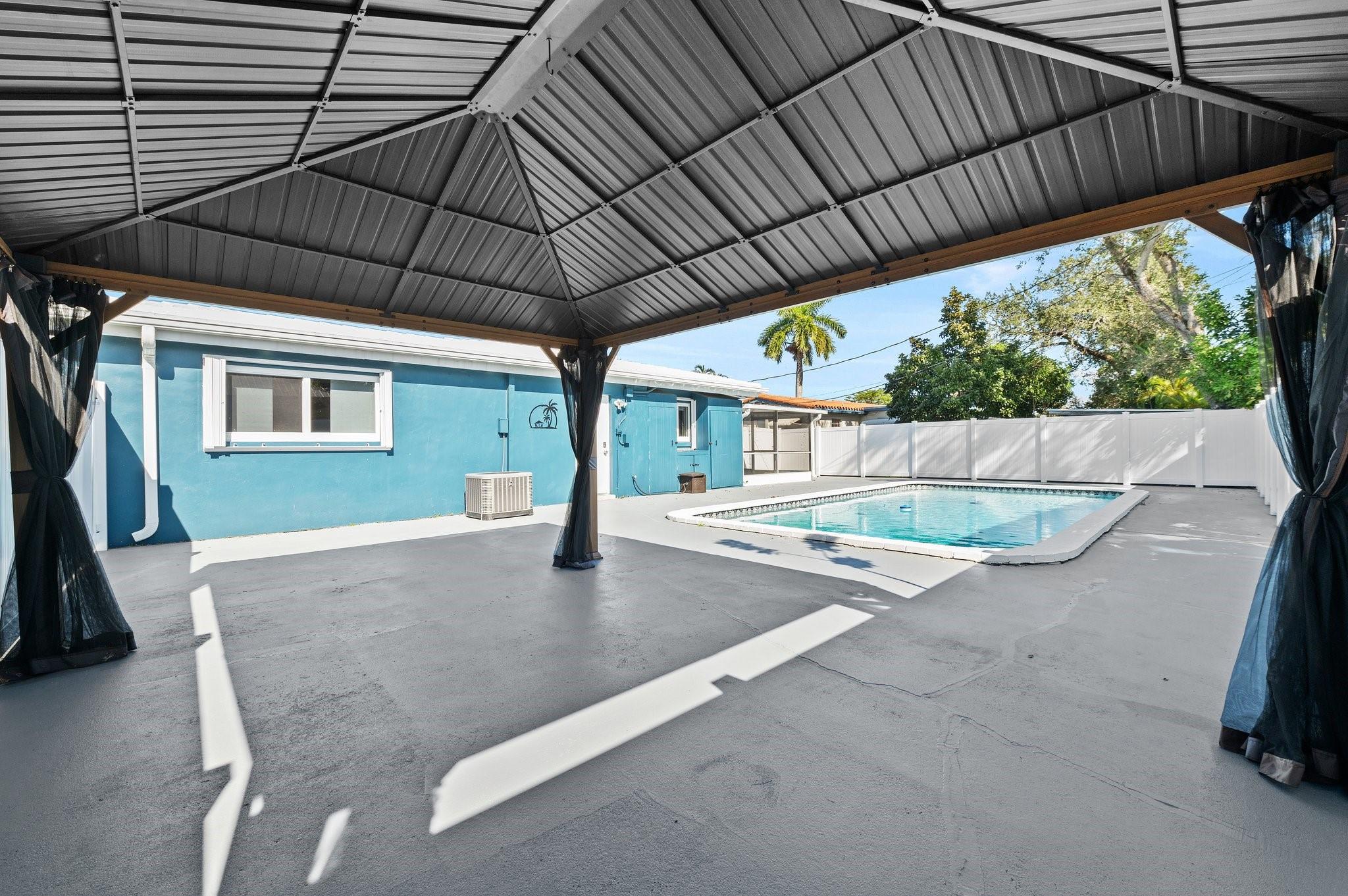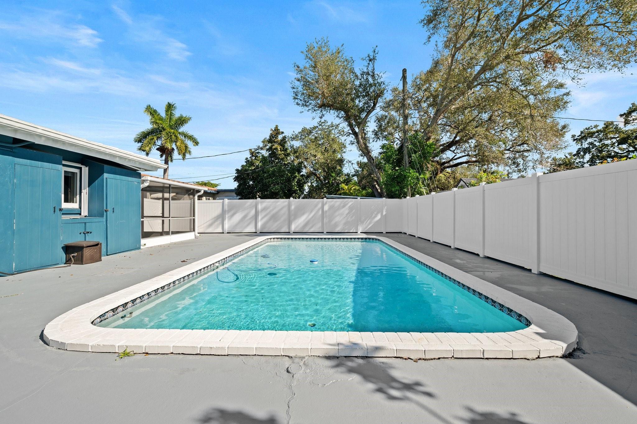 This beautifully maintained mid-century modern gem offers timeless style with thoughtful upgrades throughout—truly move-in ready. Enjoy peace of mind with a barrel tile roof (with 15+ years left of insurable life), new A/C system with updated ductwork, hurricane-impact windows plus shutters, a new pool pump, water heater, and sleek modern window treatments. Additional upgrades include refreshed carport, new ceiling fans, and updated toilets in both bathrooms. The spacious primary suite opens directly to your private backyard retreat, where an in-ground pool awaits—perfect for entertaining, unwinding, or soaking in the Florida sunshine. A rare opportunity to own a home that checks all the boxes for style, comfort, and long-term value.