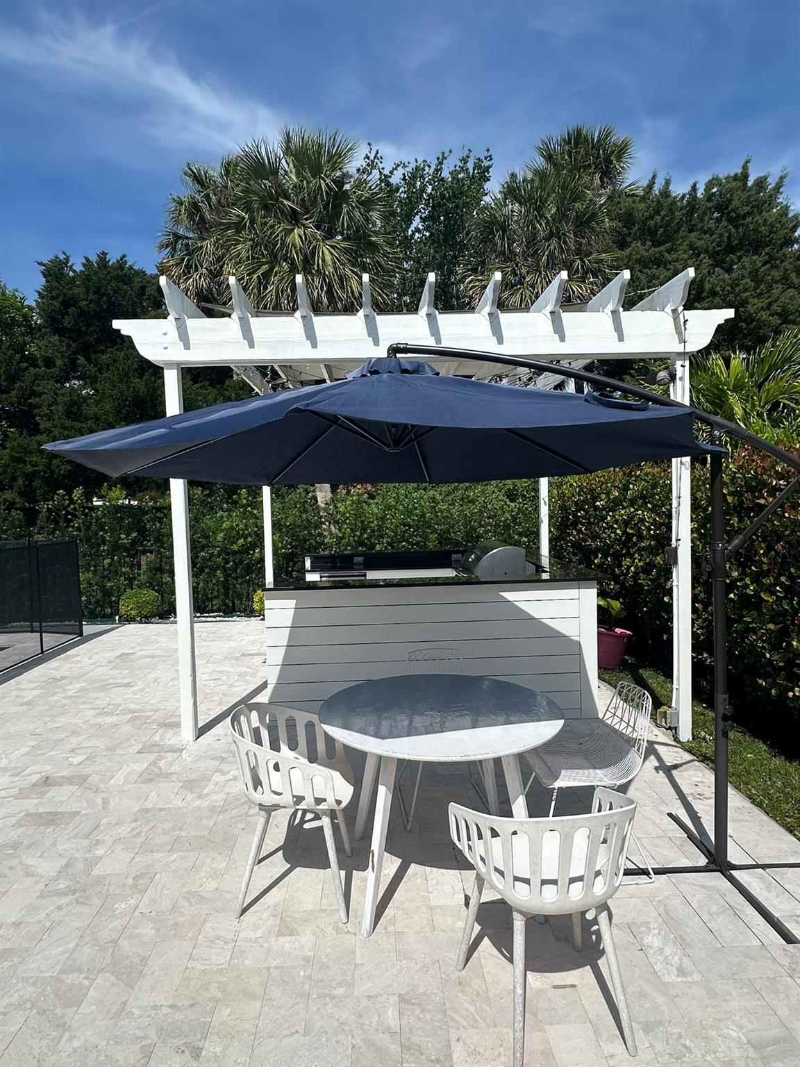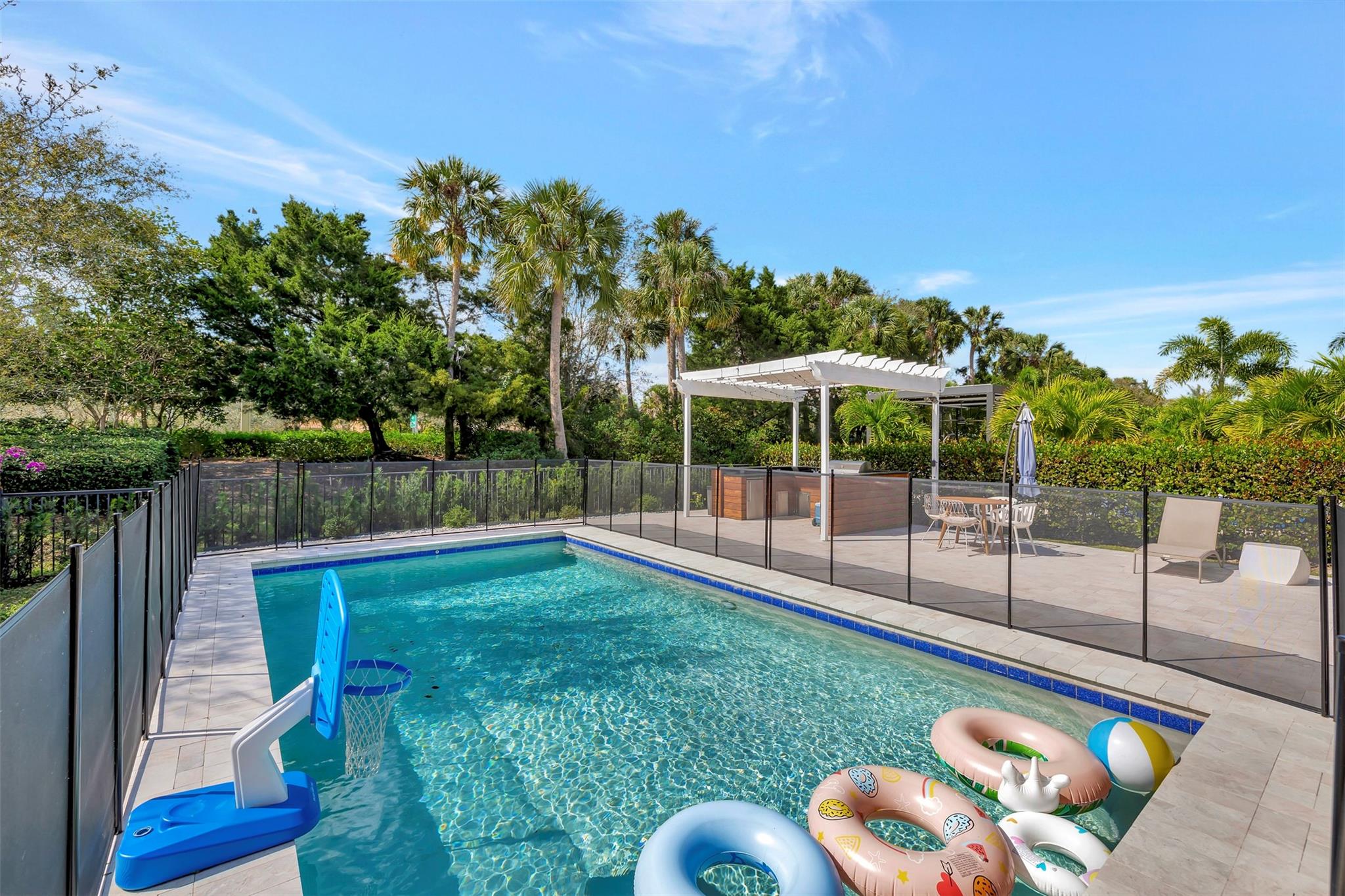 Outside, enjoy a covered lanai, pergola, built-in BBQ grill, and oversized pool.