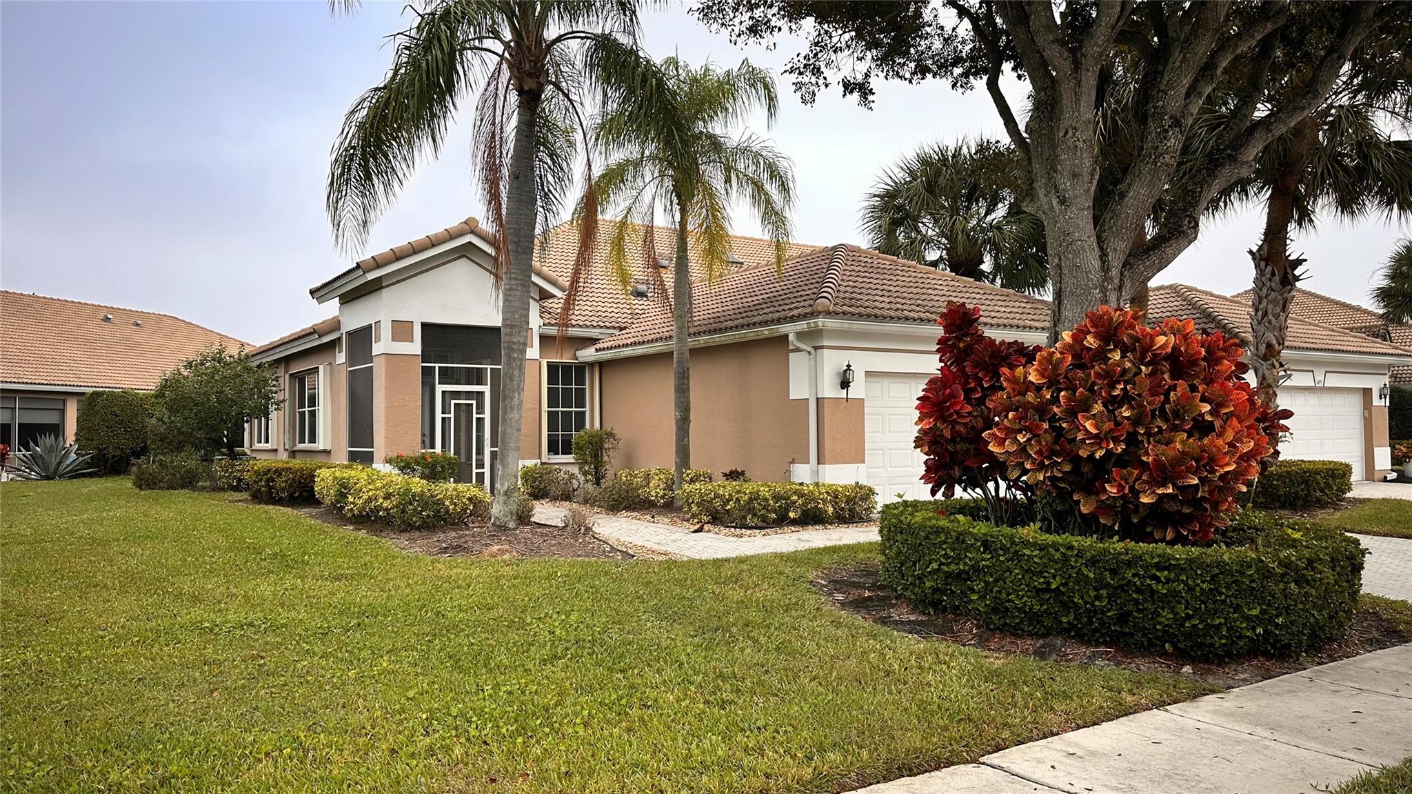 Welcome to Abeerdeen community, open-bright and spacious 3BR/ 2BA villa feels like a single-family home due to the size & privacy offered. The kitchen has a wall down with quartz counters & a large bar. The bedrooms offer a split floorplan perfect for guests. The primary bedroom is well-sized with door to the lanai, large bathroom with 2 sinks, separate soaking tub-shower and two car garage with spacious driveway.