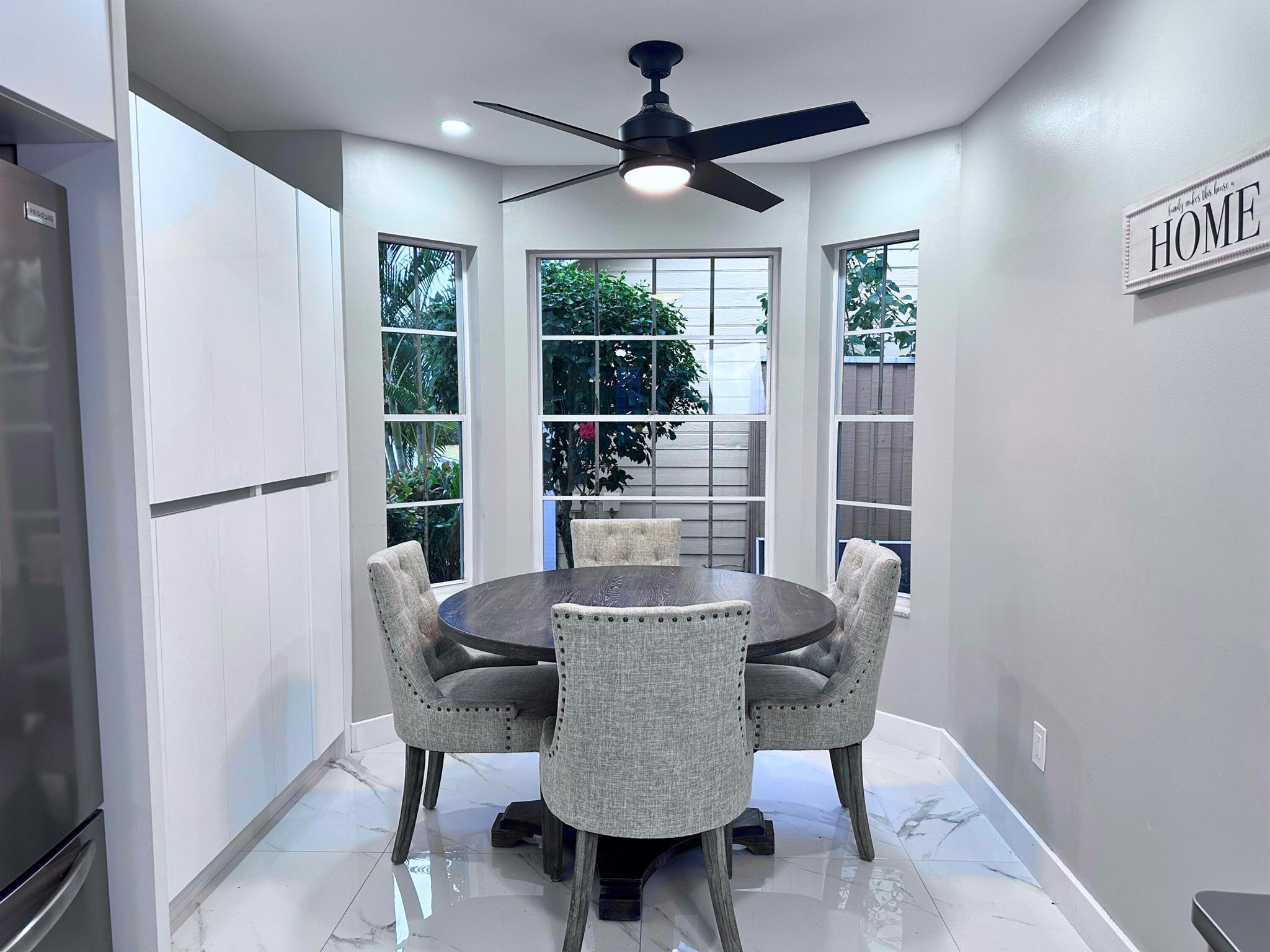 Discover your dream home in the prestigious gated community of Fairfield at Boca Raton. This beautifully renovated 3-bedroom, 2.5-bathroom residence offers modern comforts and elegant design. The master suite, located on the first floor, features a brand-new custom shower, double vanity with quartz counters, and a spacious walk-in closet. The contemporary kitchen boasts custom white cabinetry, quartz countertops, and new stainless steel appliances, seamlessly flowing into the open living and dining areas with high-volume ceilings and porcelain floors new roof.Enjoy serene garden views from your private patio, perfect for relaxation or entertaining. As a resident of Fairfield, you’ll have access to resort-style amenities, including a clubhouse, pools, fitness center, and tennis courts