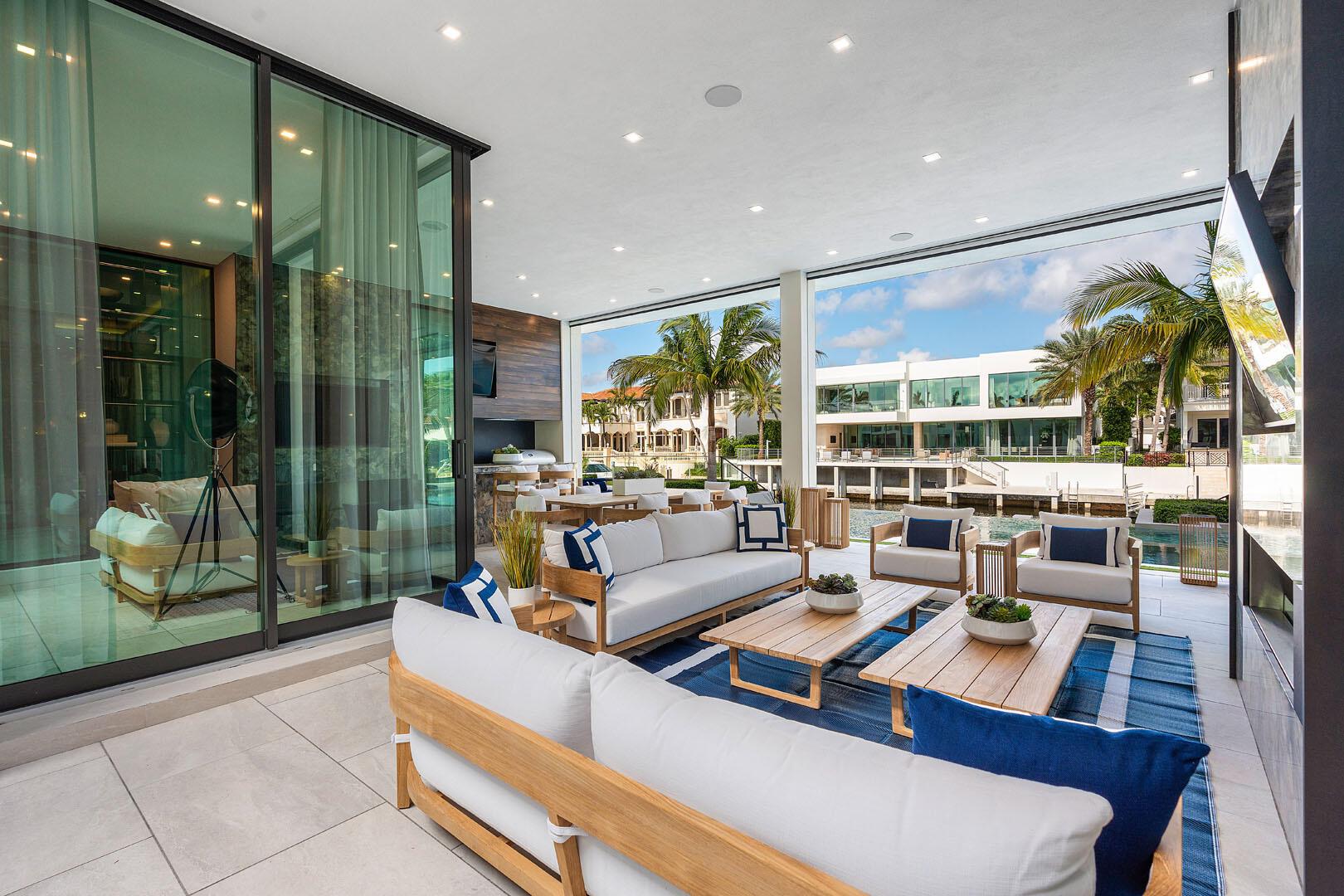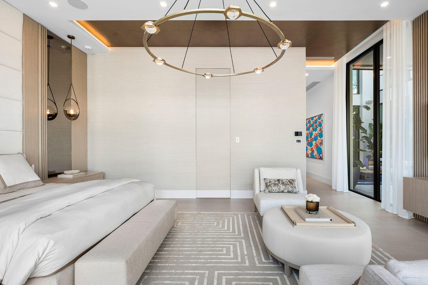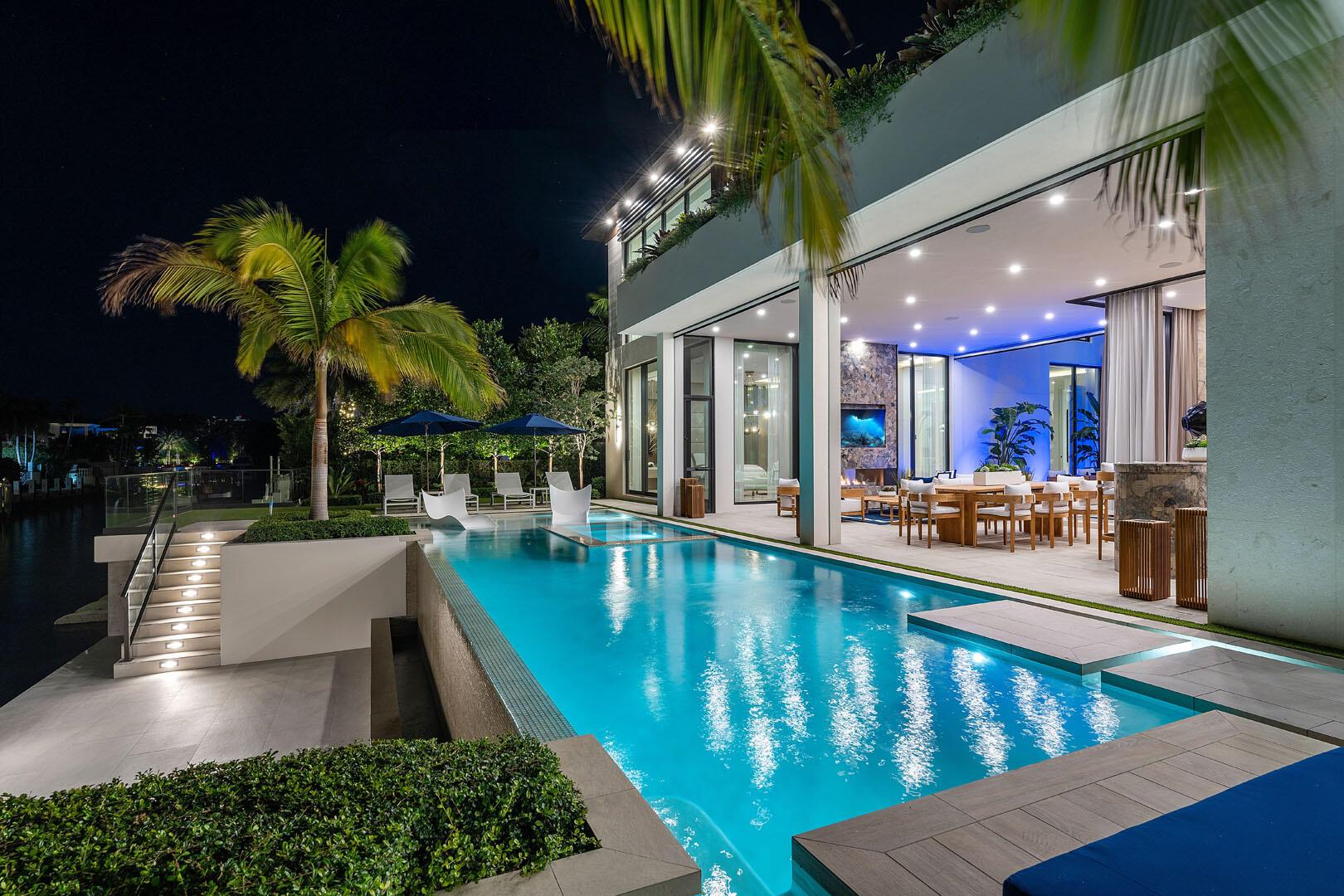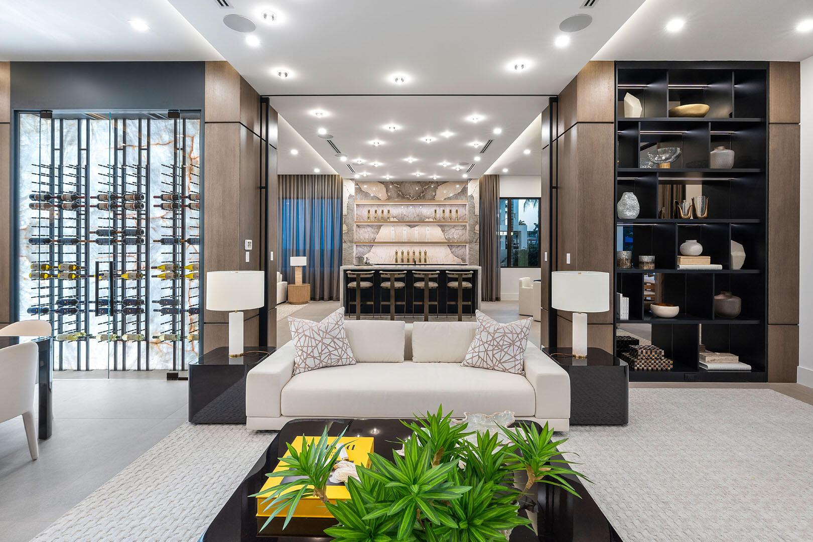 Nestled along 101 feet of the prestigious Butterfly Palm Waterway, this newly completed ultra-luxury contemporary estate developed by Matthew Epstein of Primark Partners sets a new standard that epitomizes waterfront elegance. Architecture by Affiniti Architects with interiors by Michael Gray Interiors, this seven-bedroom residence seamlessly blends innovative design with the finest materials and meticulous craftsmanship, offering a refined lifestyle in one of Boca Raton’s most exclusive enclaves.The first-floor primary suite is a serene retreat with indulgent His & Her spa-inspired bathrooms wrapped in Italian travertine and boutique-style closets. The thoughtfully designed interior also includes a chic clubroom with a Quartzite bar, a sophisticated home office, a formal dining