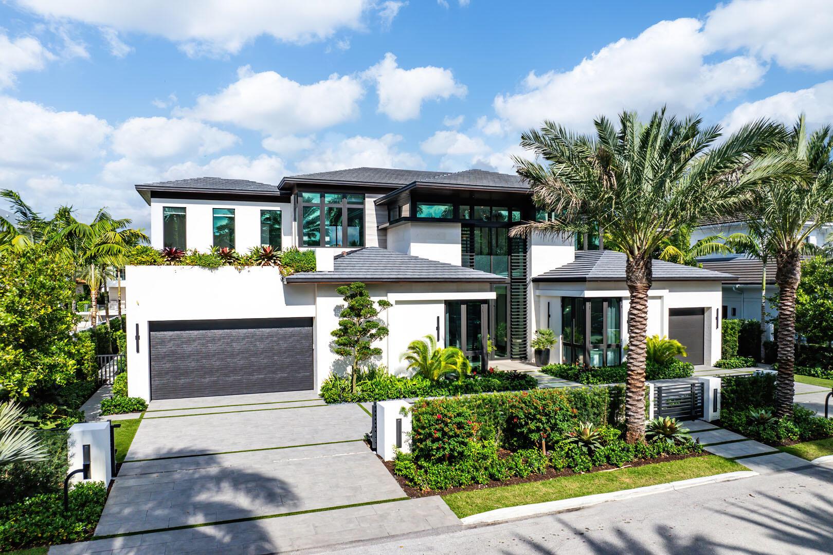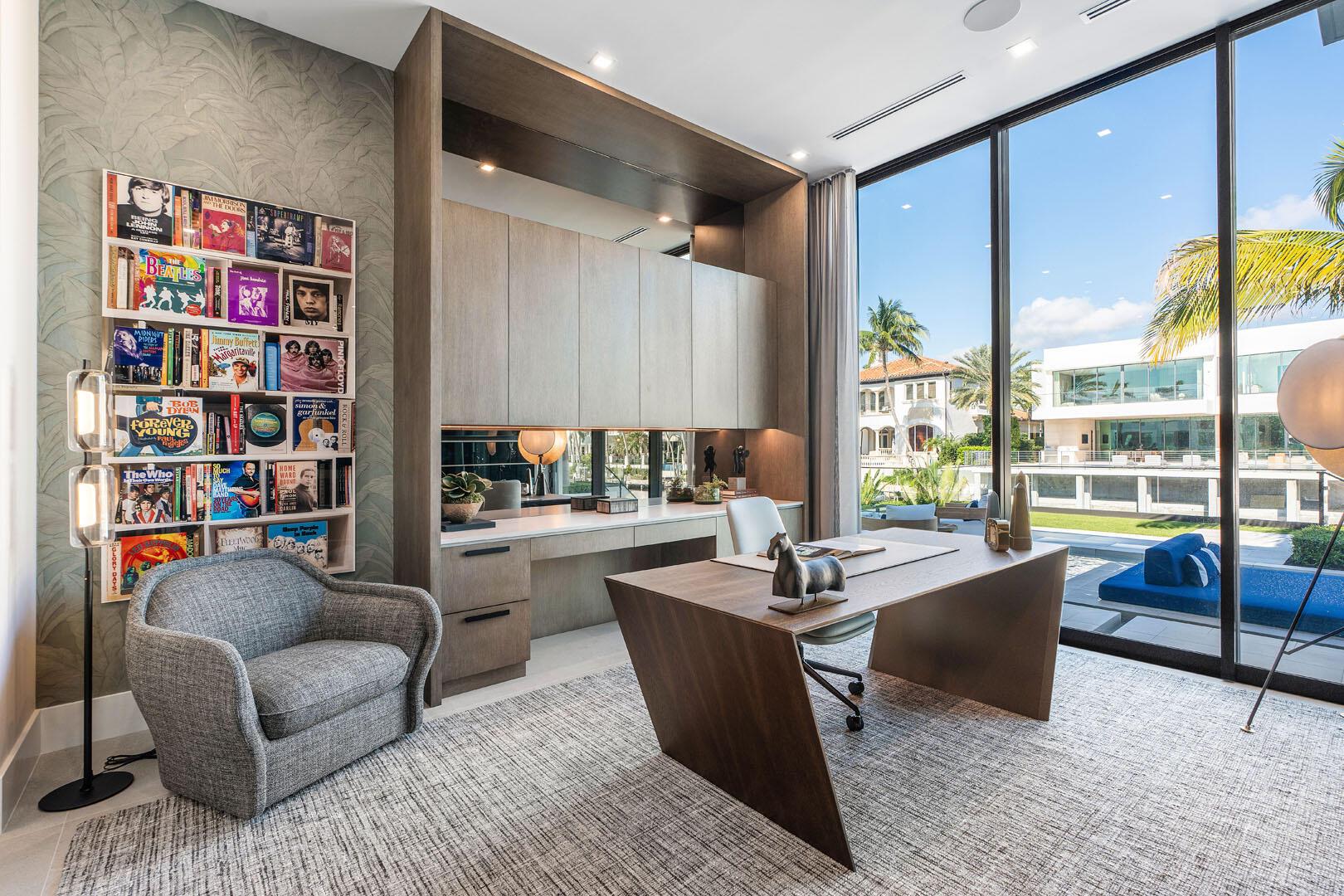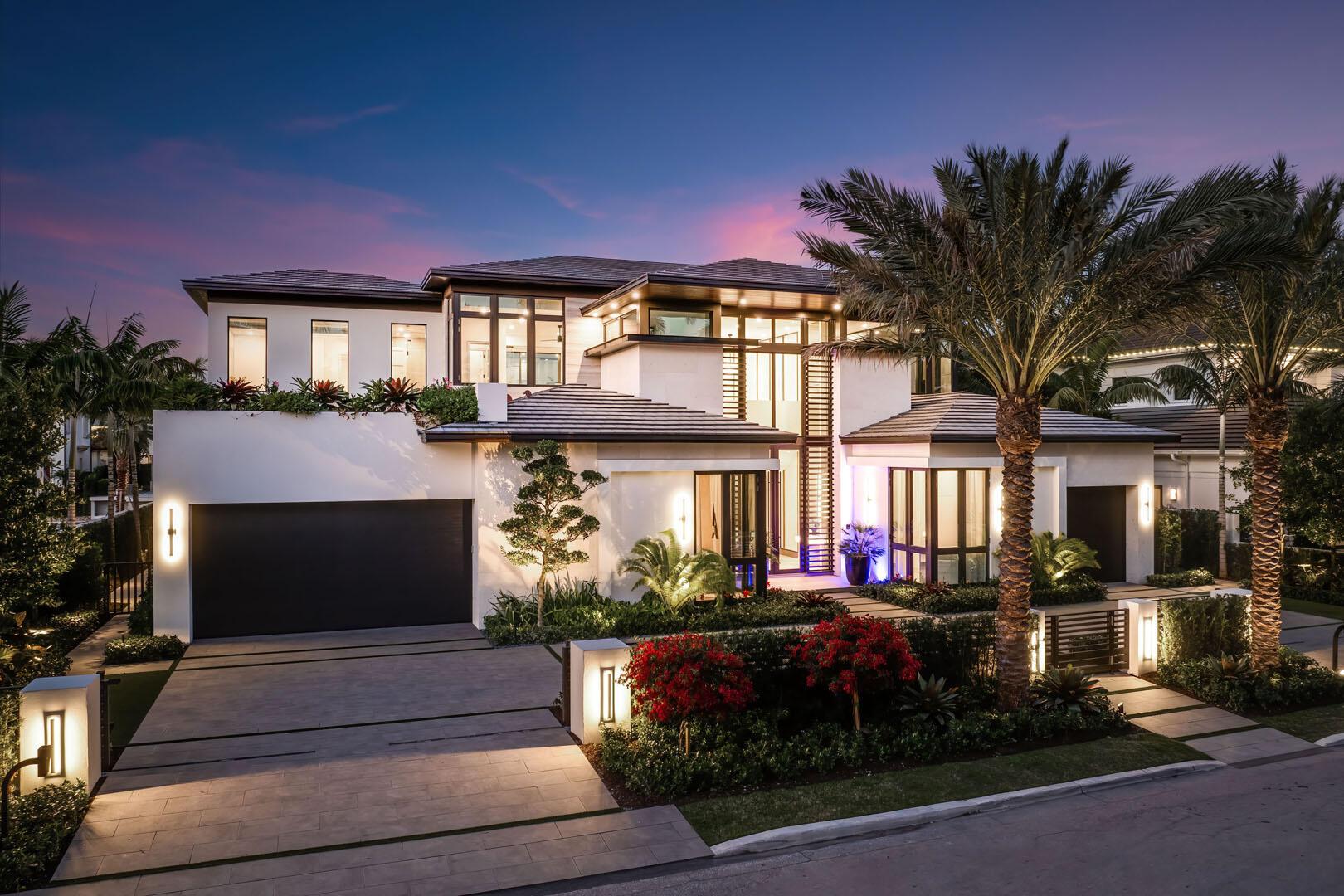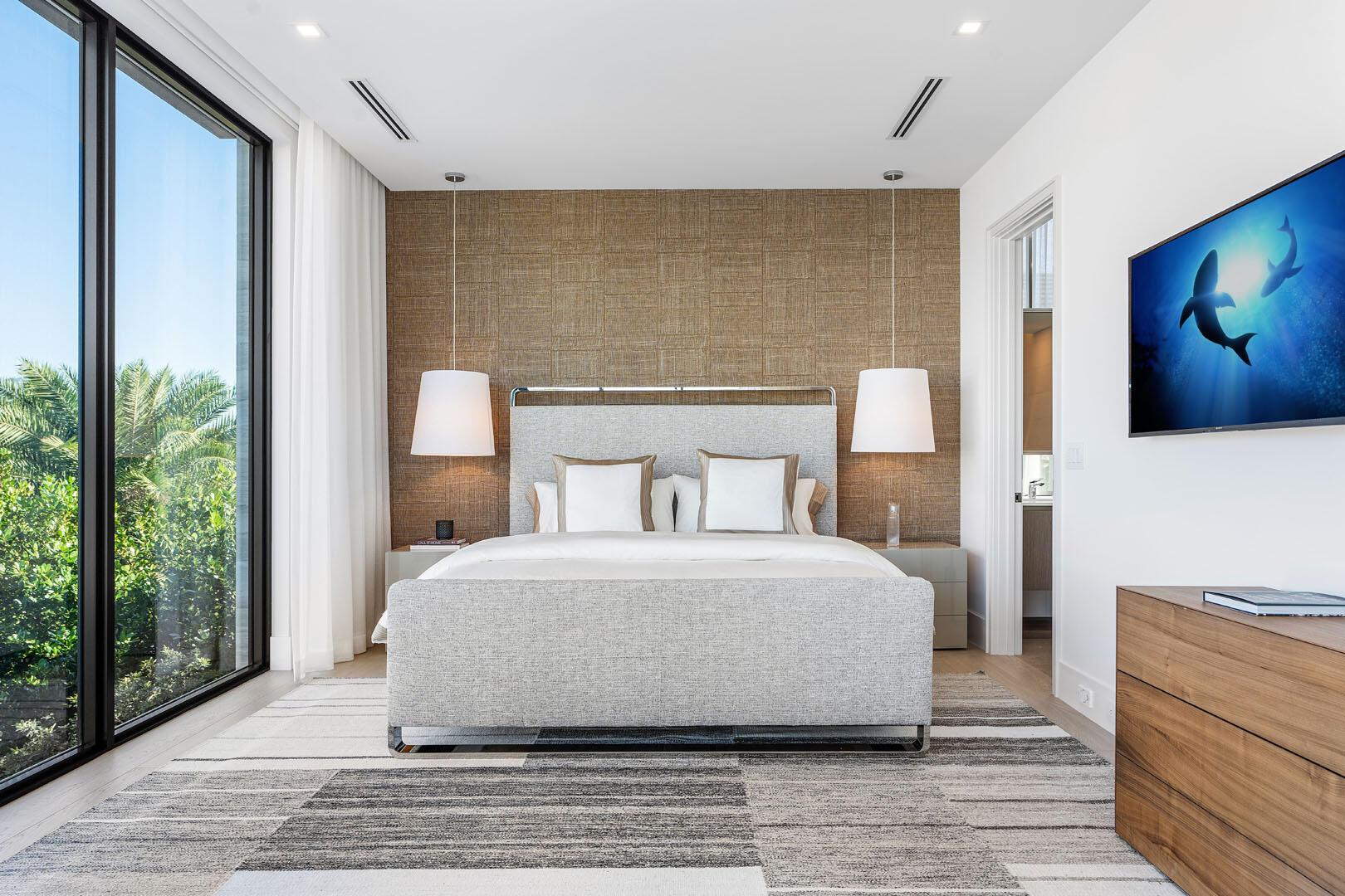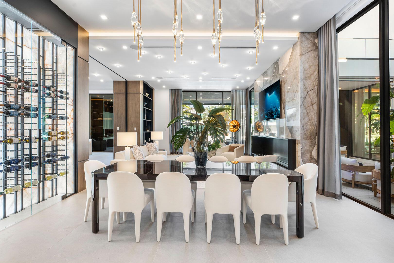Nestled along 101 feet of the prestigious Butterfly Palm Waterway, this newly completed ultra-luxury contemporary estate developed by Matthew Epstein of Primark Partners sets a new standard that epitomizes waterfront elegance. Architecture by Affiniti Architects with interiors by Michael Gray Interiors, this seven-bedroom residence seamlessly blends innovative design with the finest materials and meticulous craftsmanship, offering a refined lifestyle in one of Boca Raton’s most exclusive enclaves.The first-floor primary suite is a serene retreat with indulgent His & Her spa-inspired bathrooms wrapped in Italian travertine and boutique-style closets. The thoughtfully designed interior also includes a chic clubroom with a Quartzite bar, a sophisticated home office, a formal dining